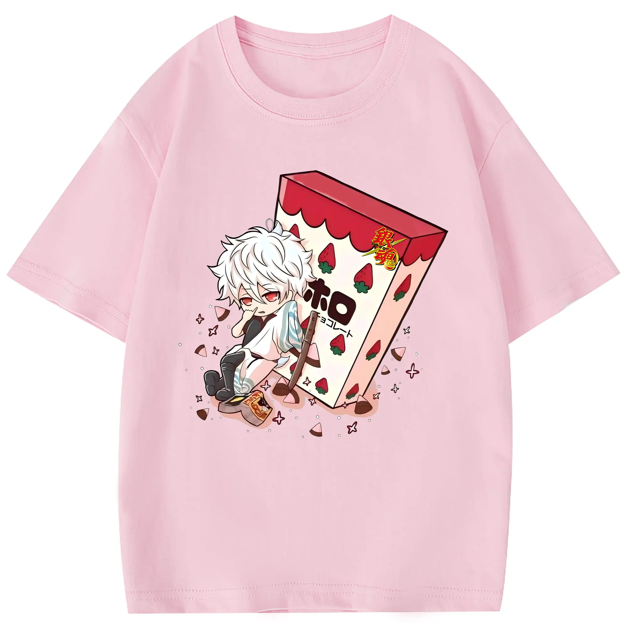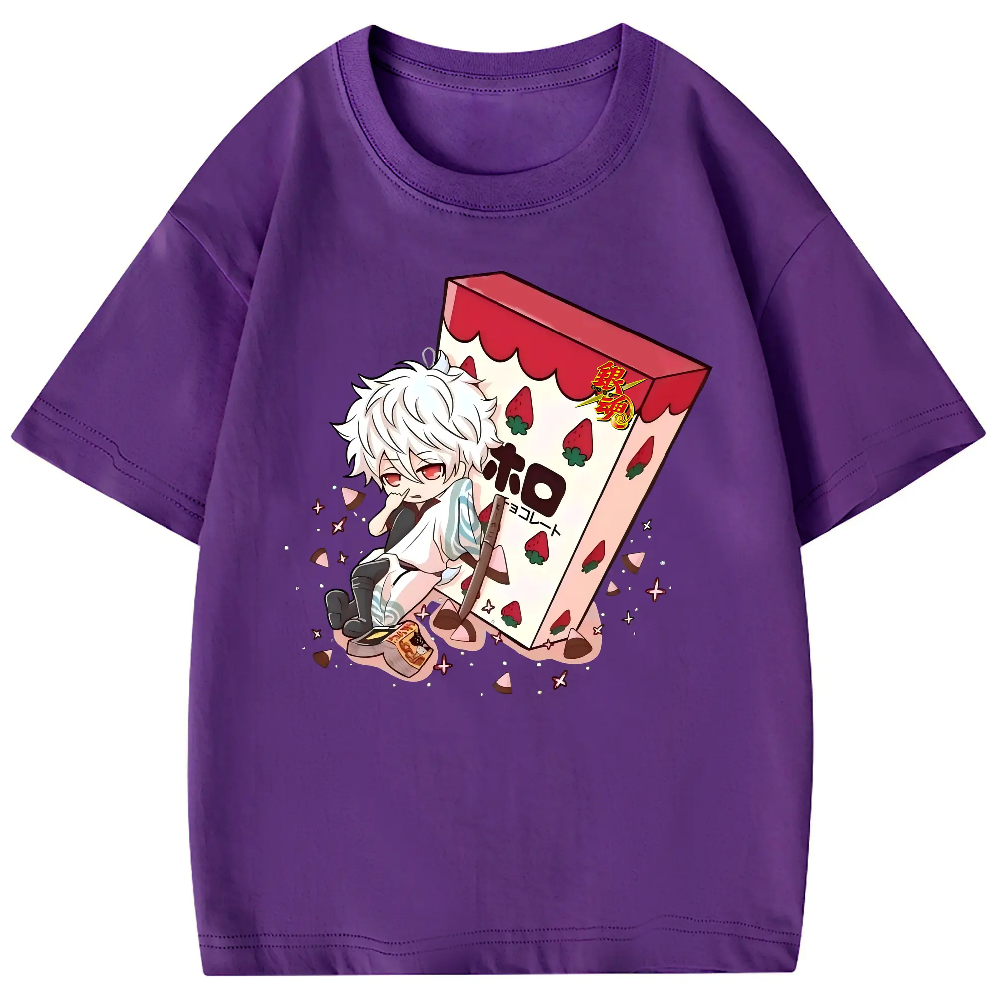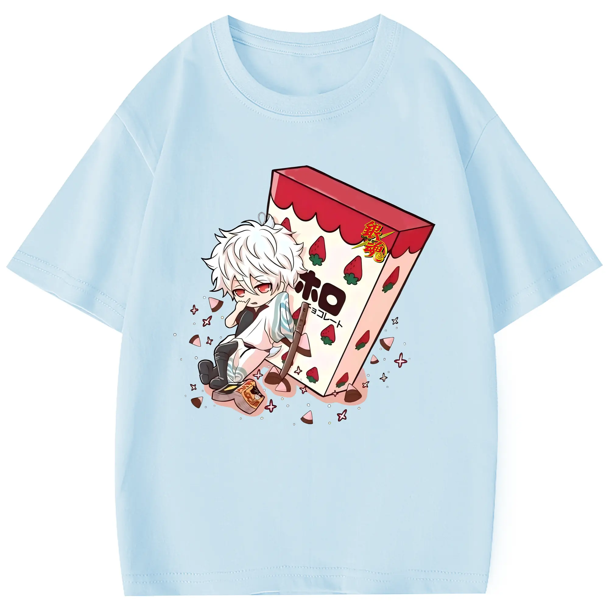 銀魂 グッズ 坂田 銀時 - 綿100% 半袖Tシャツ ・ フロントプリント ・ 快適 通気性 ・ 日常使い 散歩 スポーツ用