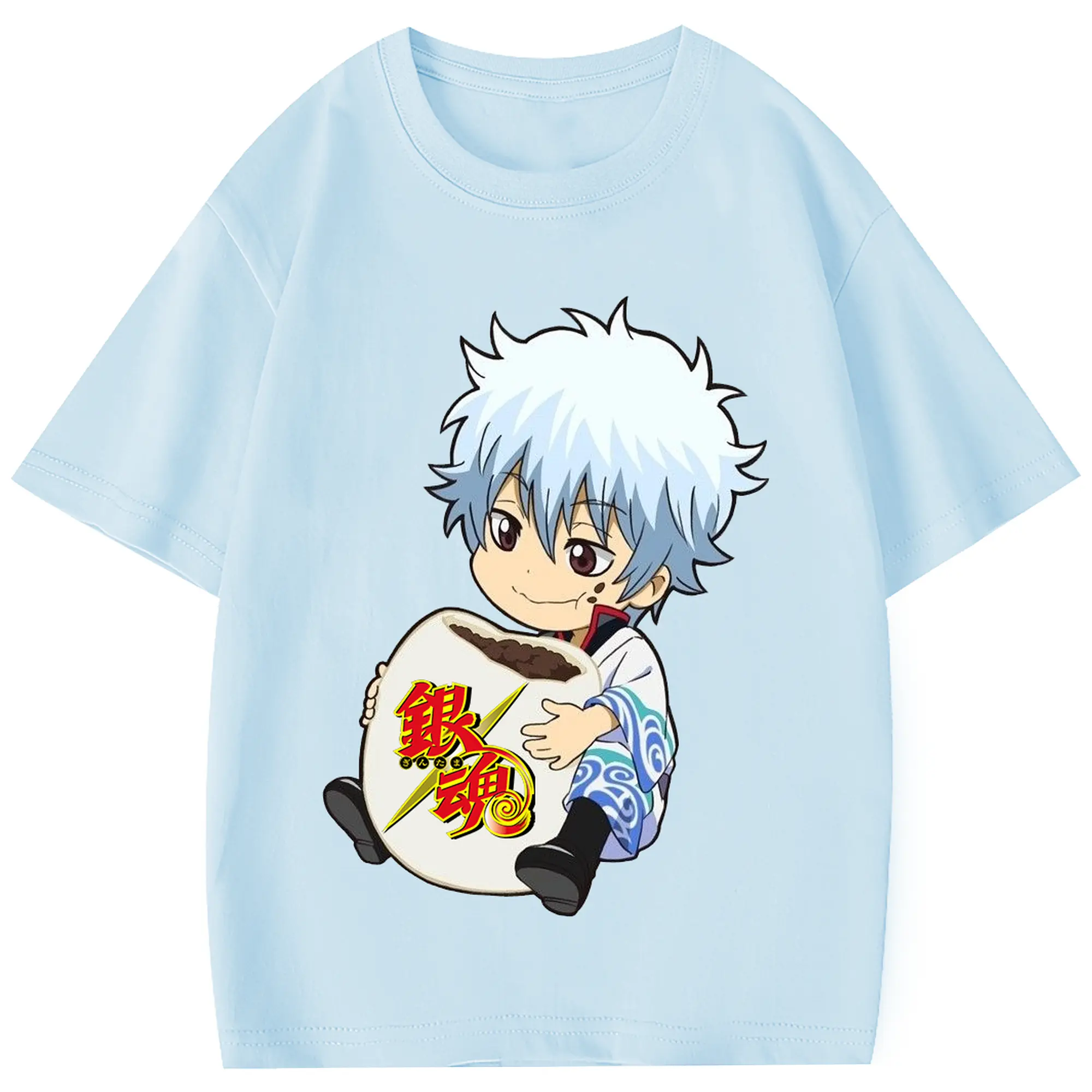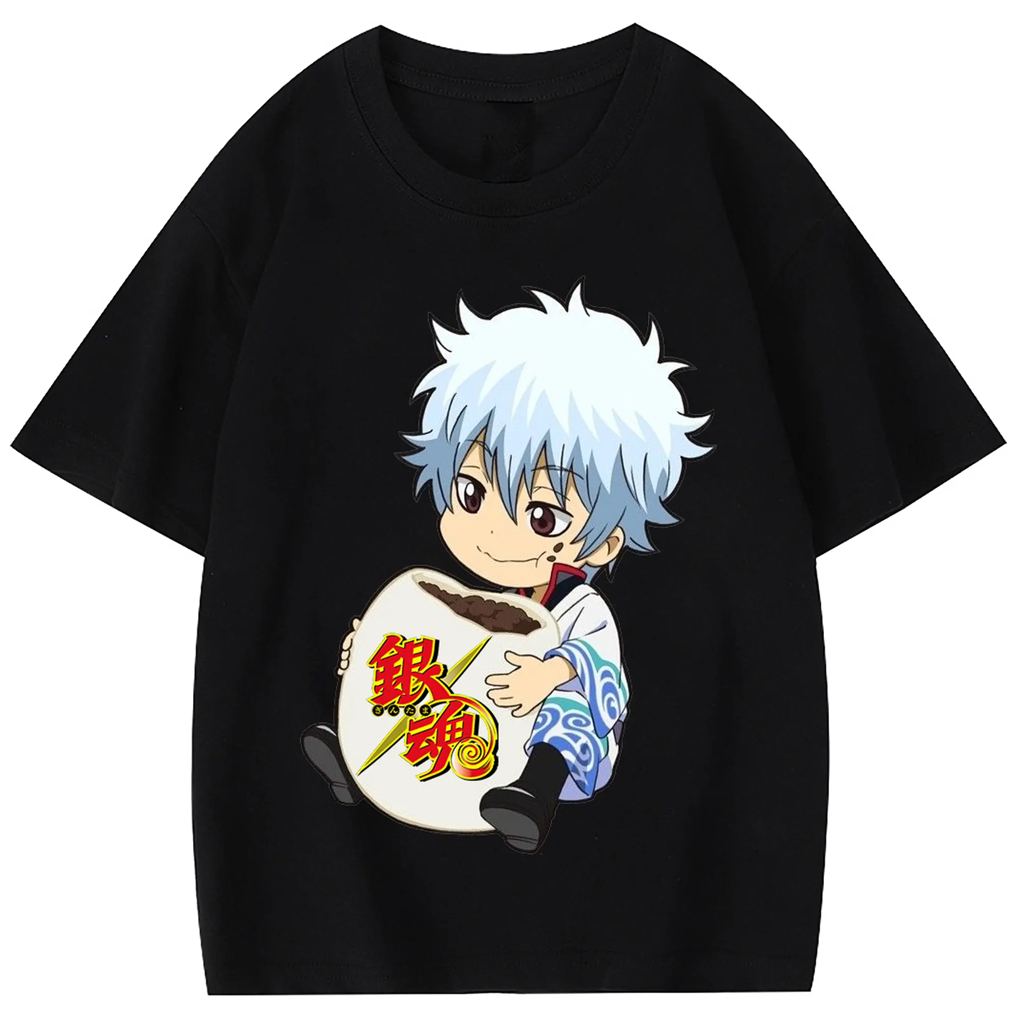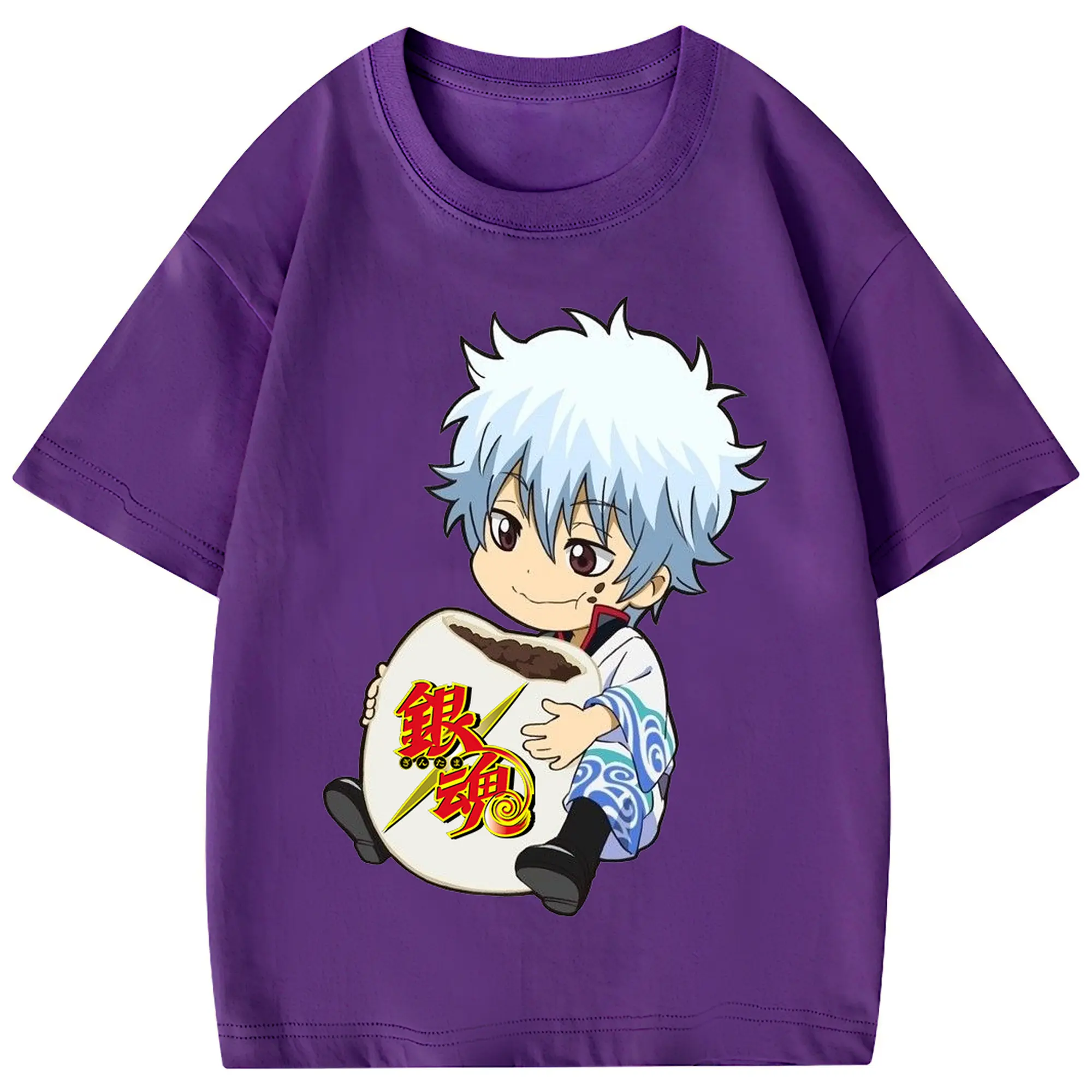 銀魂 グッズ 坂田 銀時 - 綿100% 半袖Tシャツ ・ フロントプリント ・ 快適 通気性 ・ 日常使い 散歩 スポーツ用