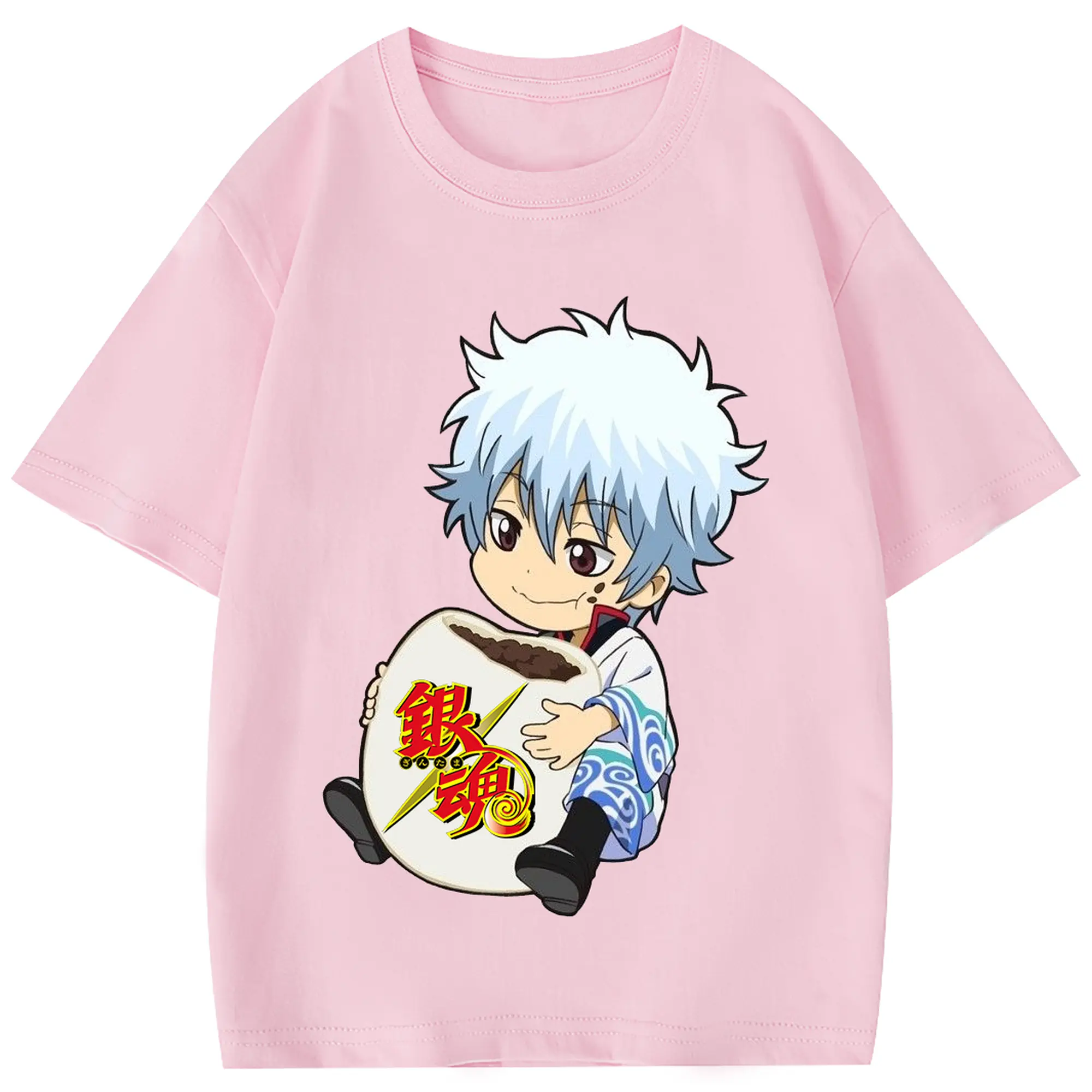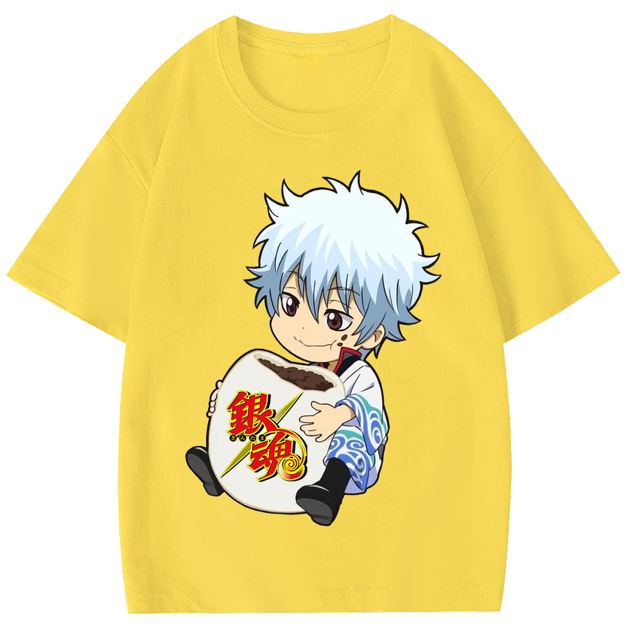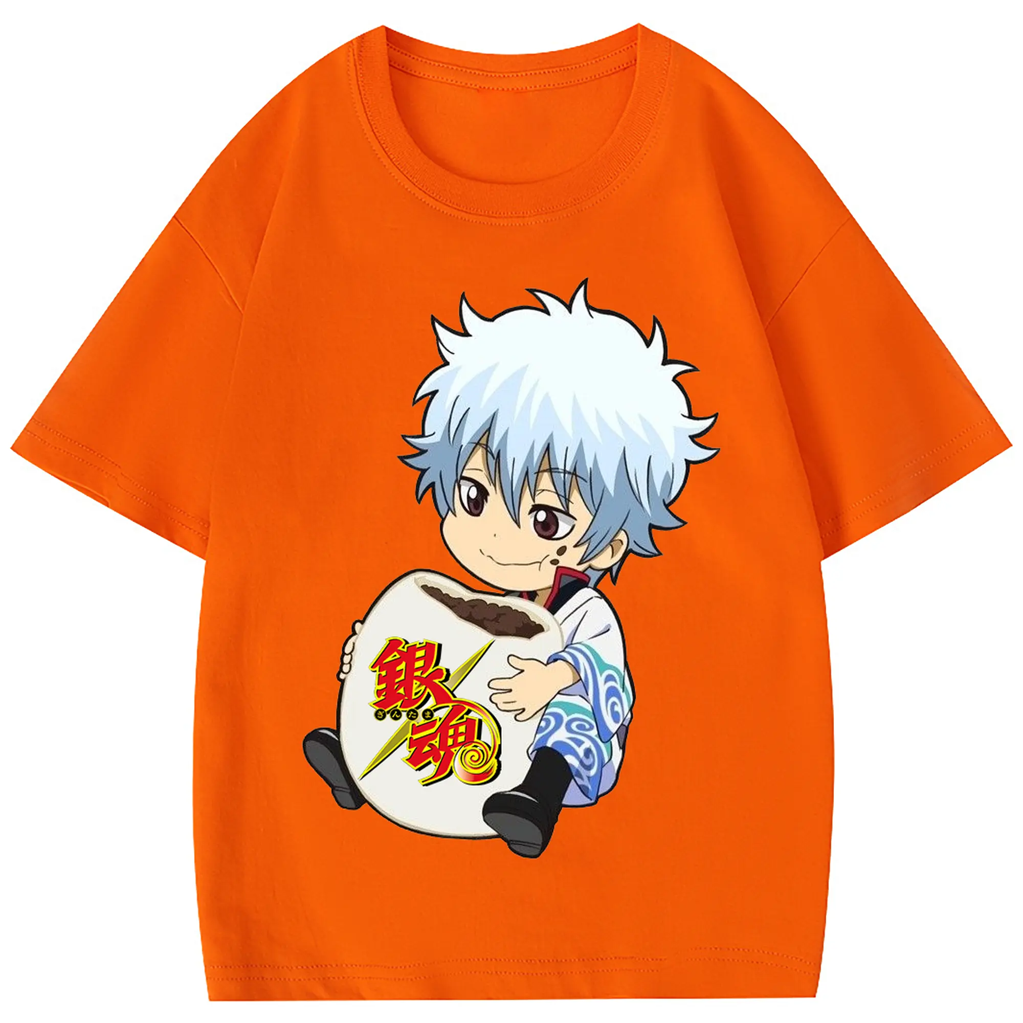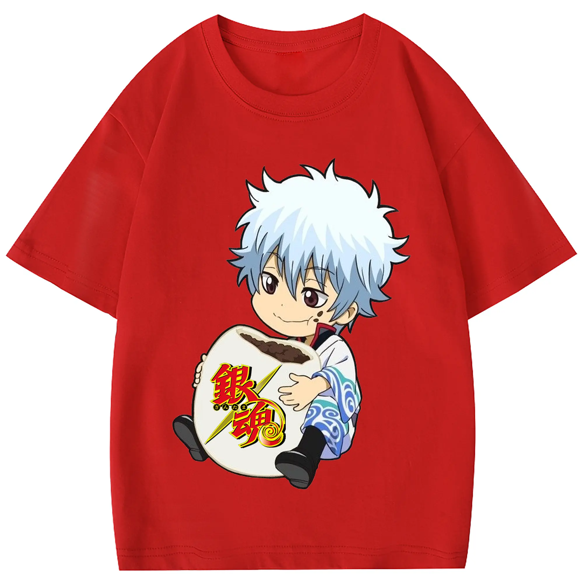 銀魂 グッズ 坂田 銀時 - 綿100% 半袖Tシャツ ・ フロントプリント ・ 快適 通気性 ・ 日常使い 散歩 スポーツ用