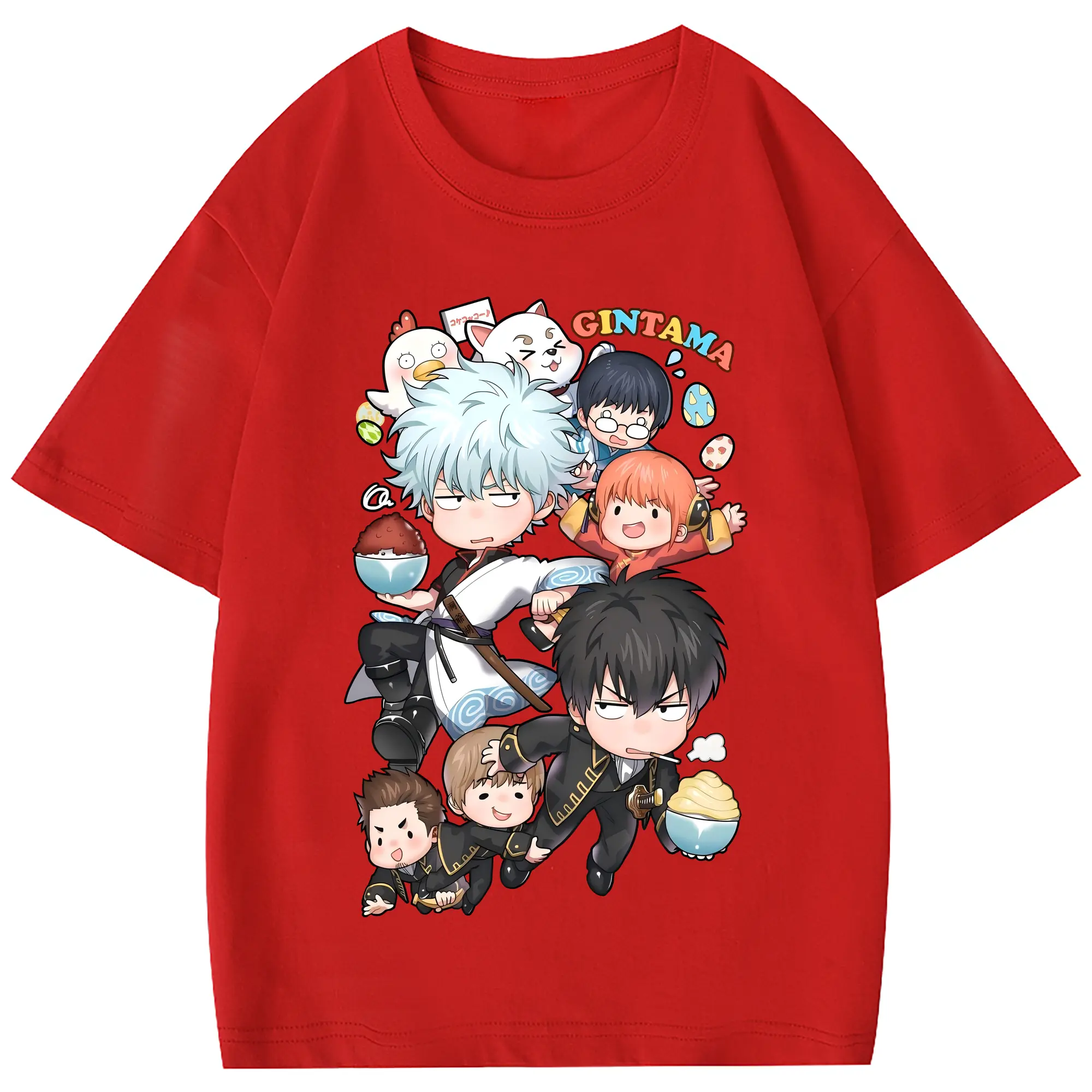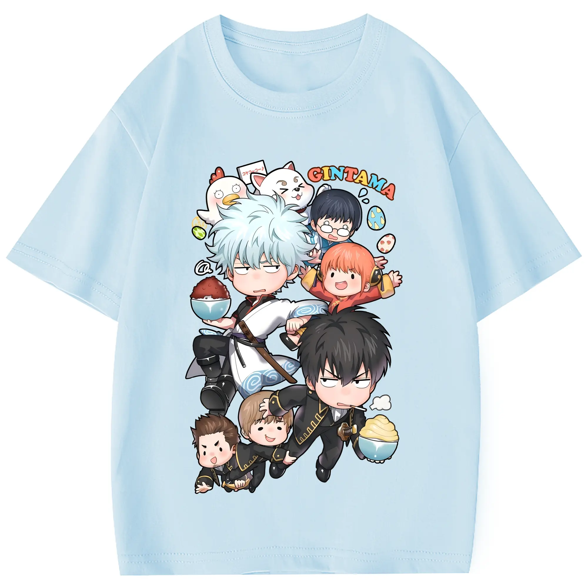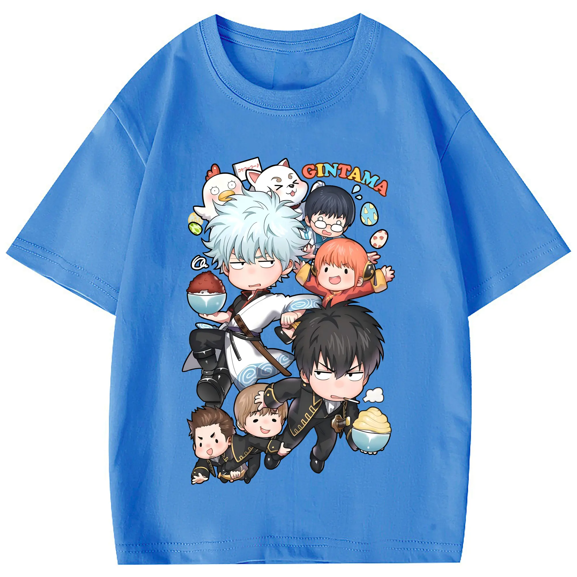 銀魂 グッズ 坂田 銀時 - 綿100% 半袖Tシャツ ・ フロントプリント ・ 快適 通気性 ・ 日常使い 散歩 スポーツ用