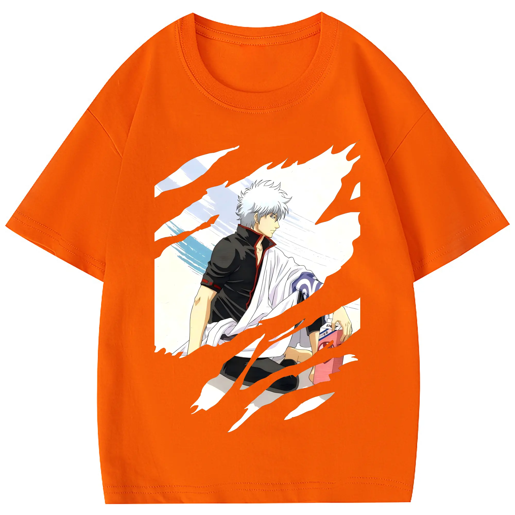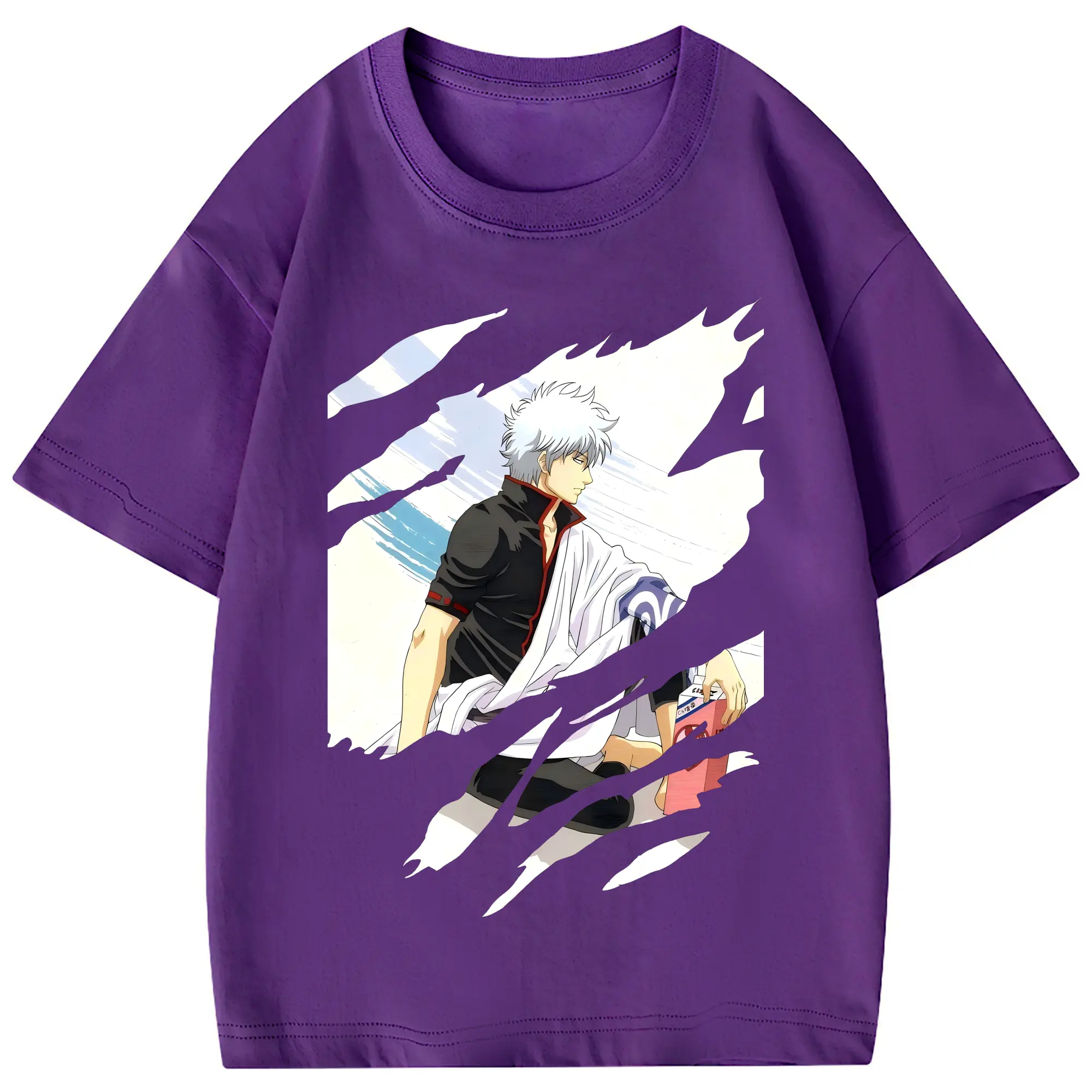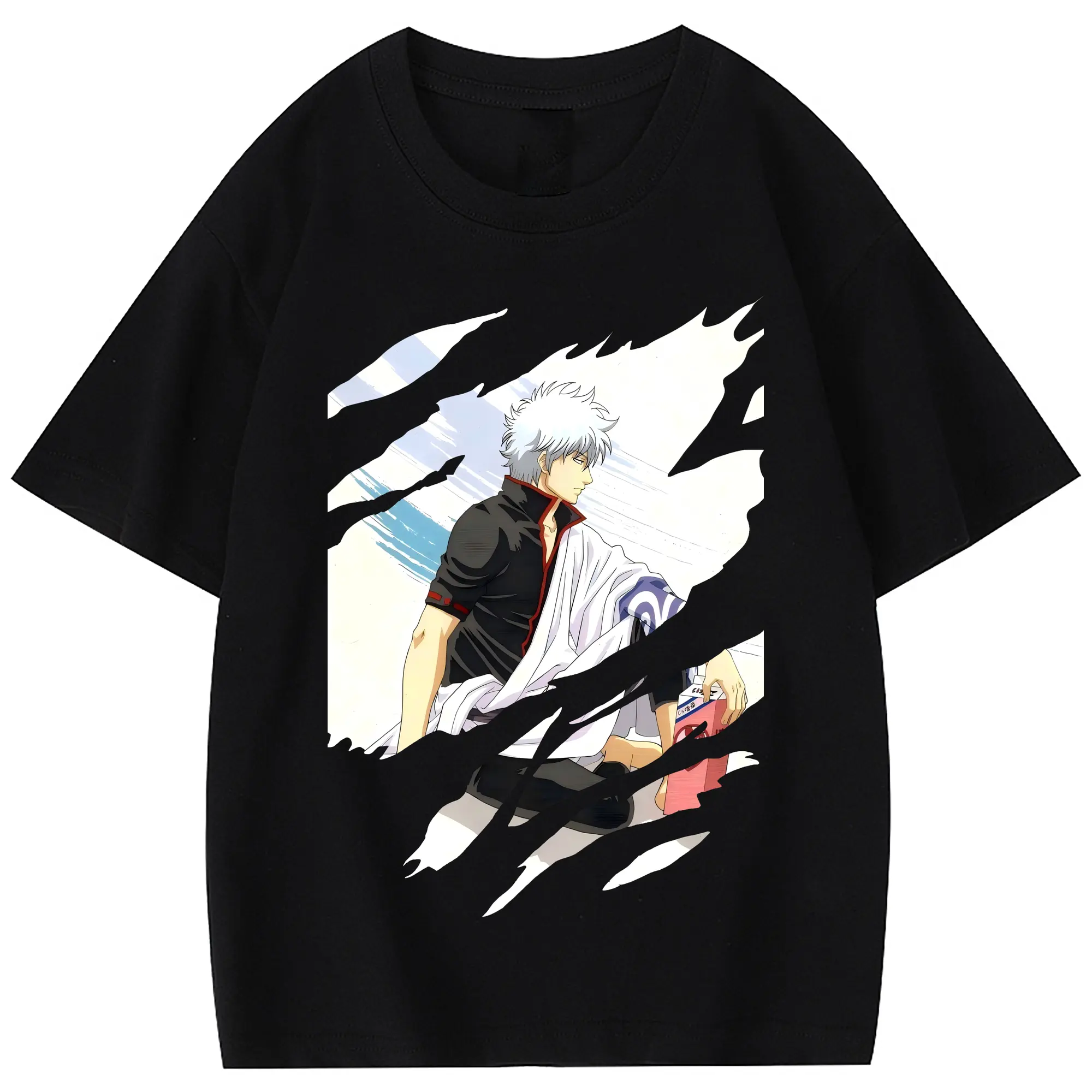 銀魂 グッズ 坂田 銀時 - 綿100% 半袖Tシャツ ・ フロントプリント ・ 快適 通気性 ・ 日常使い 散歩 スポーツ用