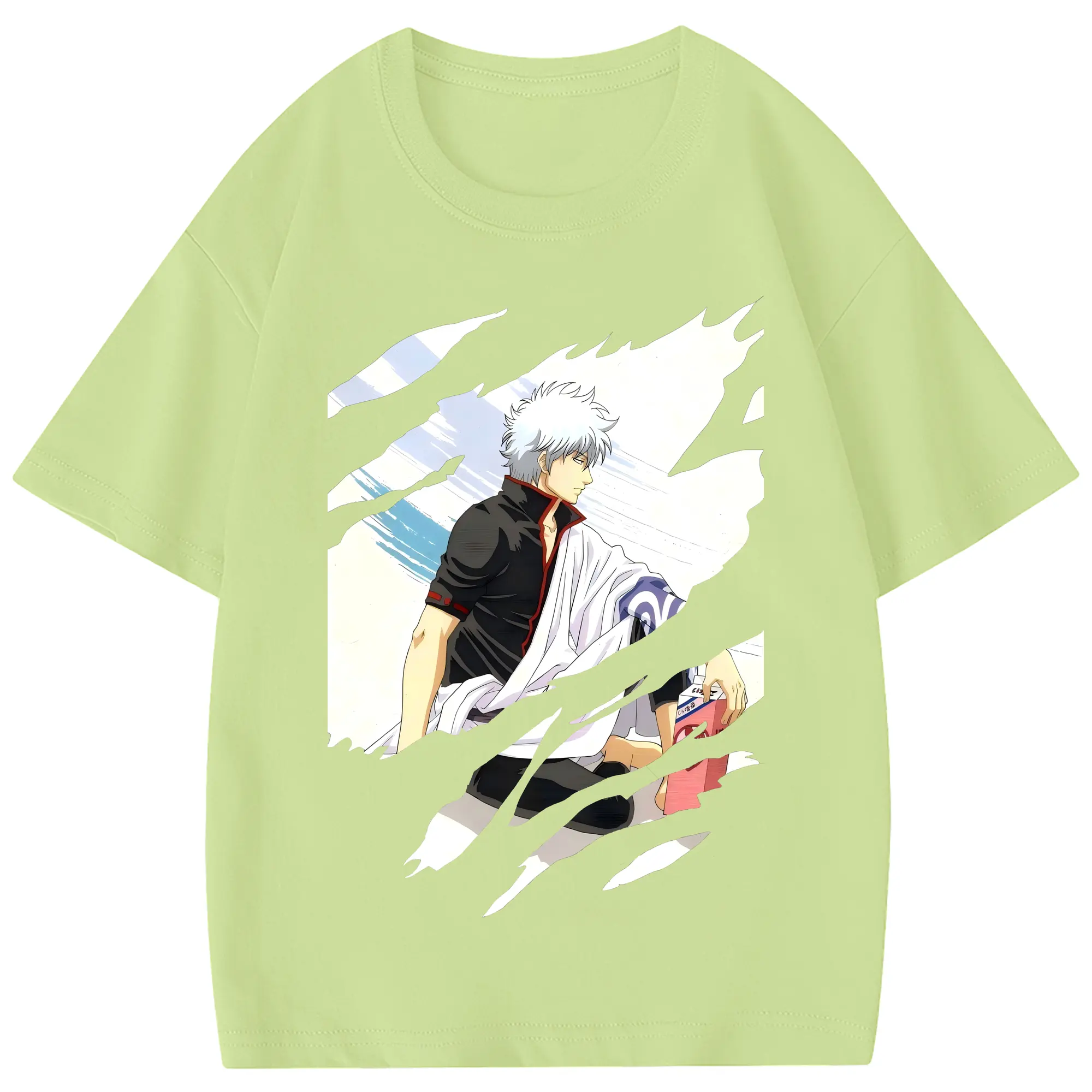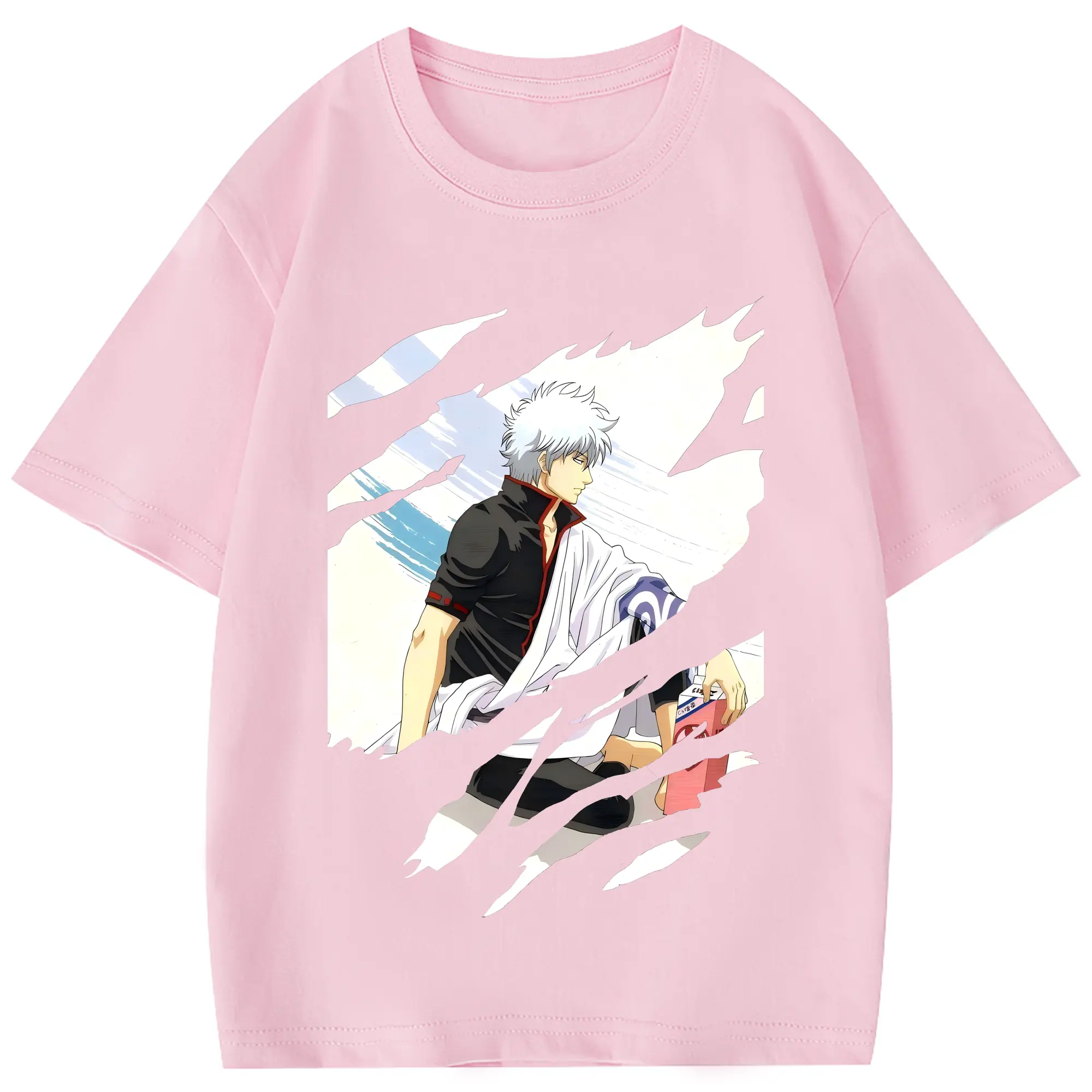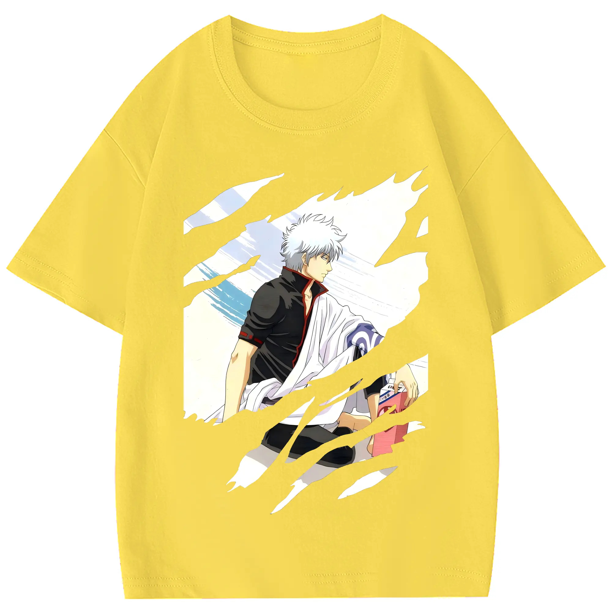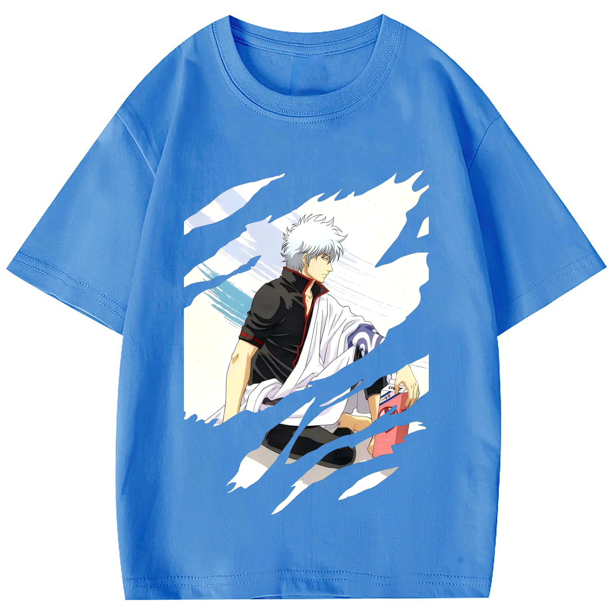 銀魂 グッズ 坂田 銀時 - 綿100% 半袖Tシャツ ・ フロントプリント ・ 快適 通気性 ・ 日常使い 散歩 スポーツ用