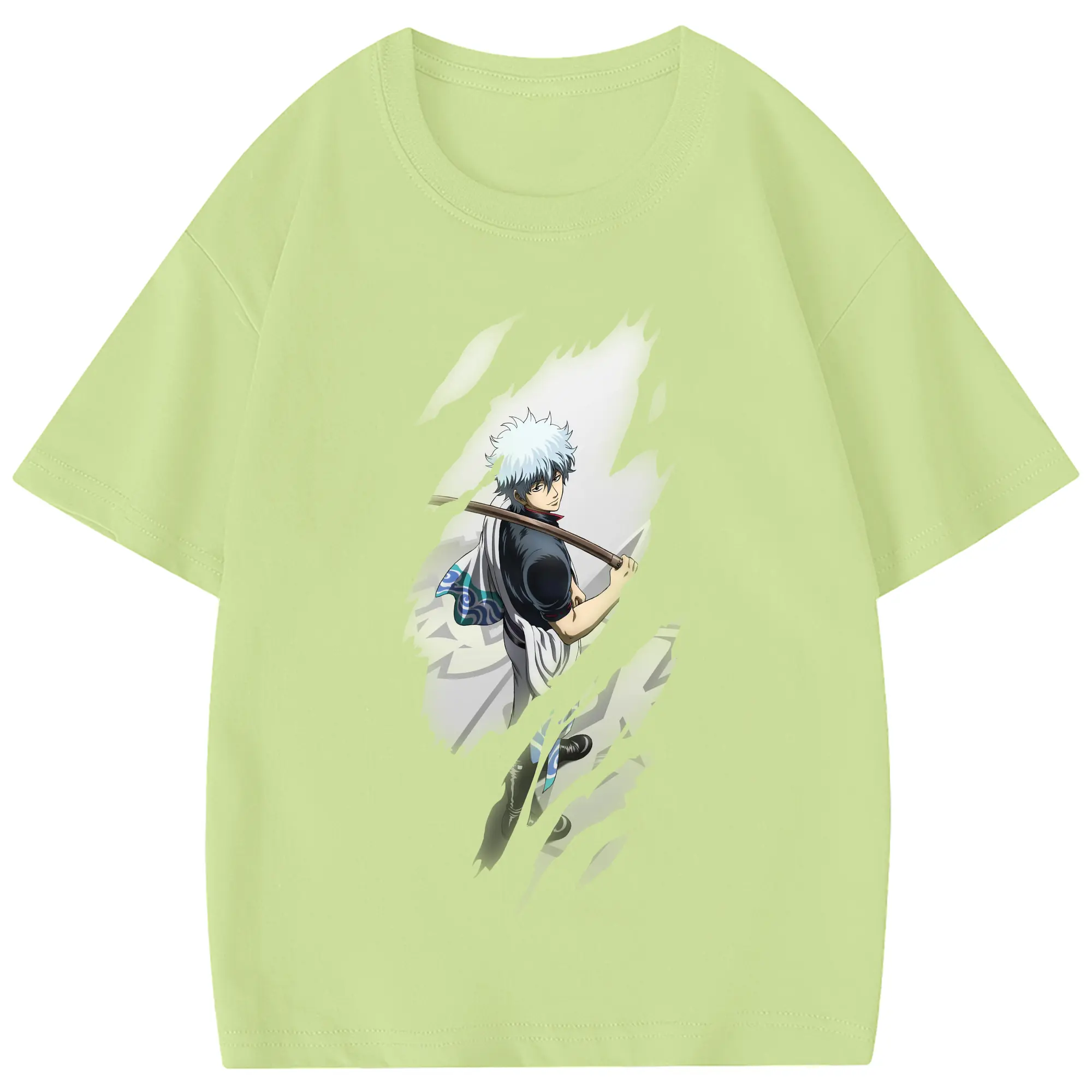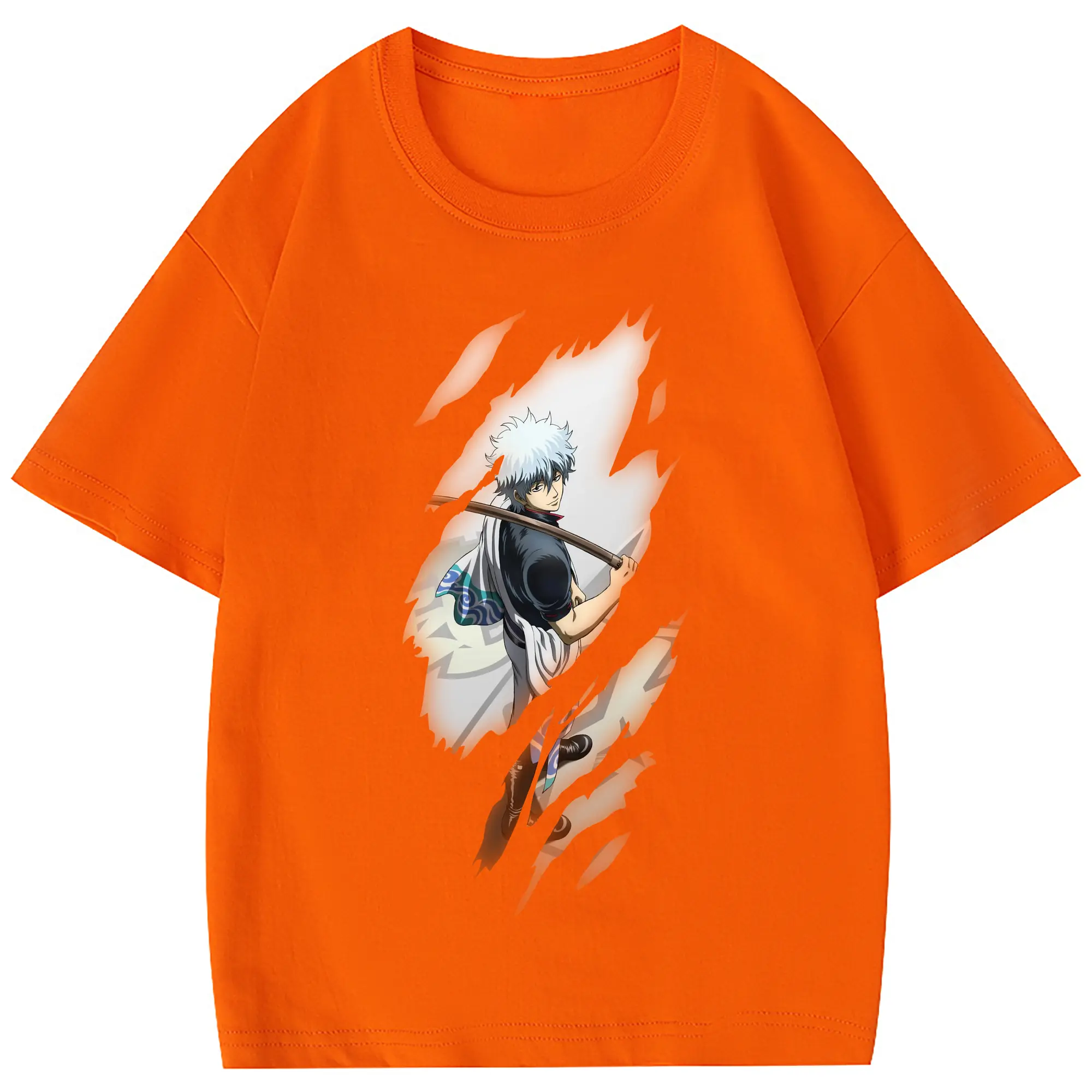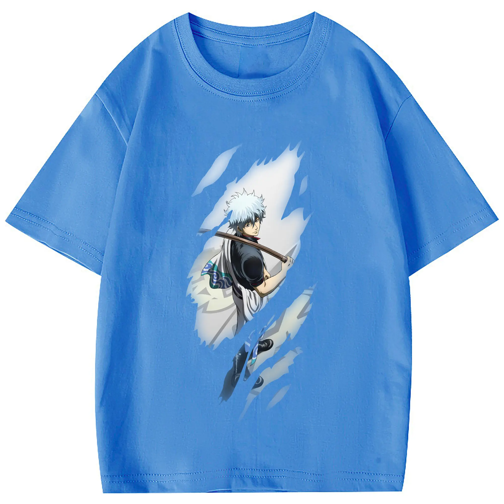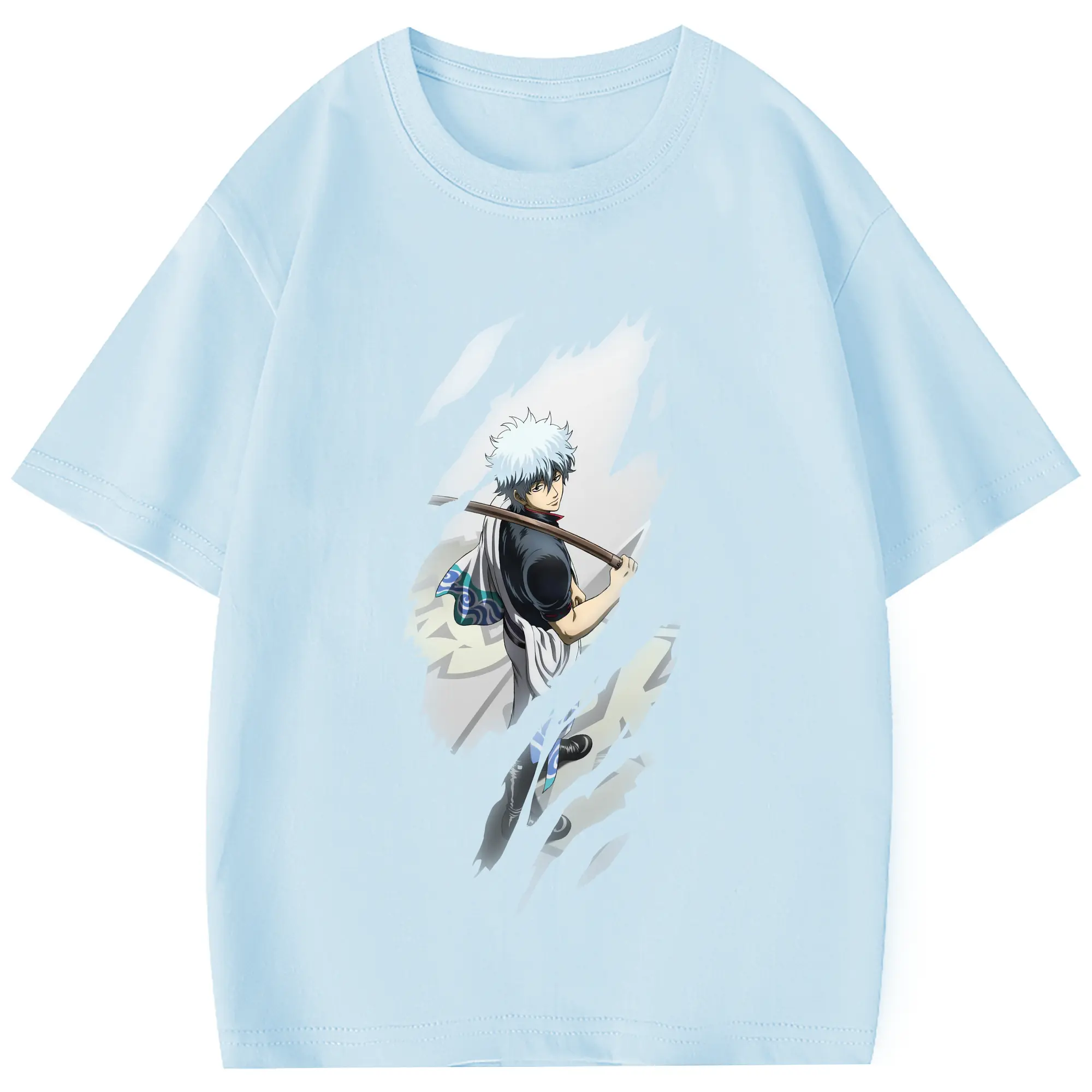 銀魂 グッズ 坂田 銀時 - 綿100% 半袖Tシャツ ・ フロントプリント ・ 快適 通気性 ・ 日常使い 散歩 スポーツ用