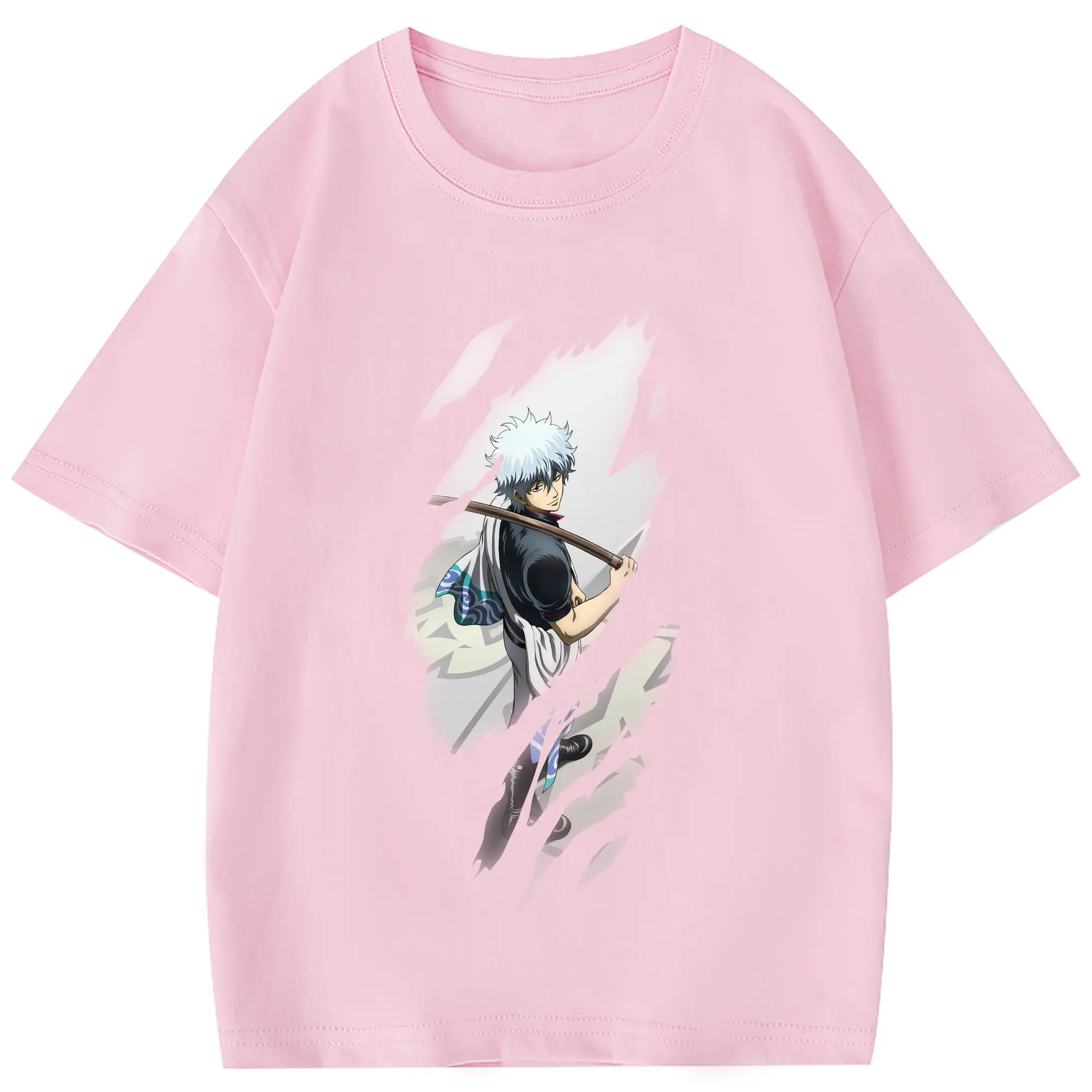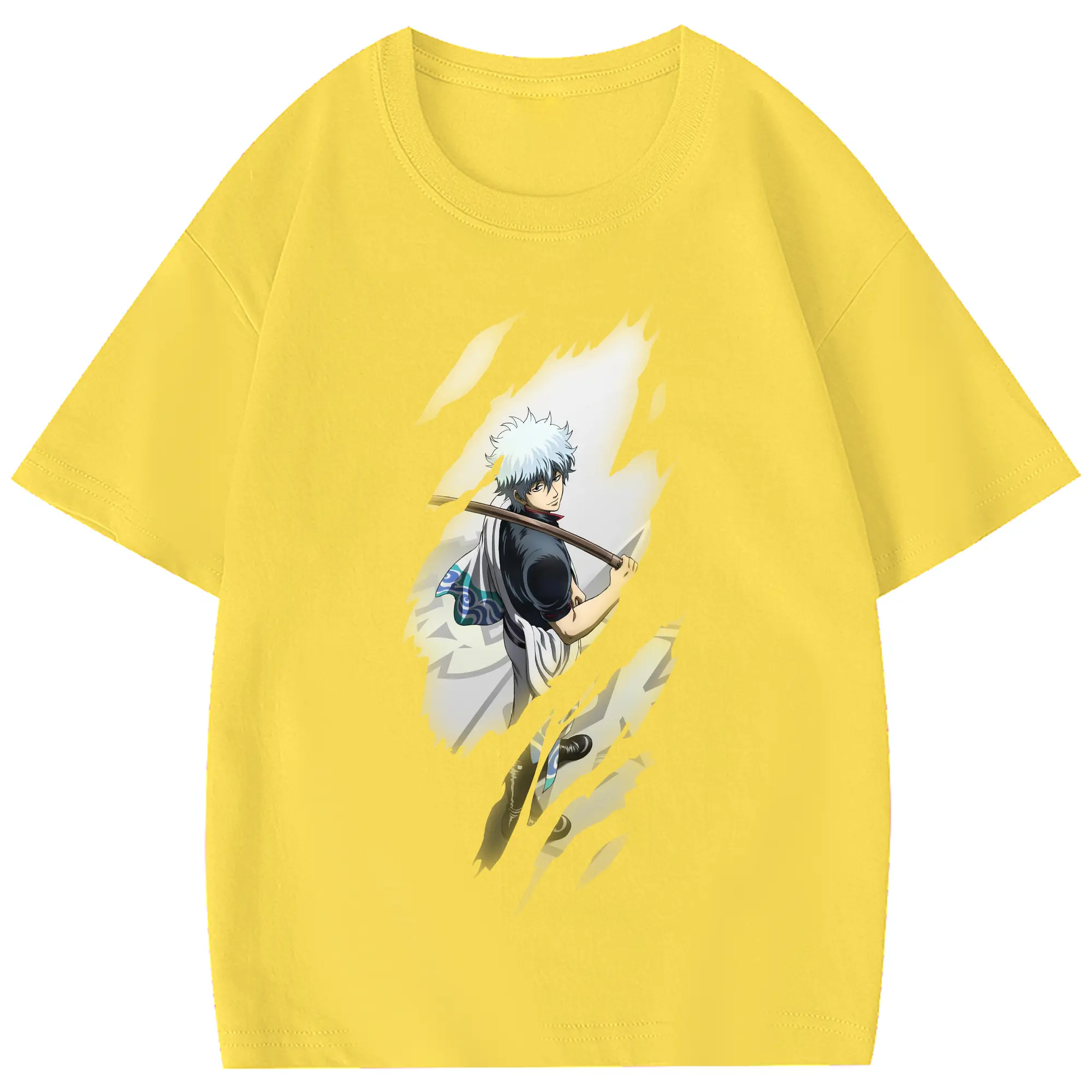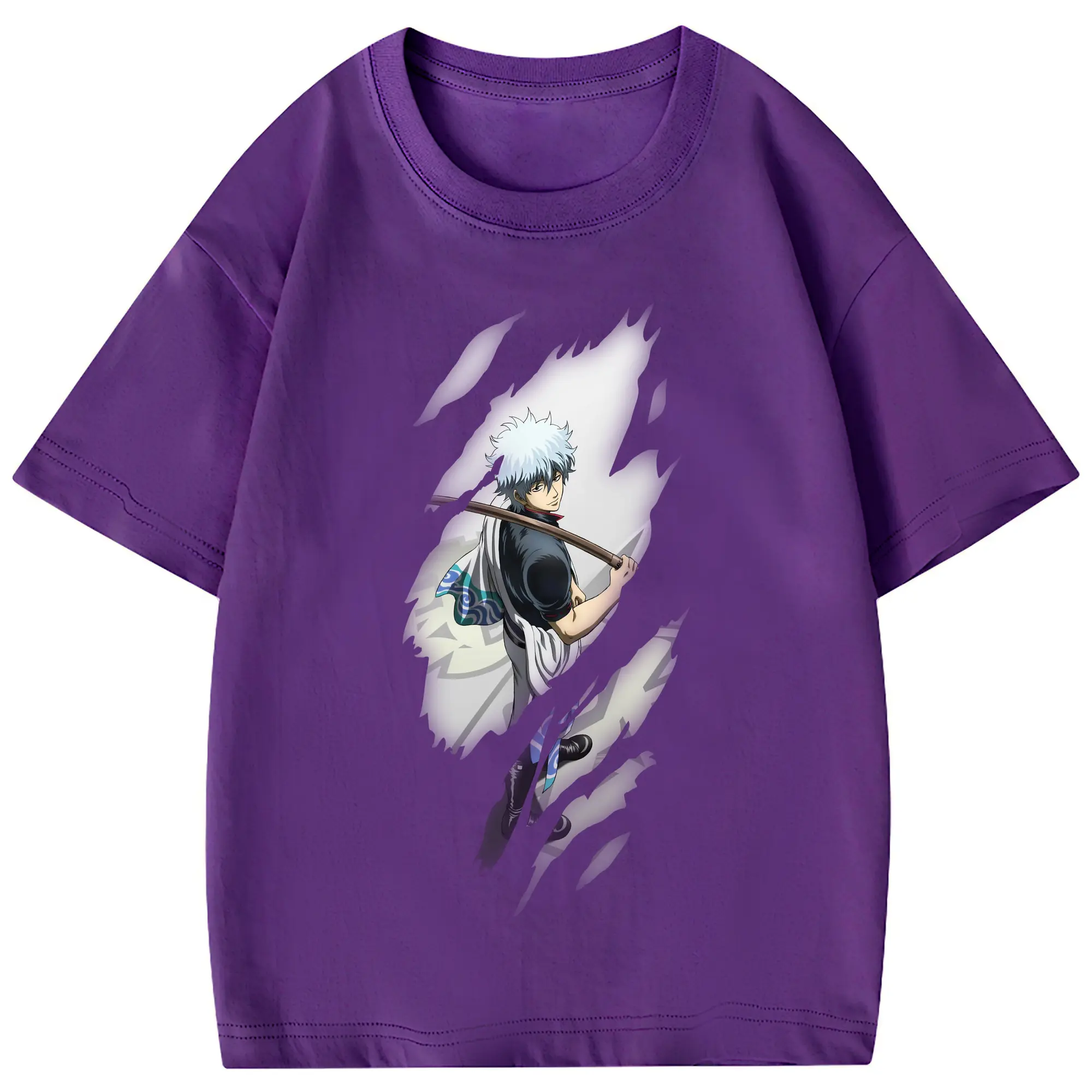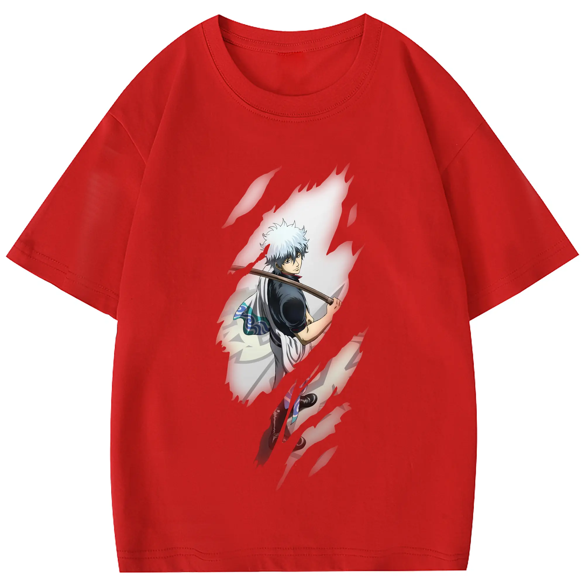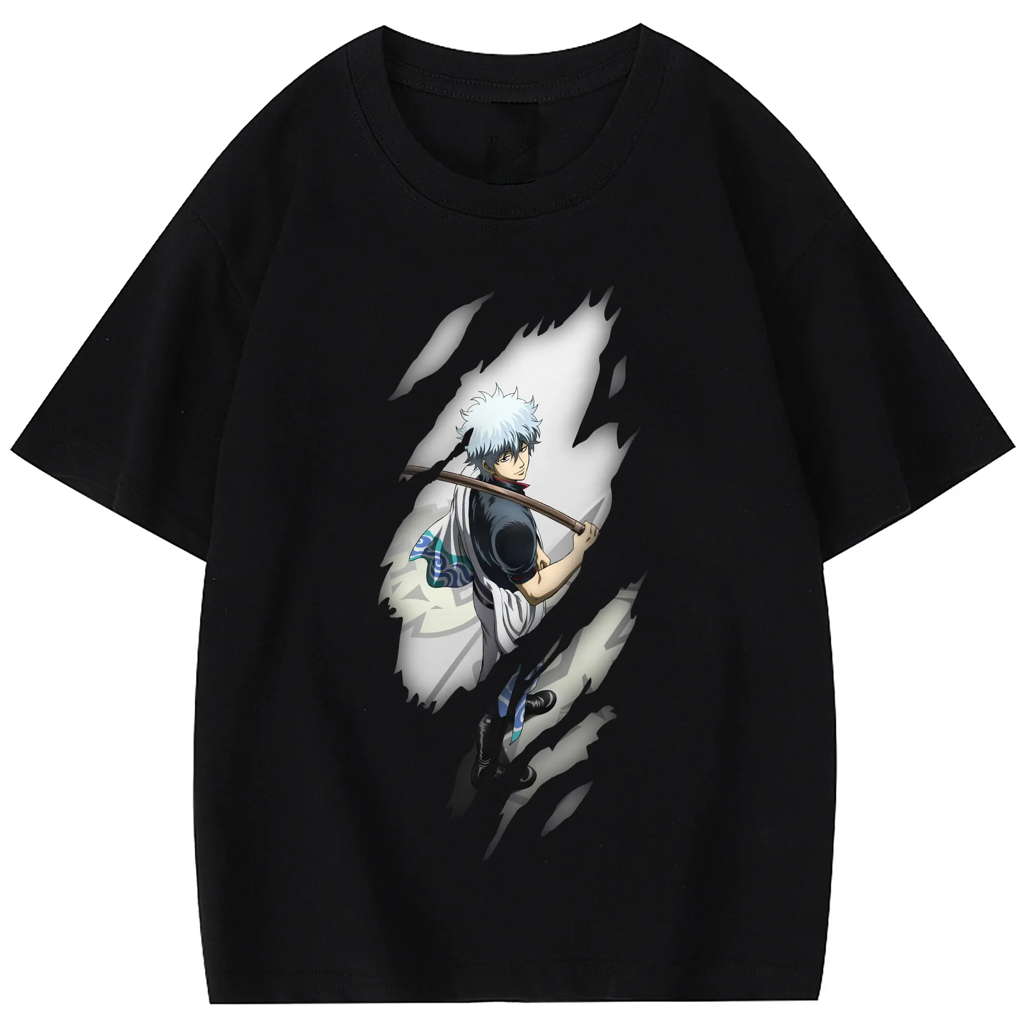 銀魂 グッズ 坂田 銀時 - 綿100% 半袖Tシャツ ・ フロントプリント ・ 快適 通気性 ・ 日常使い 散歩 スポーツ用