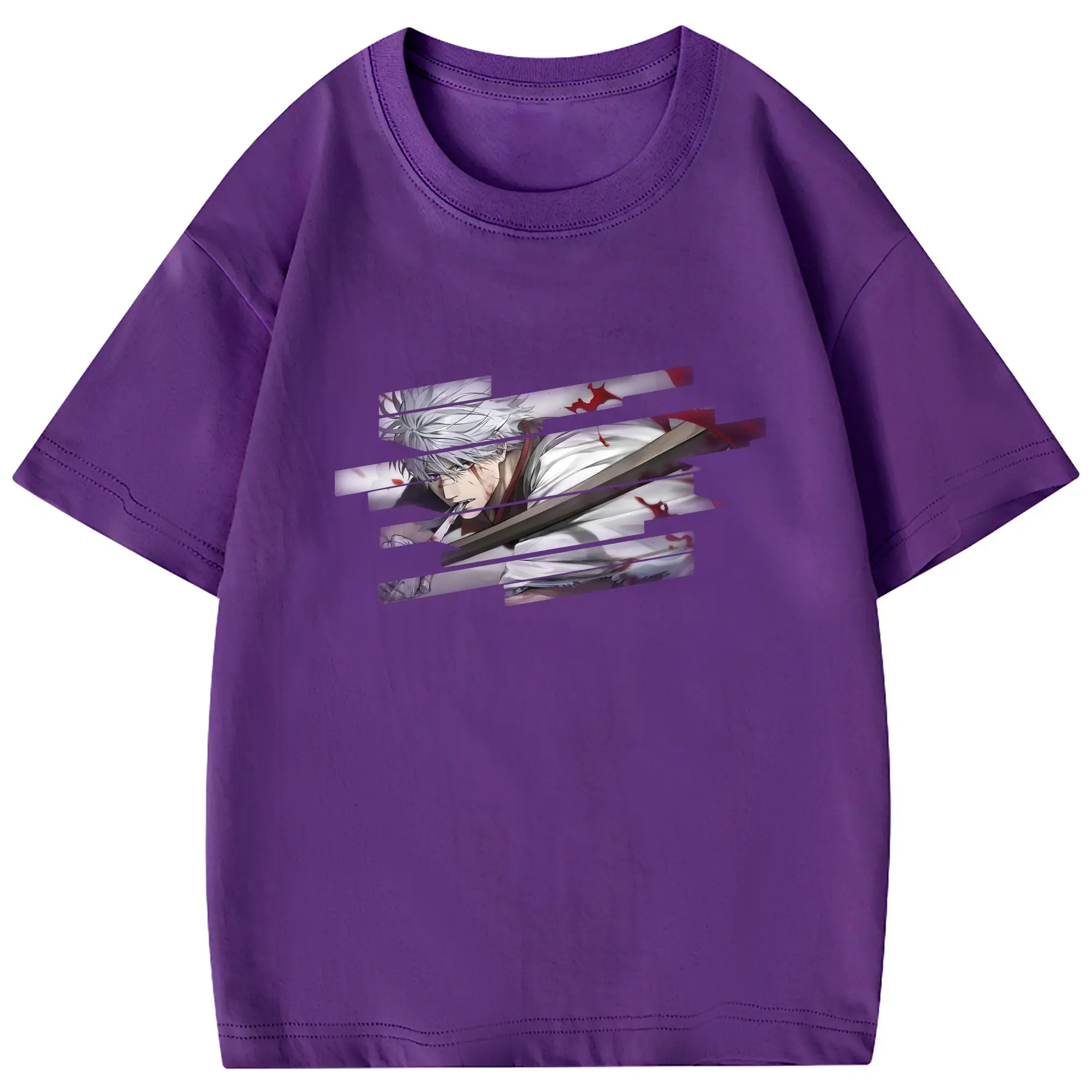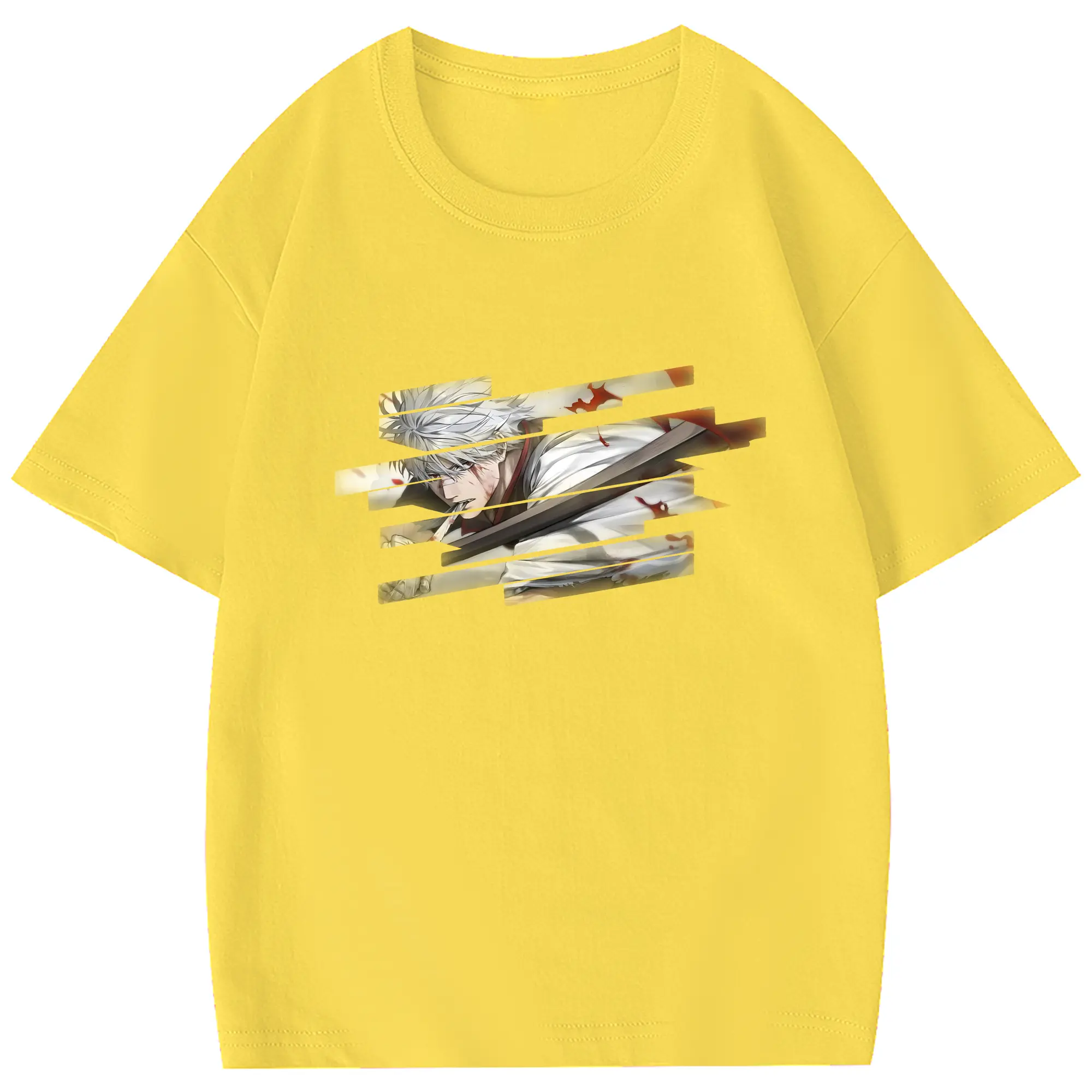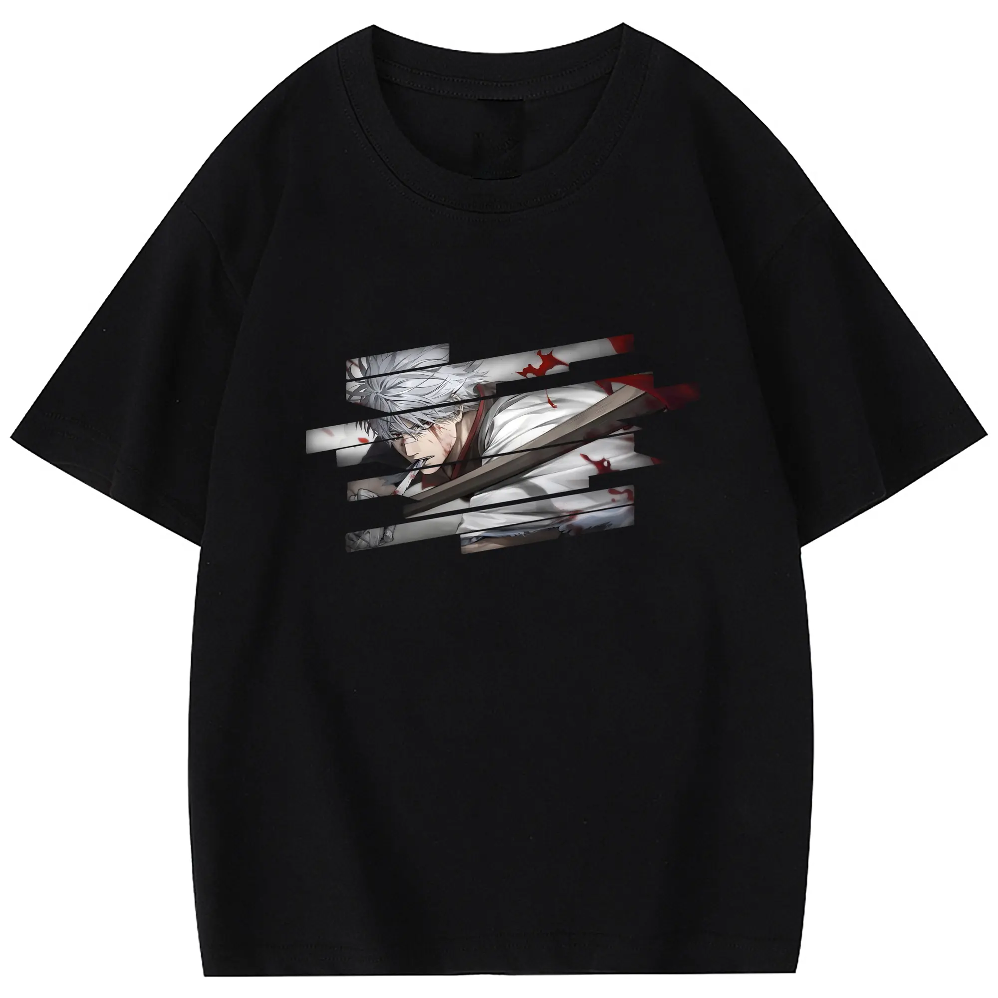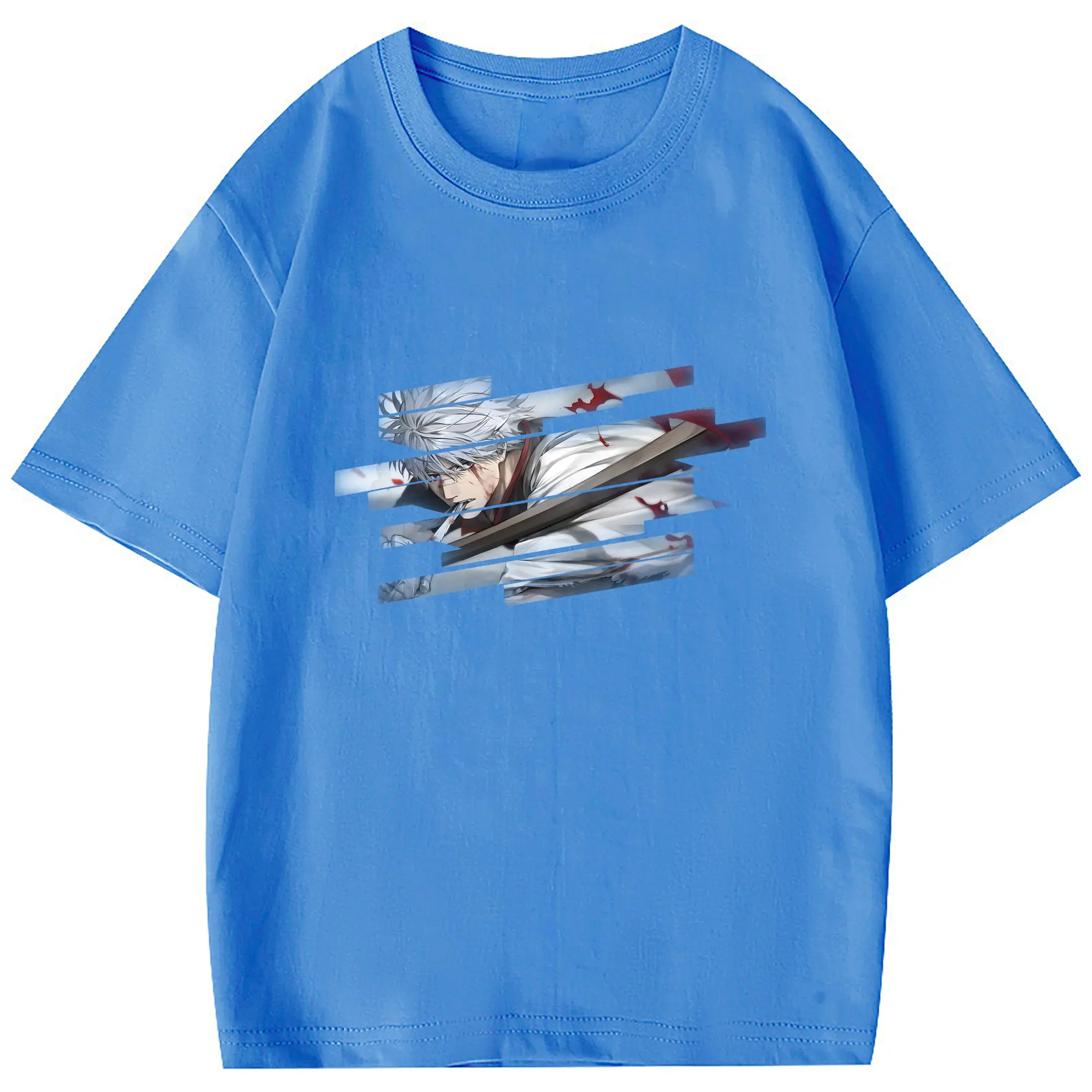 銀魂 グッズ 坂田 銀時 - 綿100% 半袖Tシャツ ・ フロントプリント ・ 快適 通気性 ・ 日常使い 散歩 スポーツ用