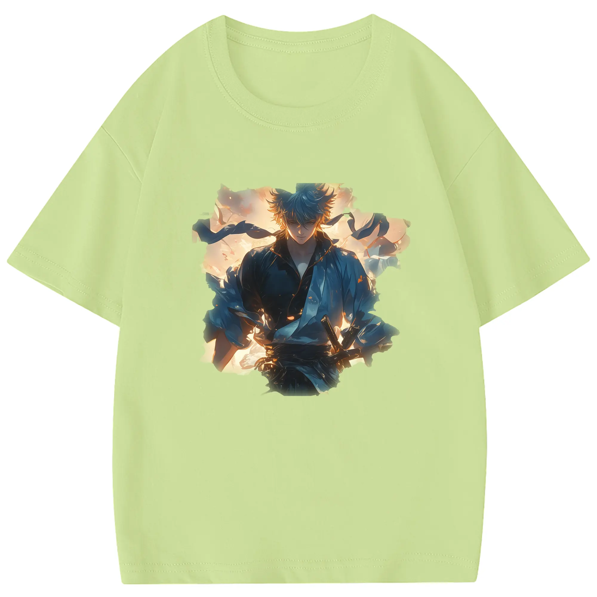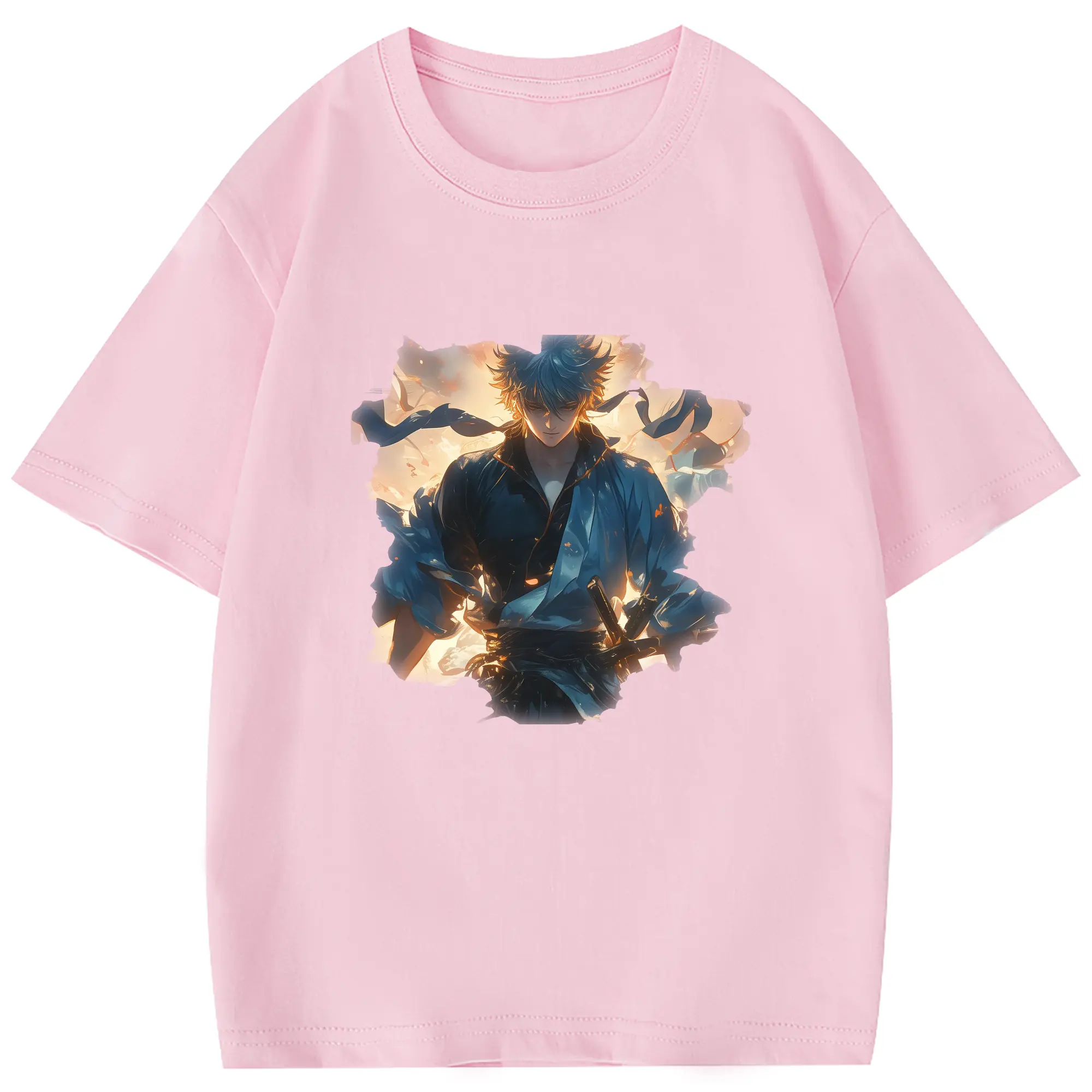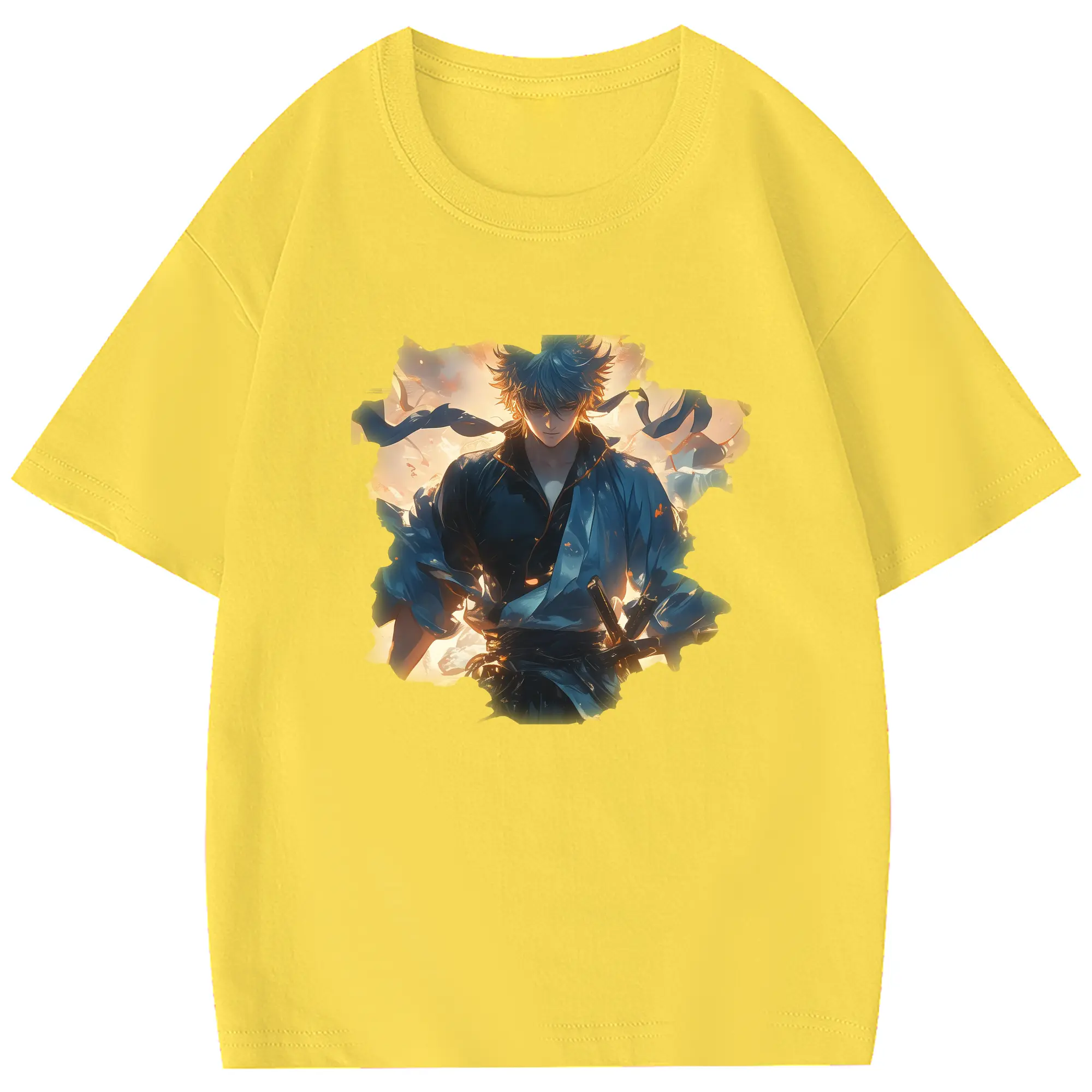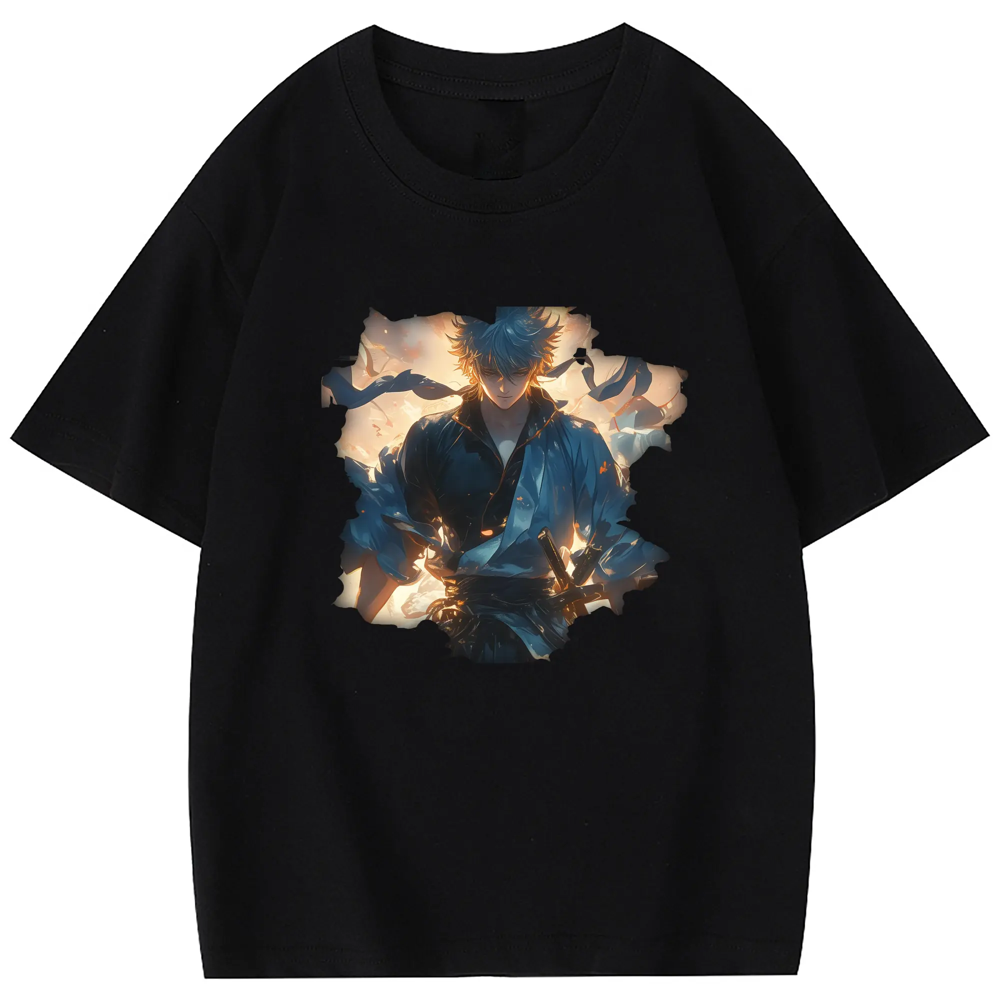 銀魂 グッズ 坂田 銀時 - 綿100% 半袖Tシャツ ・ フロントプリント ・ 快適 通気性 ・ 日常使い 散歩 スポーツ用