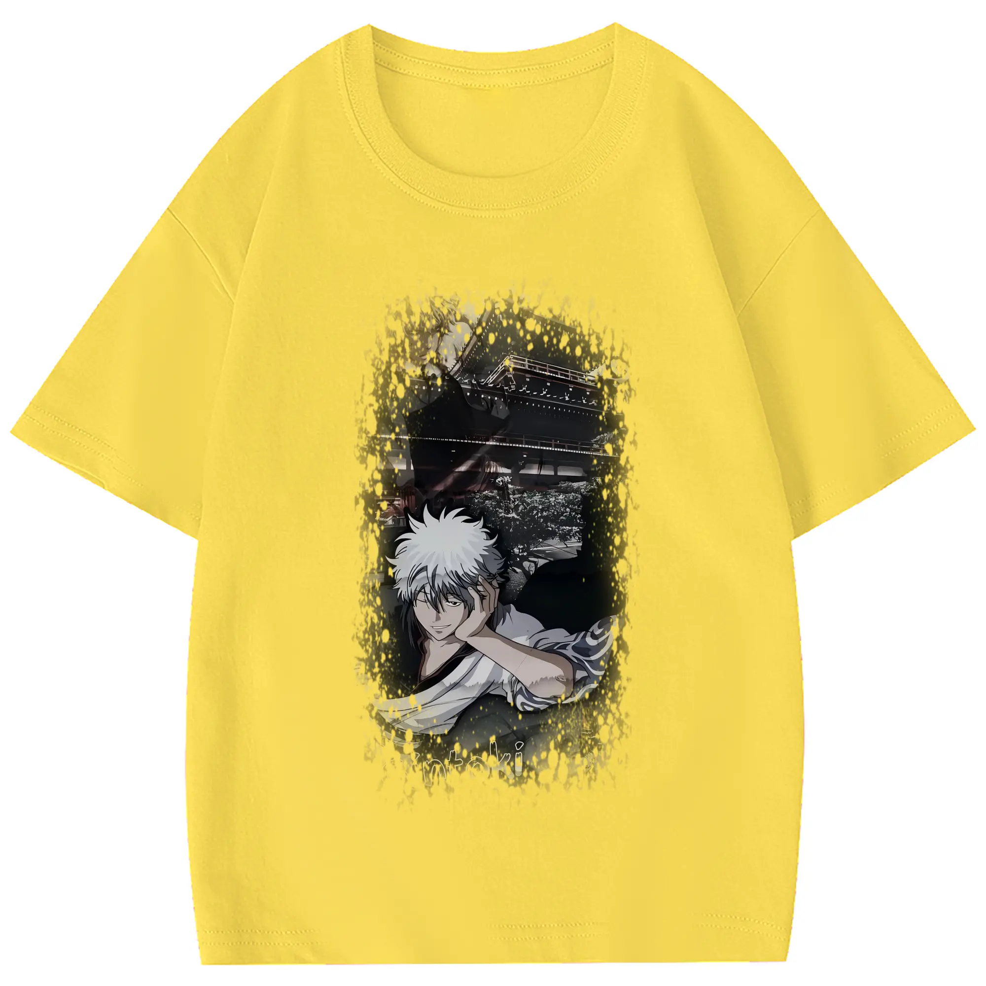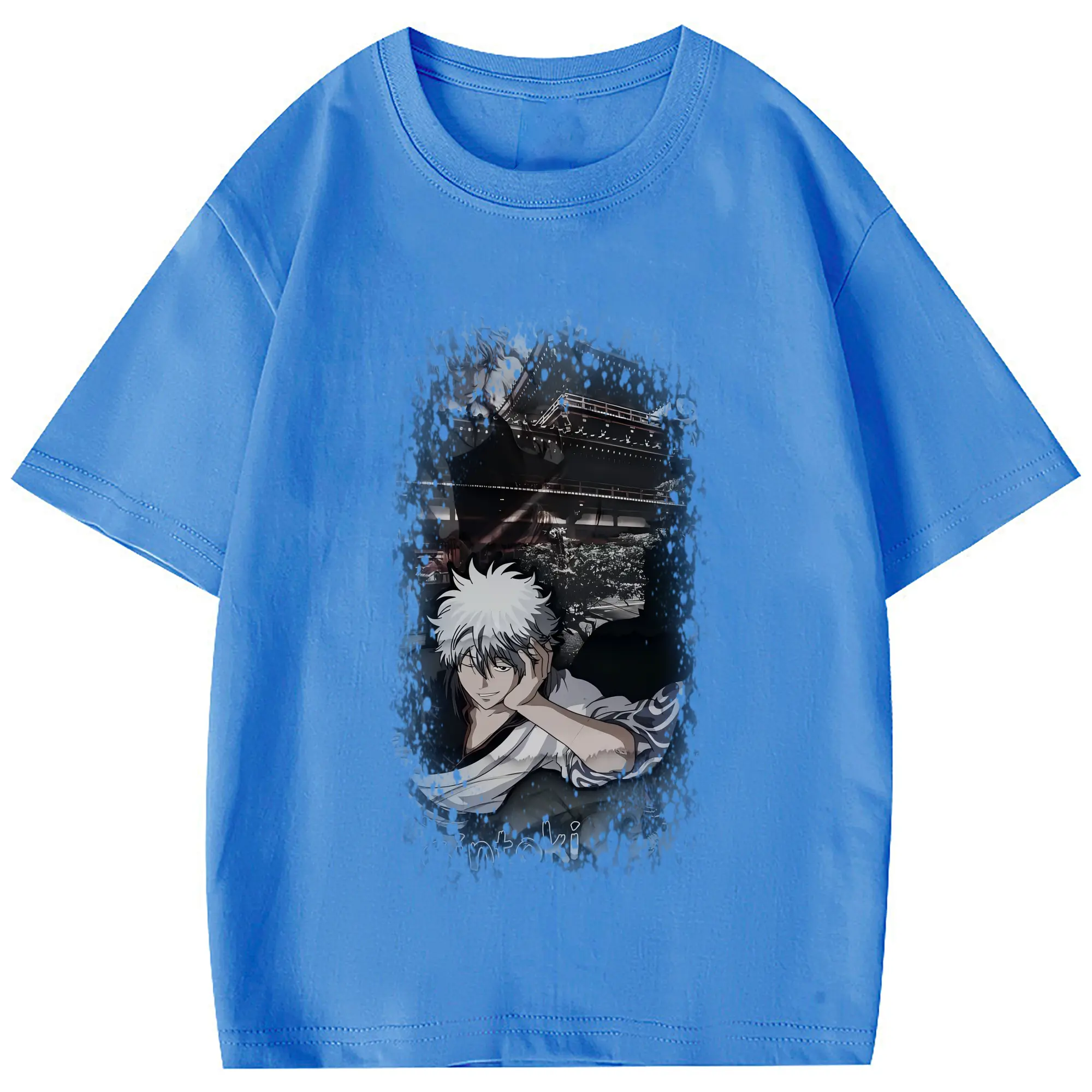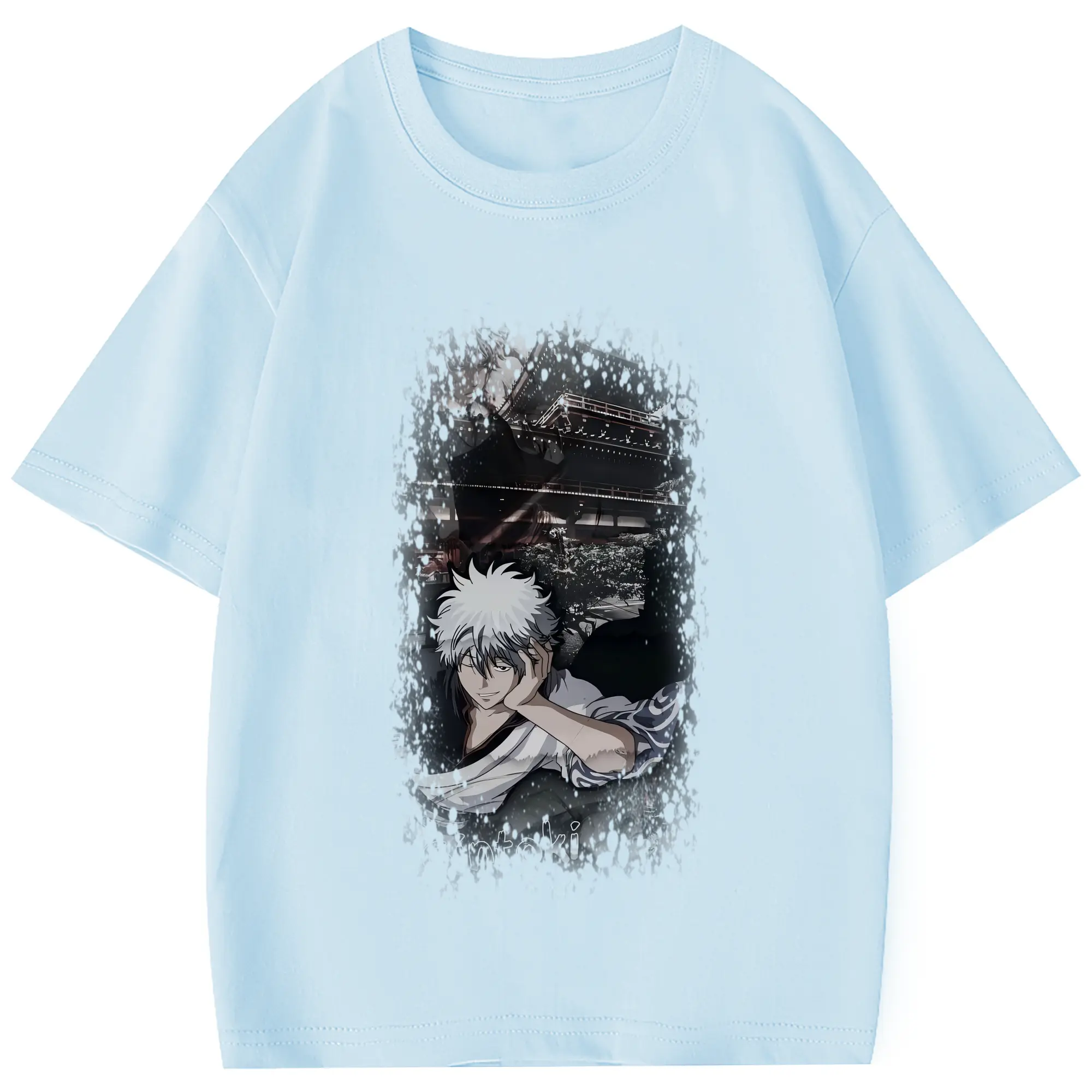 銀魂 グッズ 坂田 銀時 - 綿100% 半袖Tシャツ ・ フロントプリント ・ 快適 通気性 ・ 日常使い 散歩 スポーツ用