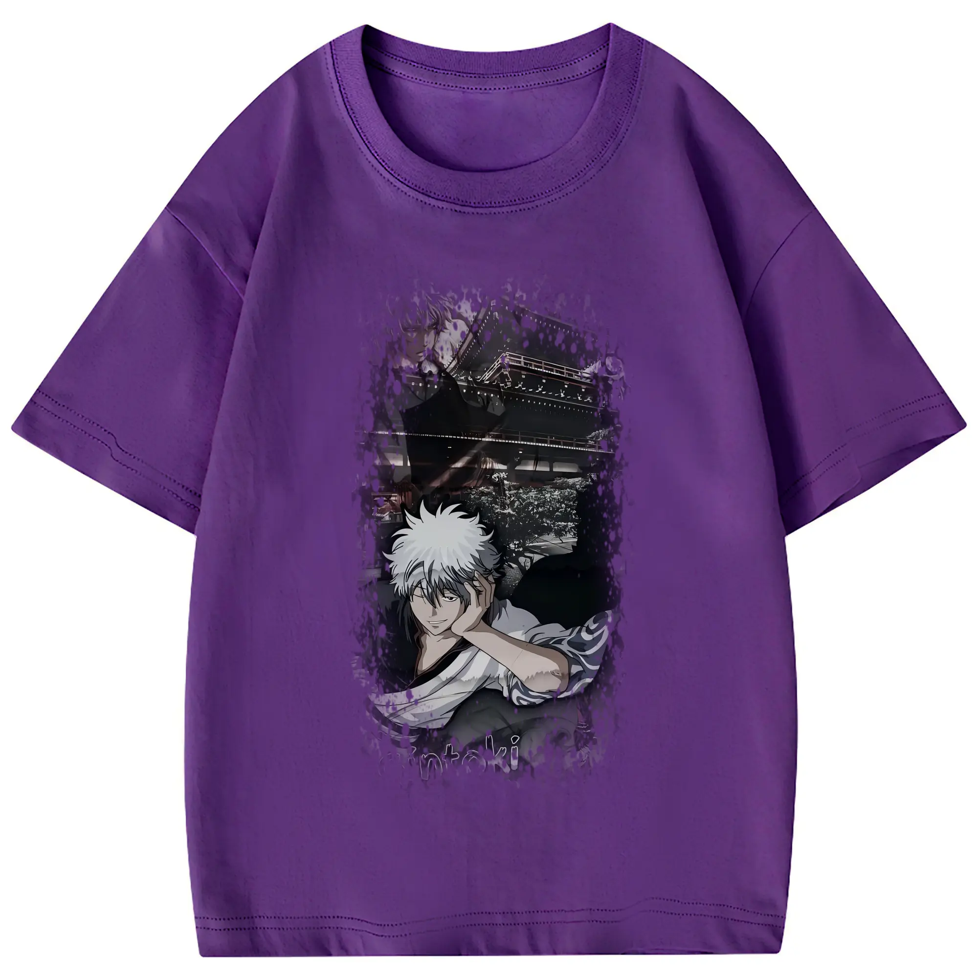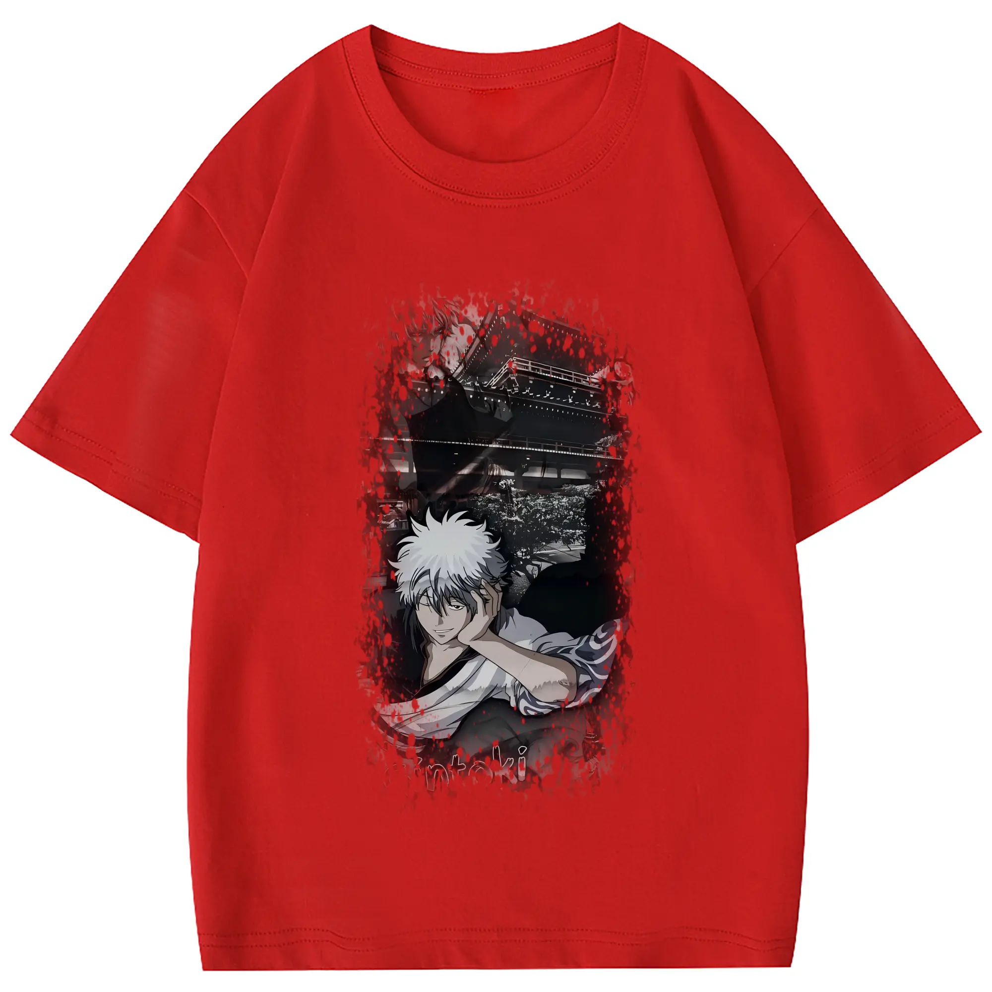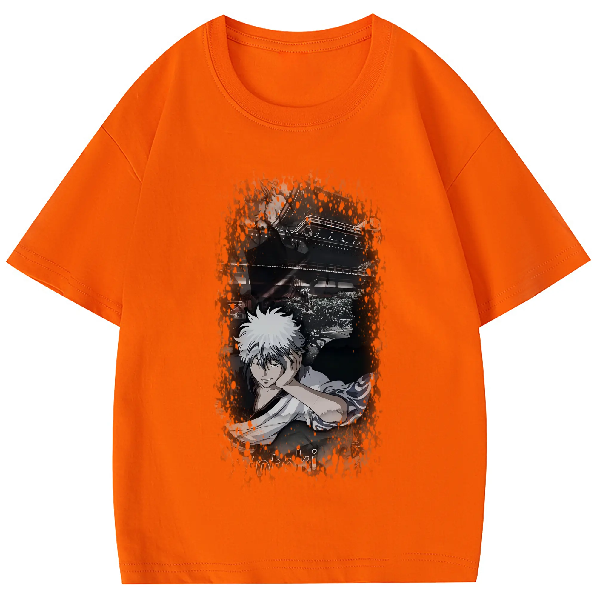 銀魂 グッズ 坂田 銀時 - 綿100% 半袖Tシャツ ・ フロントプリント ・ 快適 通気性 ・ 日常使い 散歩 スポーツ用