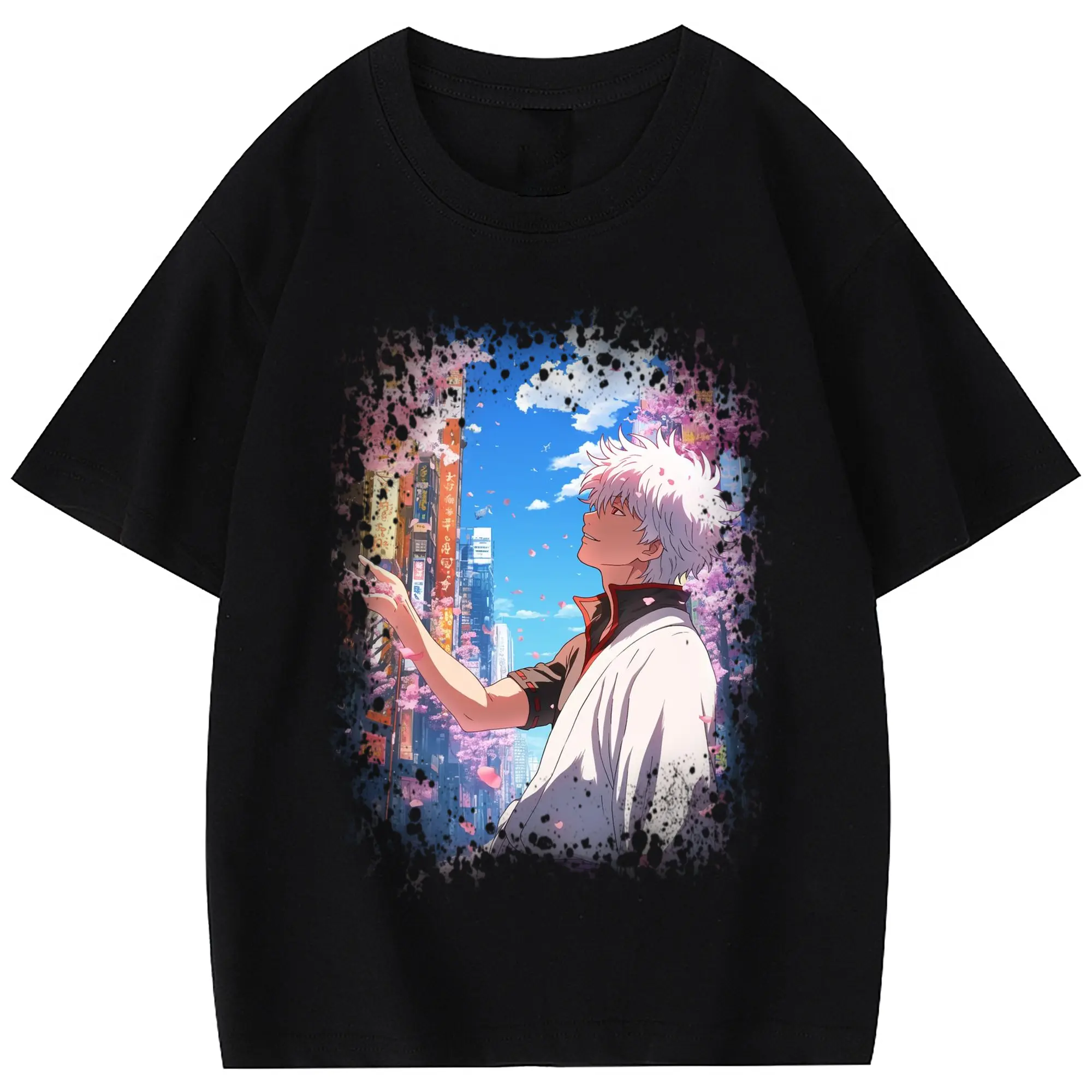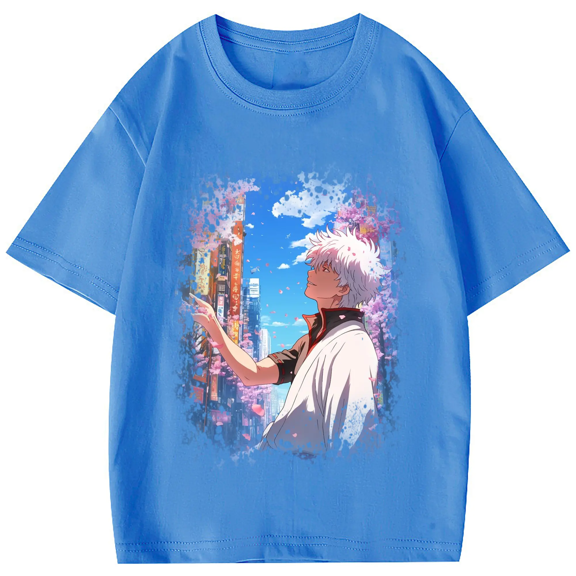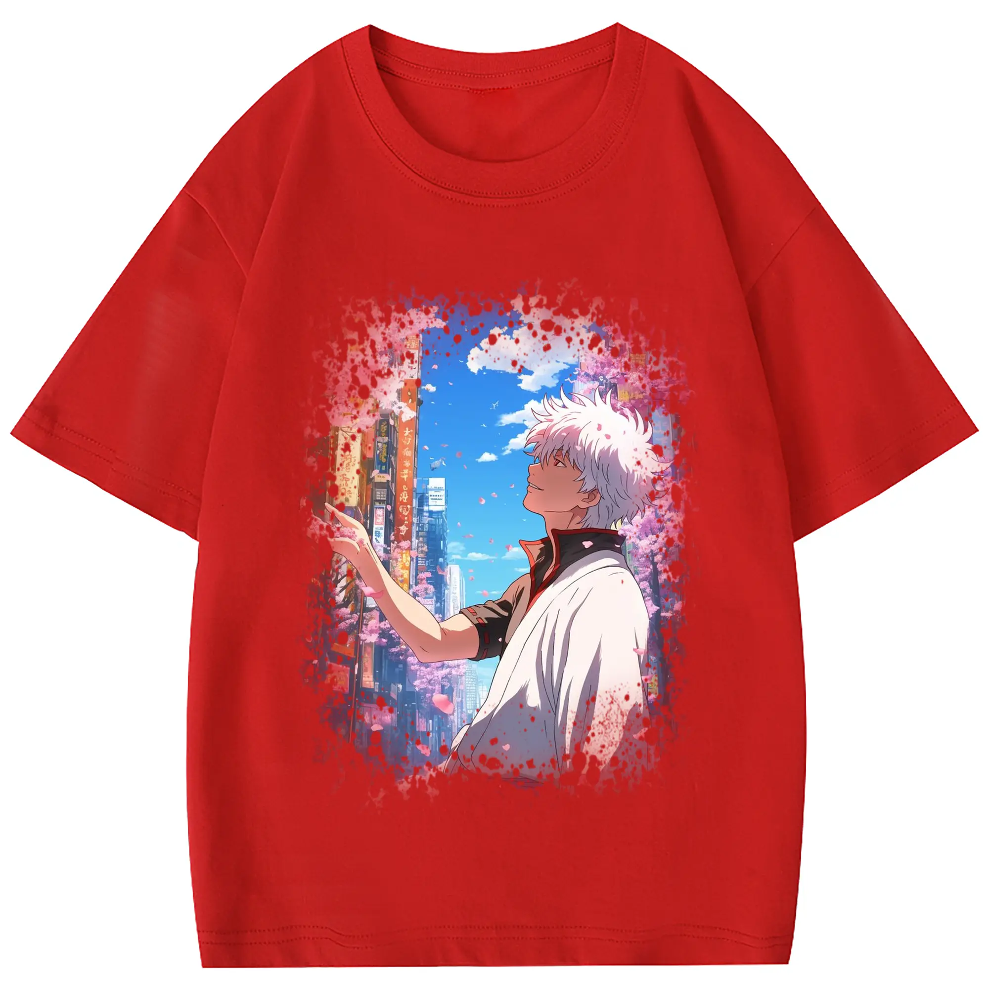 銀魂 グッズ 坂田 銀時 - 綿100% 半袖Tシャツ ・ フロントプリント ・ 快適 通気性 ・ 日常使い 散歩 スポーツ用