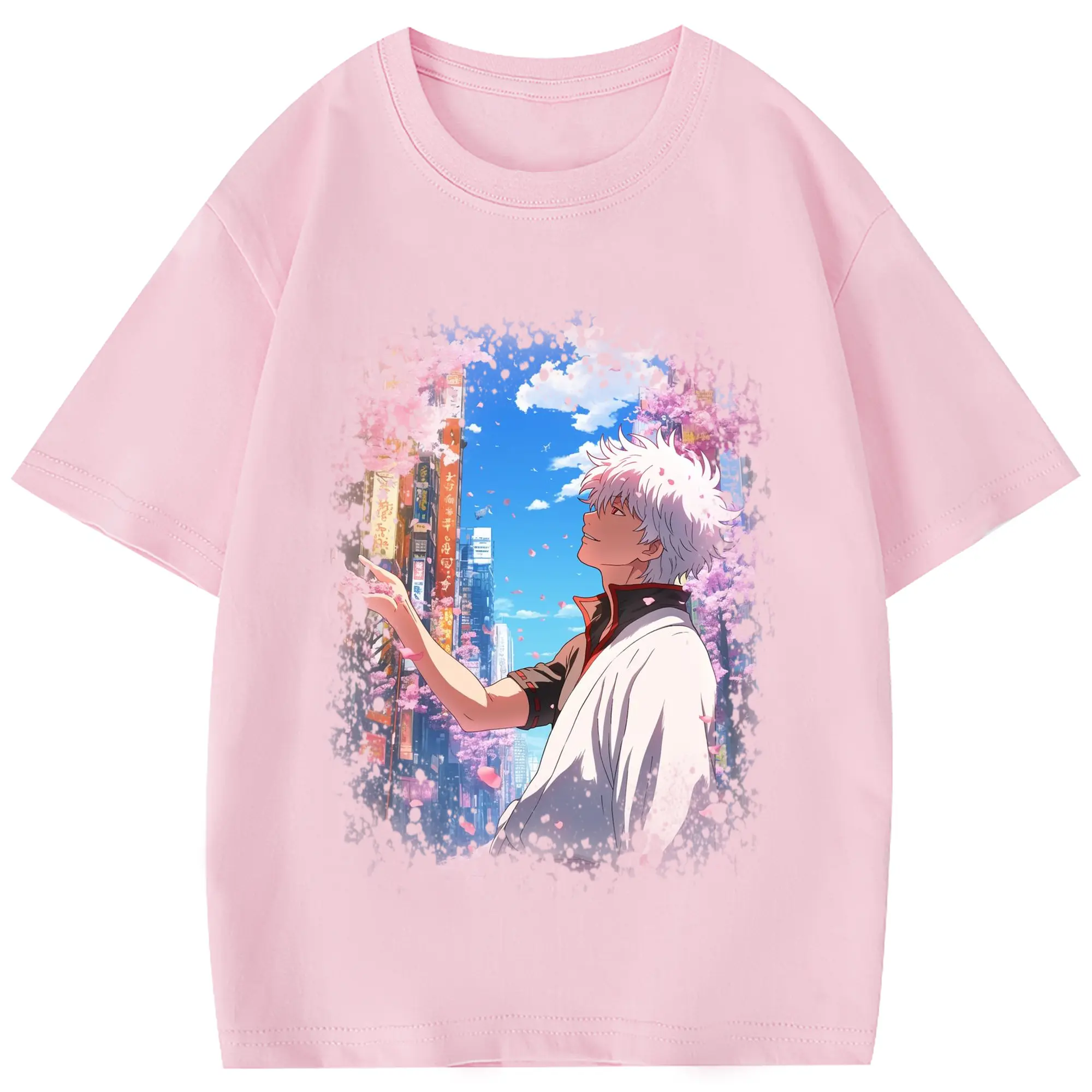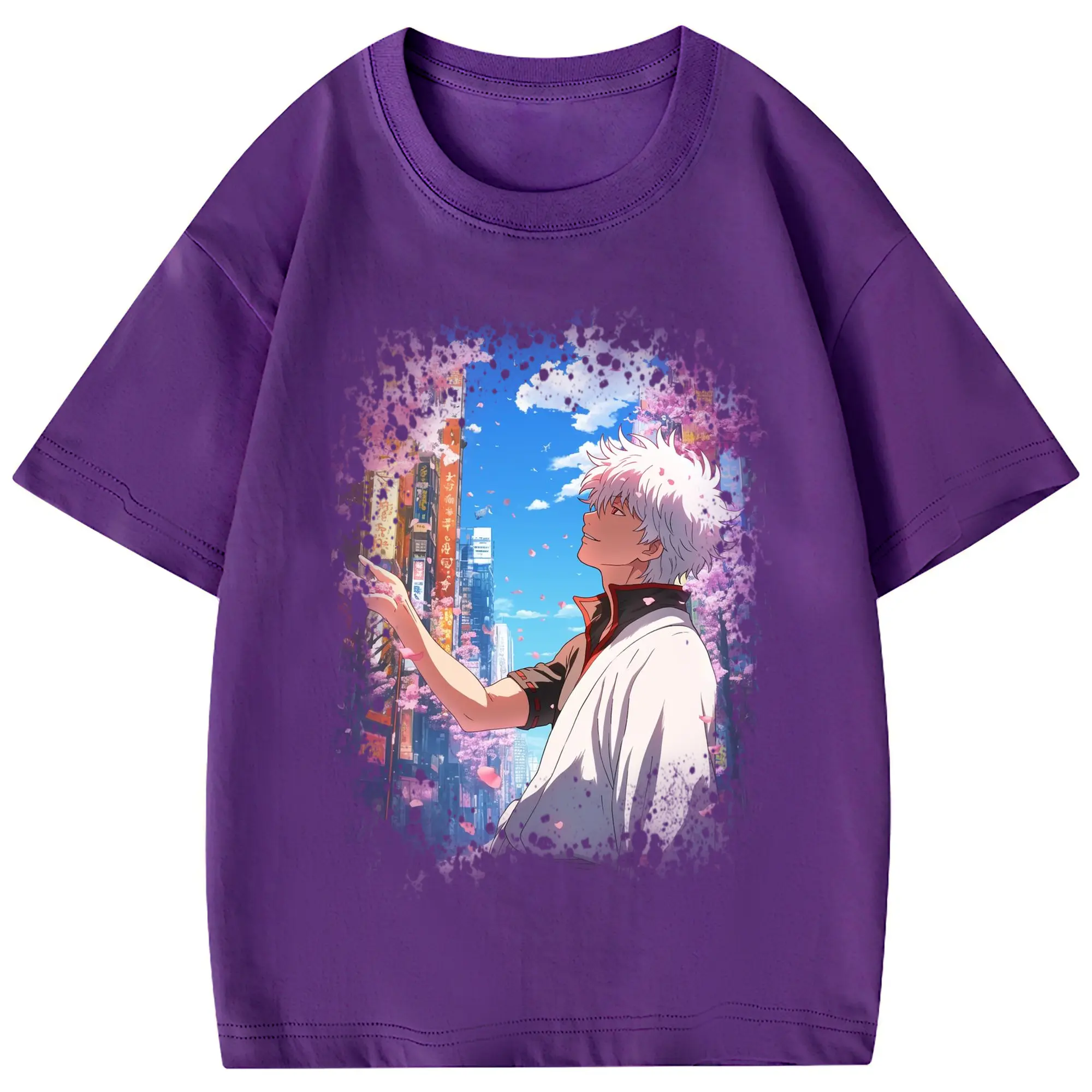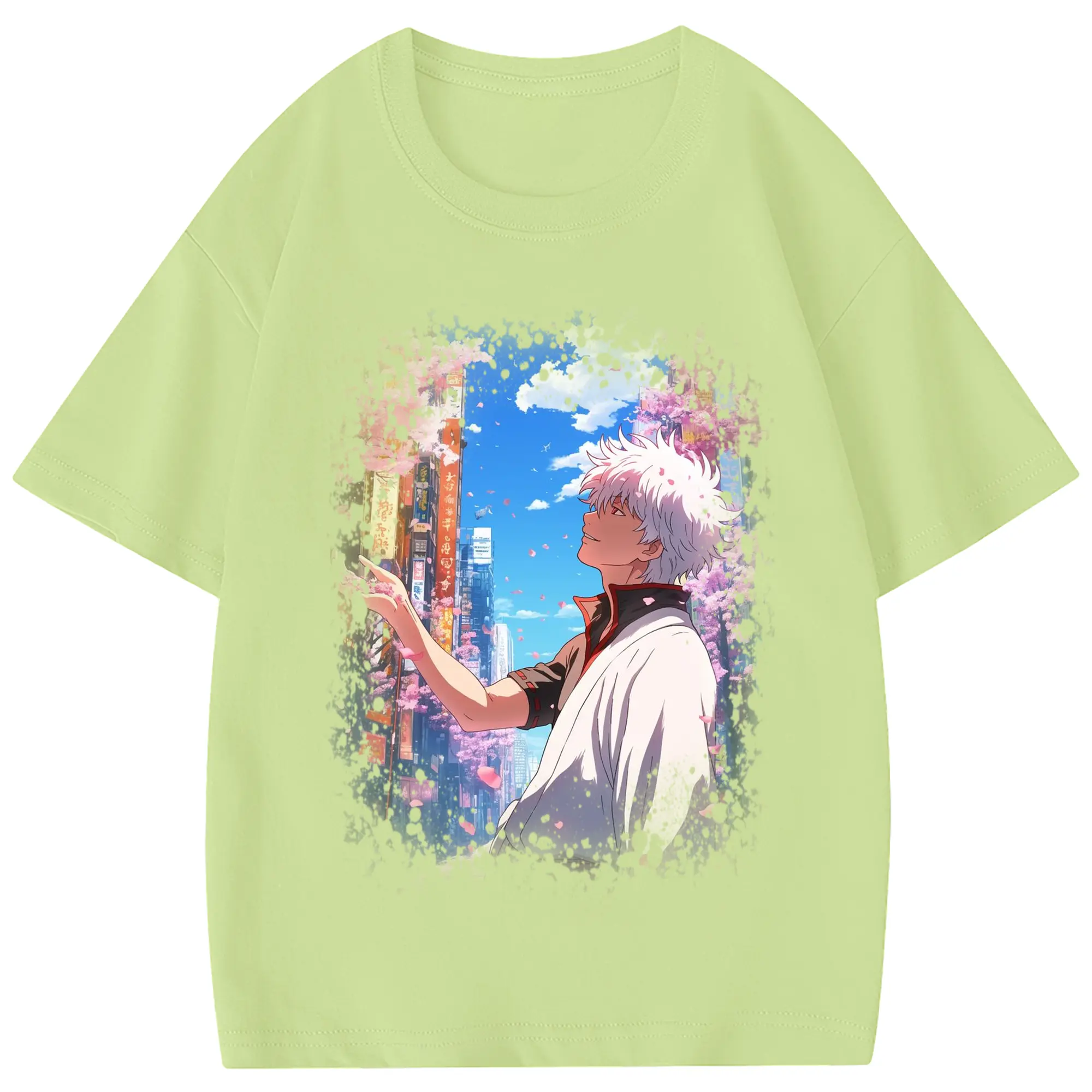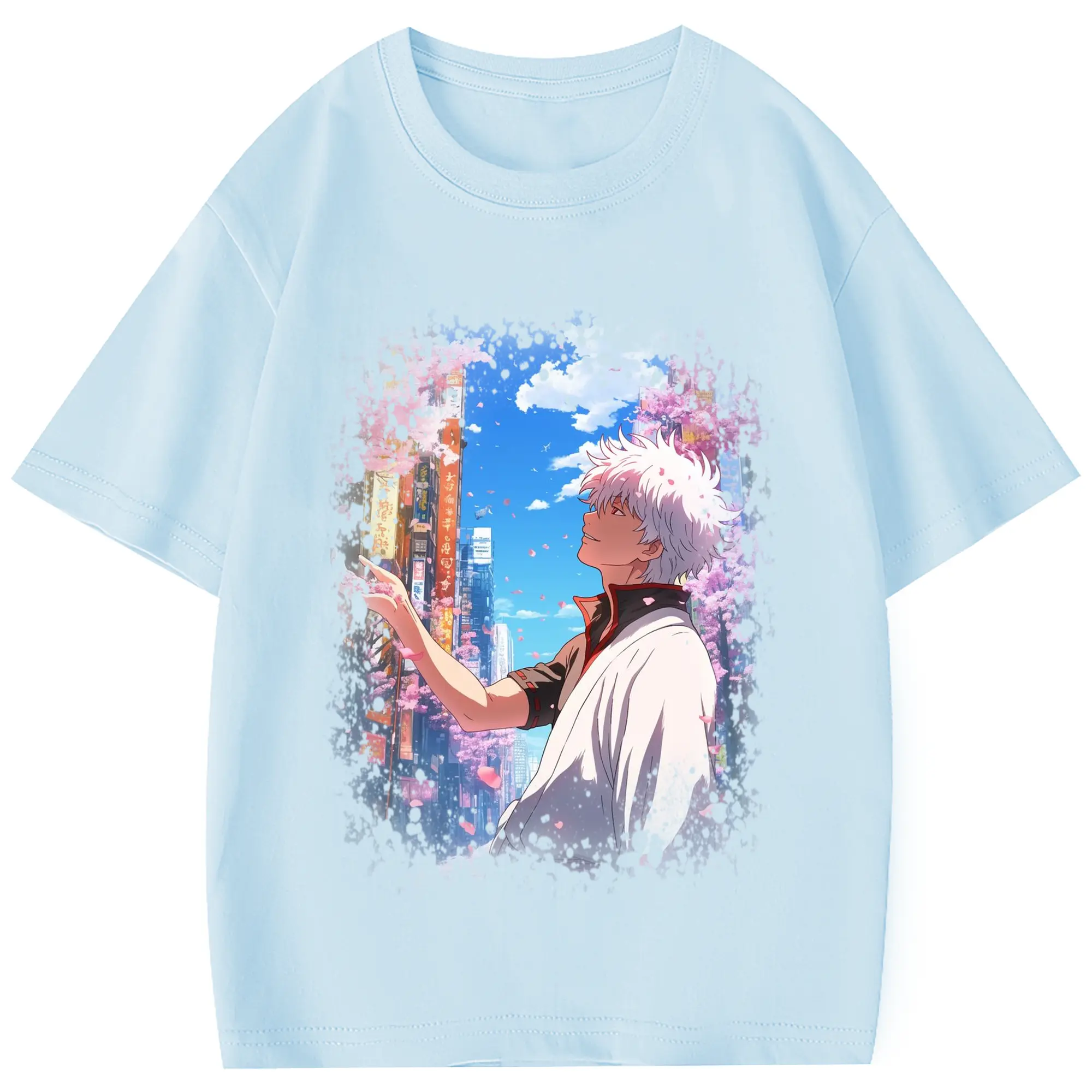 銀魂 グッズ 坂田 銀時 - 綿100% 半袖Tシャツ ・ フロントプリント ・ 快適 通気性 ・ 日常使い 散歩 スポーツ用