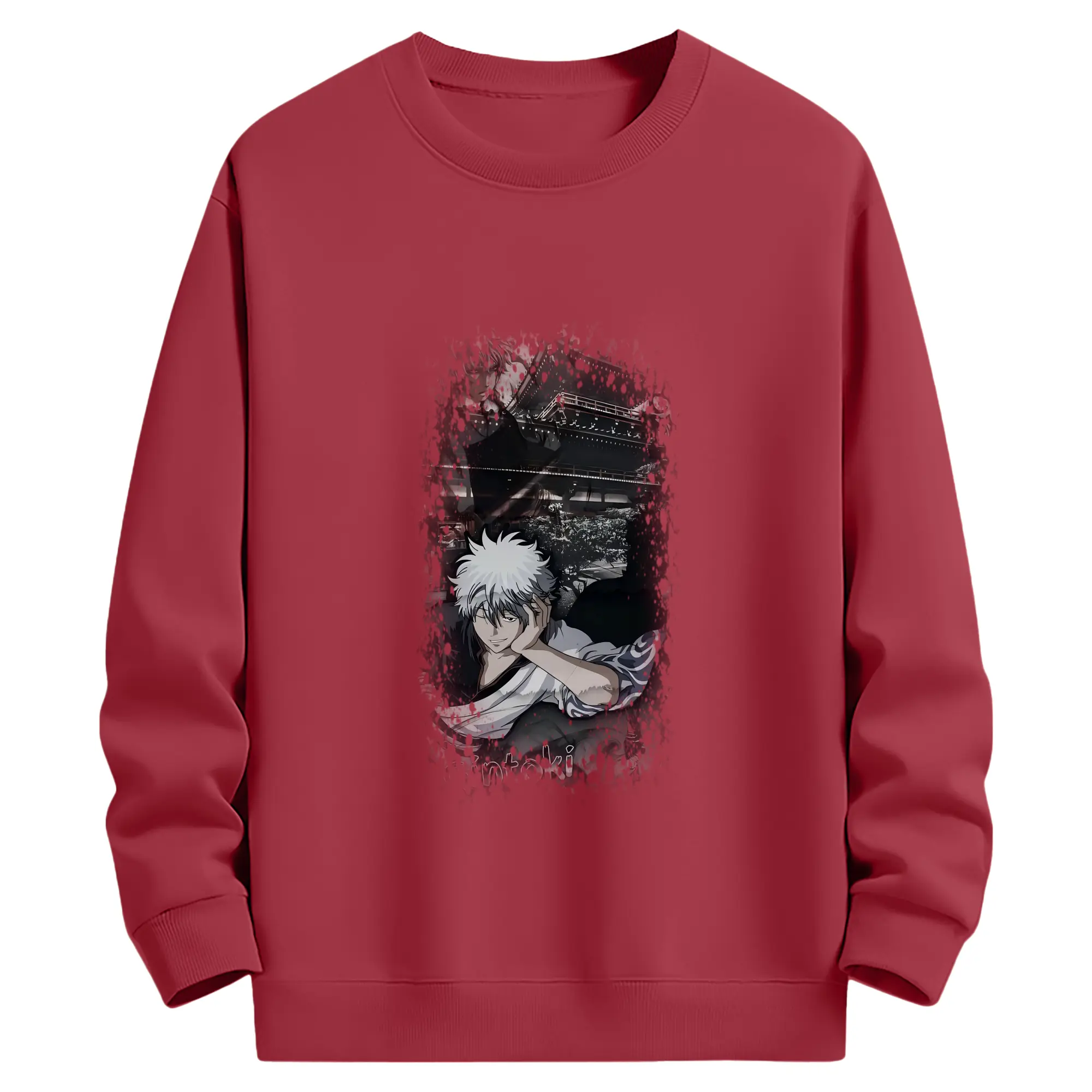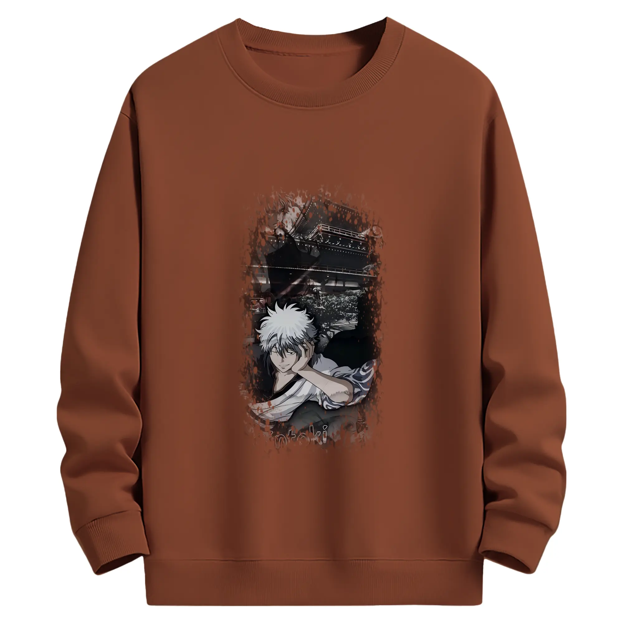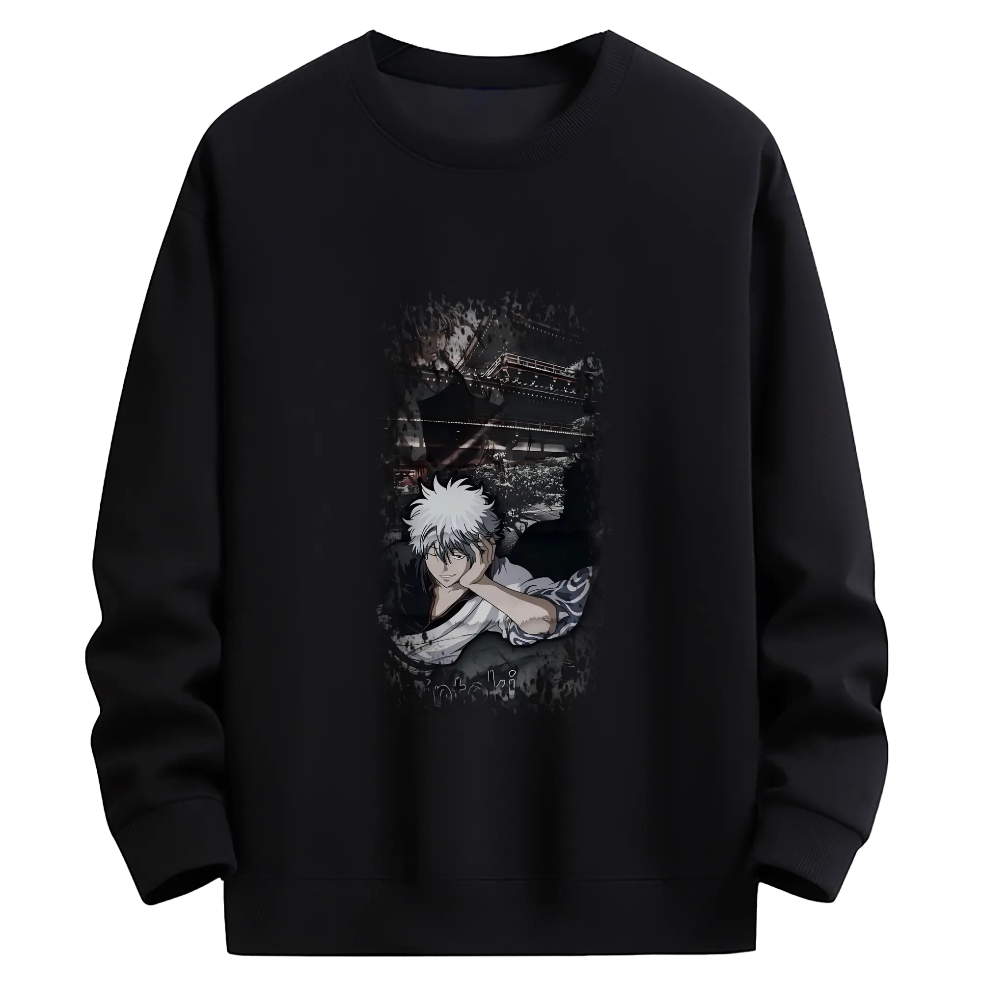 銀魂 グッズ 坂田 銀時 - 薄手 クルーネック スウェット 裏毛260g · ポリエステル 春秋向け カジュアル 男女兼用 · トレーナー デイリー スポーツ 散歩に最適