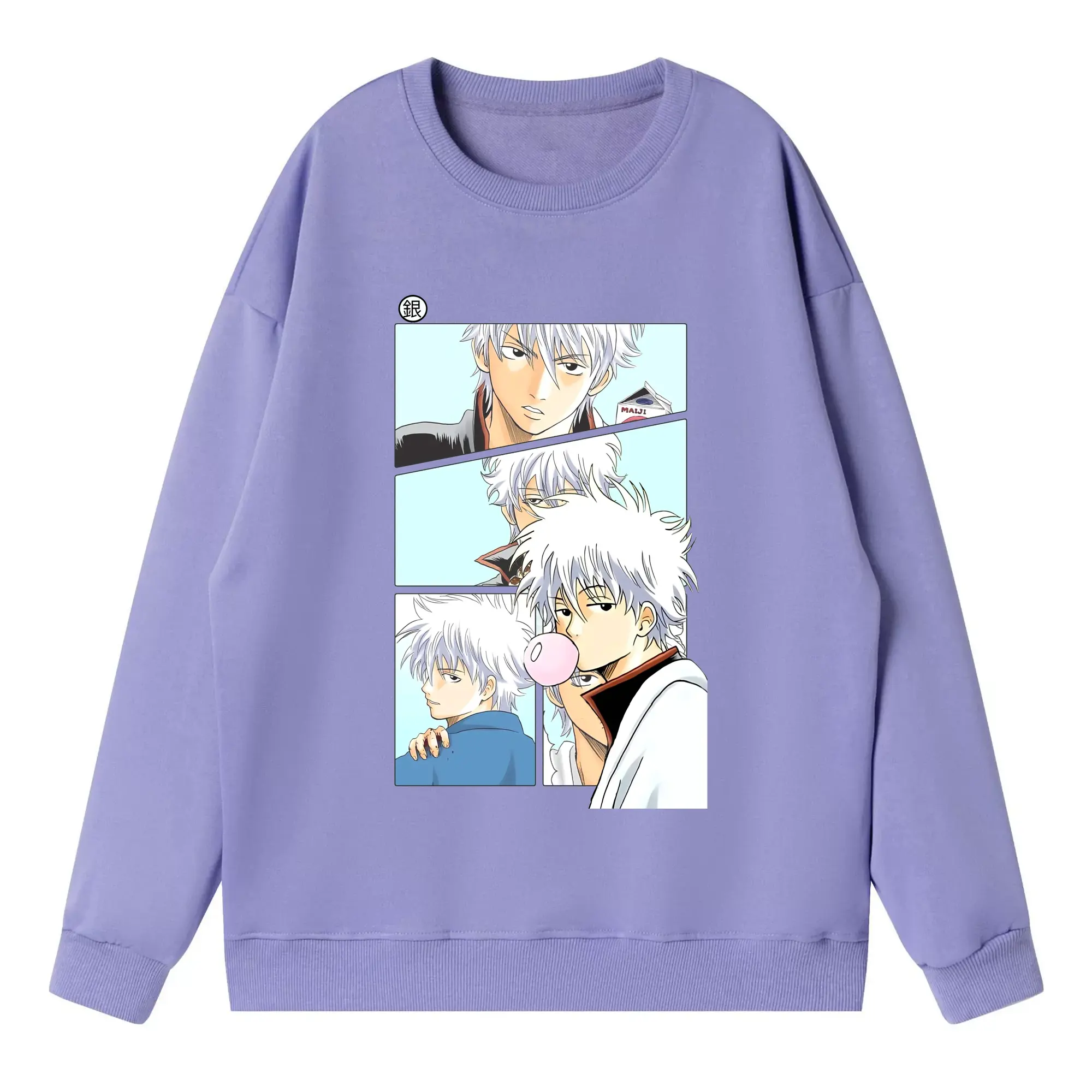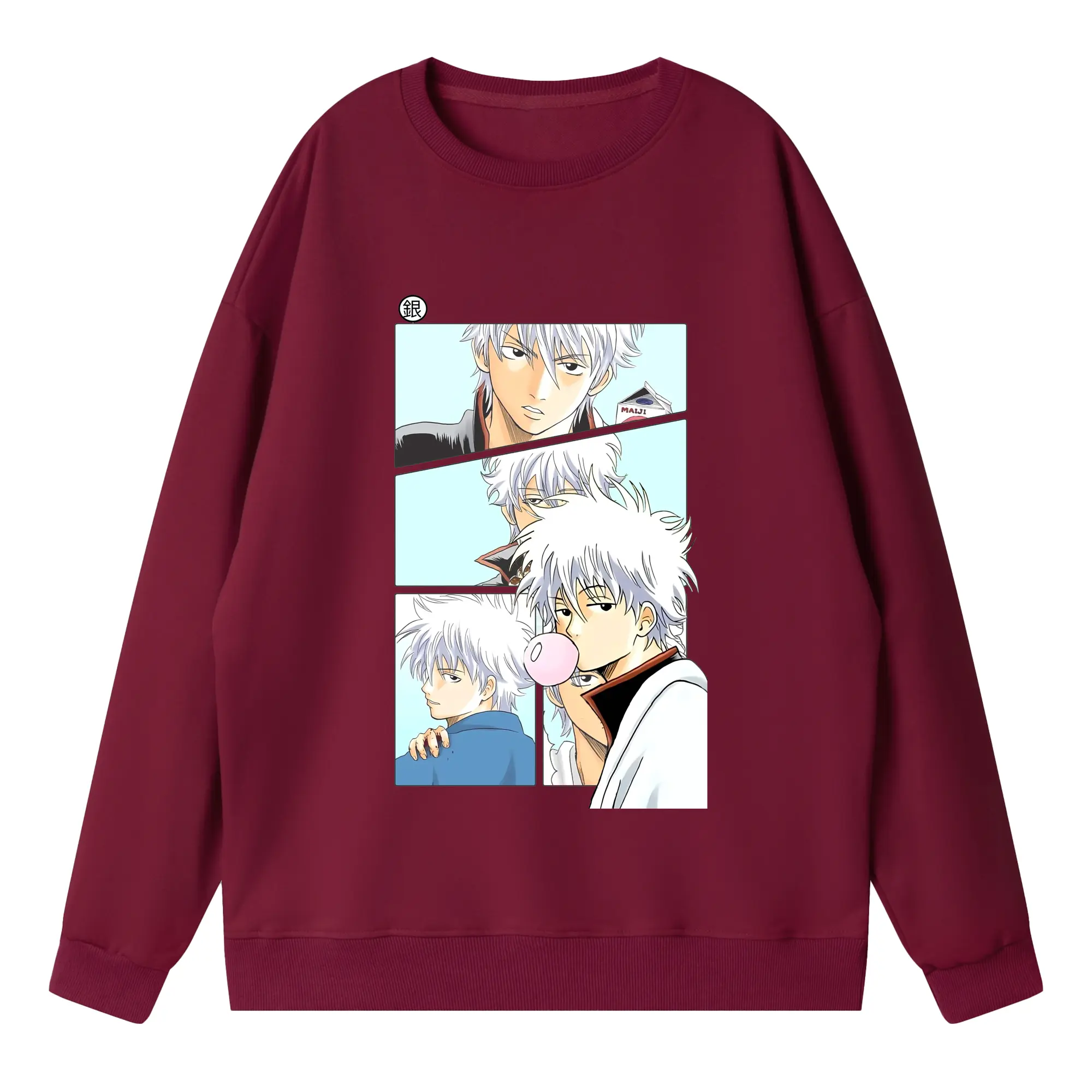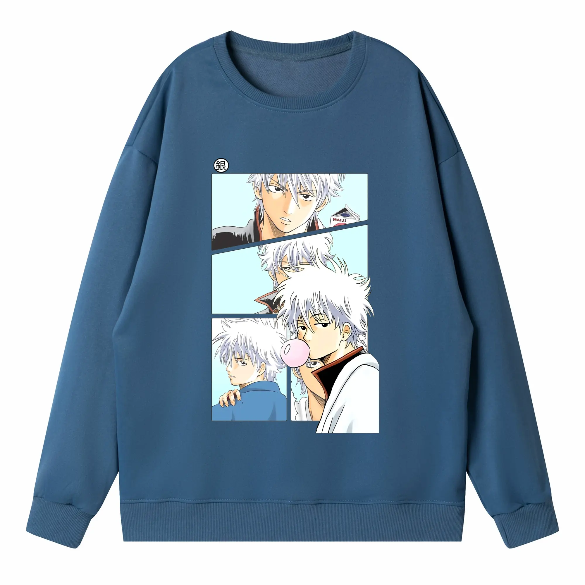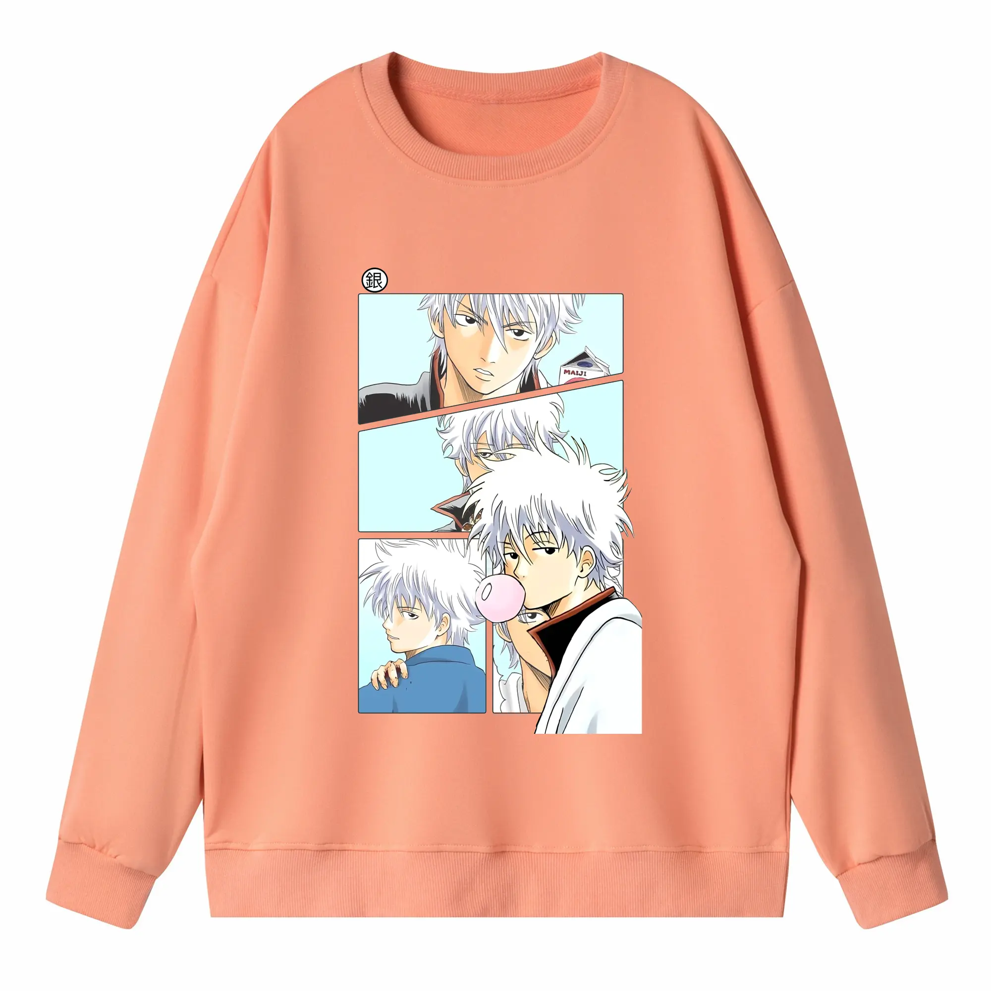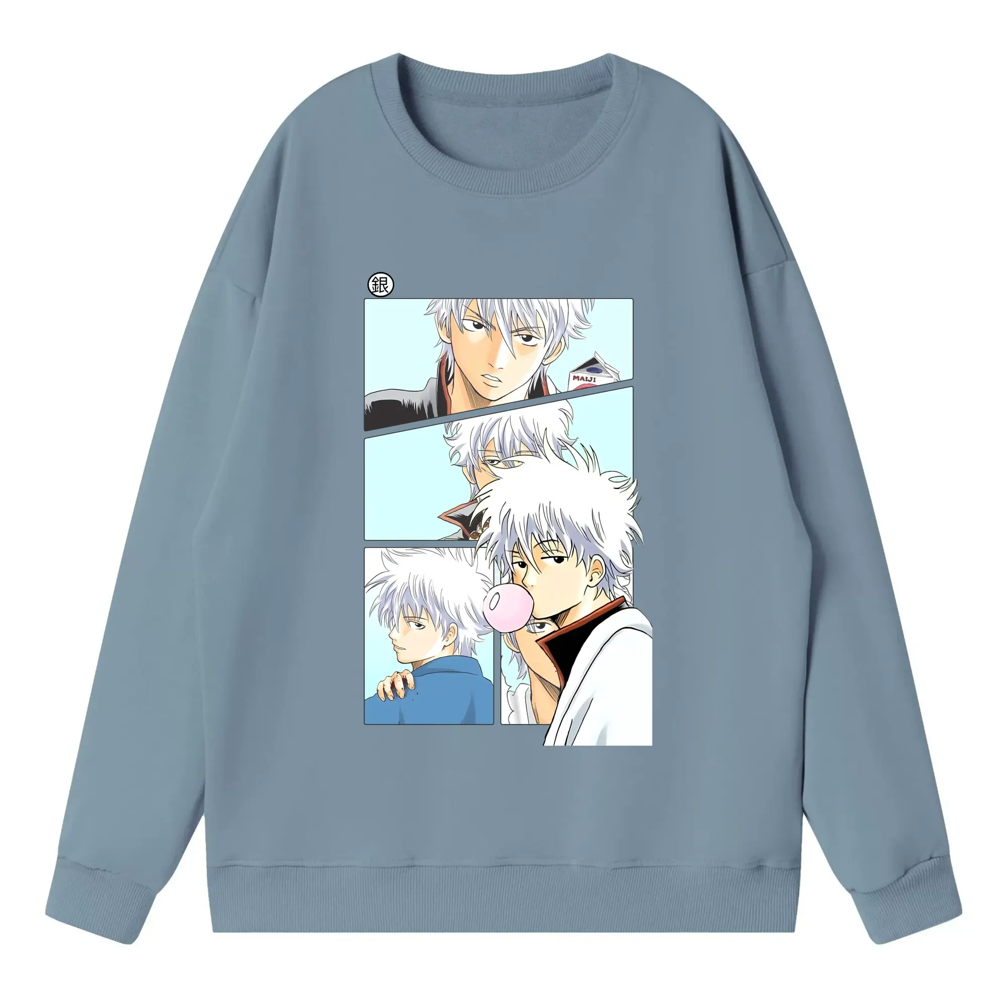 銀魂 グッズ 坂田 銀時 - 高品質 クルーネック スウェット ・ コットン59% ポリエステル41% ・ ユニセックス 長袖 トレーナー ・ カジュアル デイリー スポーツ 散歩用
