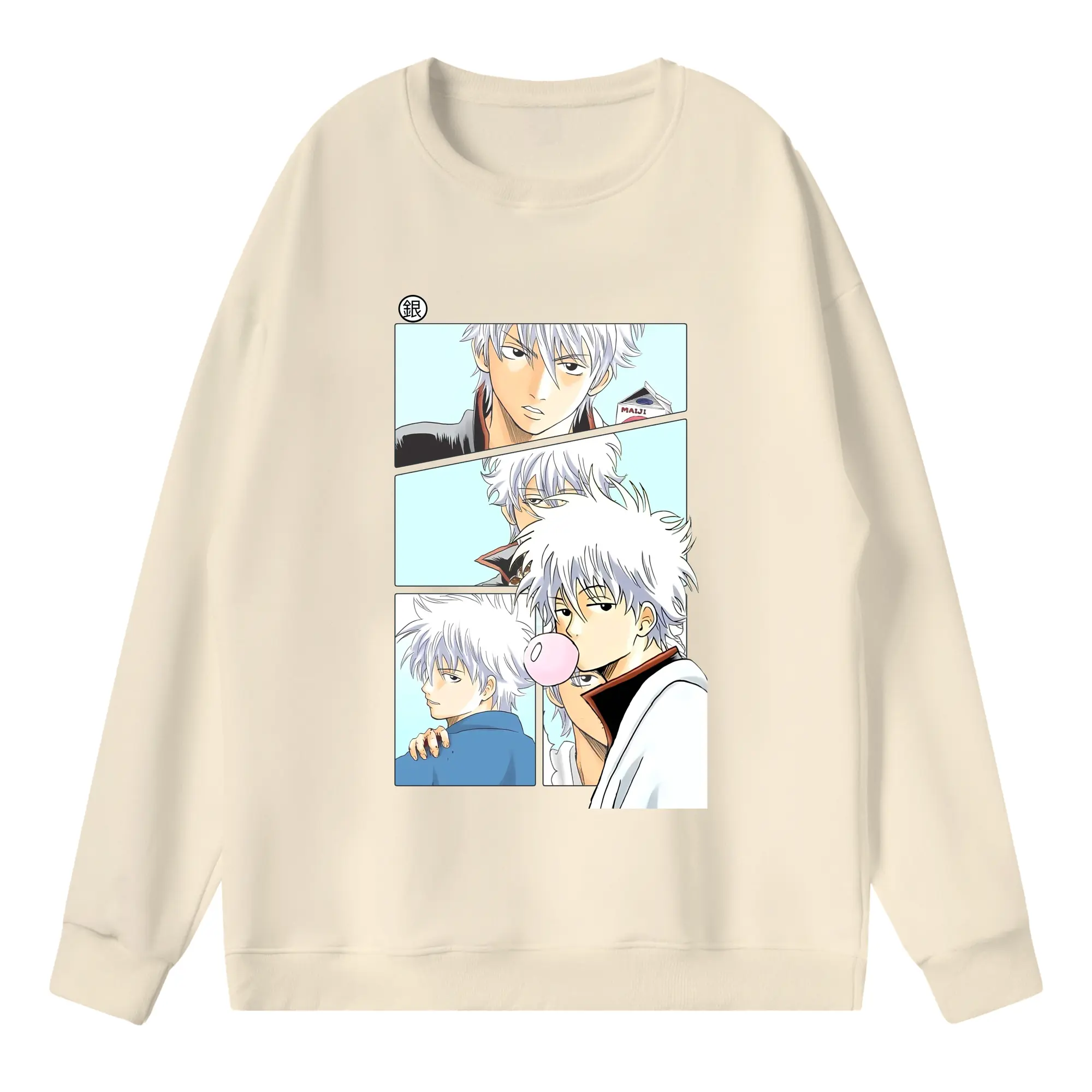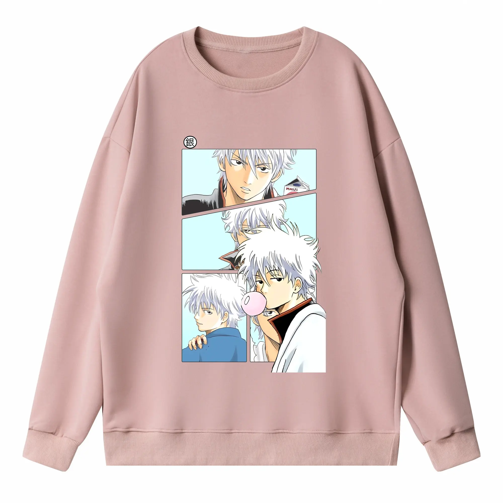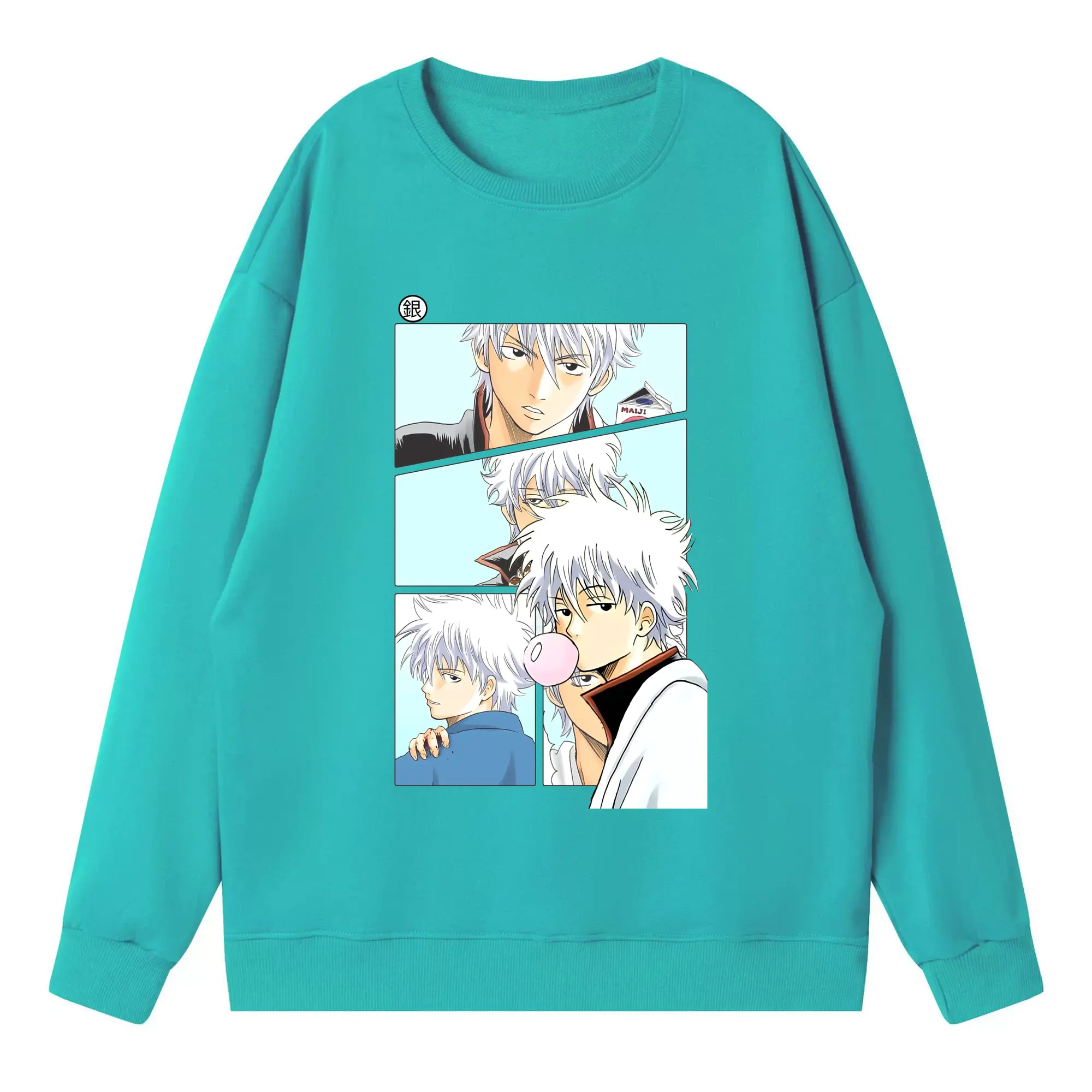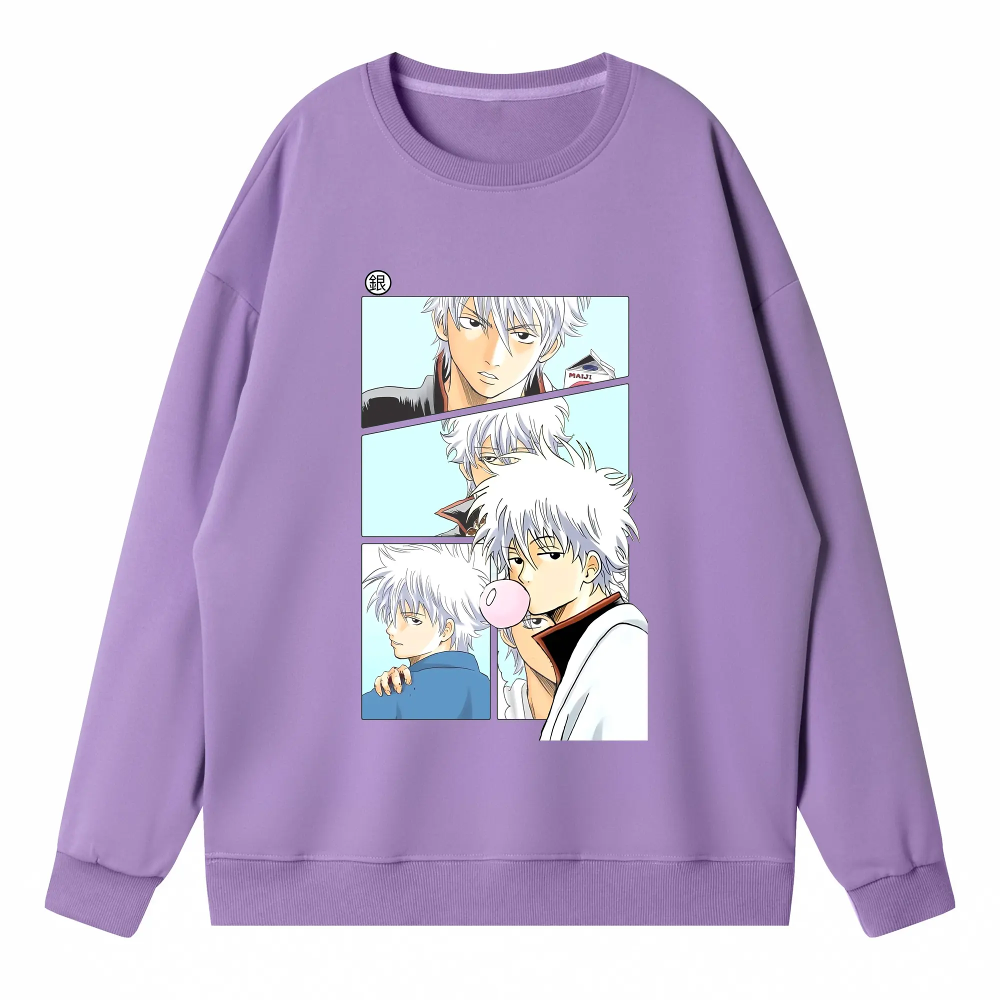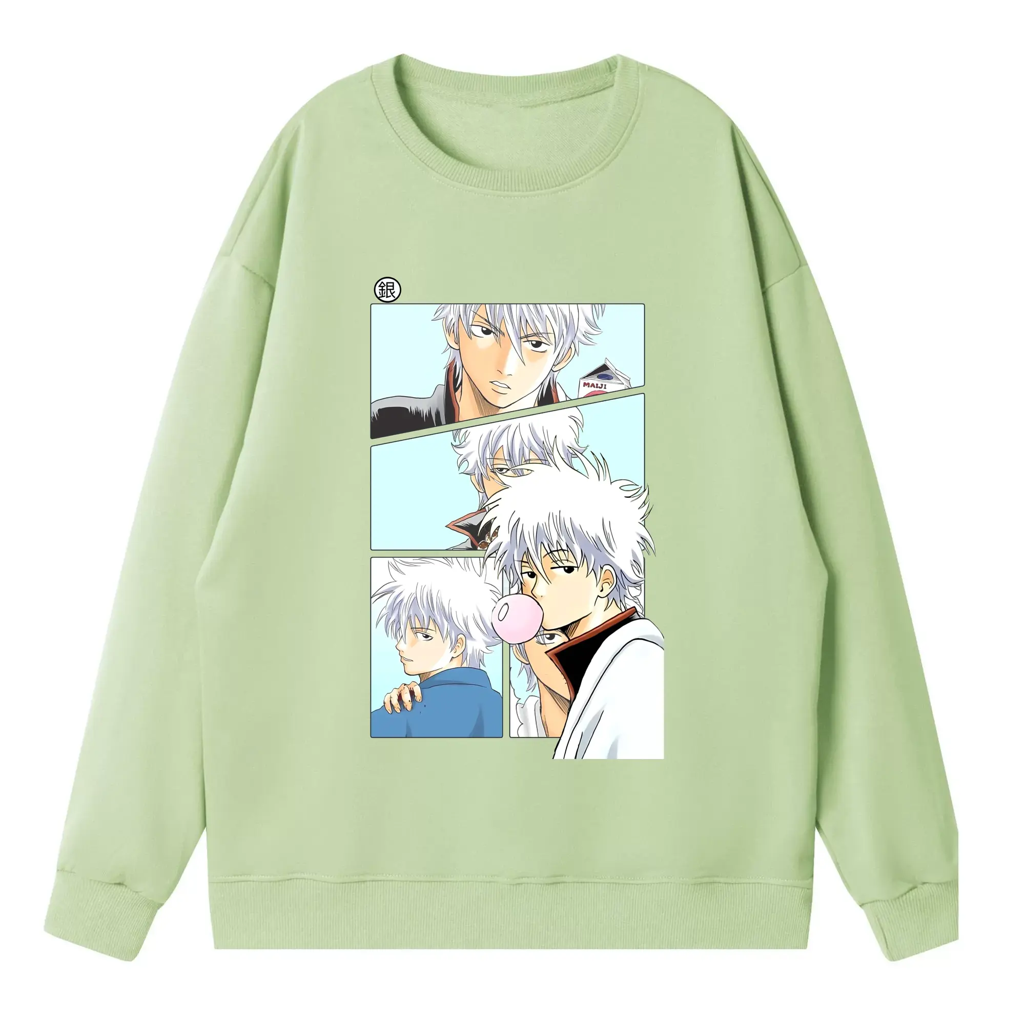銀魂 グッズ 坂田 銀時 - 高品質 クルーネック スウェット ・ コットン59% ポリエステル41% ・ ユニセックス 長袖 トレーナー ・ カジュアル デイリー スポーツ 散歩用