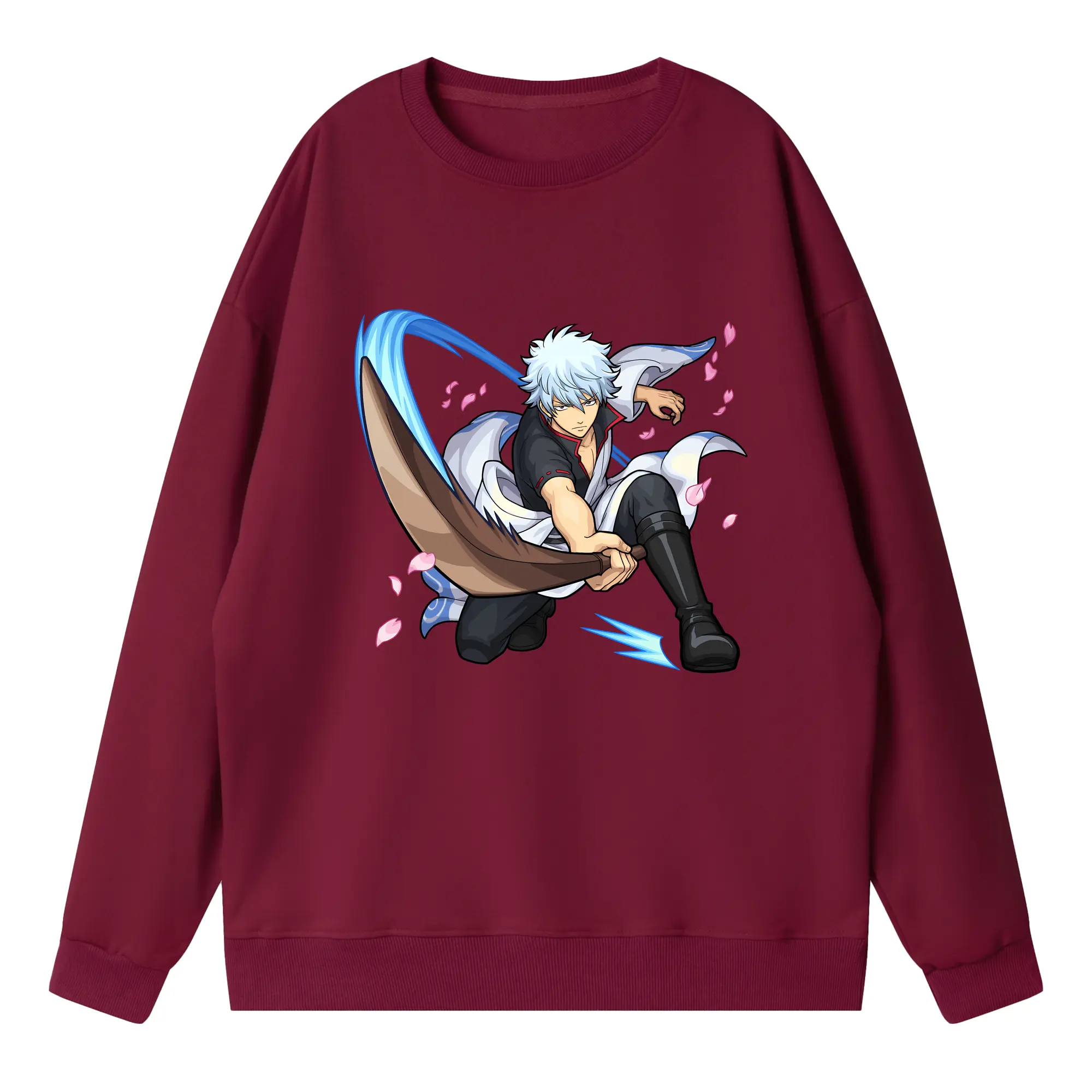 銀魂 グッズ 坂田 銀時 - 高品質 クルーネック スウェット ・ コットン59% ポリエステル41% ・ ユニセックス 長袖 トレーナー ・ カジュアル デイリー スポーツ 散歩用