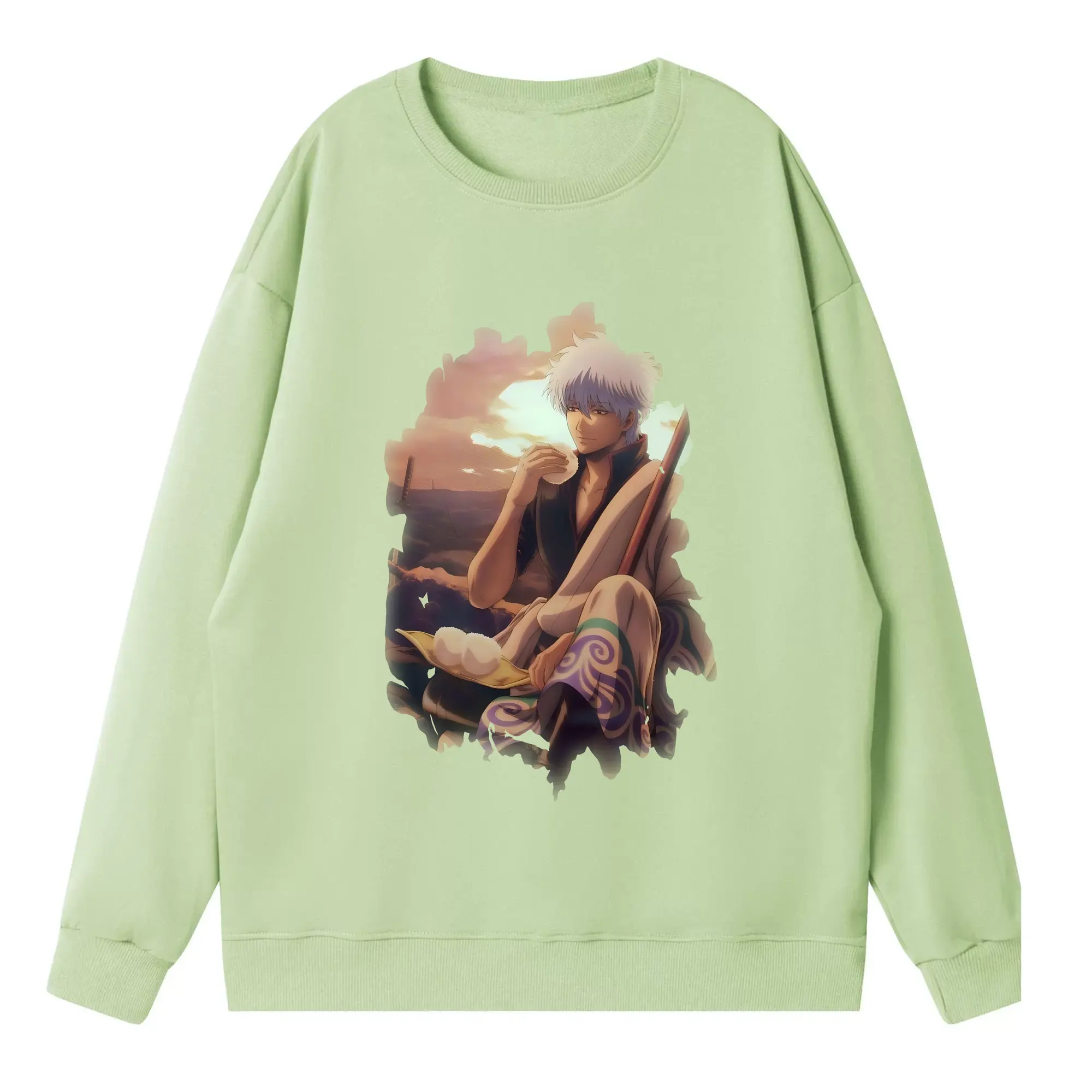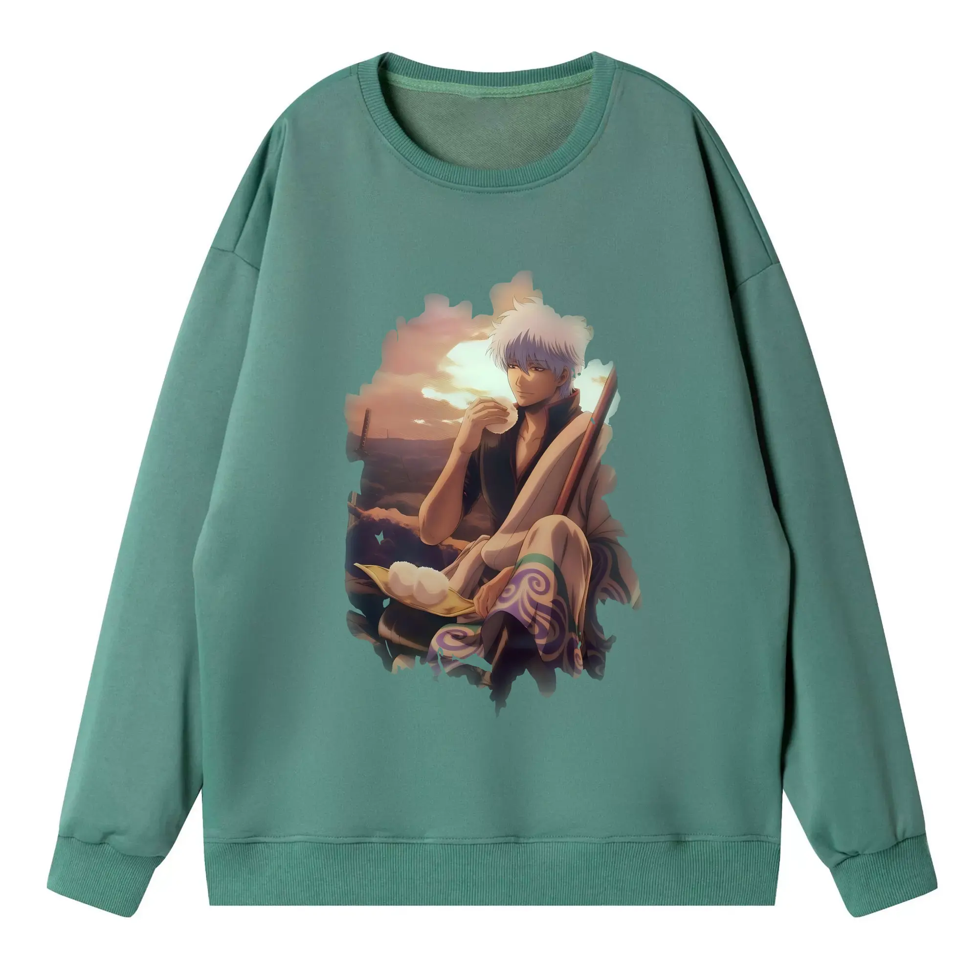 銀魂 グッズ 坂田 銀時 - 高品質 クルーネック スウェット ・ コットン59% ポリエステル41% ・ ユニセックス 長袖 トレーナー ・ カジュアル デイリー スポーツ 散歩用