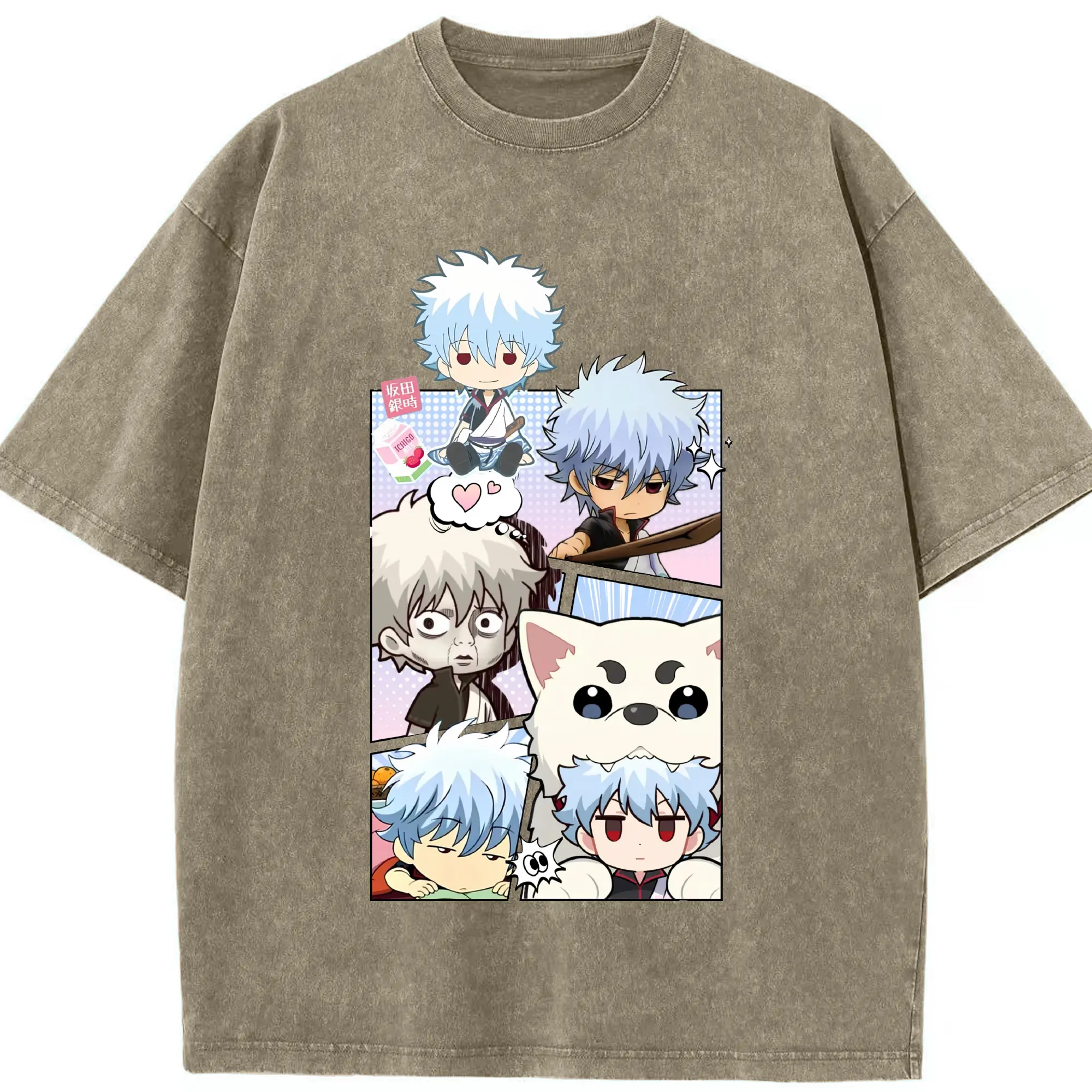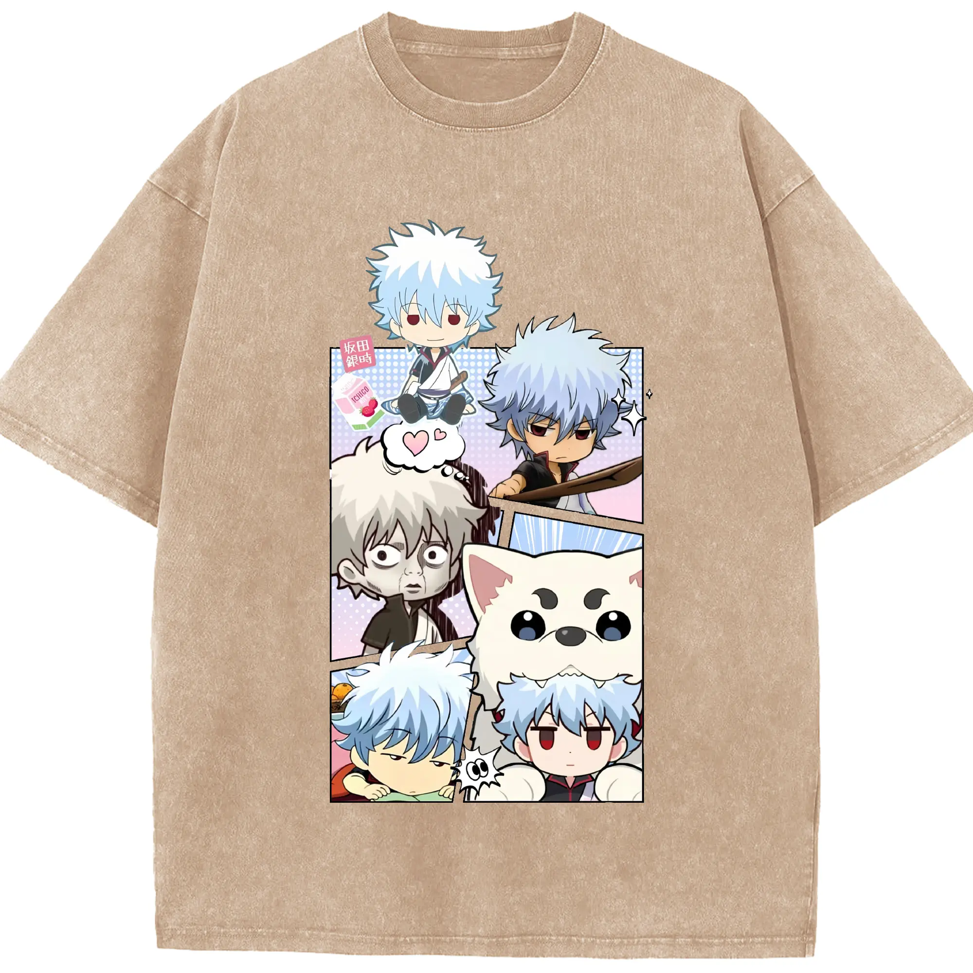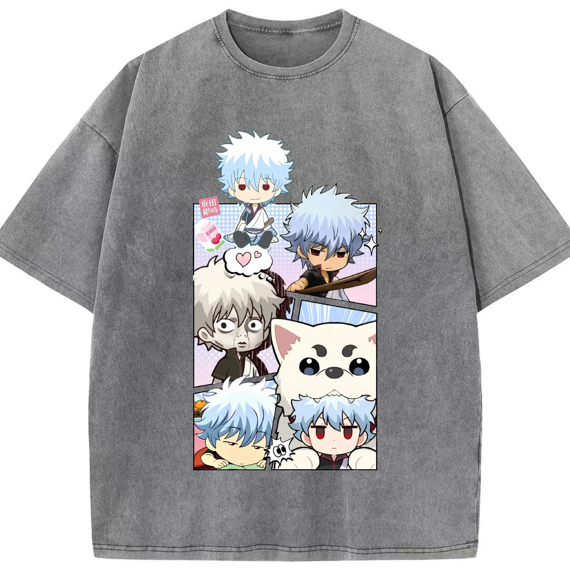 銀魂 グッズ 坂田 銀時 - 綿100% ヴィンテージ風 半袖Tシャツ ・ 背面プリント ・ 柔らか肌触り ・ 通気性 快適 ・ スポーツ カジュアル 外出用