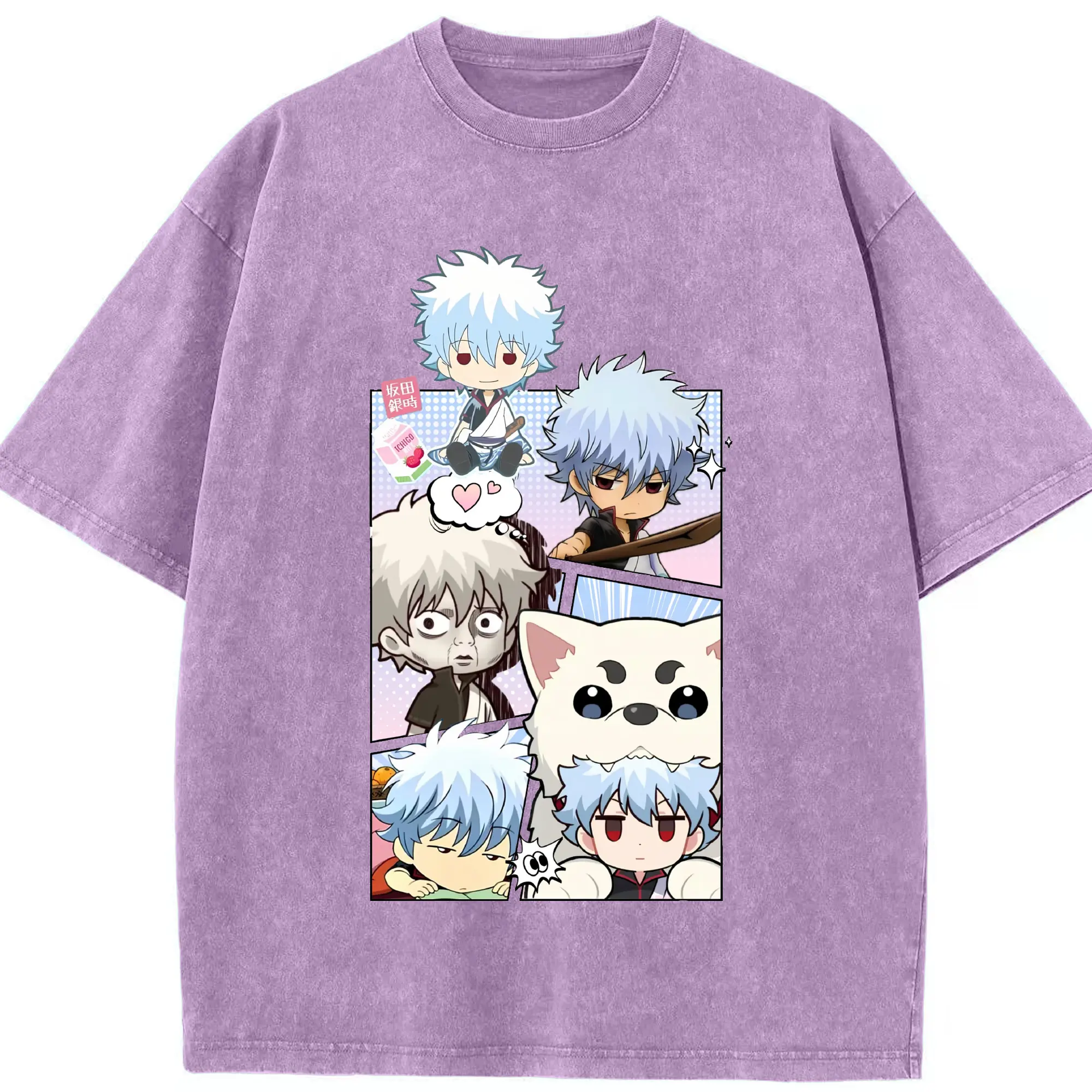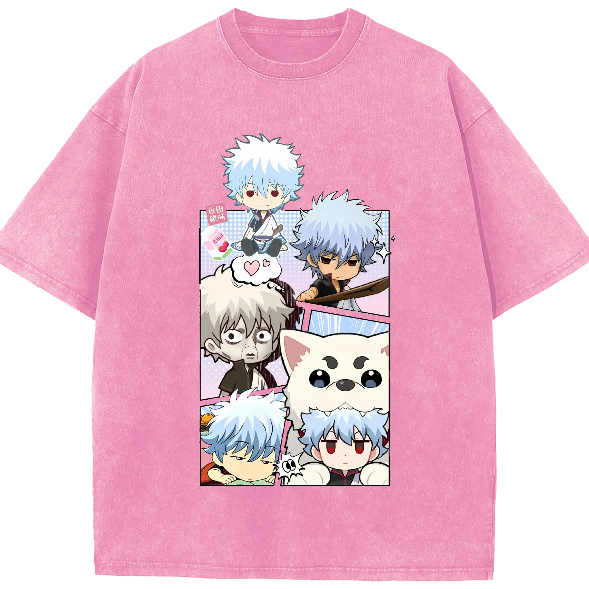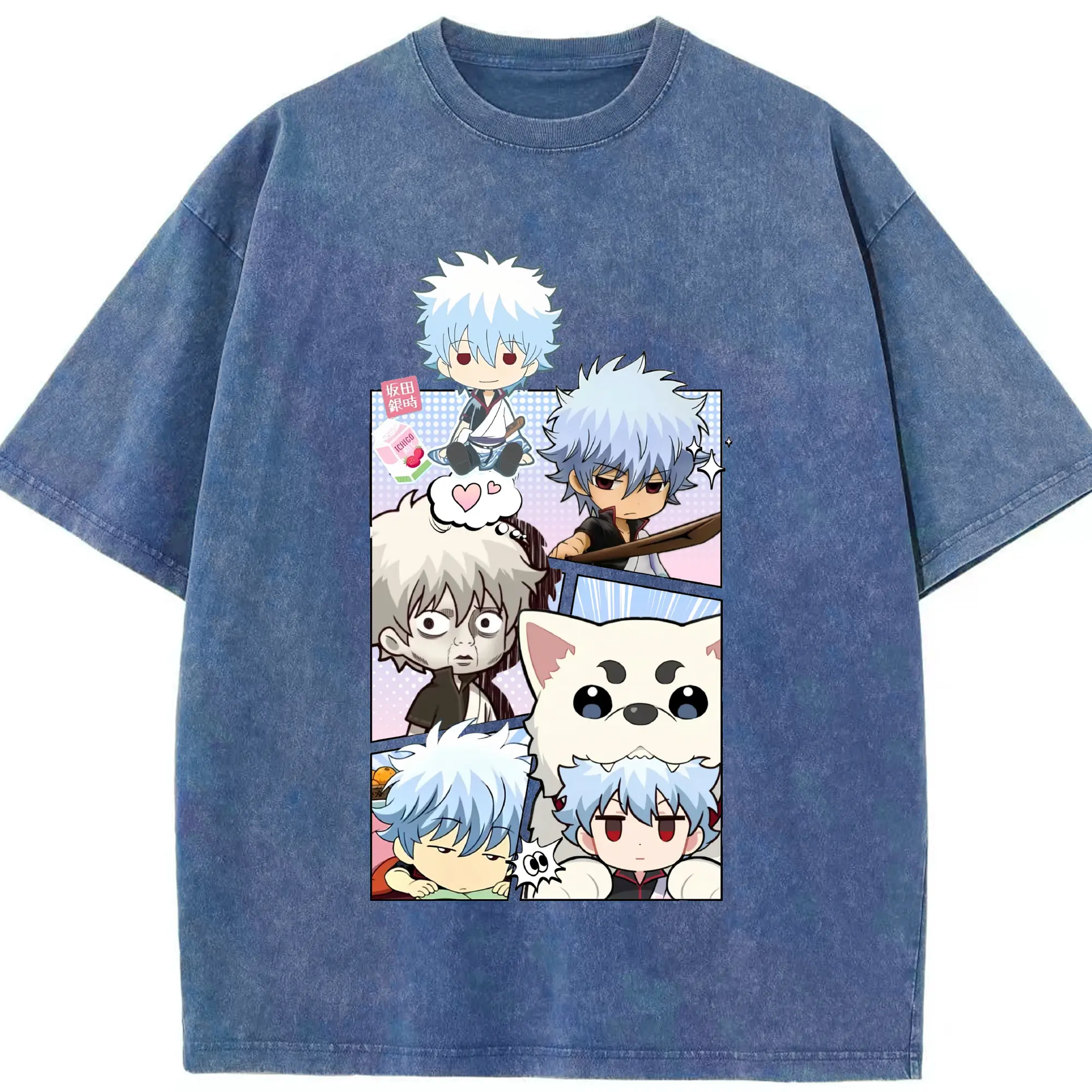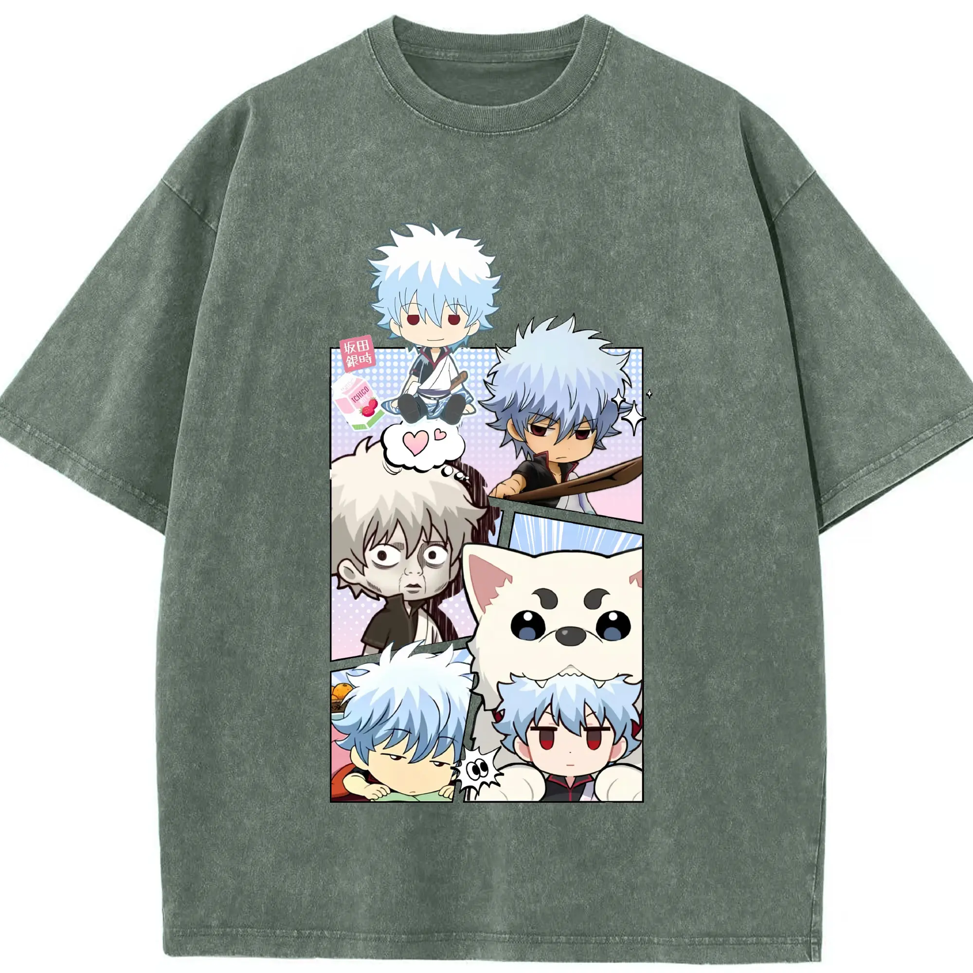銀魂 グッズ 坂田 銀時 - 綿100% ヴィンテージ風 半袖Tシャツ ・ 背面プリント ・ 柔らか肌触り ・ 通気性 快適 ・ スポーツ カジュアル 外出用