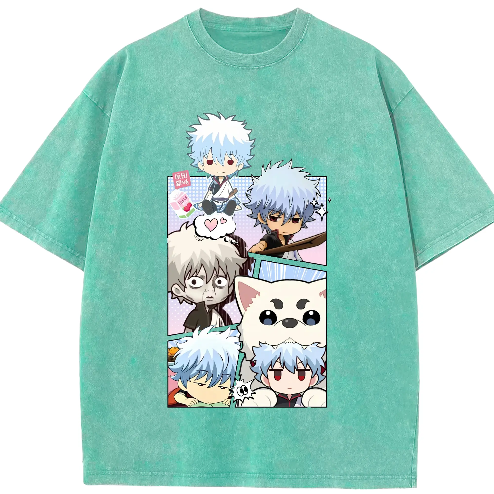 銀魂 グッズ 坂田 銀時 - 綿100% 半袖Tシャツ ・ フロントプリント ・ 快適 通気性 ・ 日常使い 散歩 スポーツ用