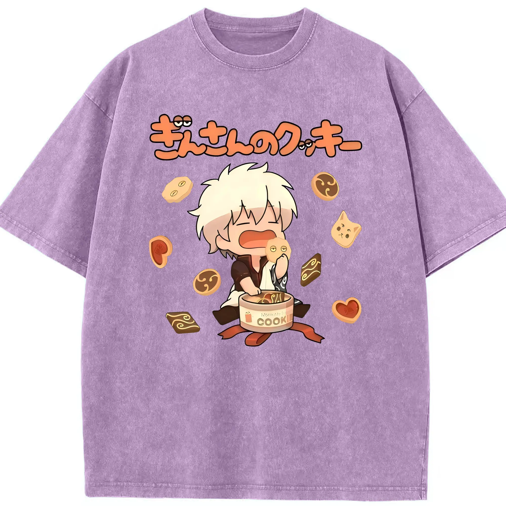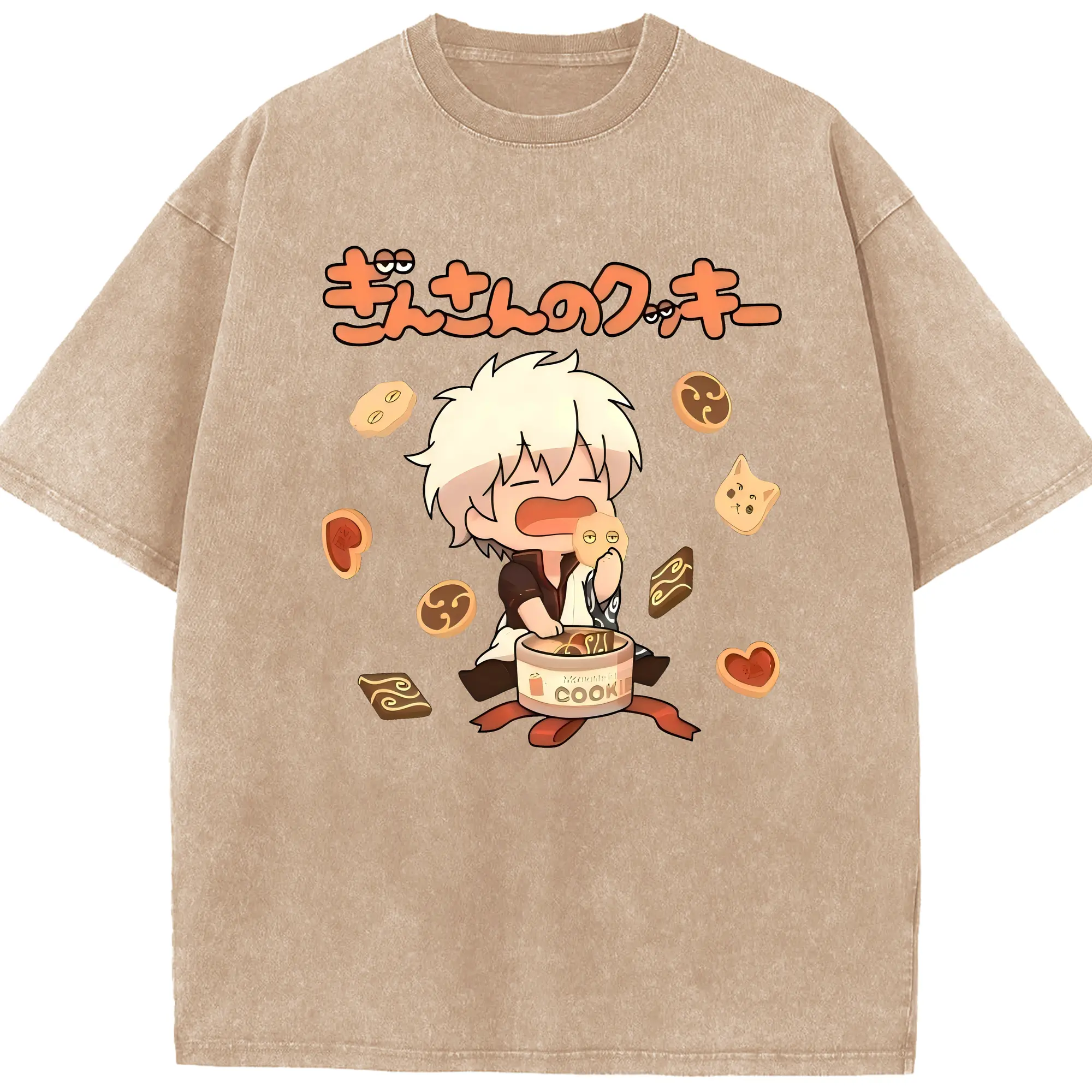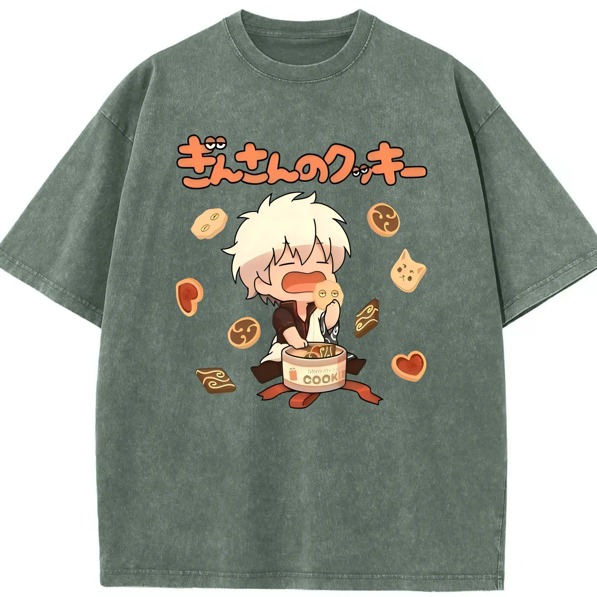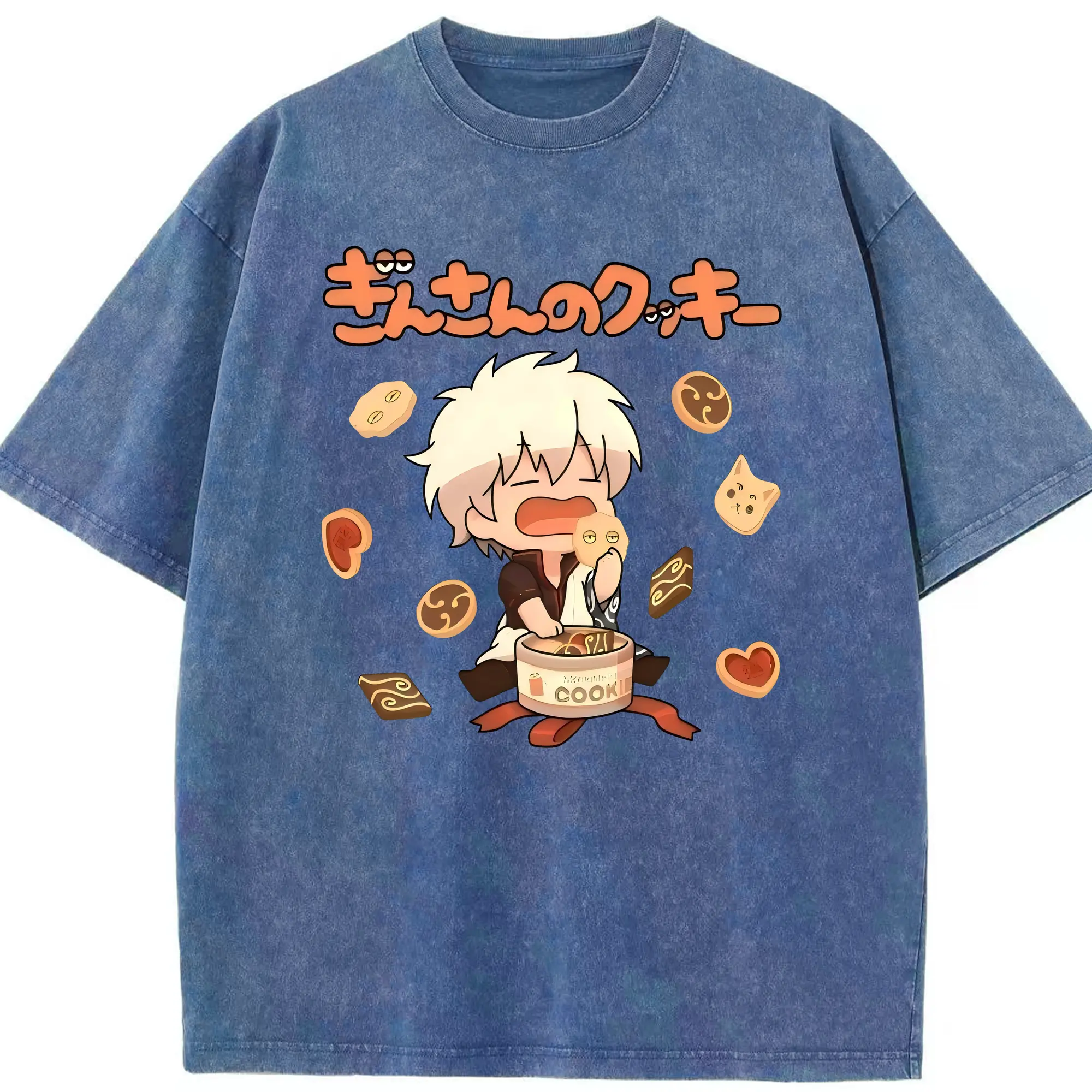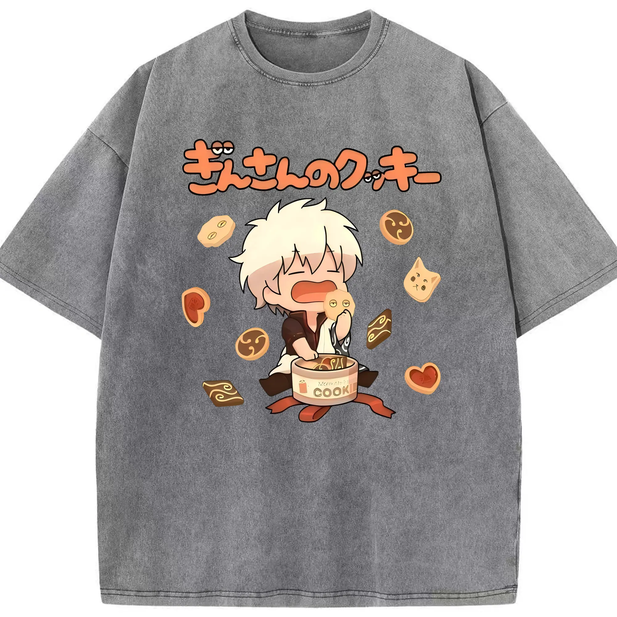 銀魂 グッズ 坂田 銀時 - 綿100% ヴィンテージ風 半袖Tシャツ ・ 背面プリント ・ 柔らか肌触り ・ 通気性 快適 ・ スポーツ カジュアル 外出用