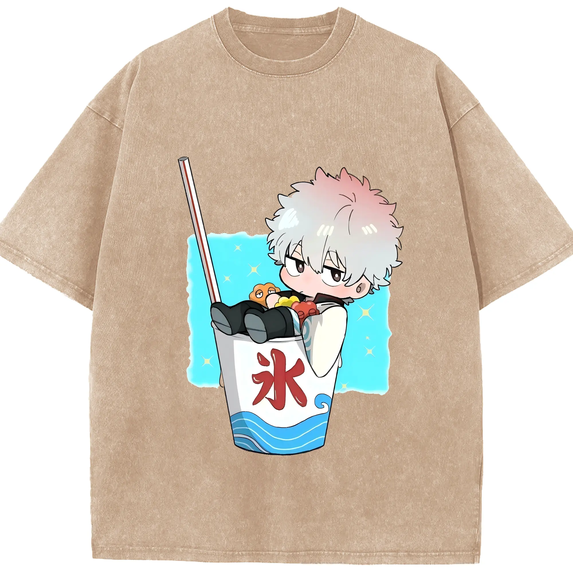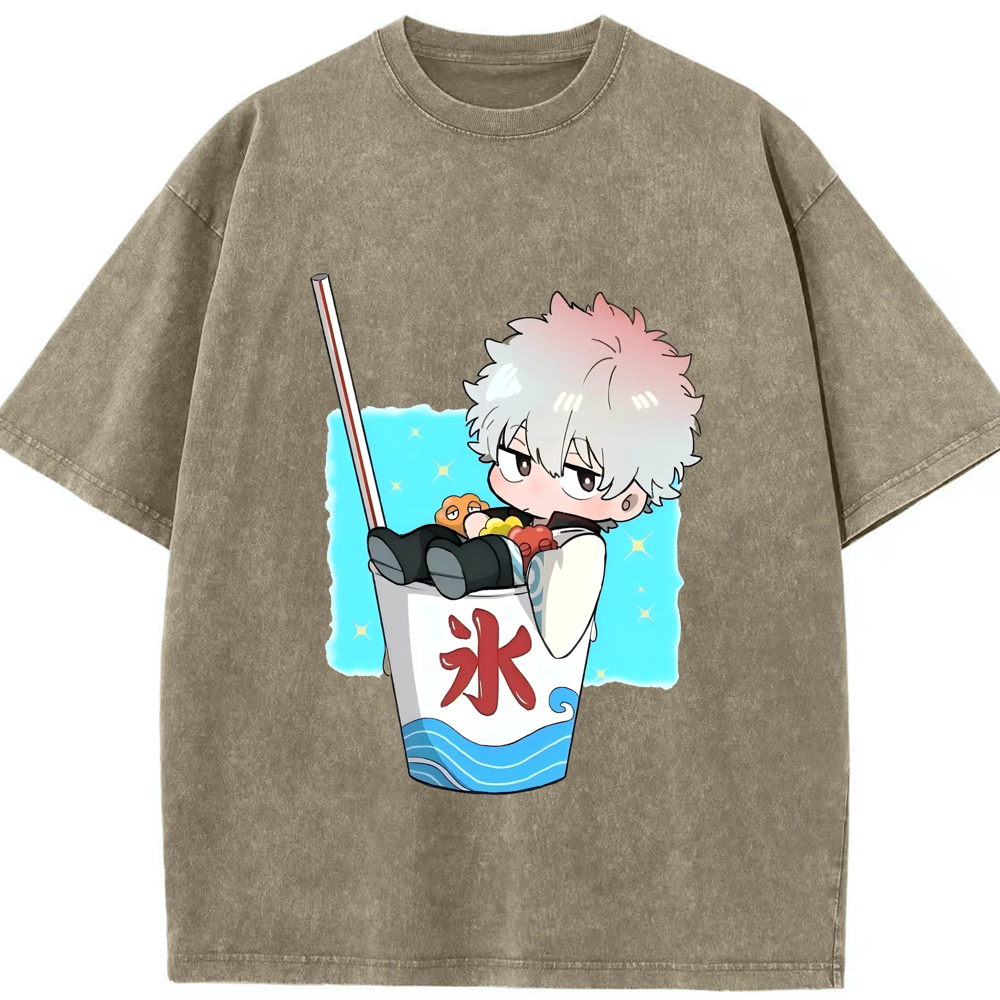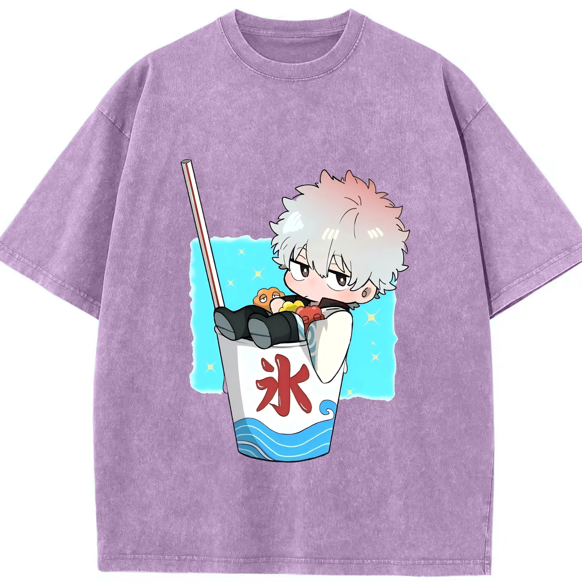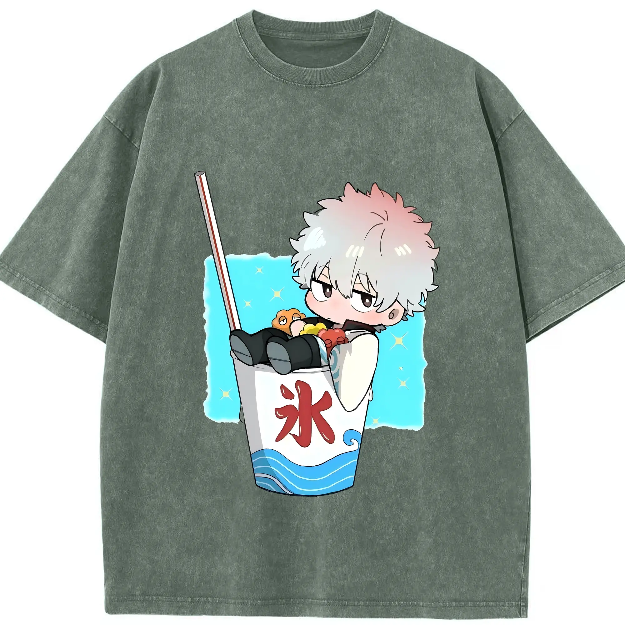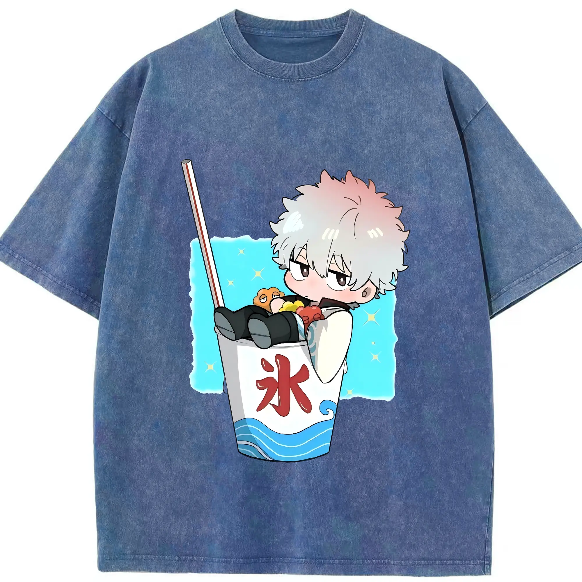 銀魂 グッズ 坂田 銀時 - 綿100% ヴィンテージ風 半袖Tシャツ ・ 背面プリント ・ 柔らか肌触り ・ 通気性 快適 ・ スポーツ カジュアル 外出用