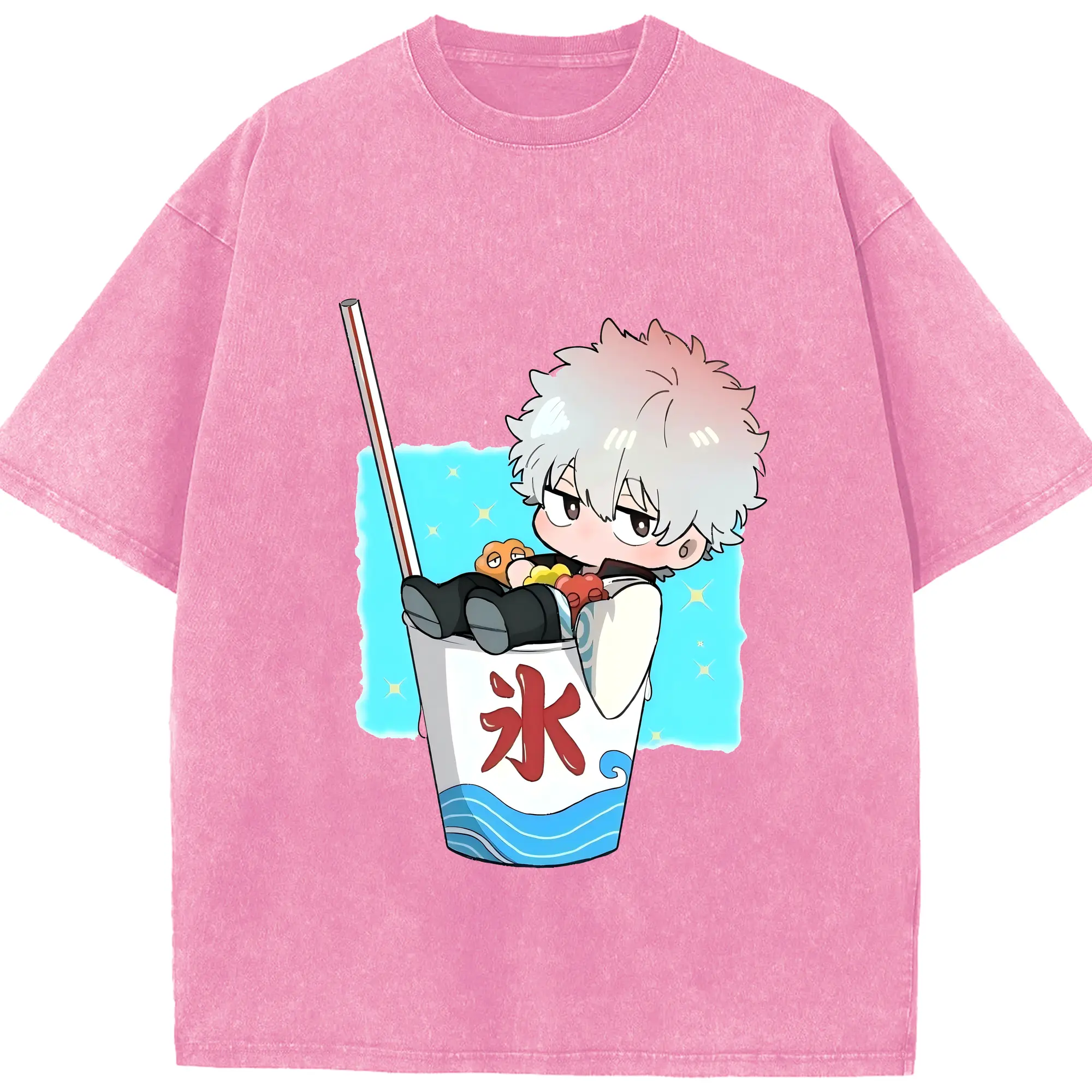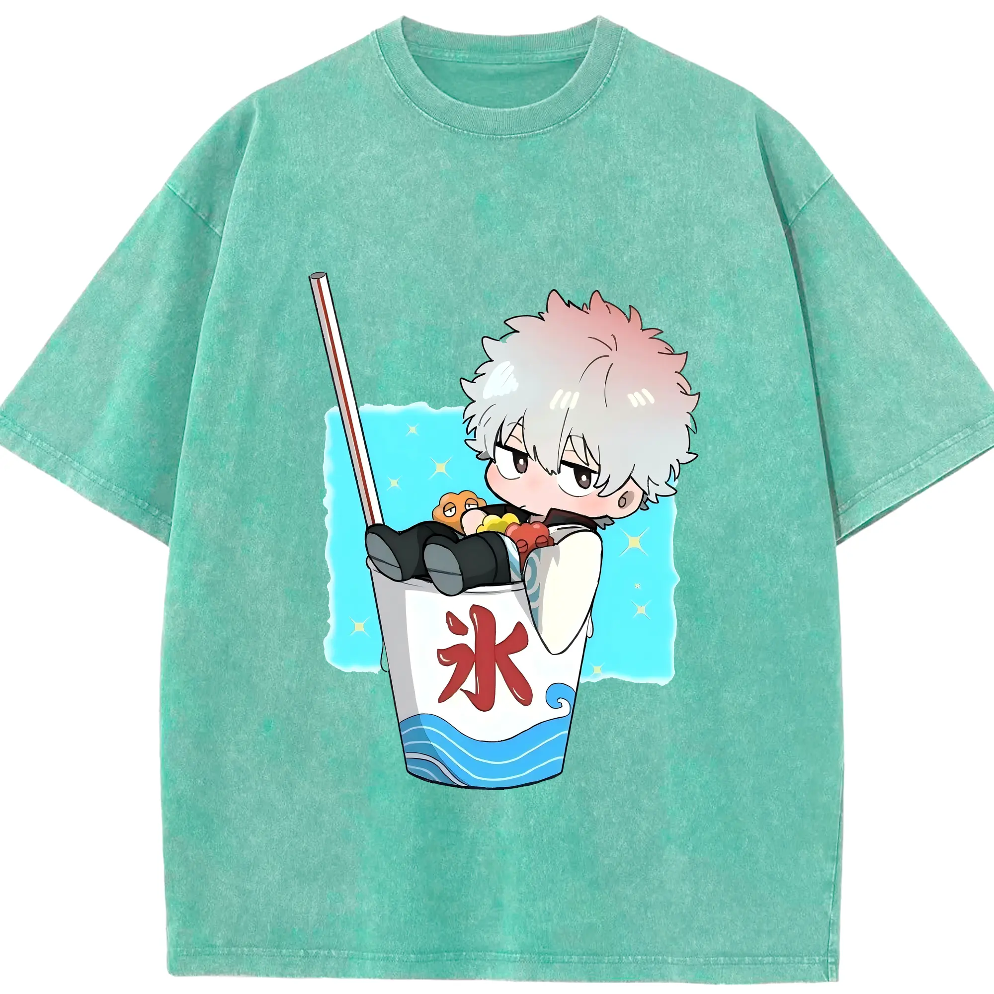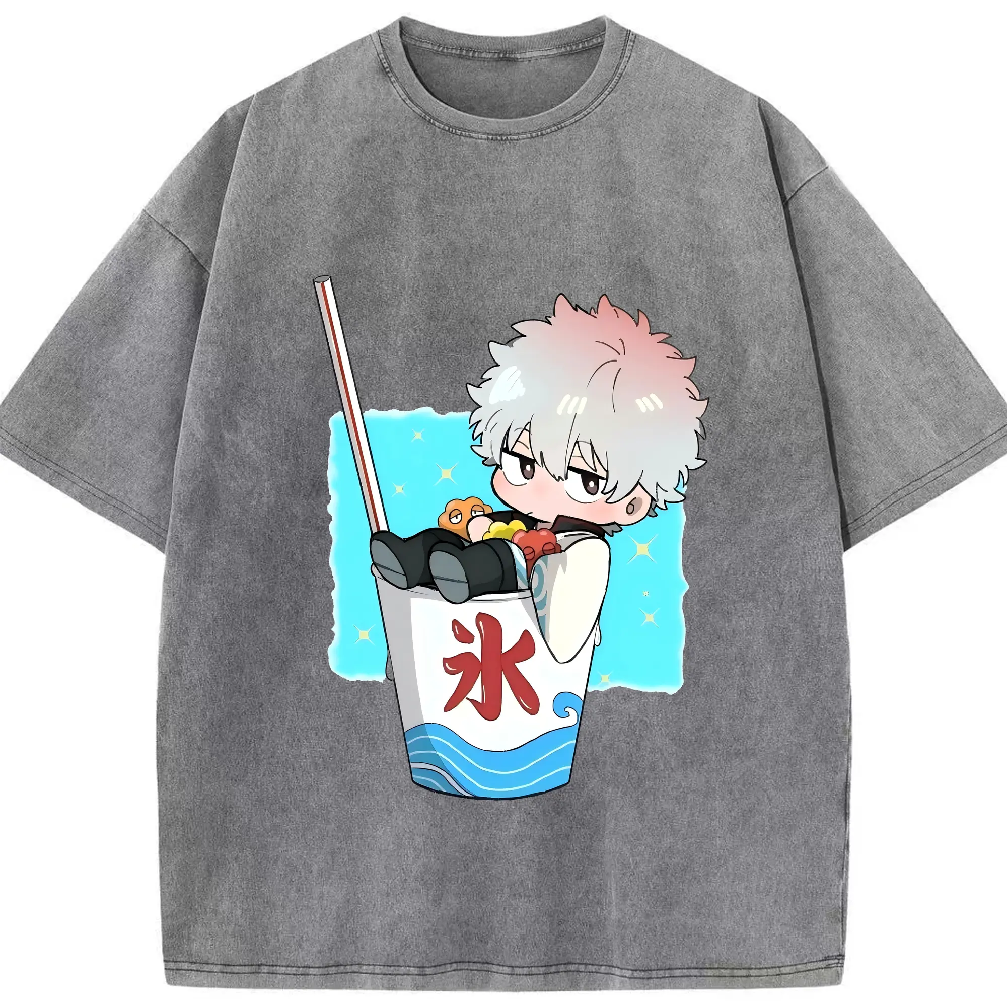銀魂 グッズ 坂田 銀時 - 綿100% 半袖Tシャツ ・ フロントプリント ・ 快適 通気性 ・ 日常使い 散歩 スポーツ用