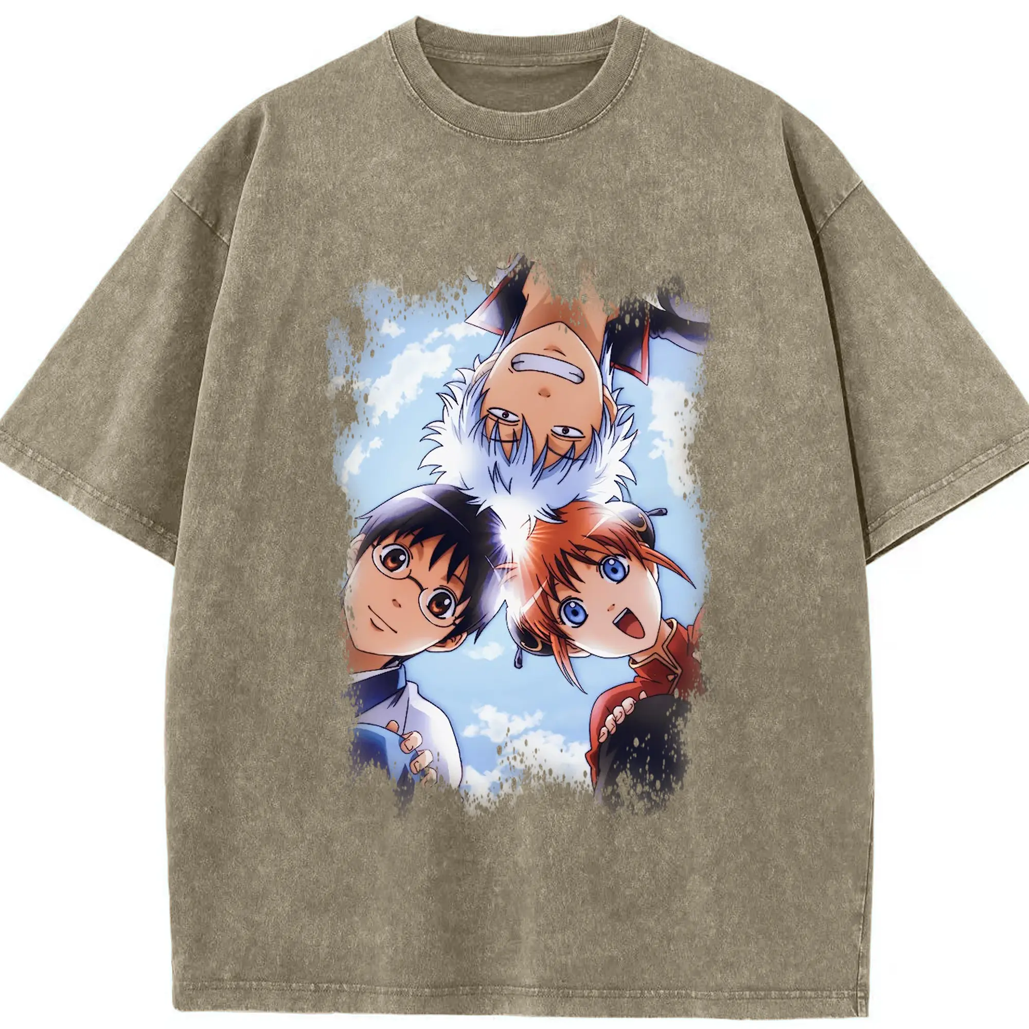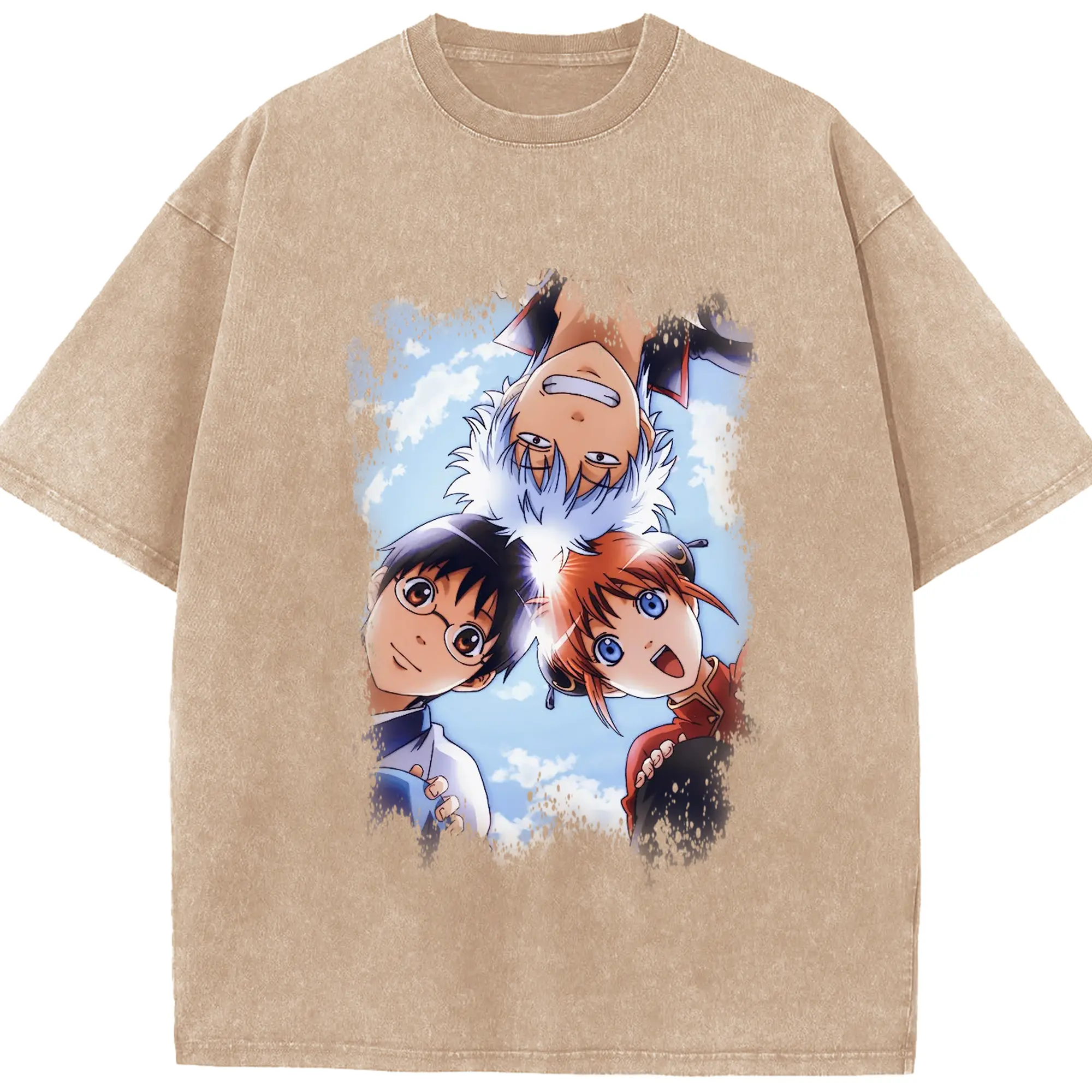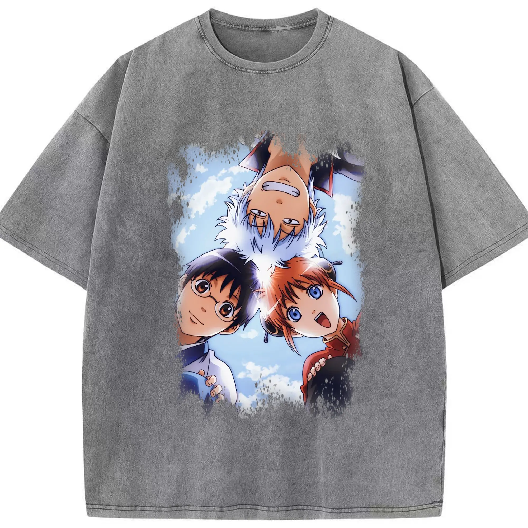 銀魂 グッズ 坂田 銀時 - 綿100% ヴィンテージ風 半袖Tシャツ ・ 背面プリント ・ 柔らか肌触り ・ 通気性 快適 ・ スポーツ カジュアル 外出用