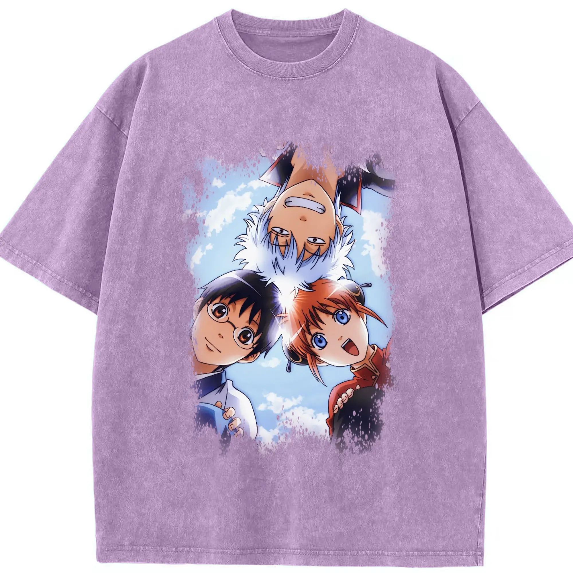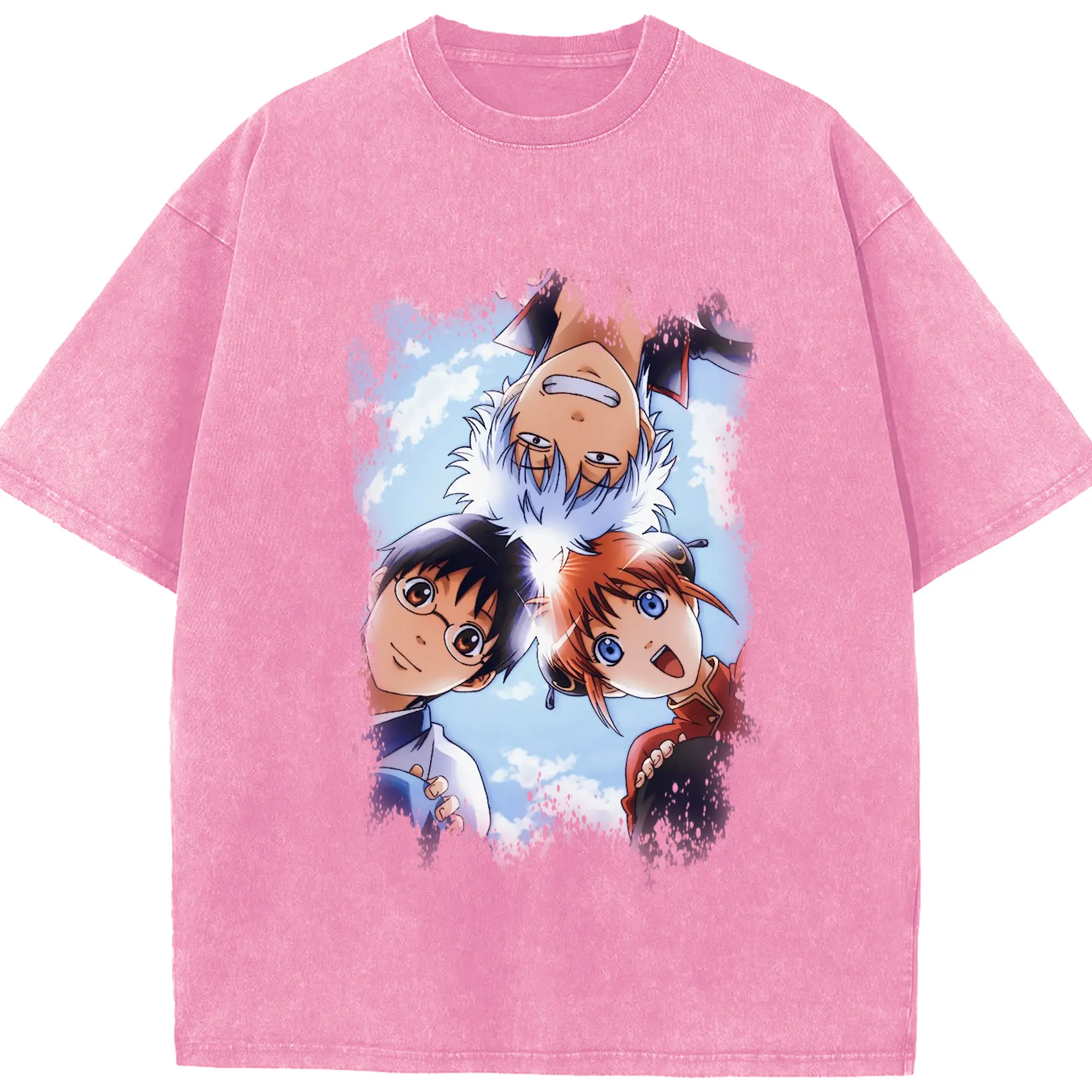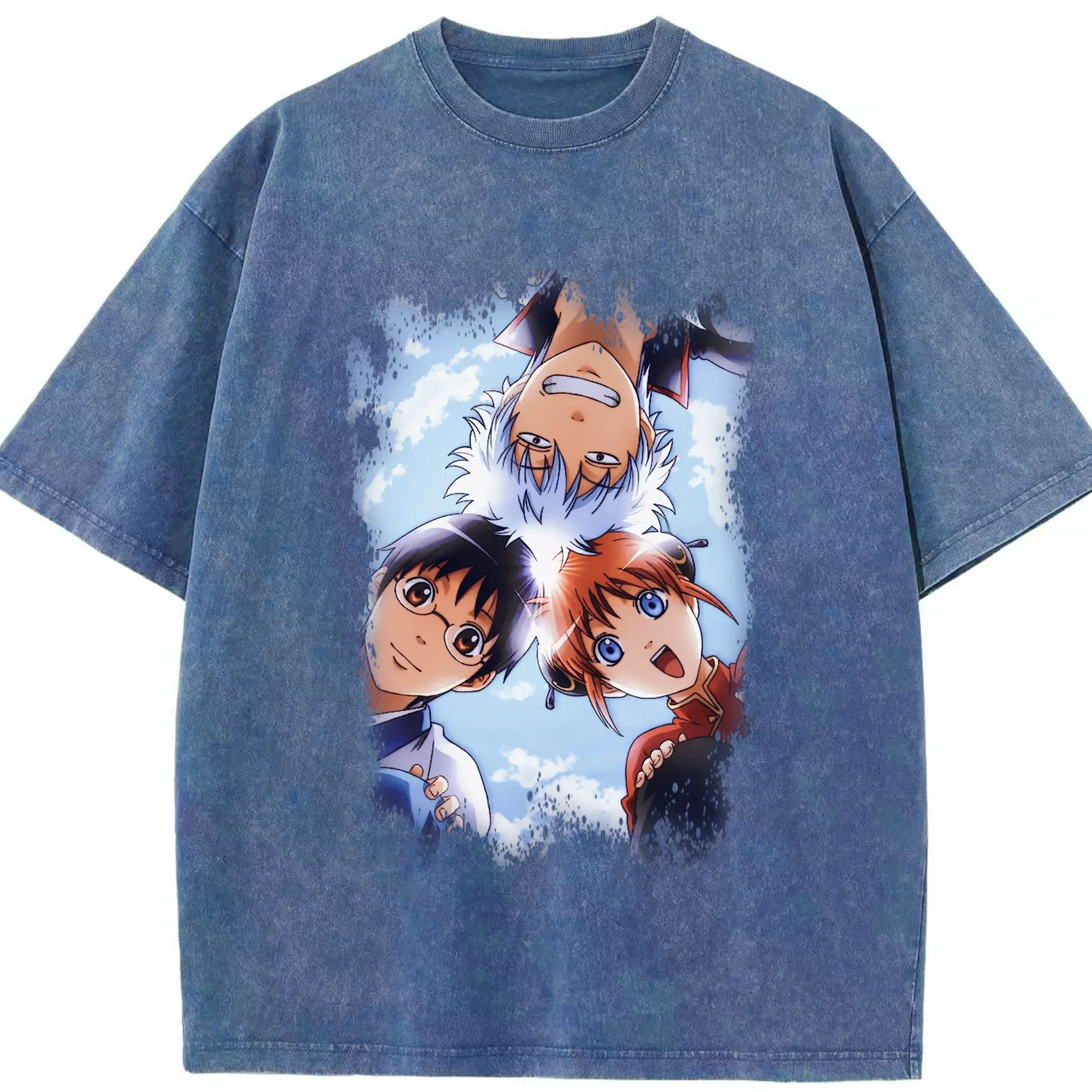 銀魂 グッズ 坂田 銀時 - 綿100% ヴィンテージ風 半袖Tシャツ ・ 背面プリント ・ 柔らか肌触り ・ 通気性 快適 ・ スポーツ カジュアル 外出用