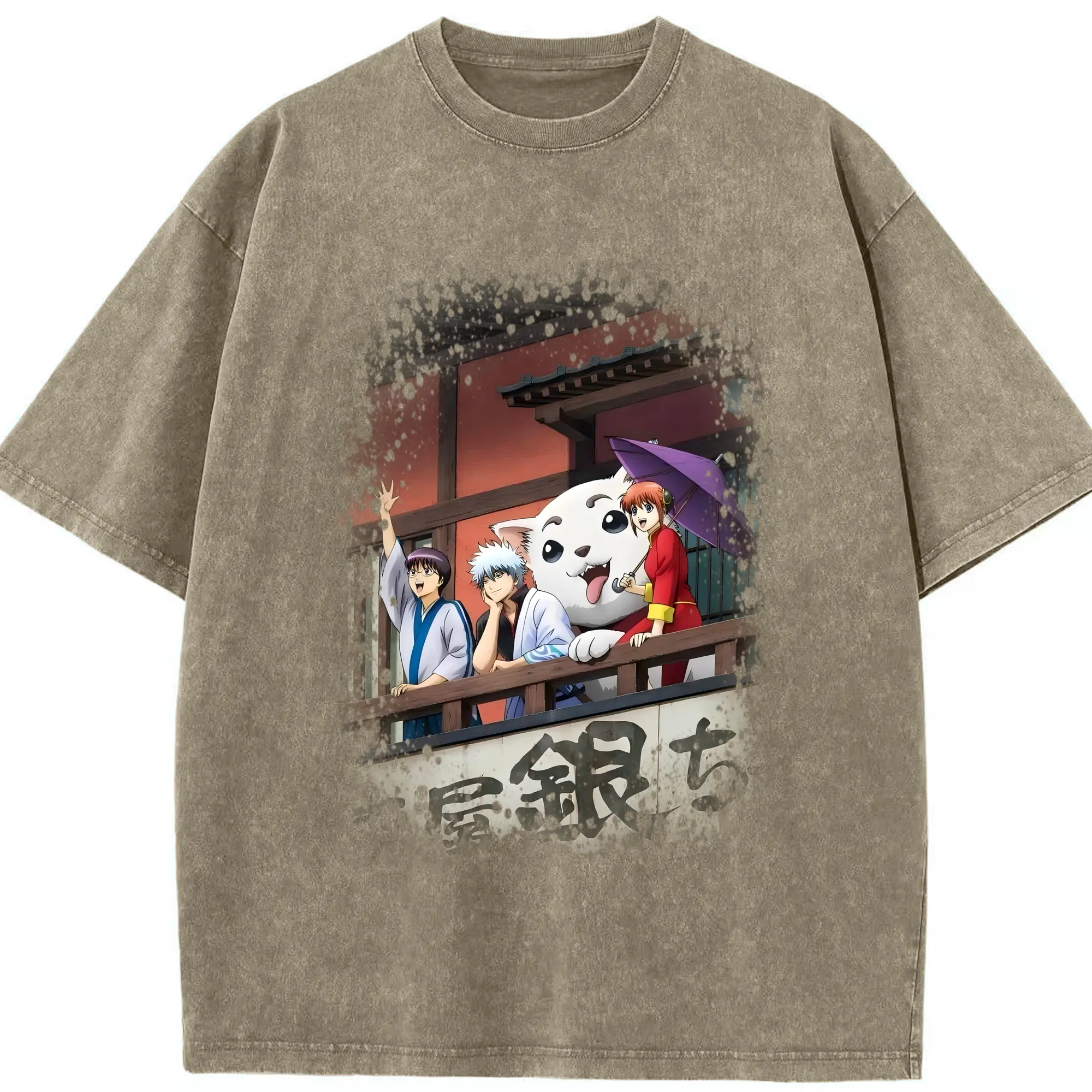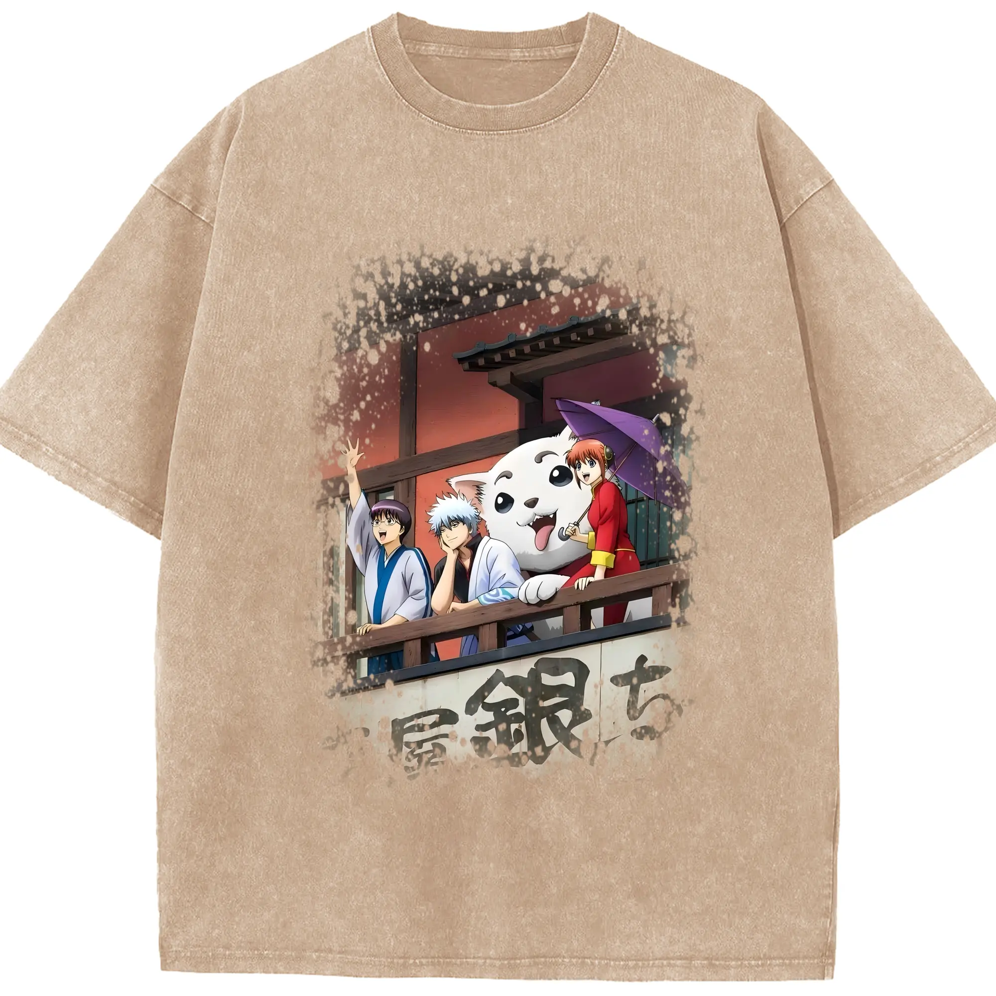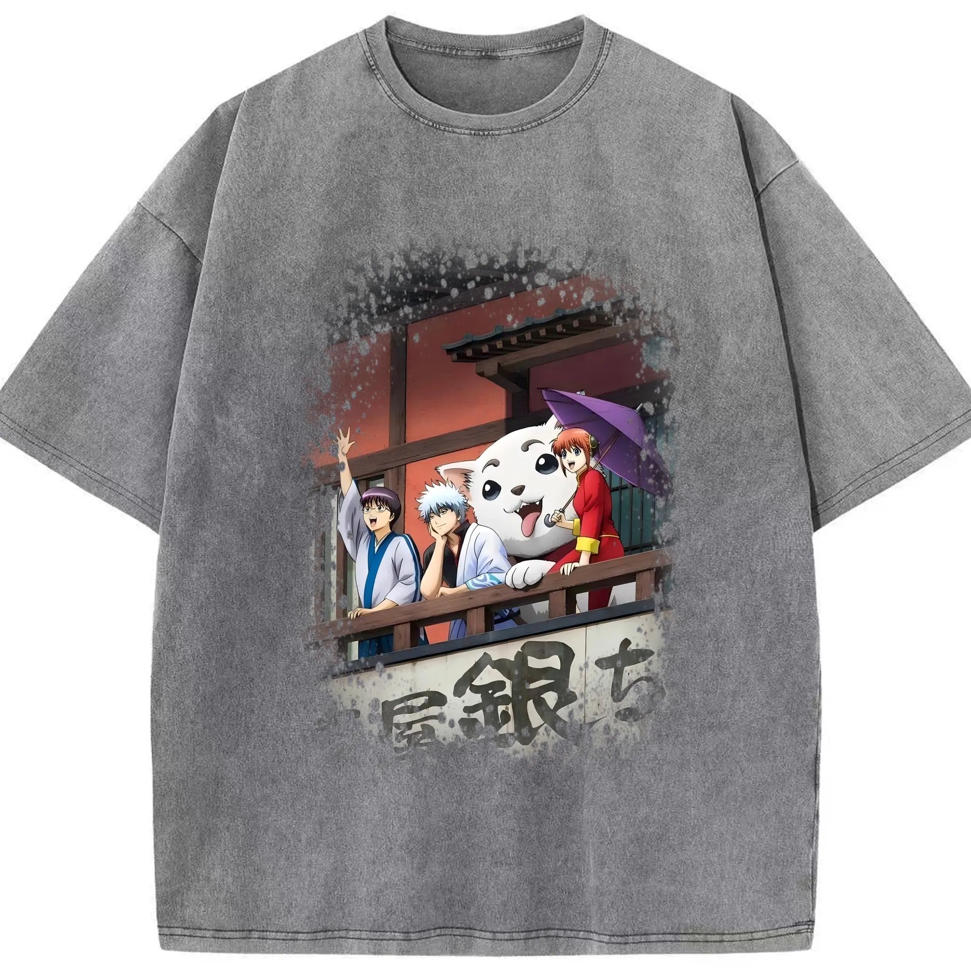 銀魂 グッズ 坂田 銀時 - 綿100% ヴィンテージ風 半袖Tシャツ ・ 背面プリント ・ 柔らか肌触り ・ 通気性 快適 ・ スポーツ カジュアル 外出用
