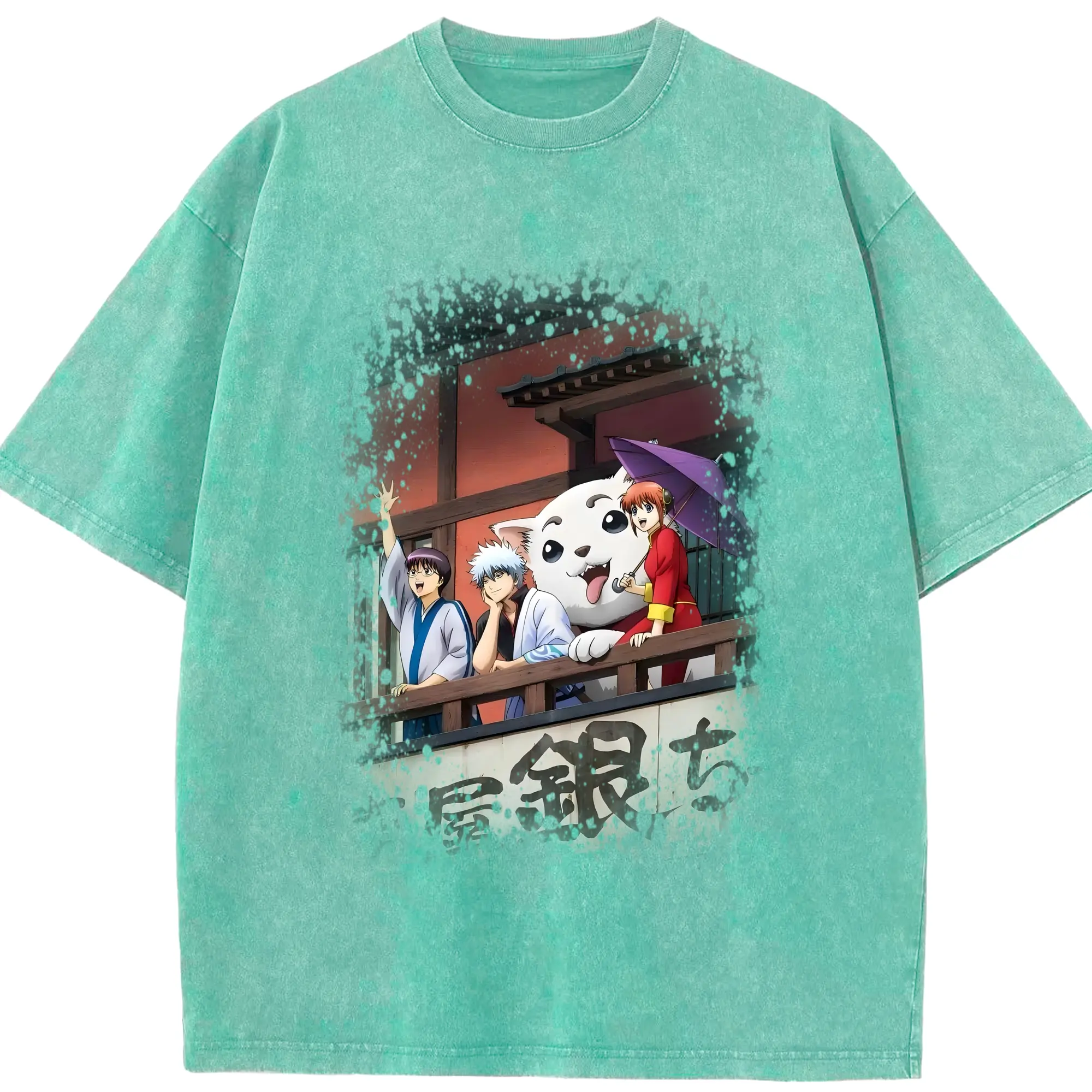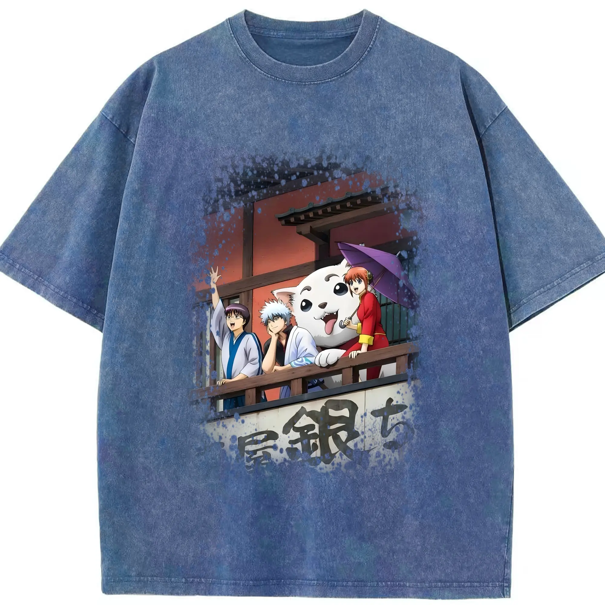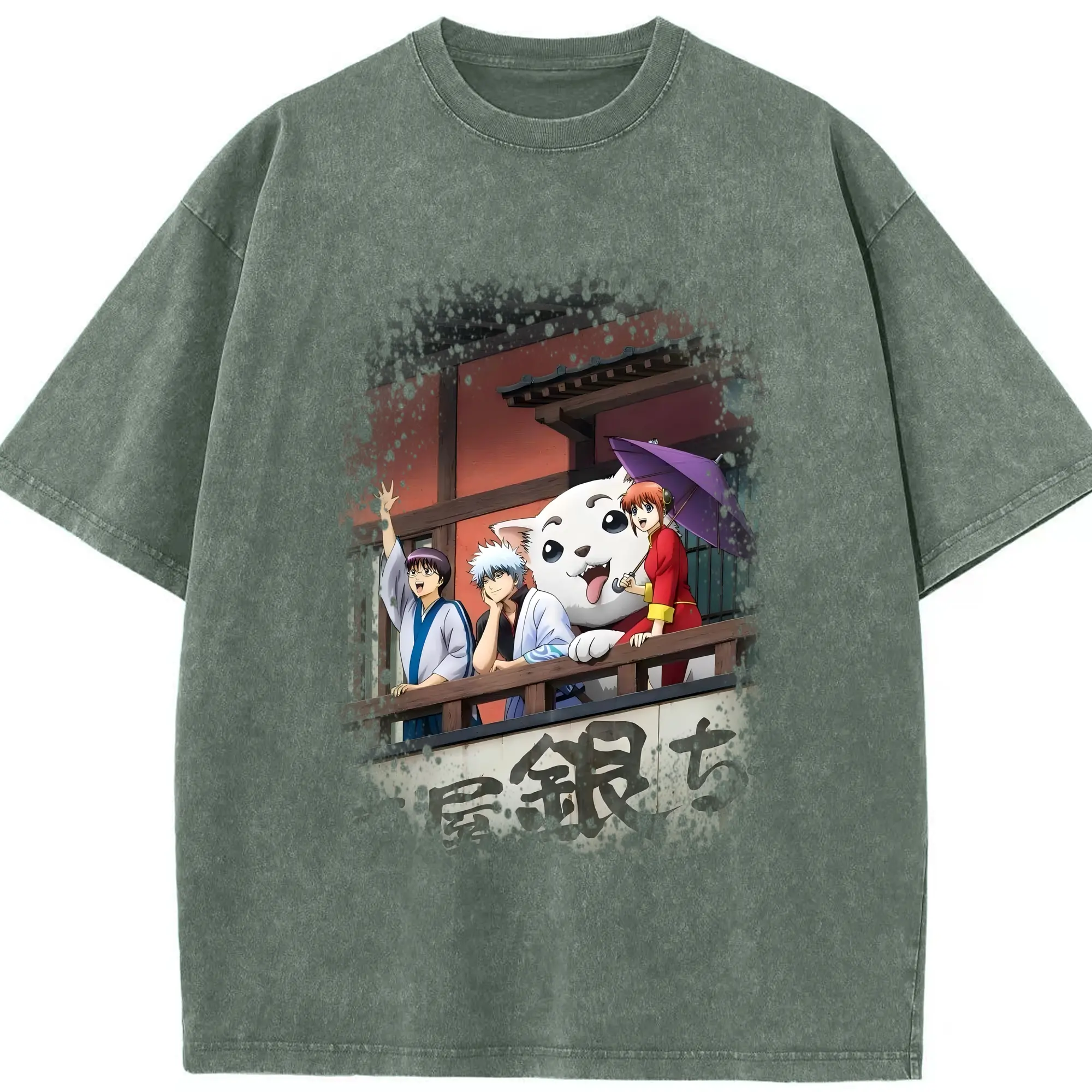 銀魂 グッズ 坂田 銀時 - 綿100% ヴィンテージ風 半袖Tシャツ ・ 背面プリント ・ 柔らか肌触り ・ 通気性 快適 ・ スポーツ カジュアル 外出用