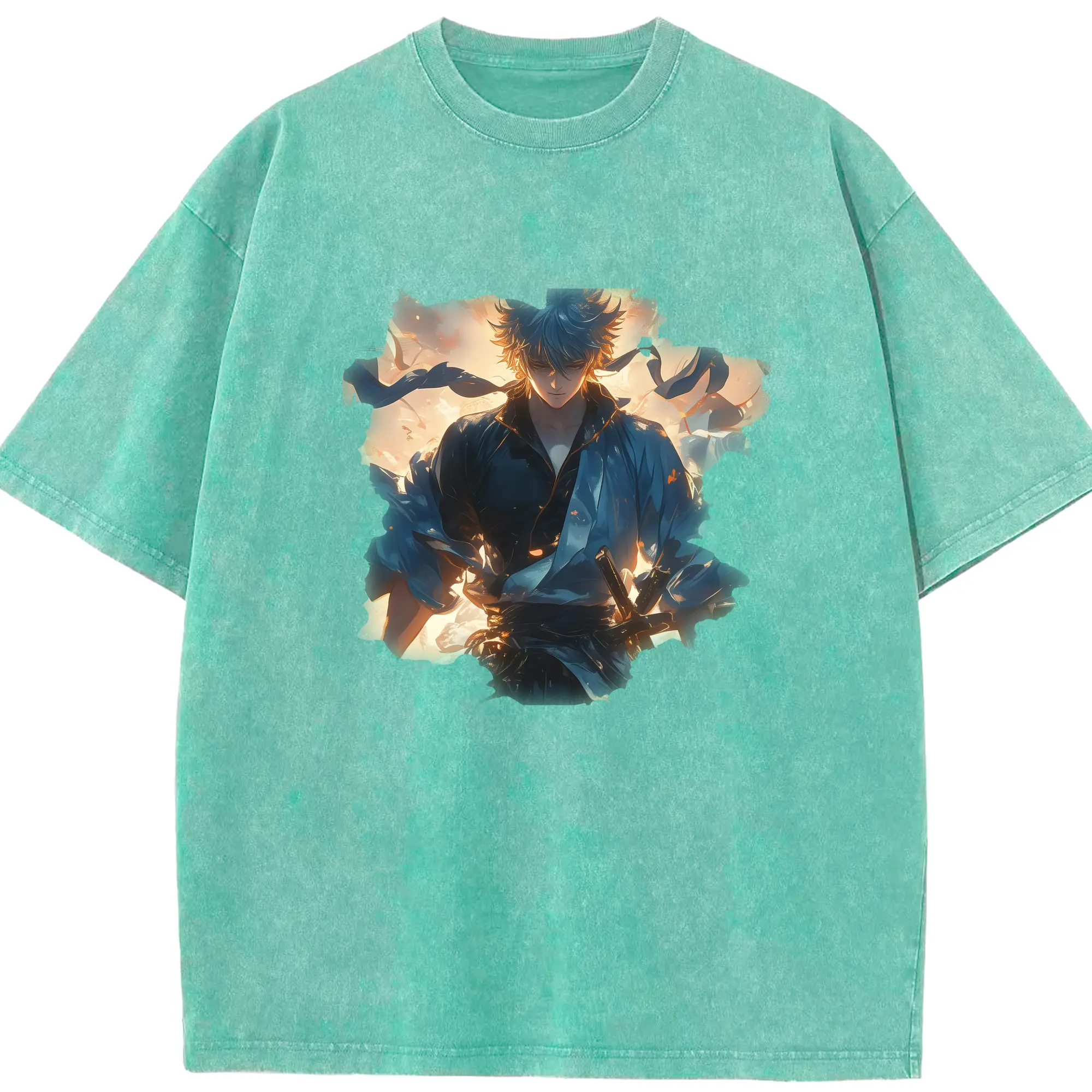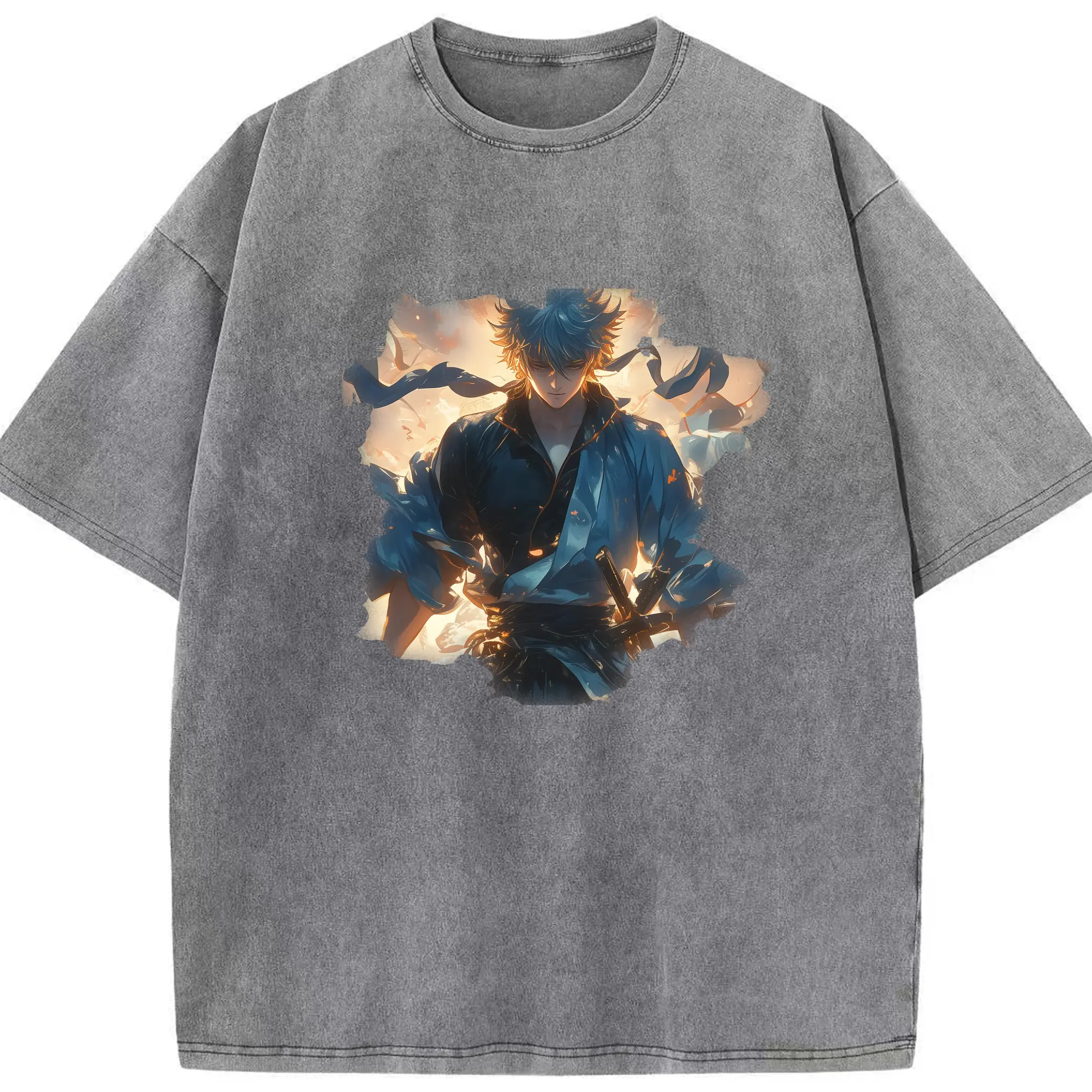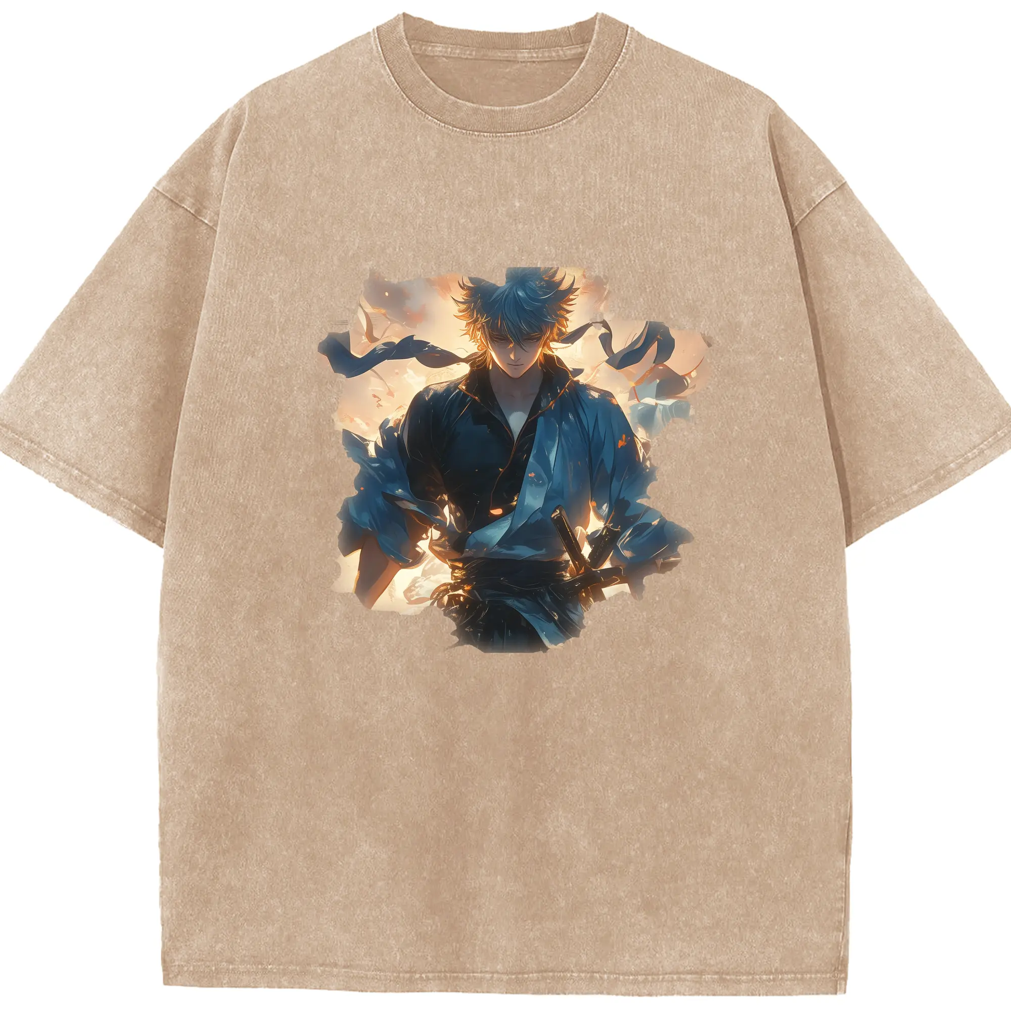 銀魂 グッズ 坂田 銀時 - 綿100% ヴィンテージ風 半袖Tシャツ ・ 背面プリント ・ 柔らか肌触り ・ 通気性 快適 ・ スポーツ カジュアル 外出用