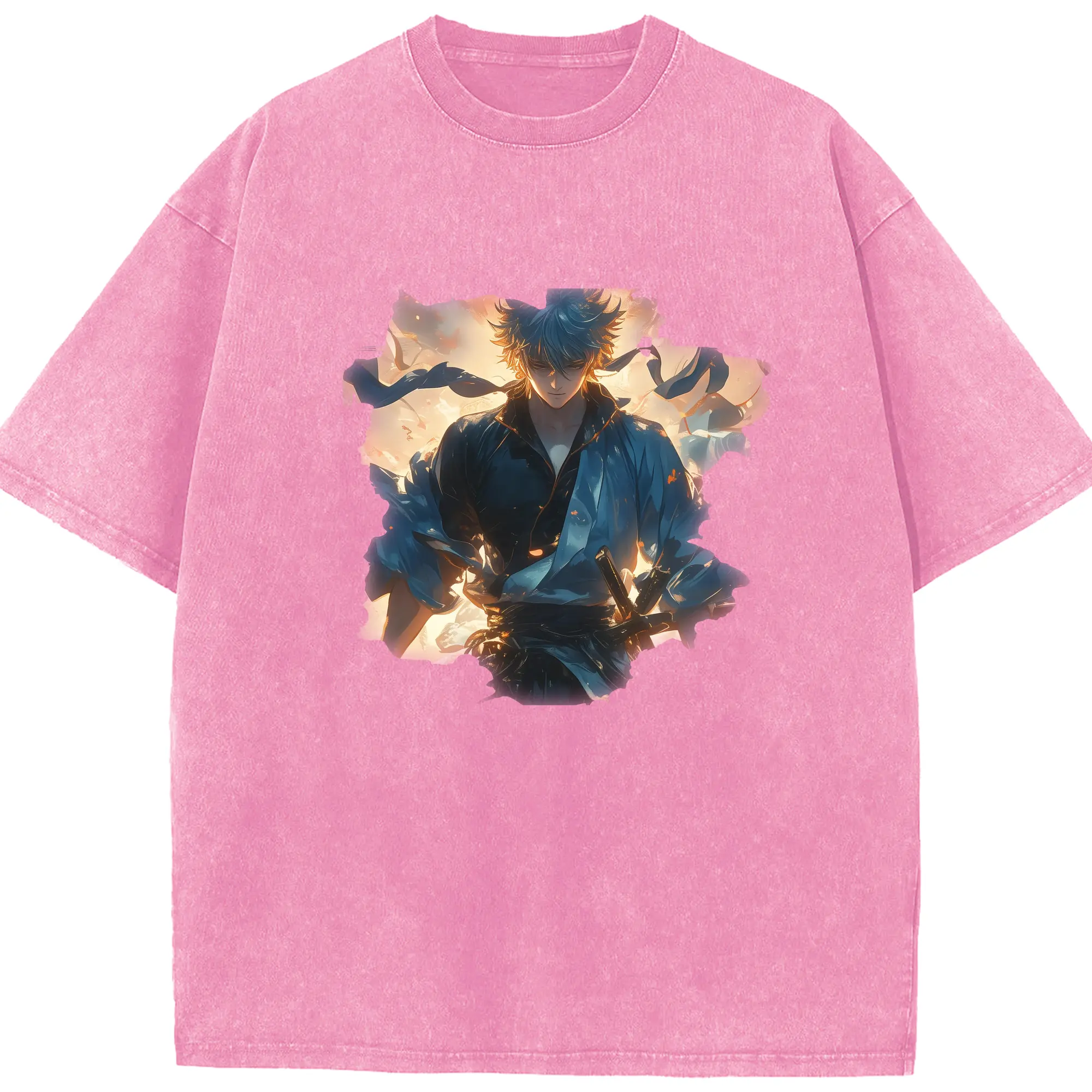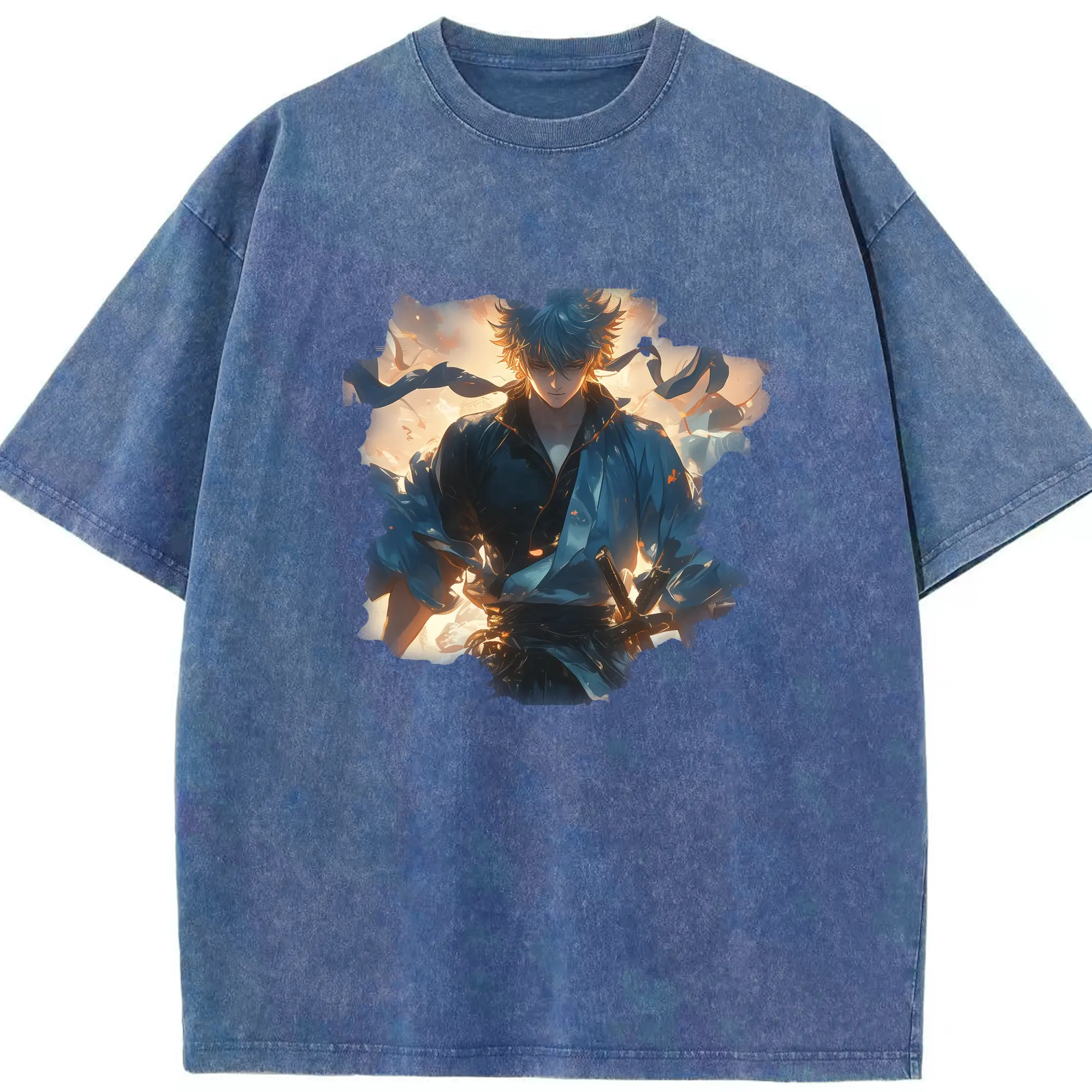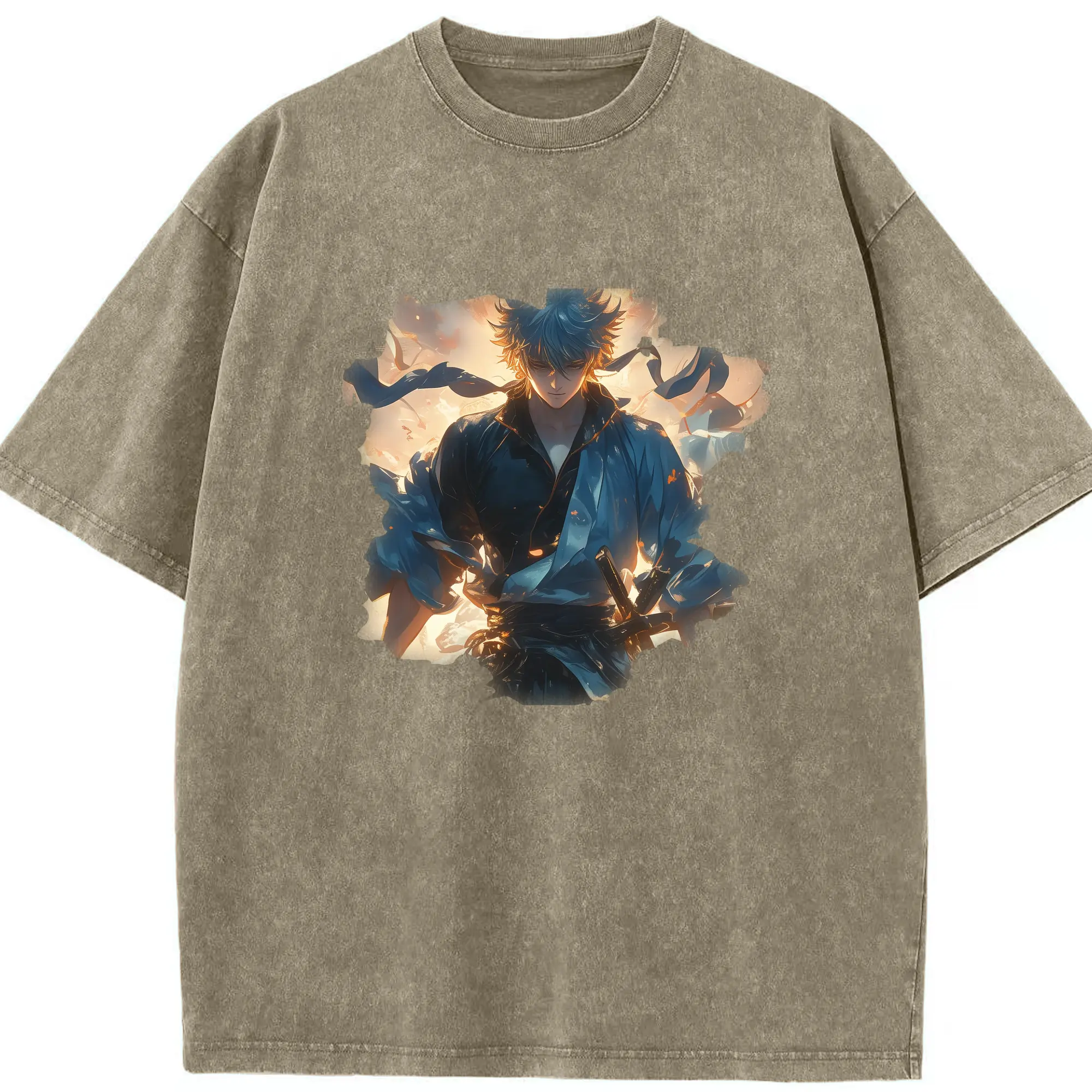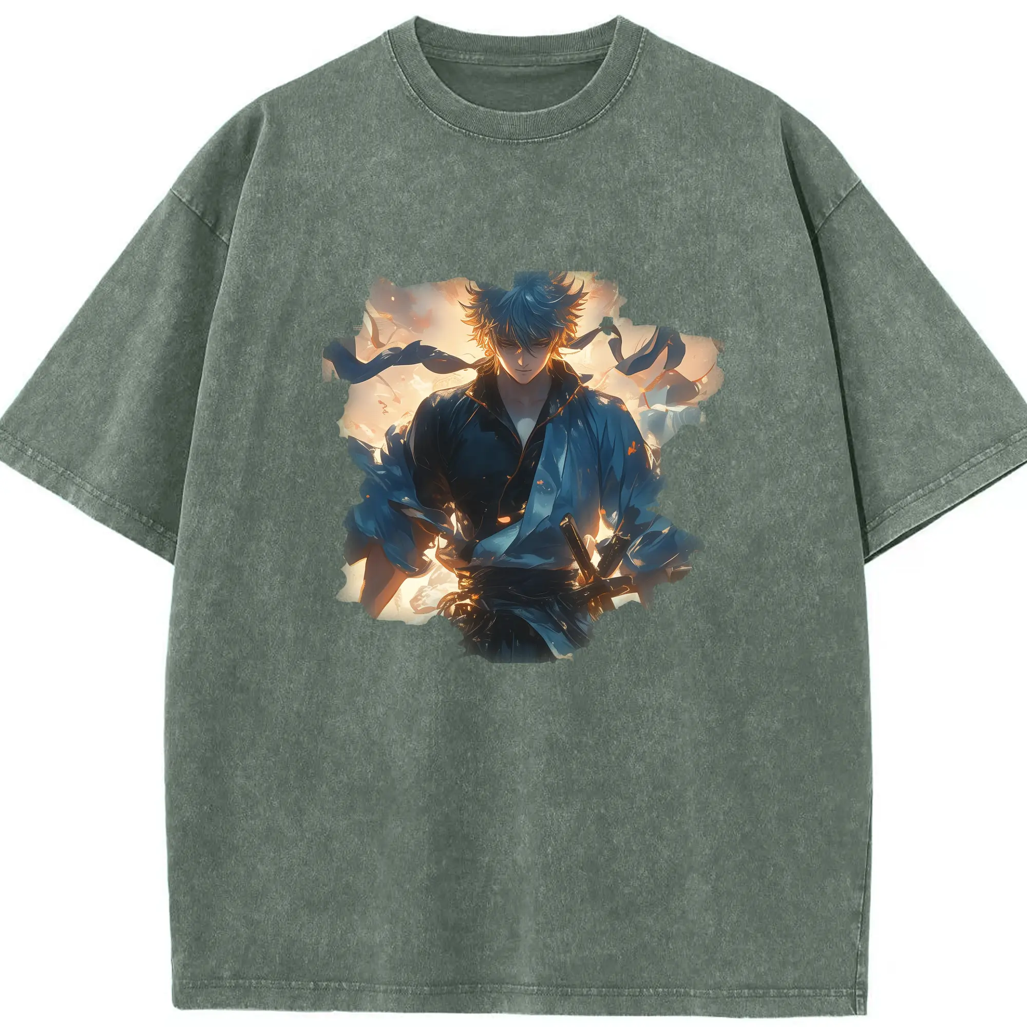 銀魂 グッズ 坂田 銀時 - 綿100% ヴィンテージ風 半袖Tシャツ ・ 背面プリント ・ 柔らか肌触り ・ 通気性 快適 ・ スポーツ カジュアル 外出用