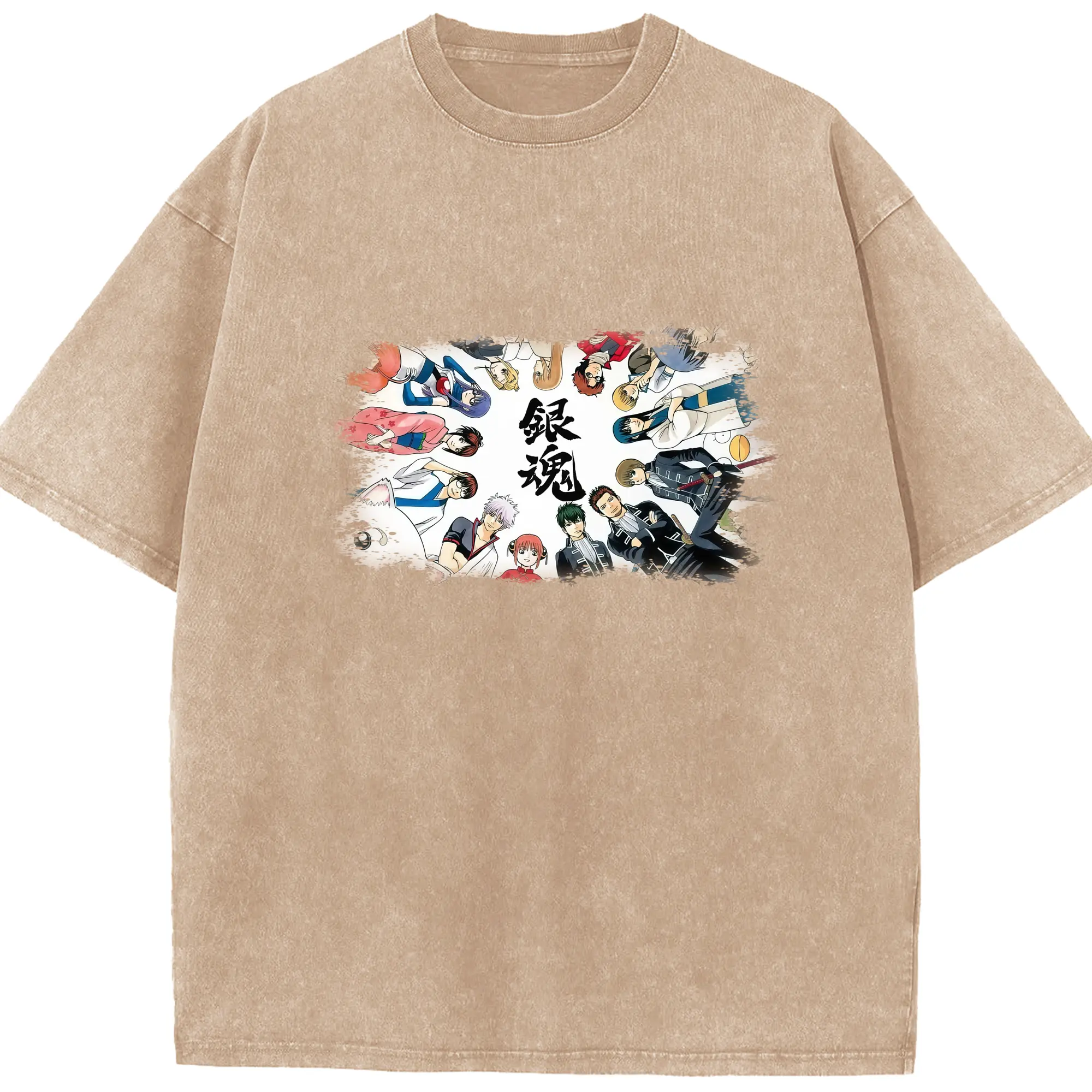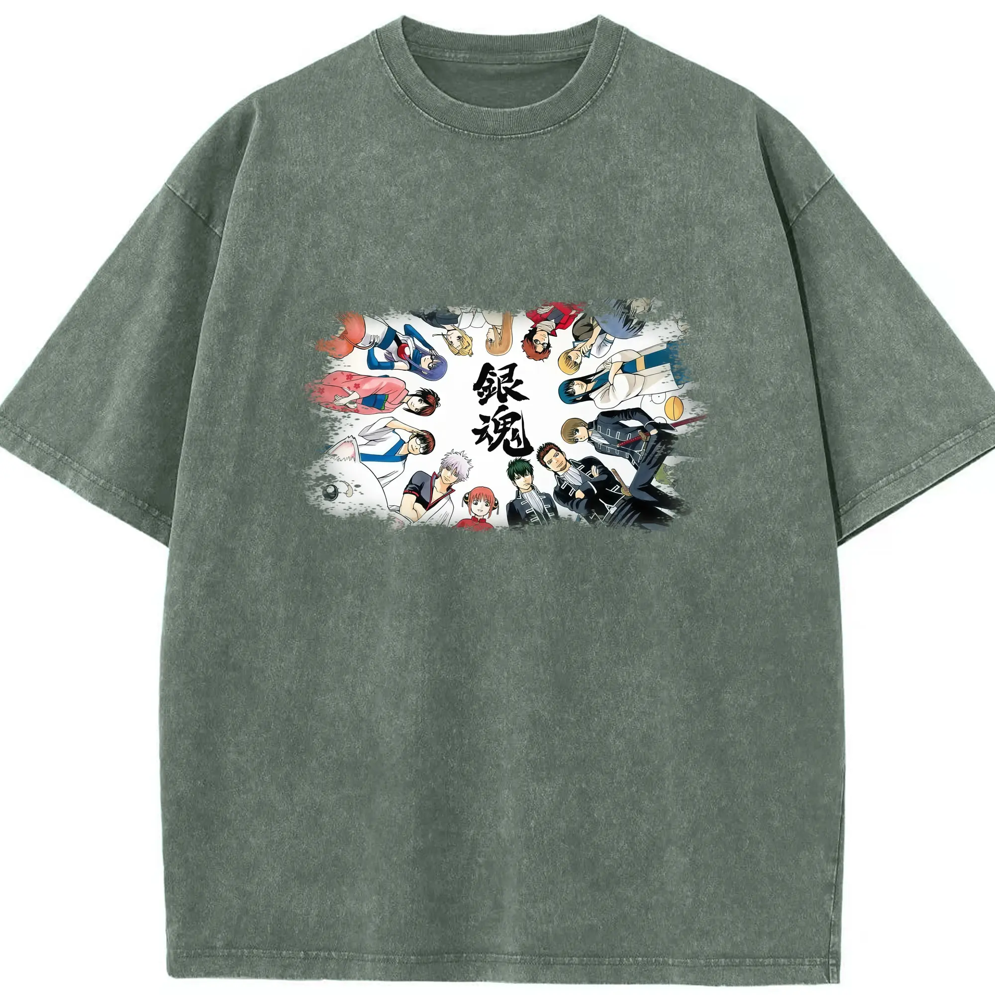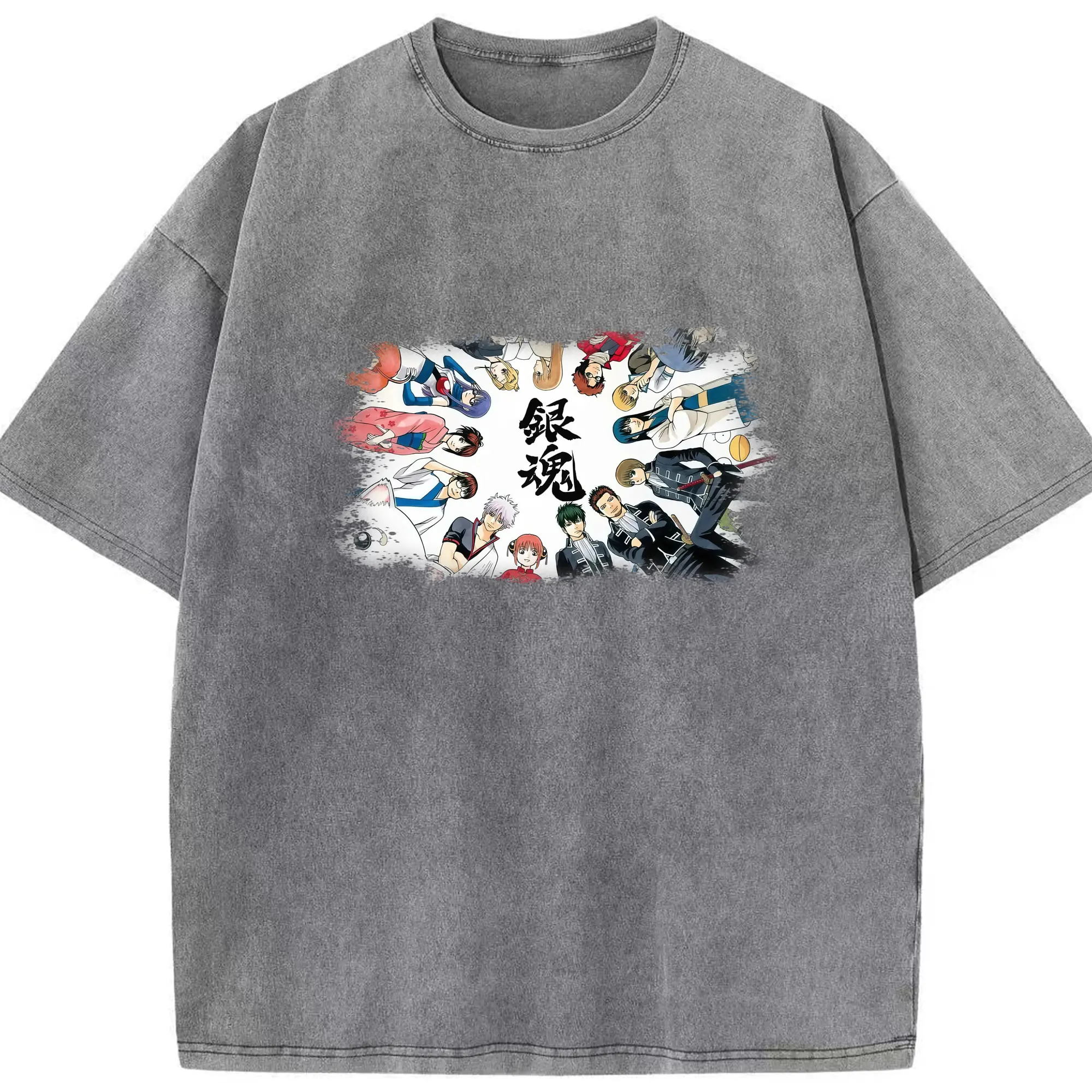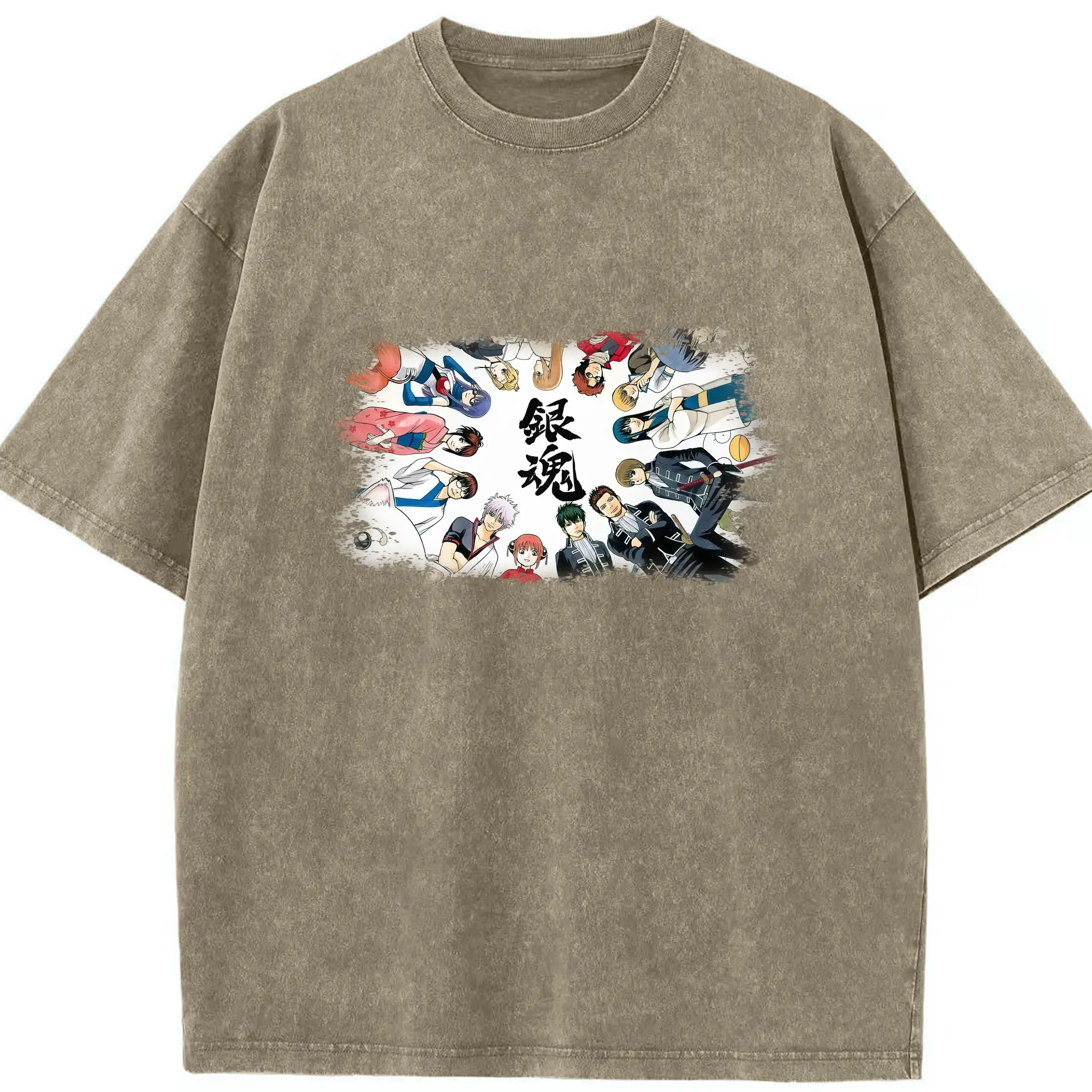 銀魂 グッズ 坂田 銀時 - 綿100% ヴィンテージ風 半袖Tシャツ ・ 背面プリント ・ 柔らか肌触り ・ 通気性 快適 ・ スポーツ カジュアル 外出用