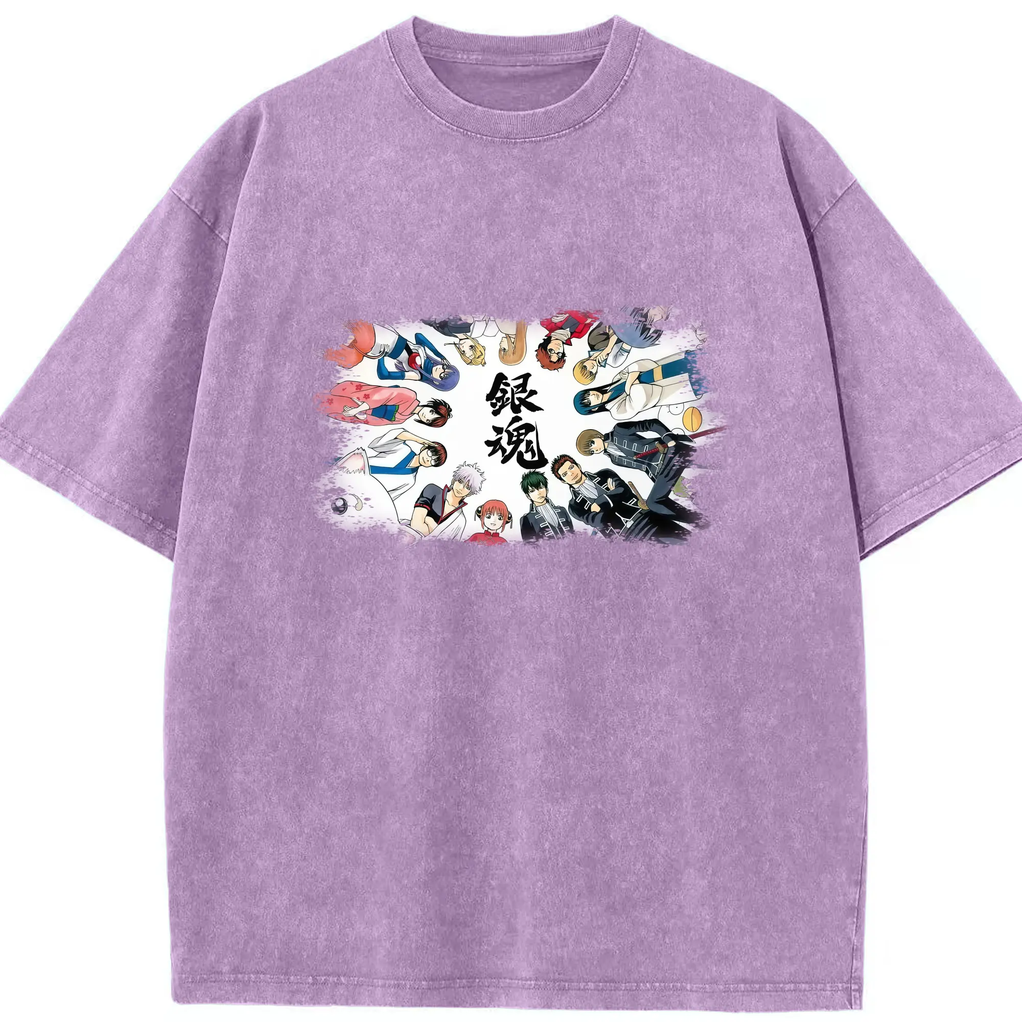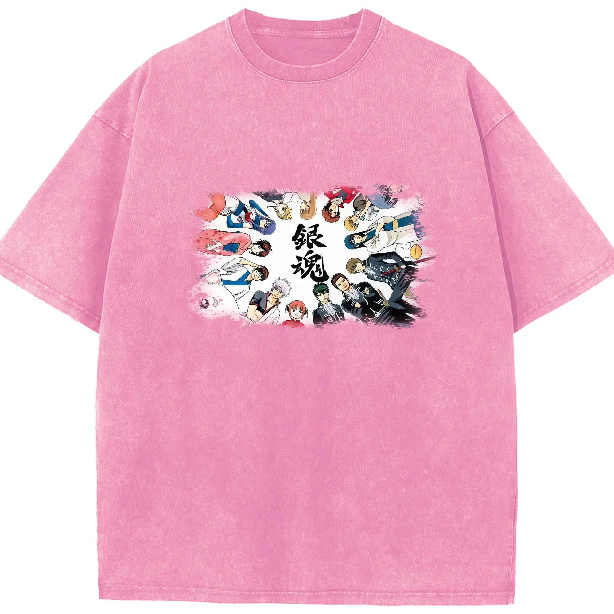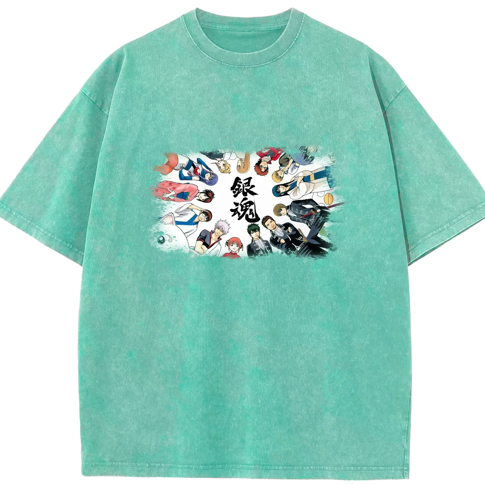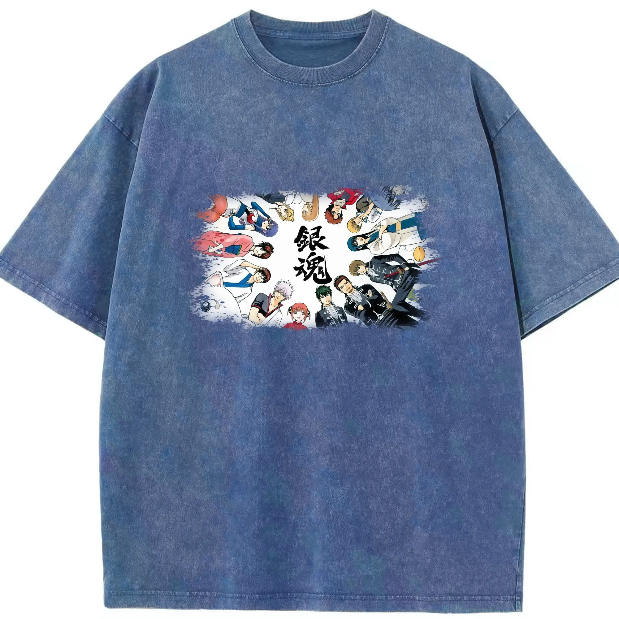 銀魂 グッズ 坂田 銀時 - 綿100% ヴィンテージ風 半袖Tシャツ ・ 背面プリント ・ 柔らか肌触り ・ 通気性 快適 ・ スポーツ カジュアル 外出用