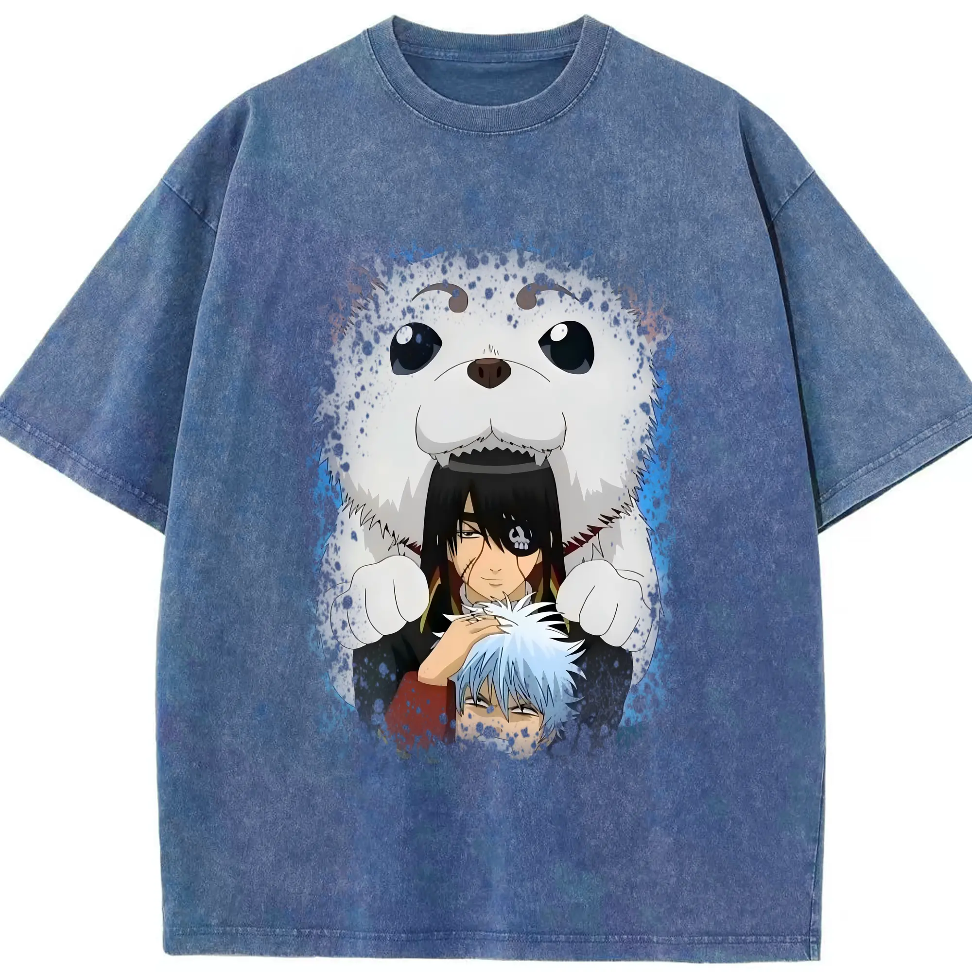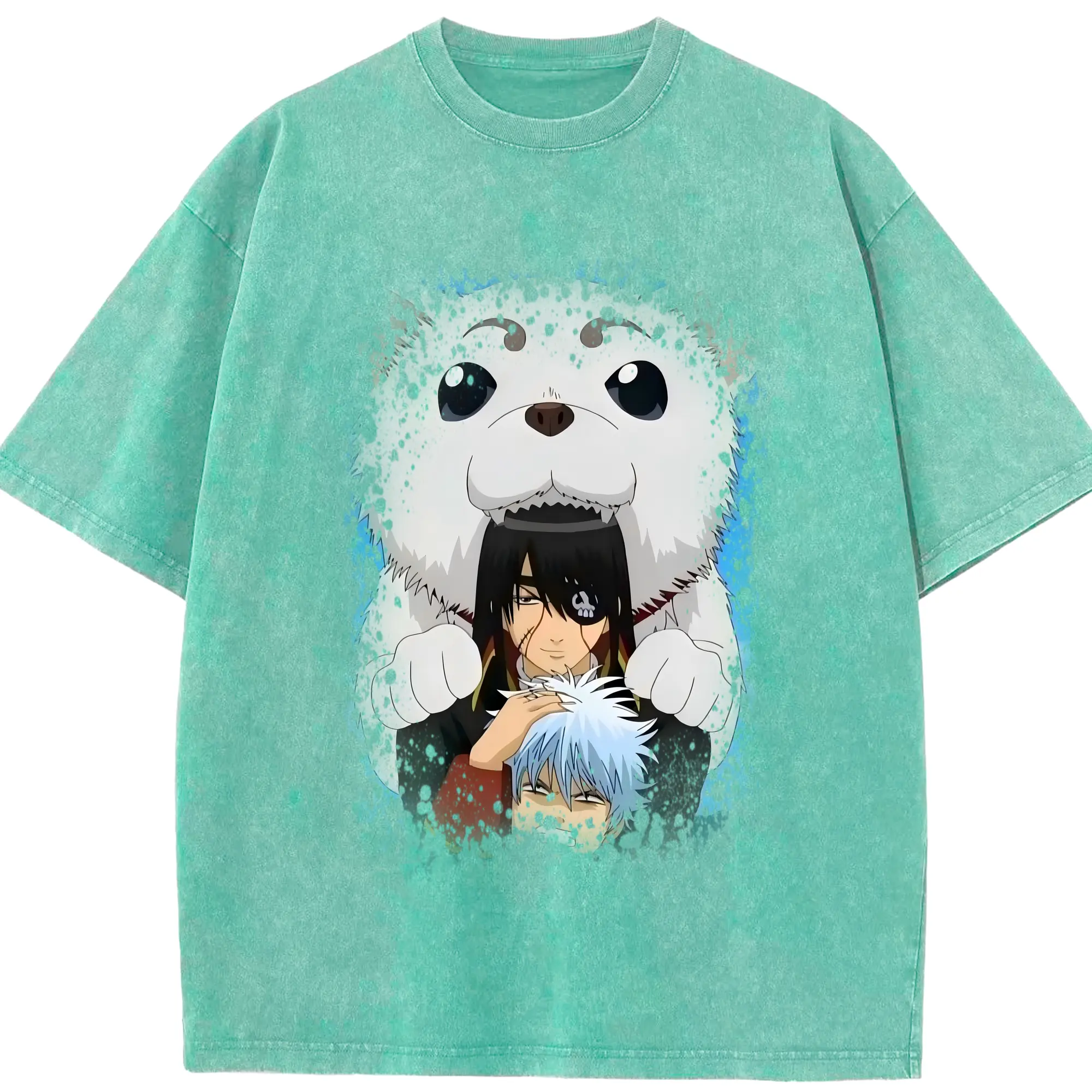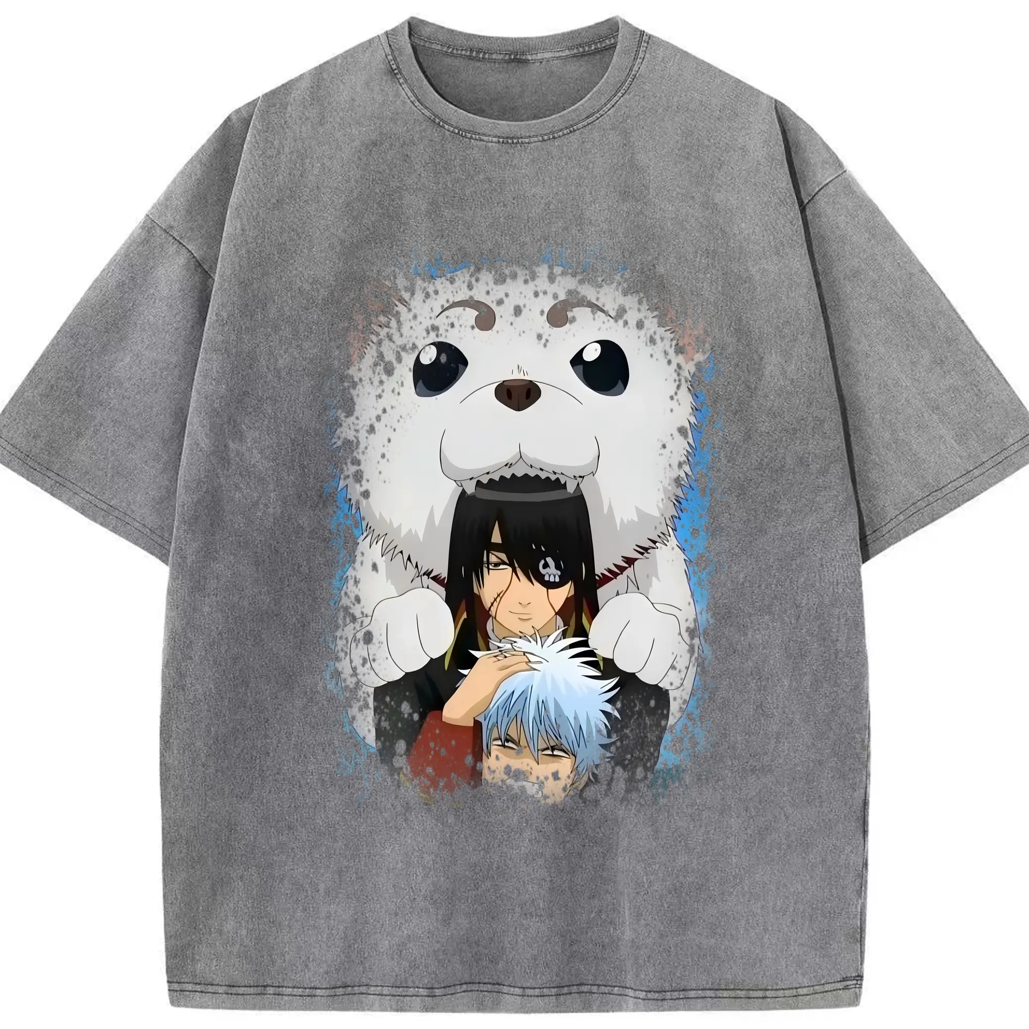 銀魂 グッズ 坂田 銀時 - 綿100% ヴィンテージ風 半袖Tシャツ ・ 背面プリント ・ 柔らか肌触り ・ 通気性 快適 ・ スポーツ カジュアル 外出用
