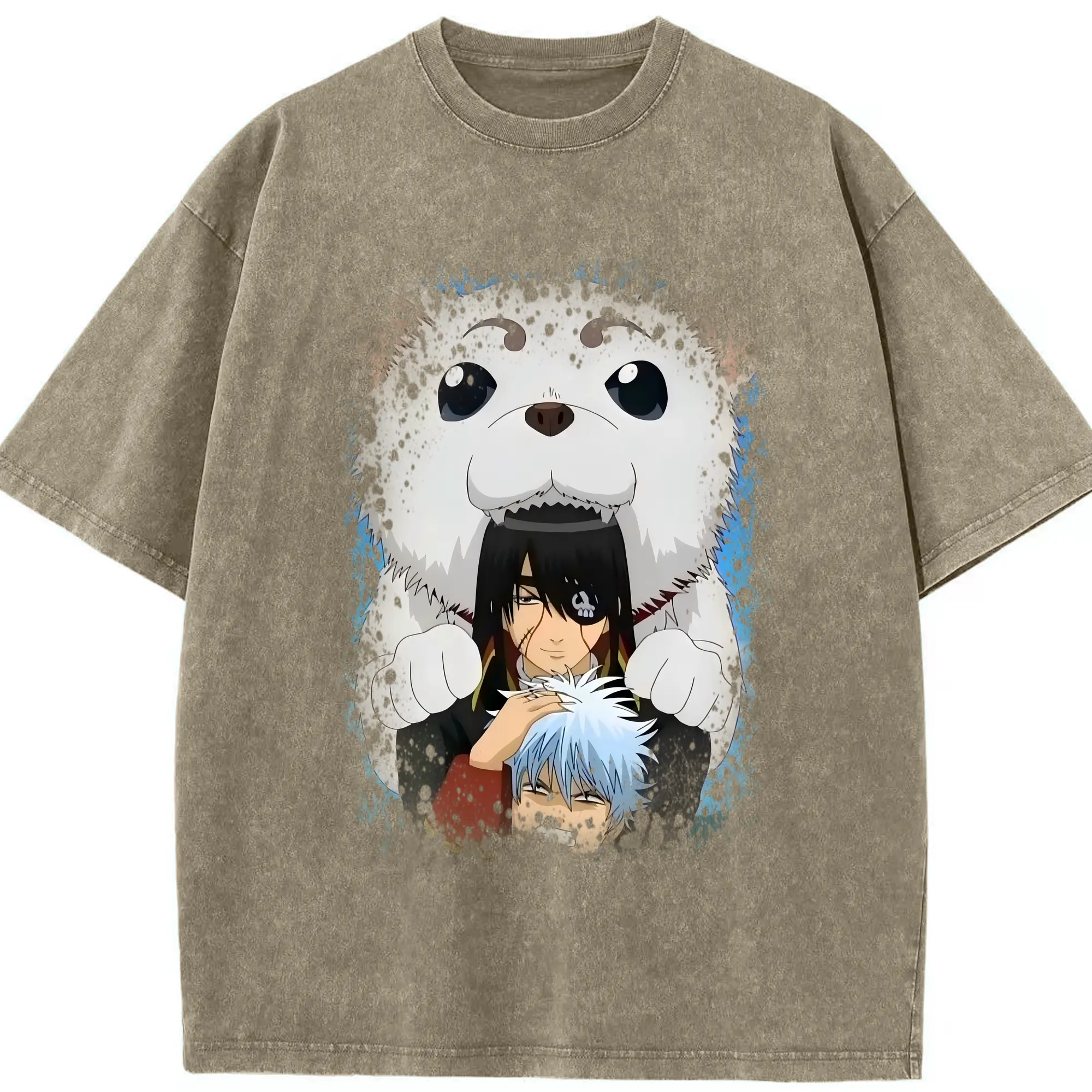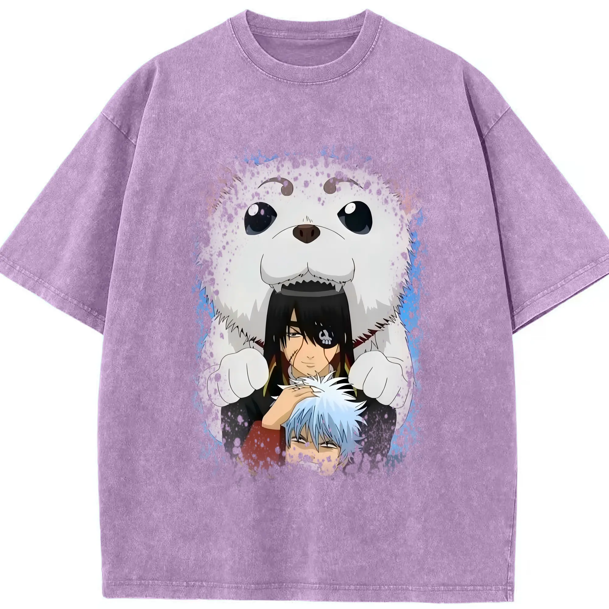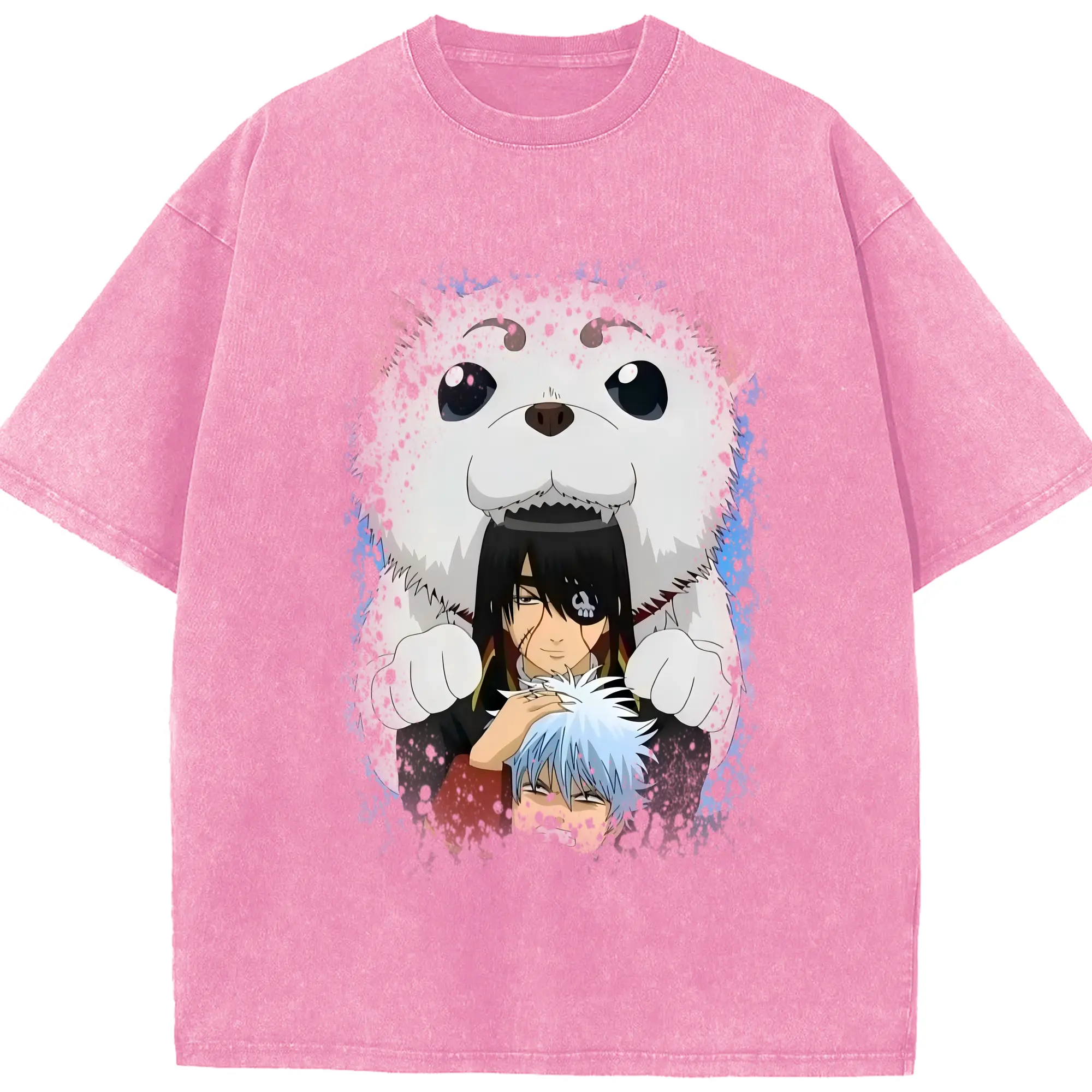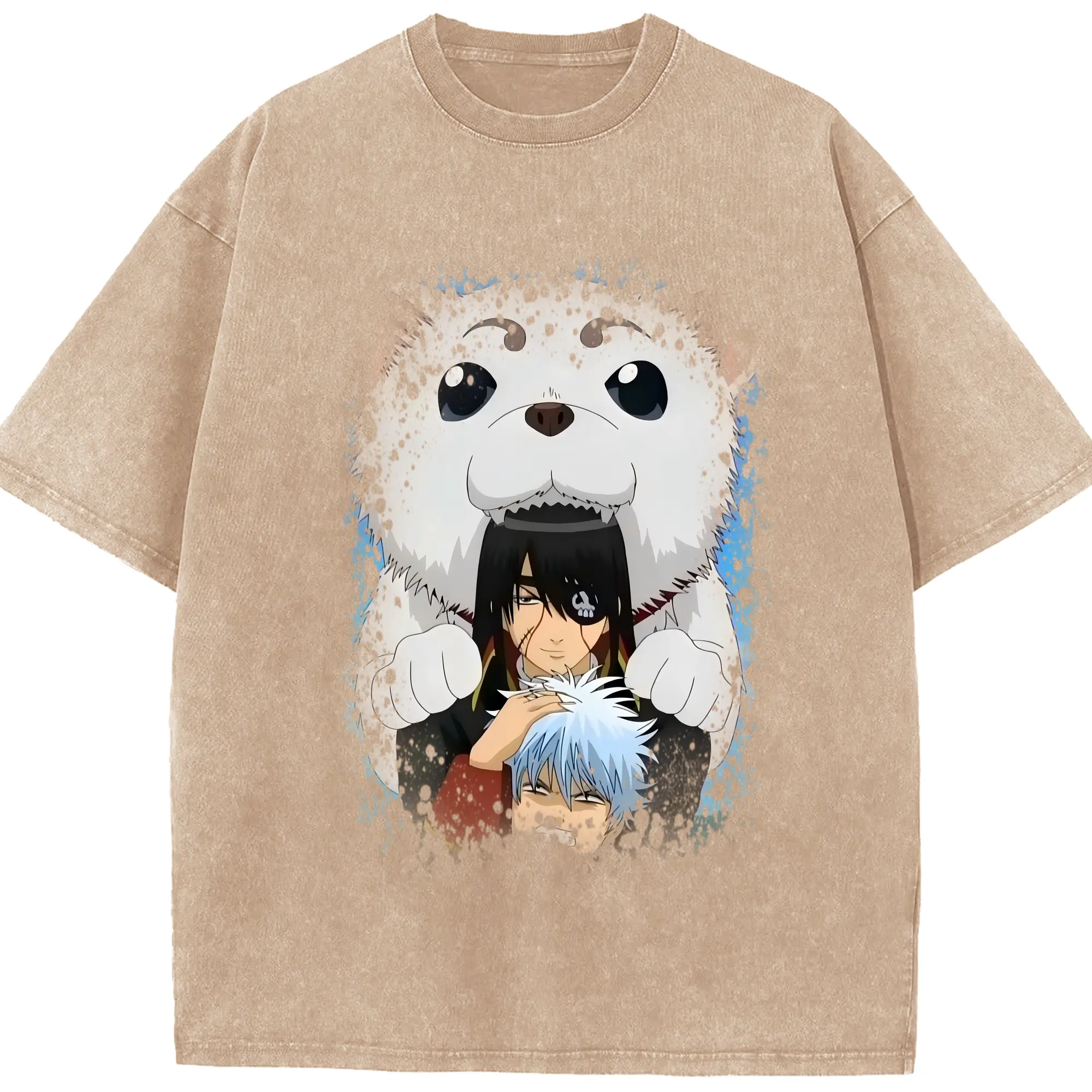 銀魂 グッズ 坂田 銀時 - 綿100% ヴィンテージ風 半袖Tシャツ ・ 背面プリント ・ 柔らか肌触り ・ 通気性 快適 ・ スポーツ カジュアル 外出用