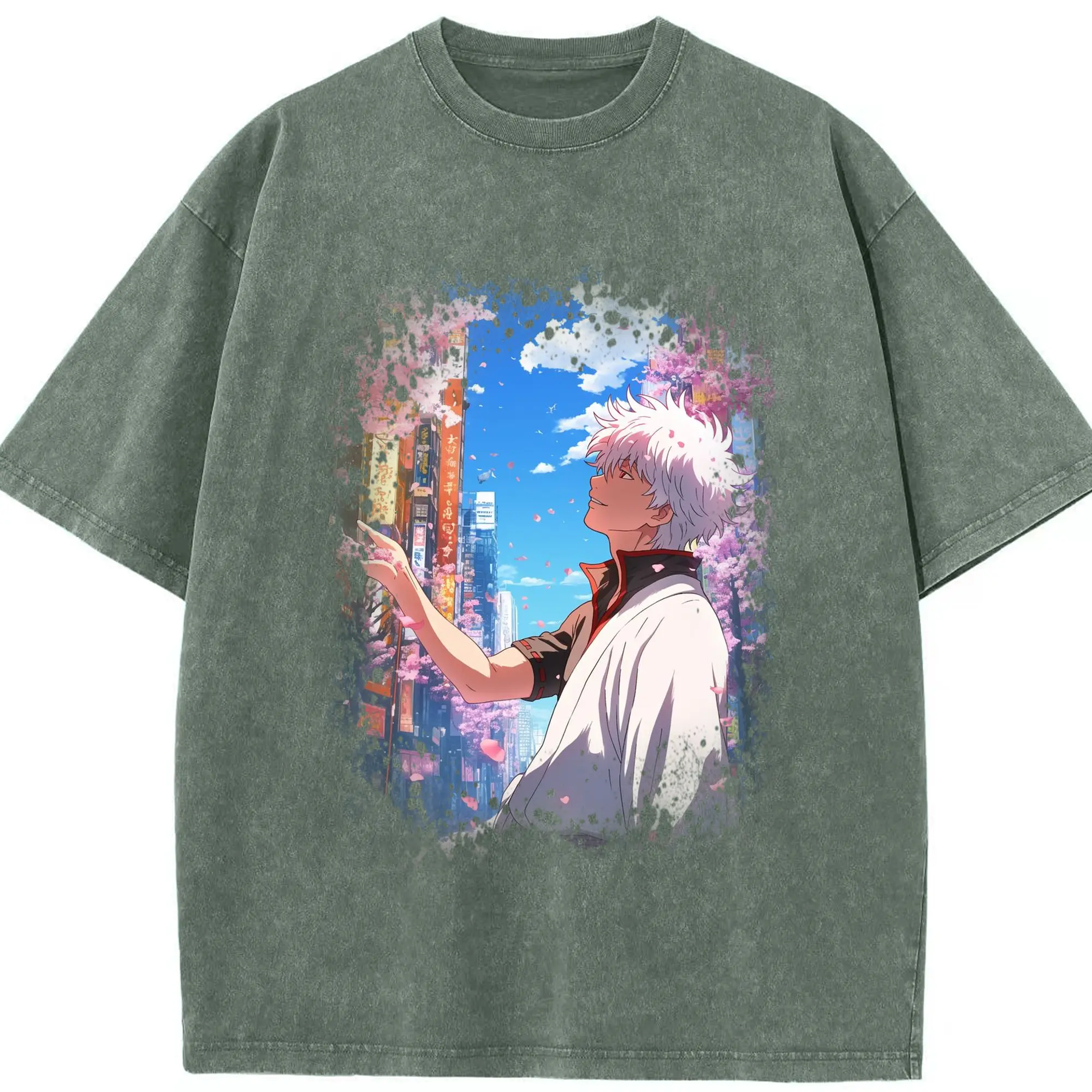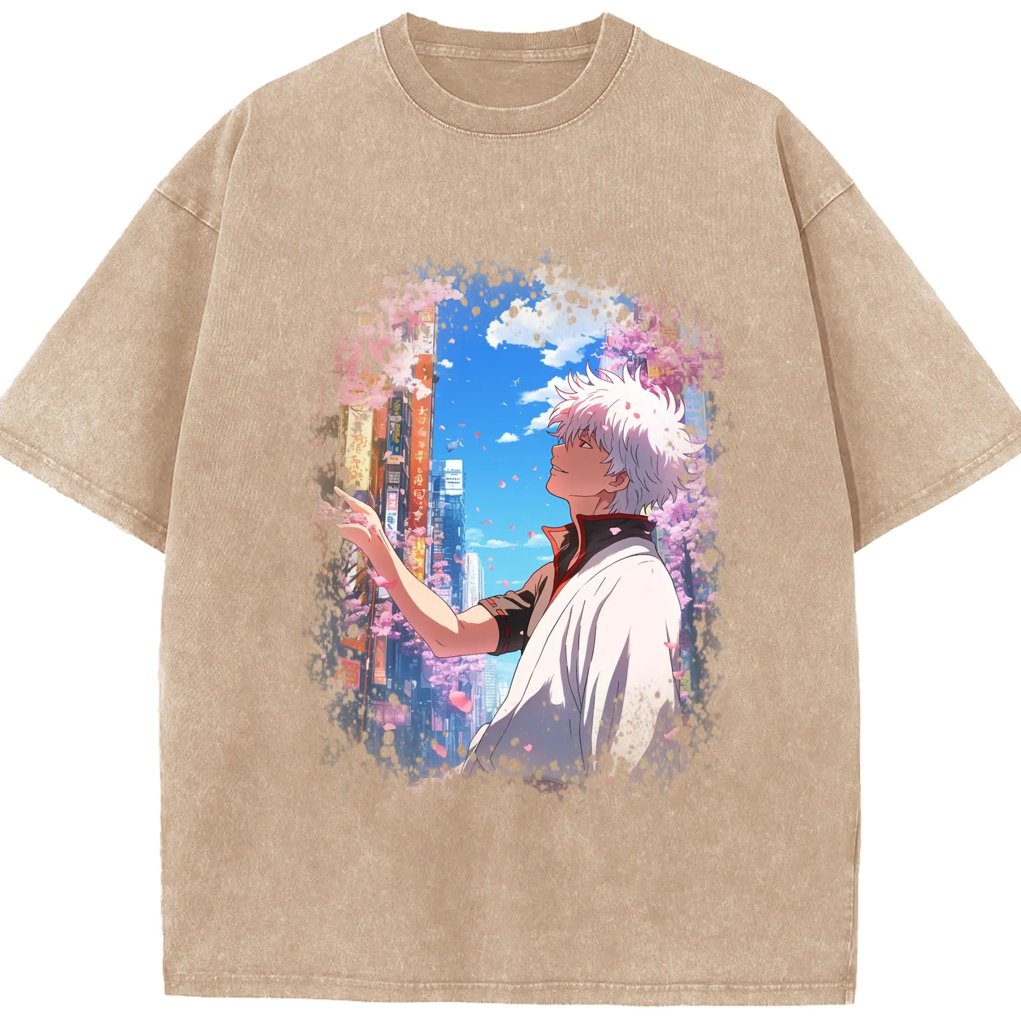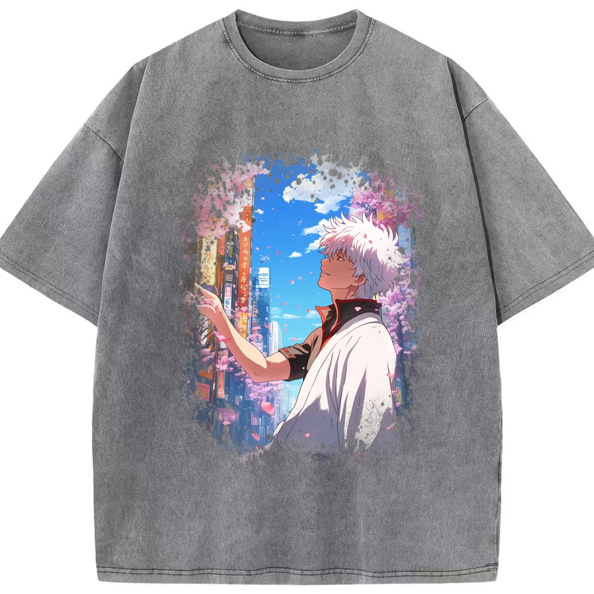 銀魂 グッズ 坂田 銀時 - 綿100% ヴィンテージ風 半袖Tシャツ ・ 背面プリント ・ 柔らか肌触り ・ 通気性 快適 ・ スポーツ カジュアル 外出用