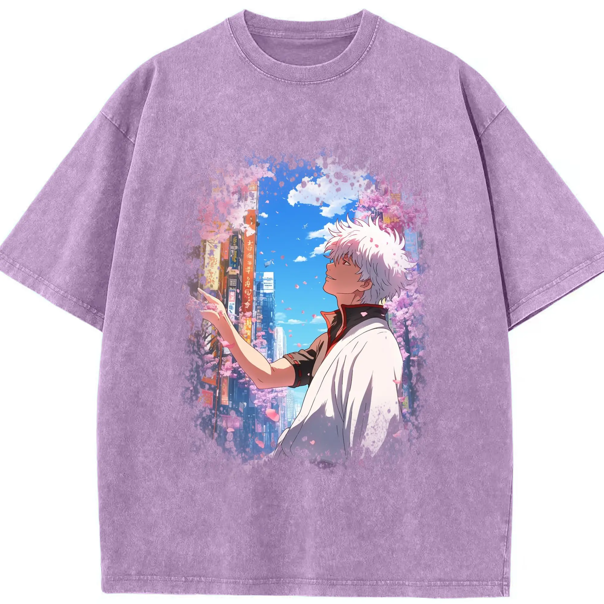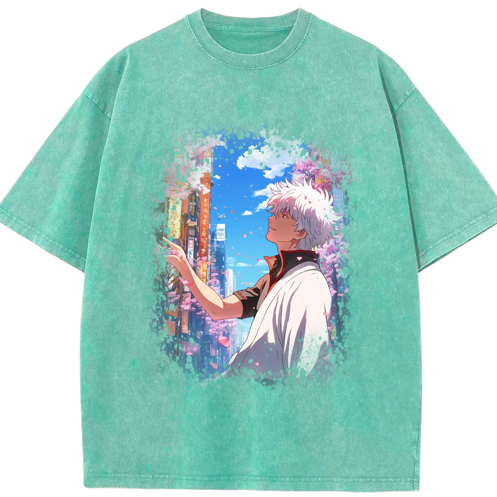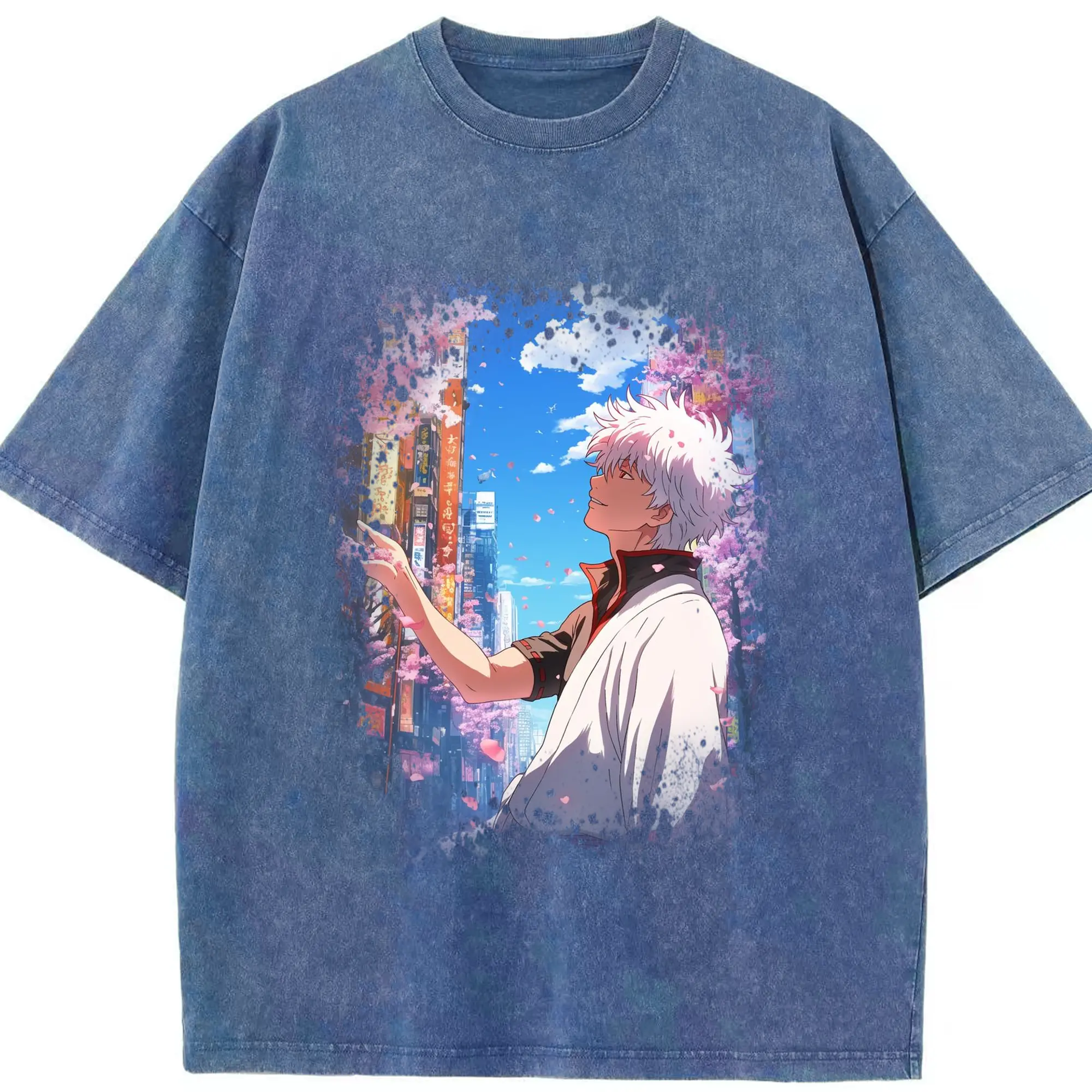 銀魂 グッズ 坂田 銀時 - 綿100% ヴィンテージ風 半袖Tシャツ ・ 背面プリント ・ 柔らか肌触り ・ 通気性 快適 ・ スポーツ カジュアル 外出用