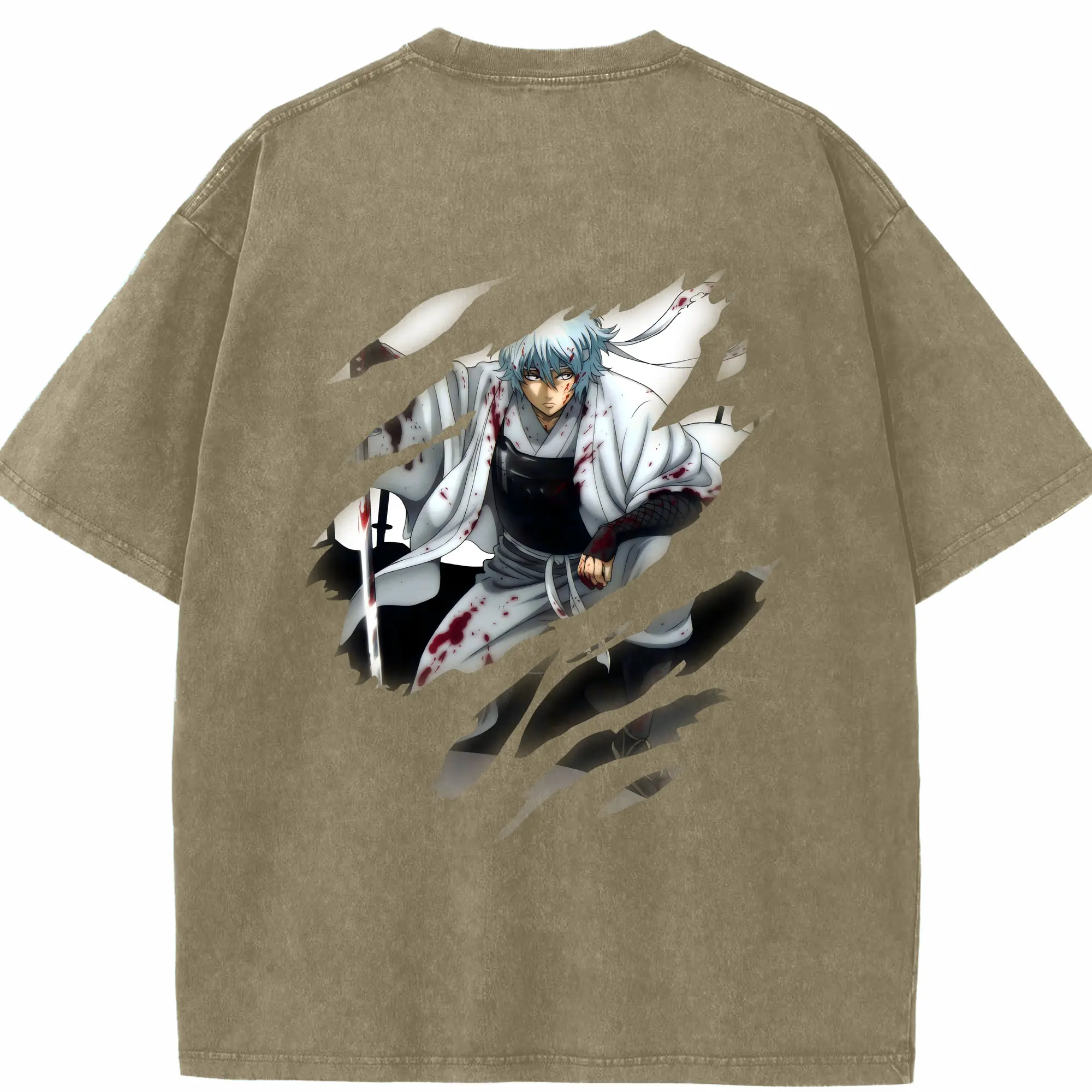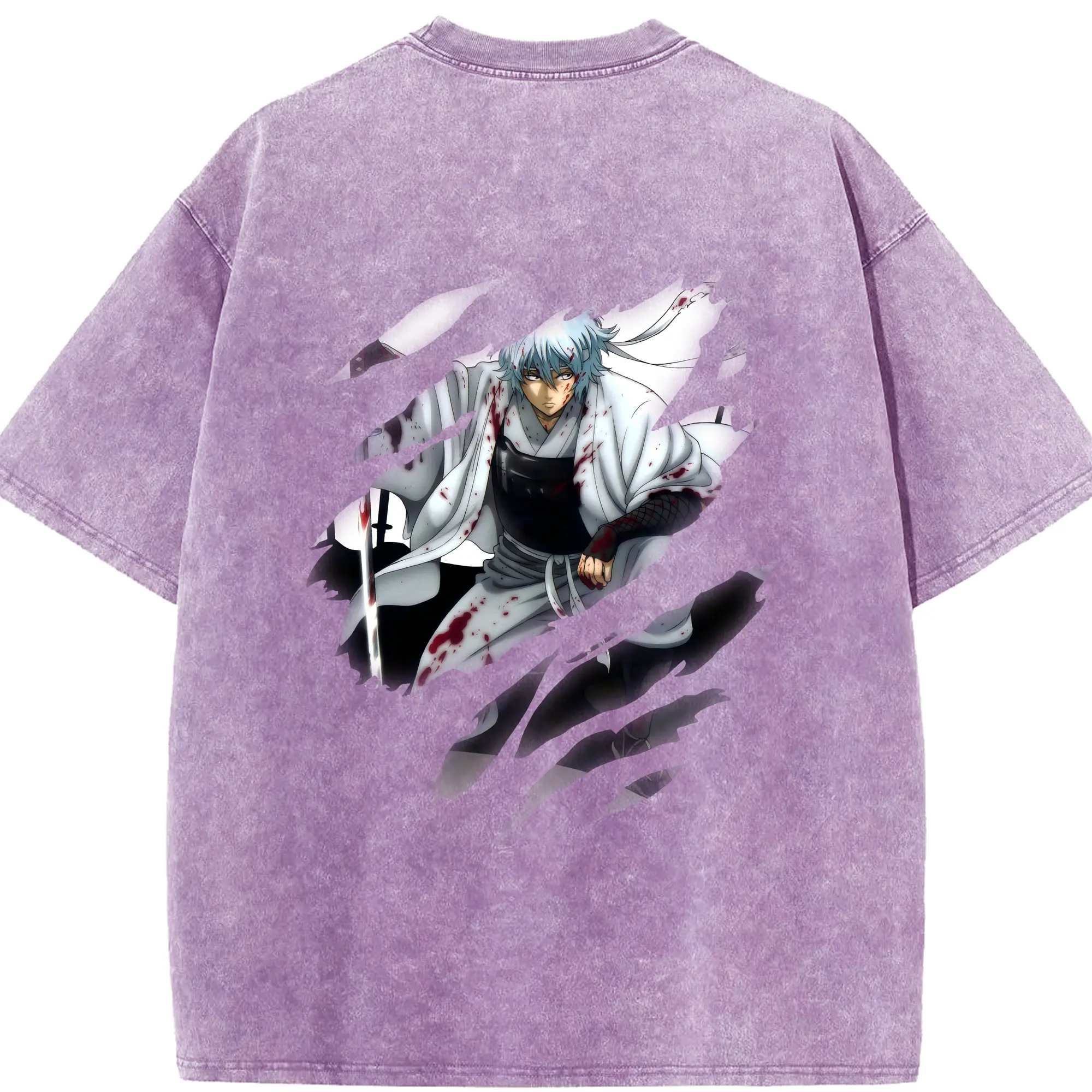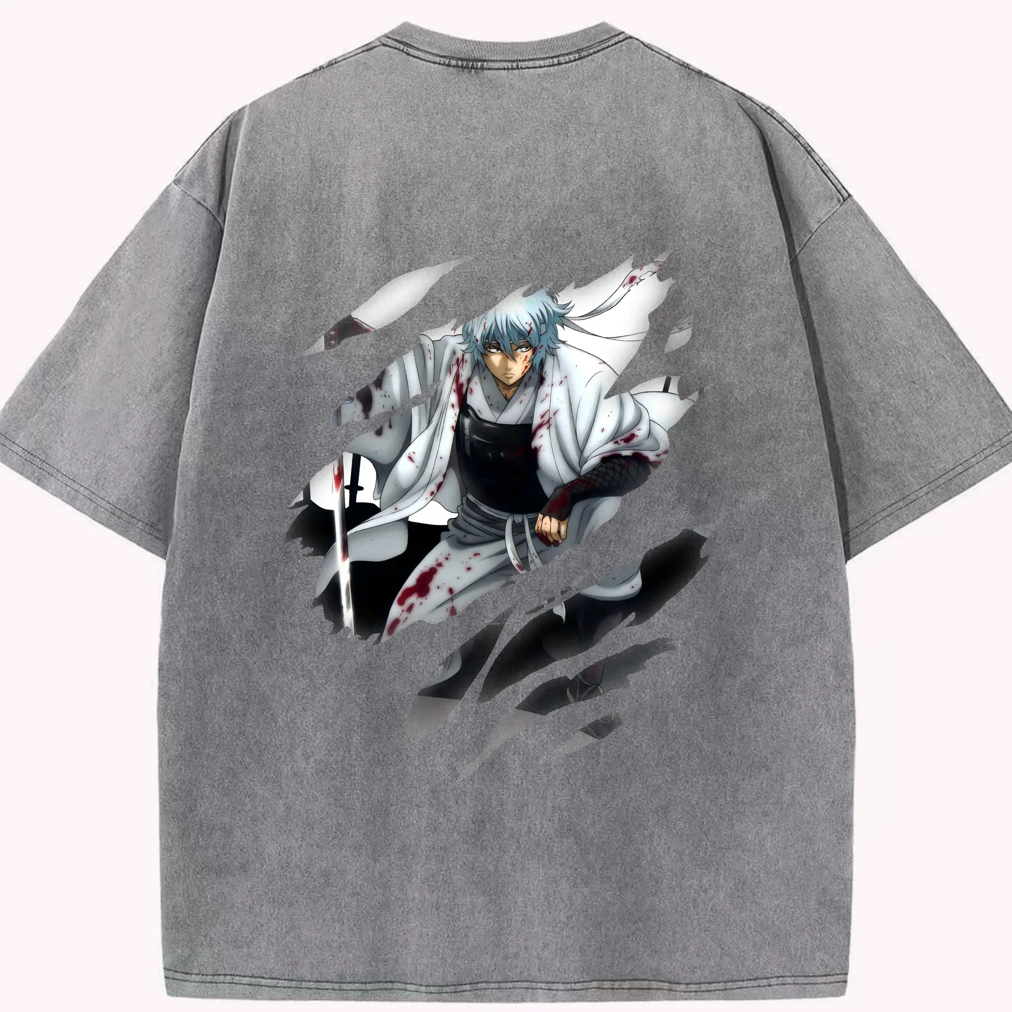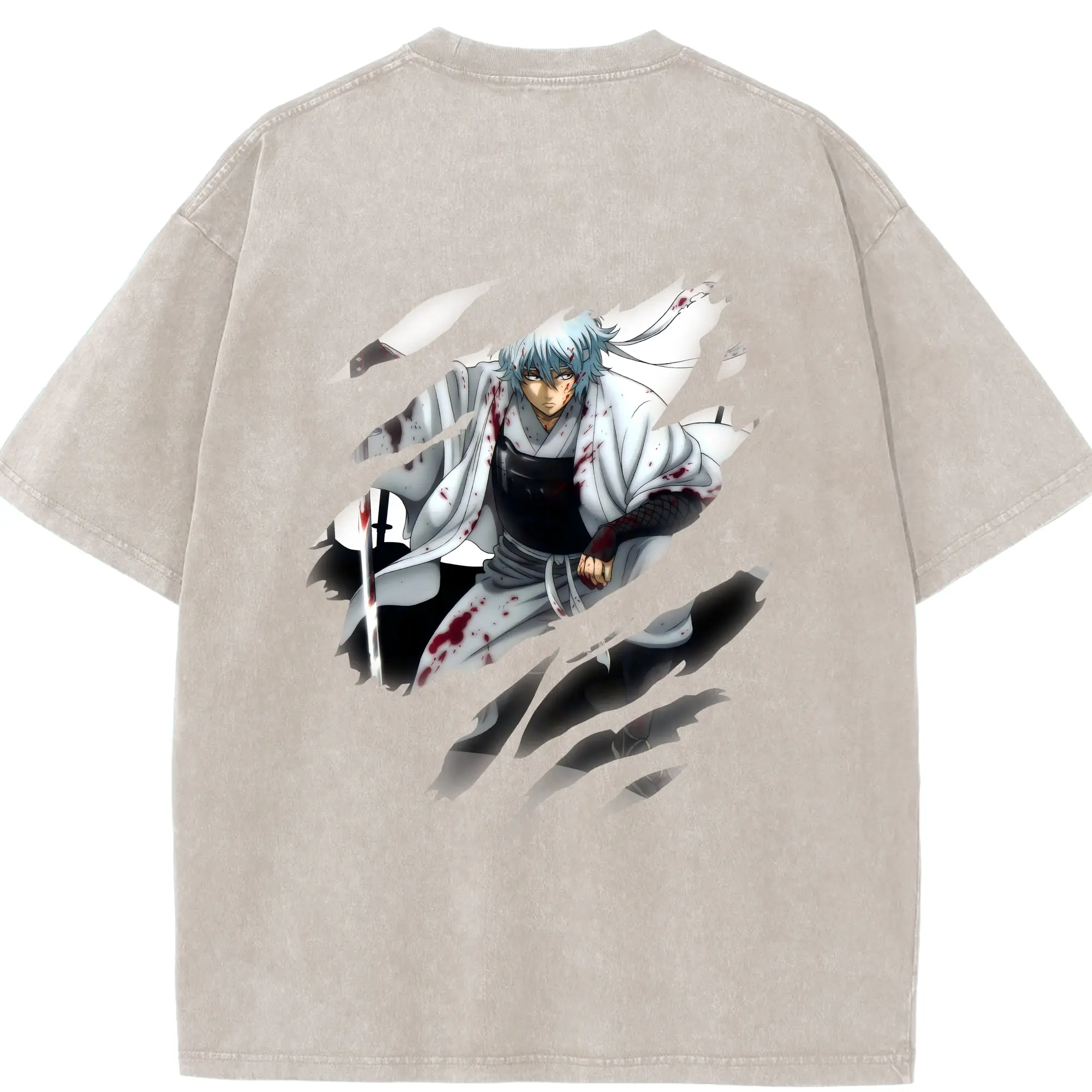 銀魂 グッズ 坂田 銀時 - 綿100% ヴィンテージ風 半袖Tシャツ ・ フロントプリント ・ 柔らか肌触り ・ 通気性 快適 ・ スポーツ カジュアル 外出用