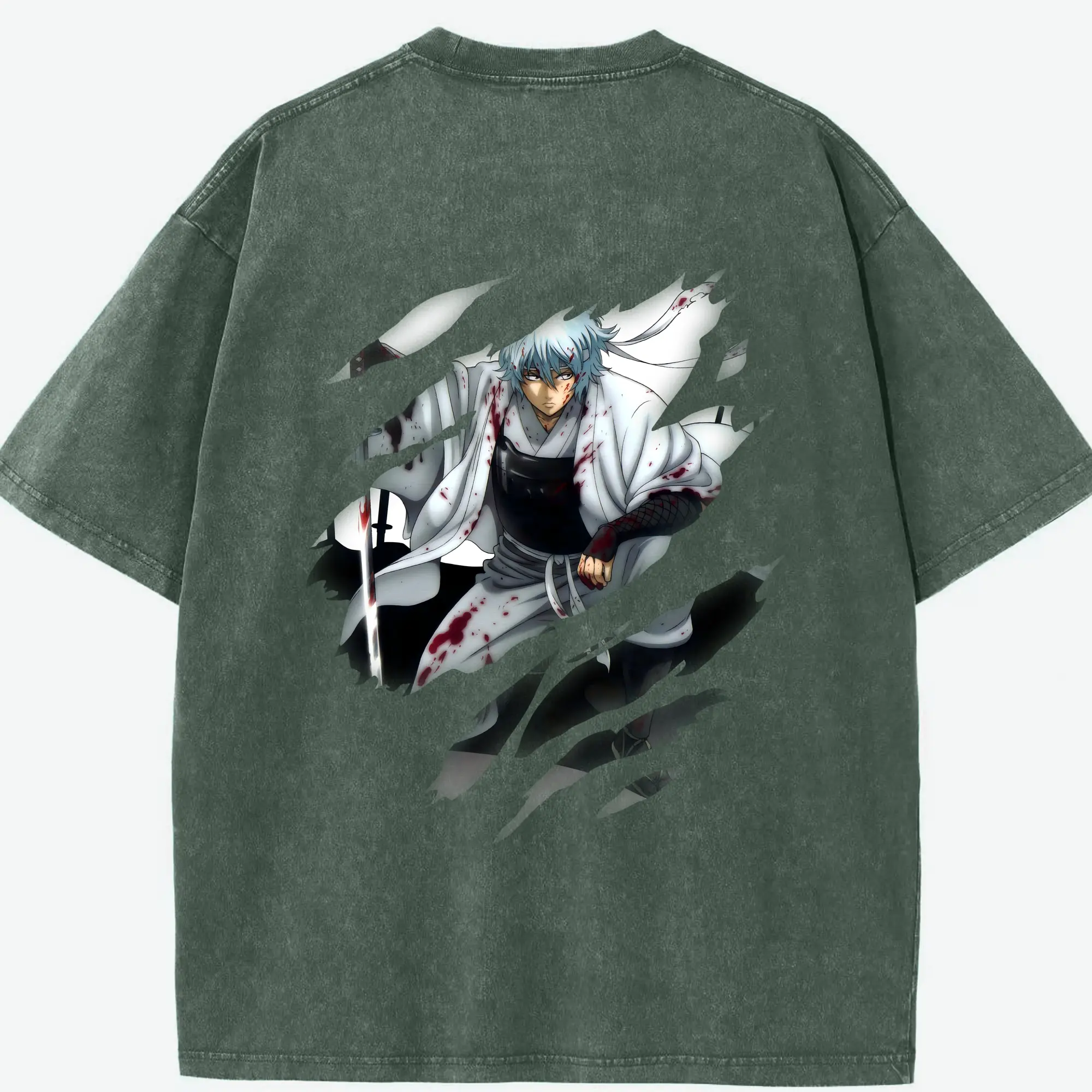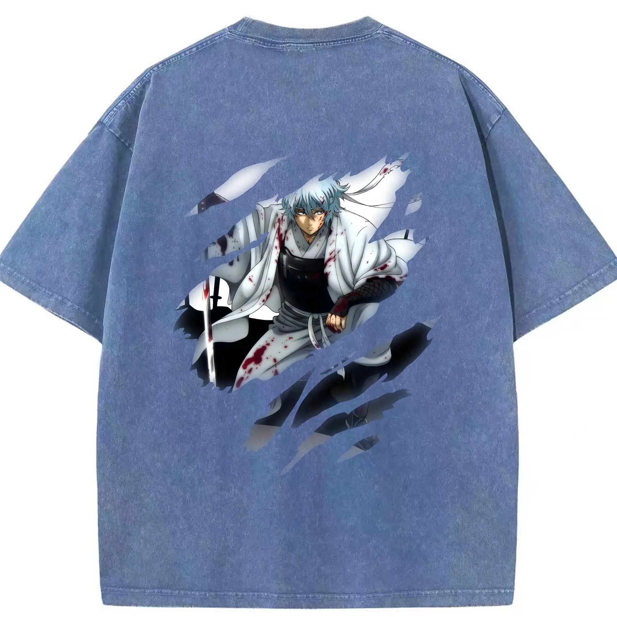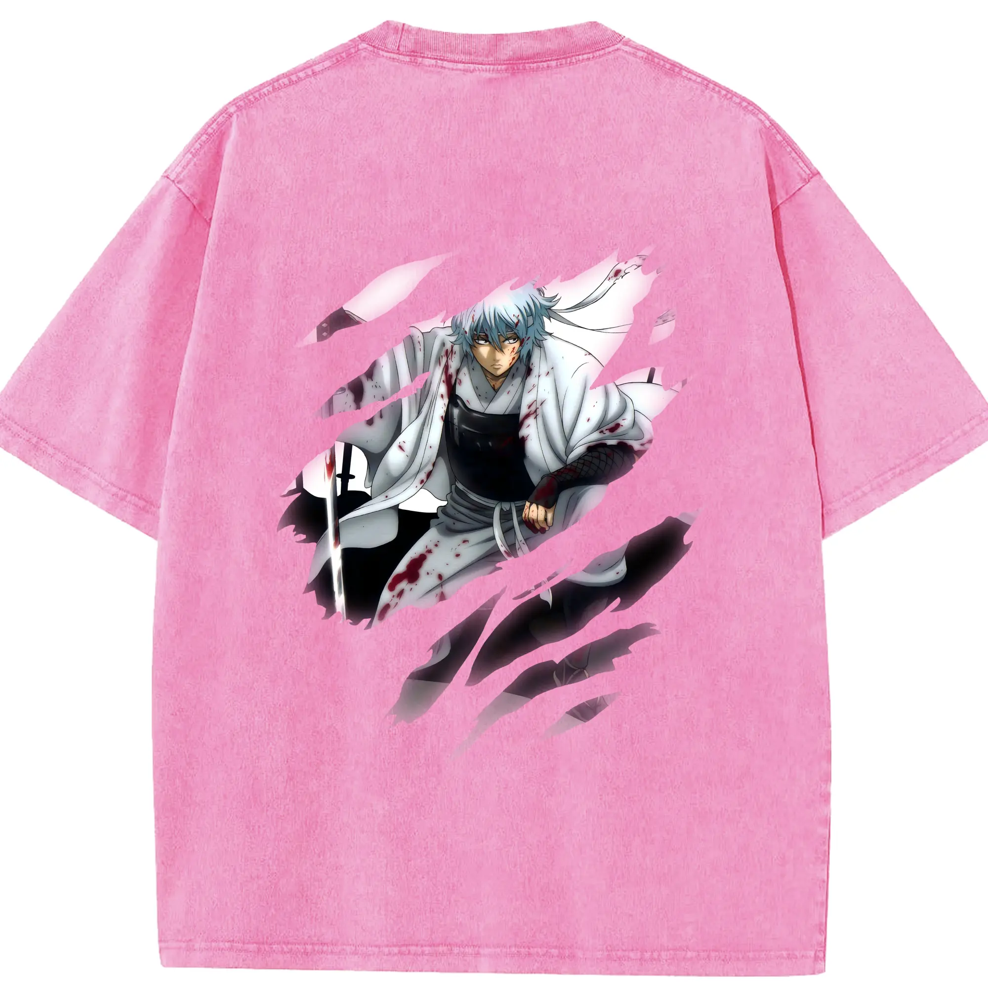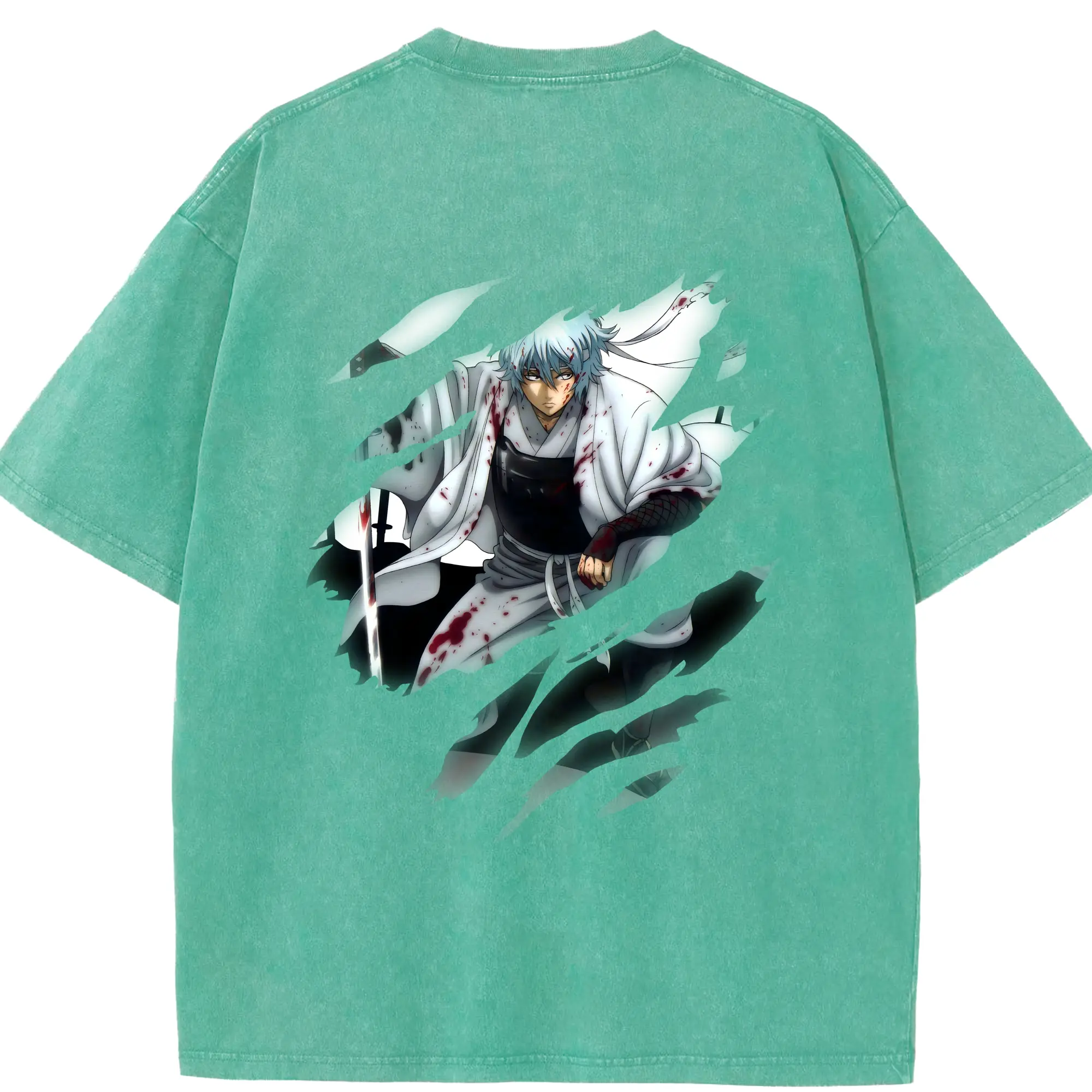 銀魂 グッズ 坂田 銀時 - 綿100% ヴィンテージ風 半袖Tシャツ ・ フロントプリント ・ 柔らか肌触り ・ 通気性 快適 ・ スポーツ カジュアル 外出用