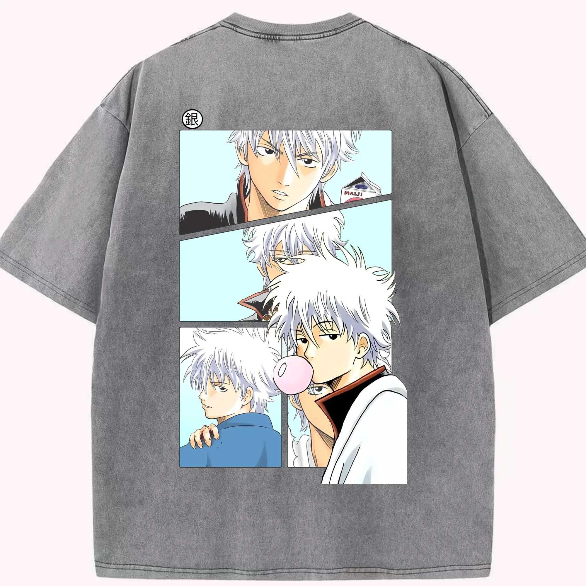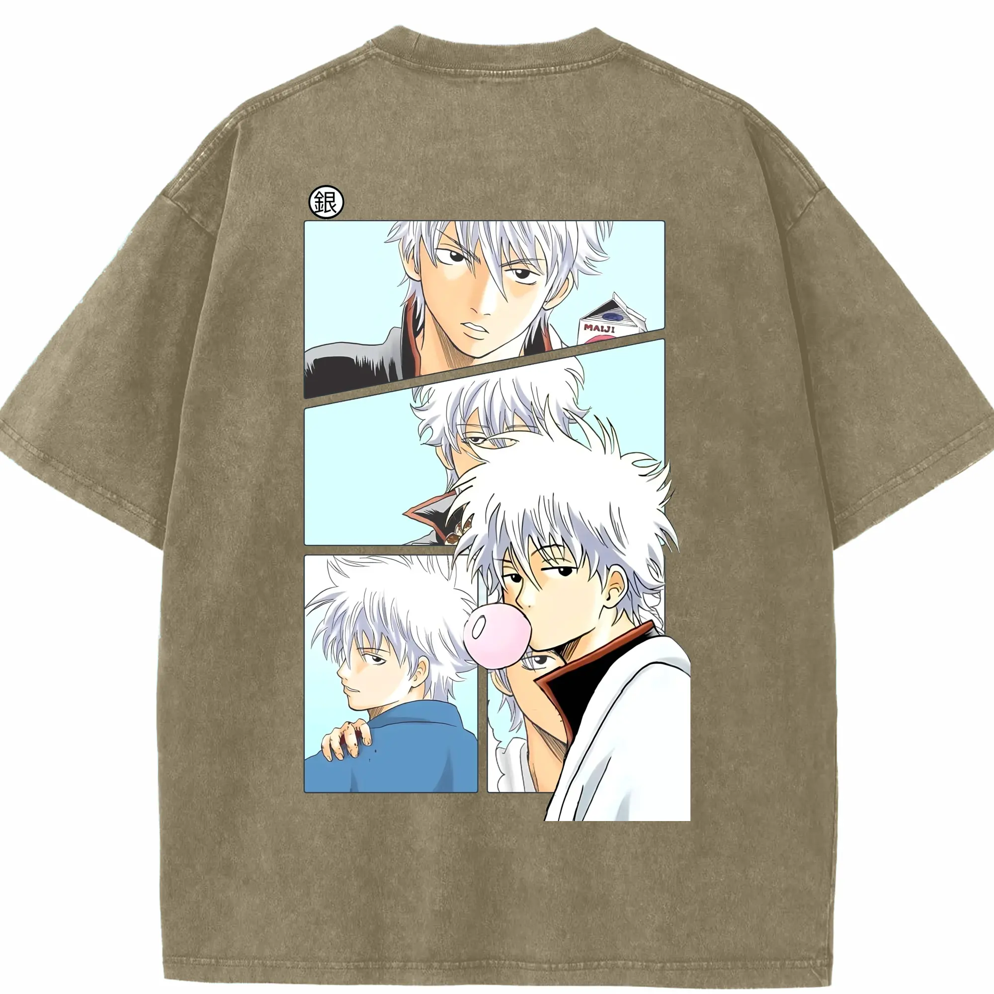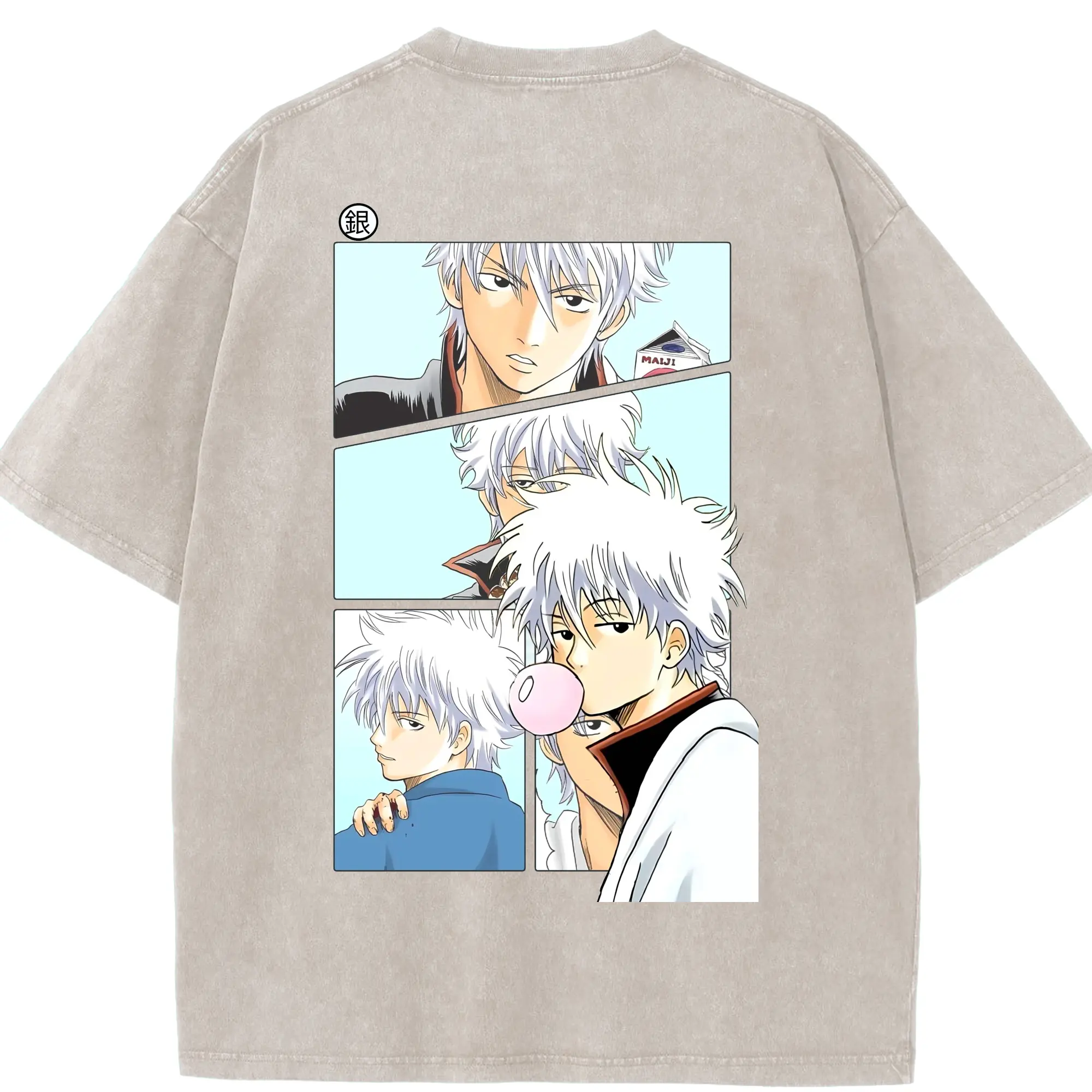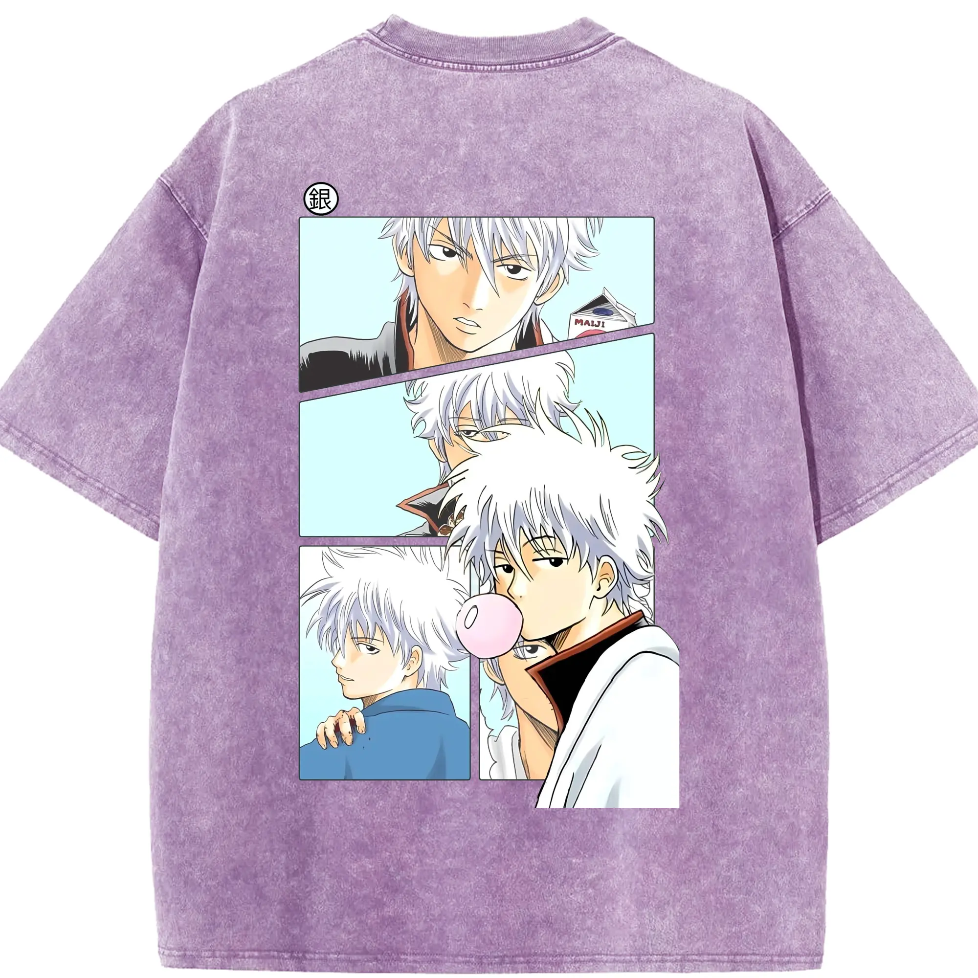 銀魂 グッズ 坂田 銀時 - 綿100% ヴィンテージ風 半袖Tシャツ ・ フロントプリント ・ 柔らか肌触り ・ 通気性 快適 ・ スポーツ カジュアル 外出用