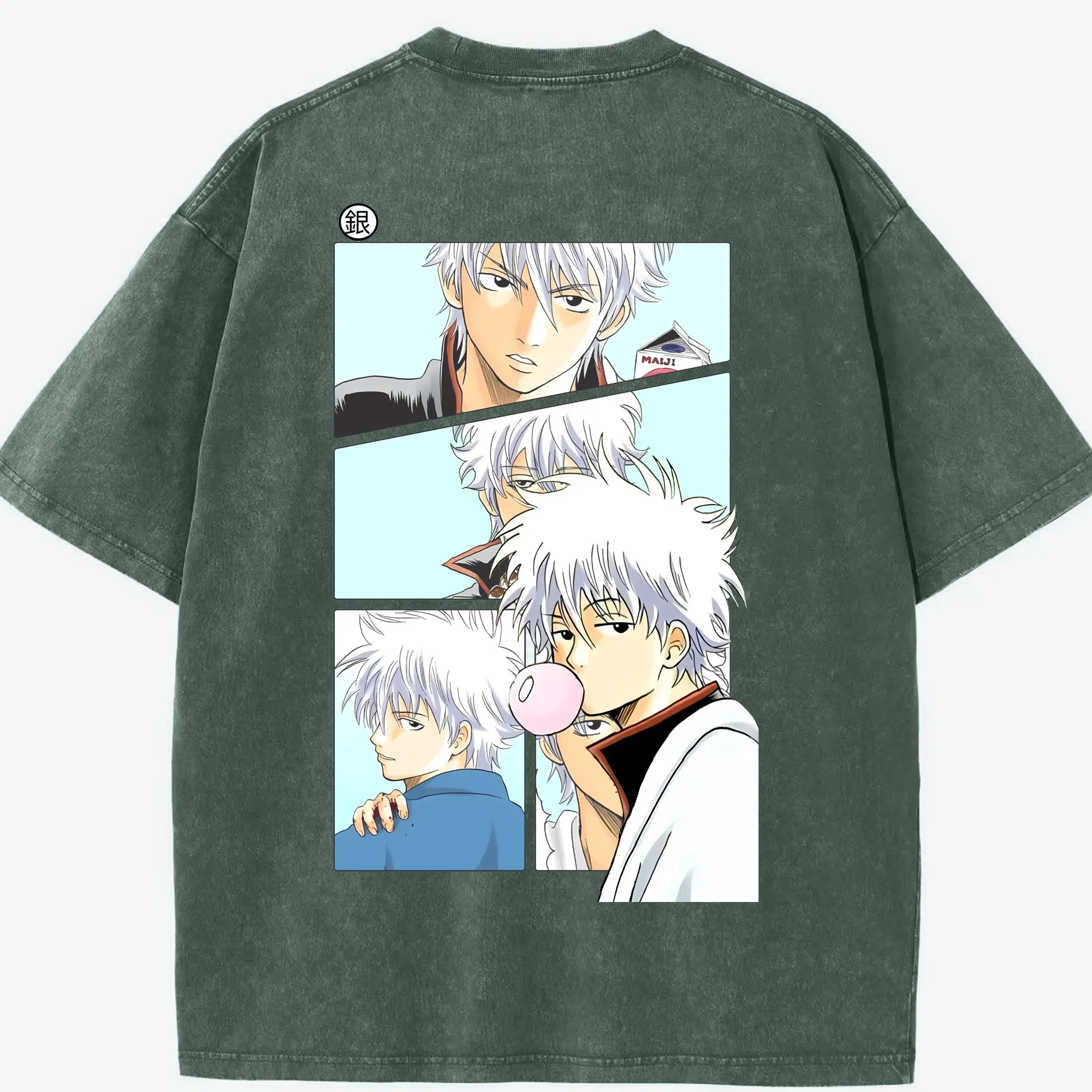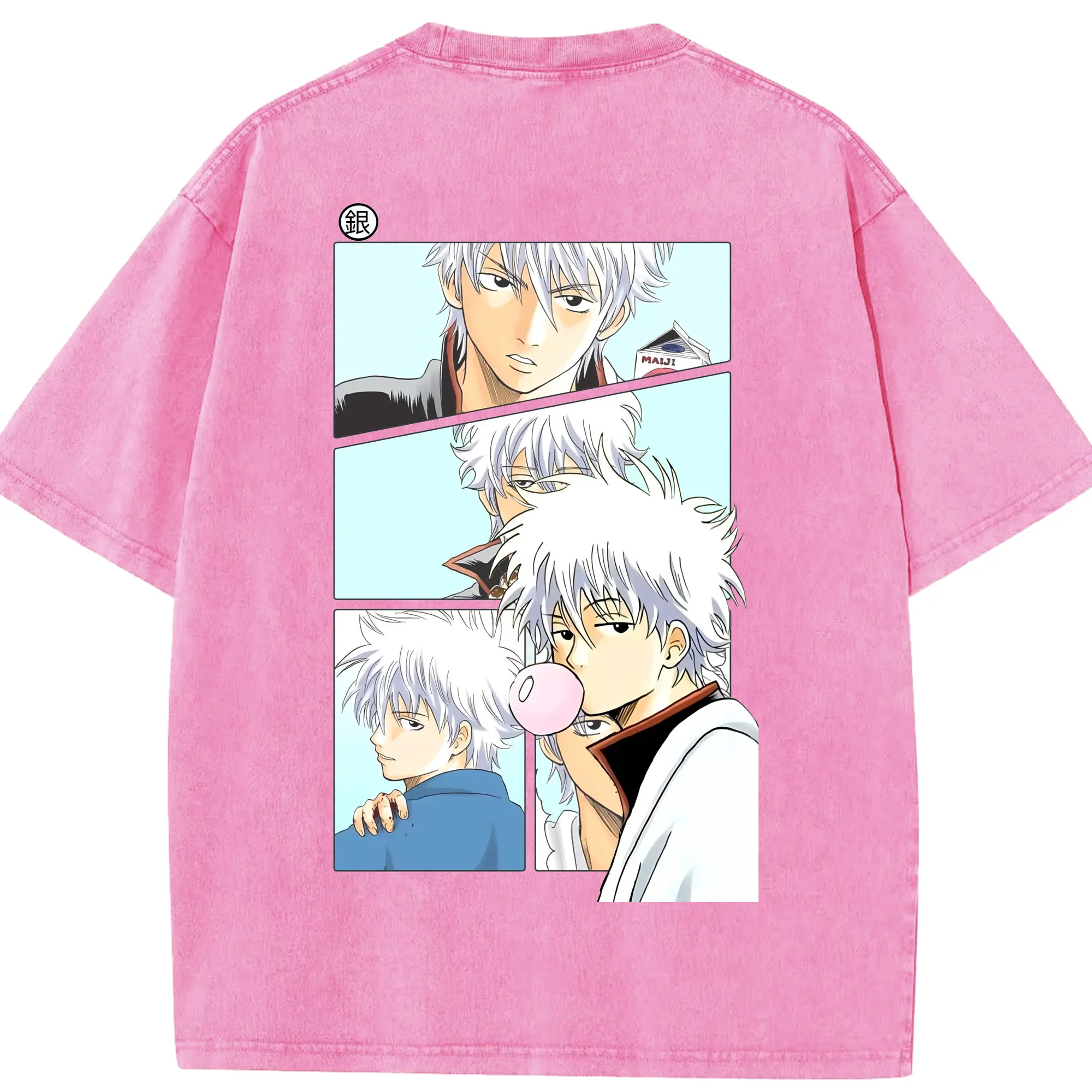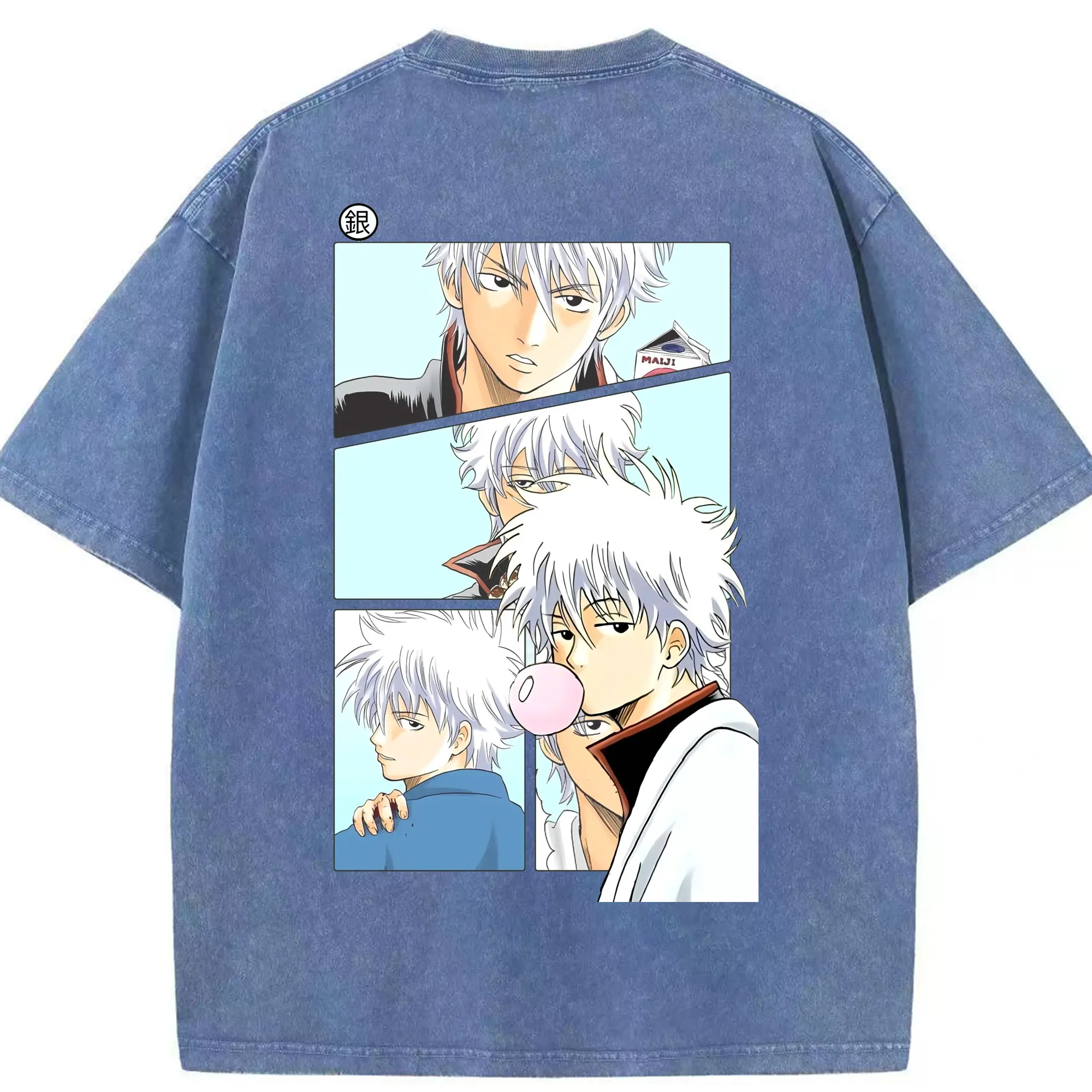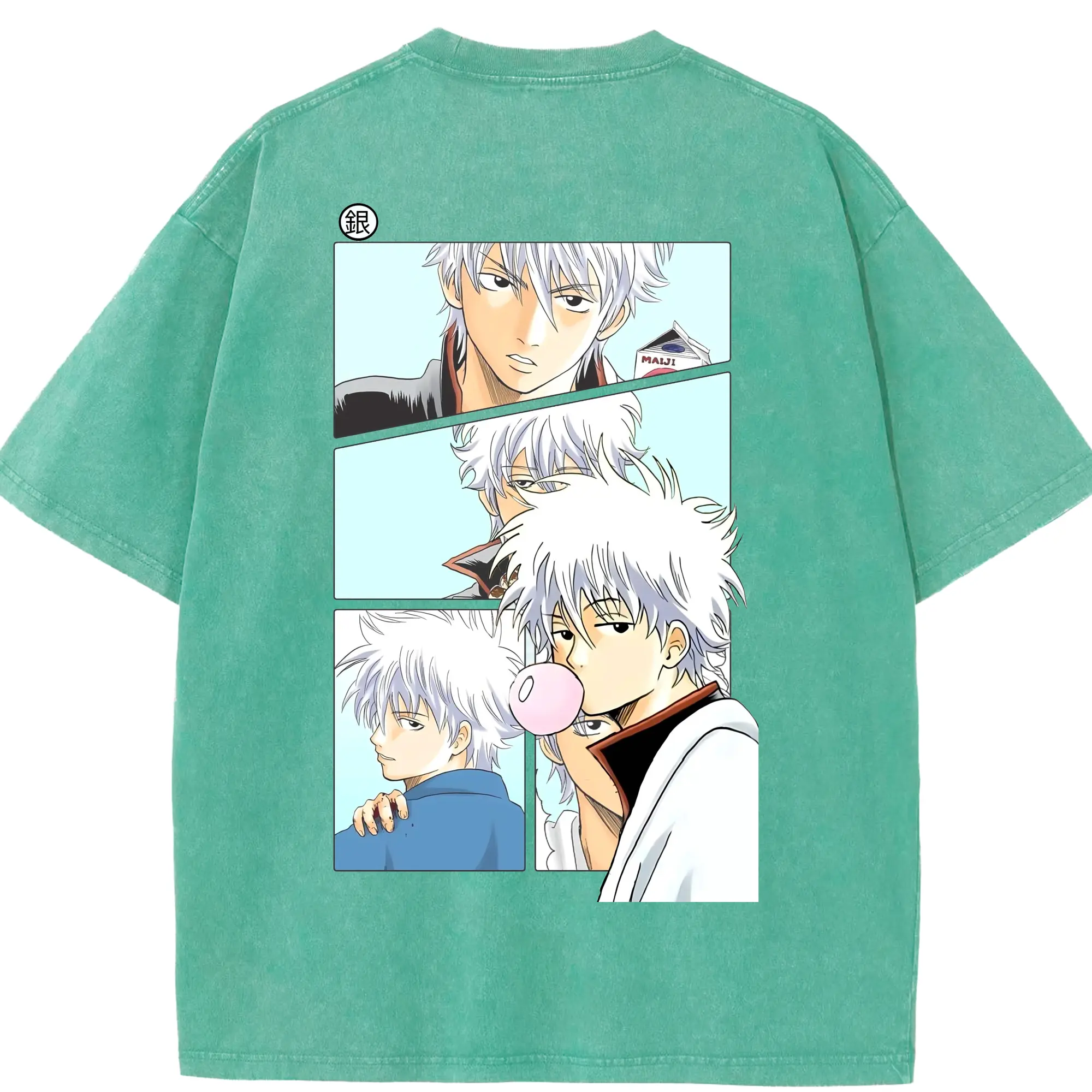 銀魂 グッズ 坂田 銀時 - 綿100% ヴィンテージ風 半袖Tシャツ ・ フロントプリント ・ 柔らか肌触り ・ 通気性 快適 ・ スポーツ カジュアル 外出用