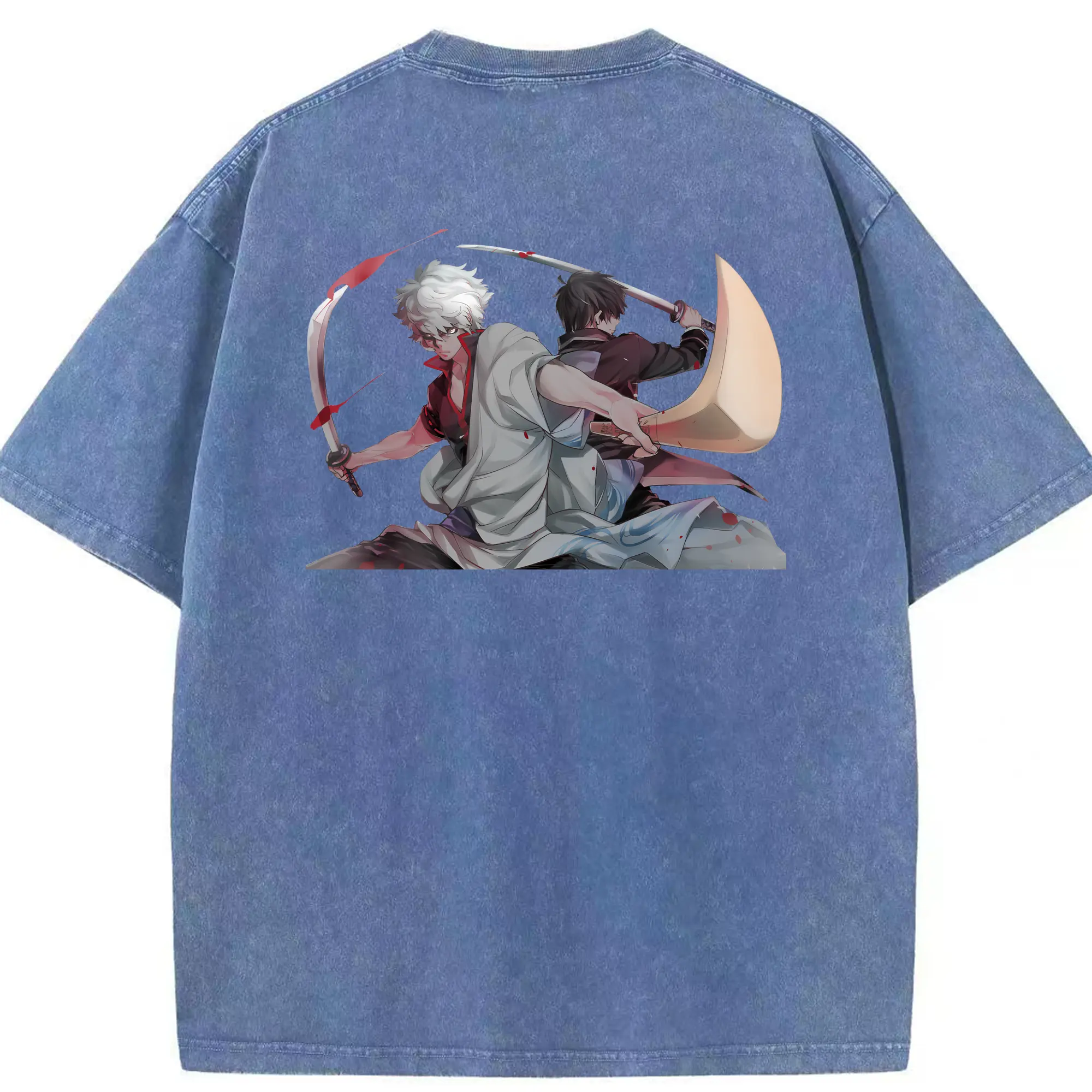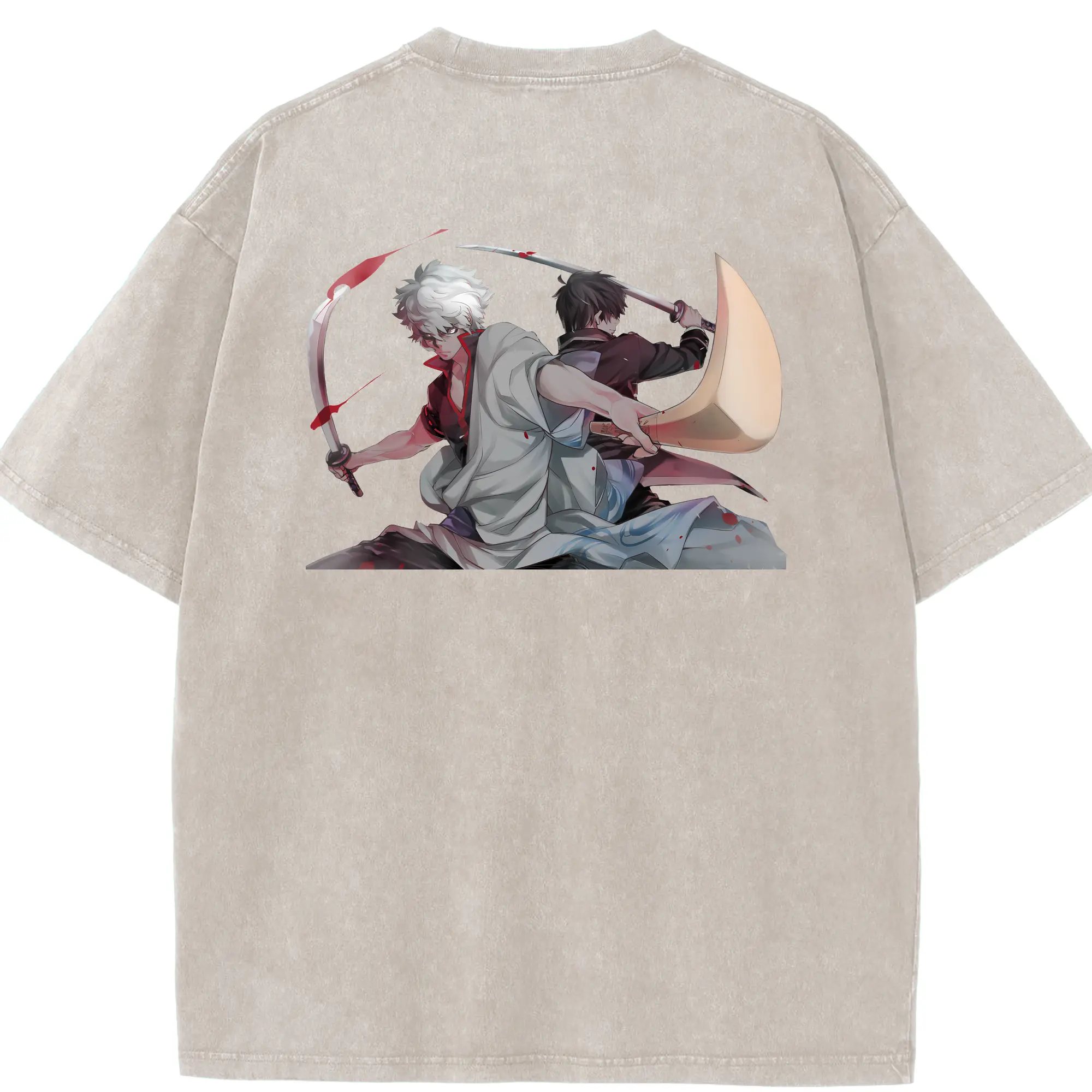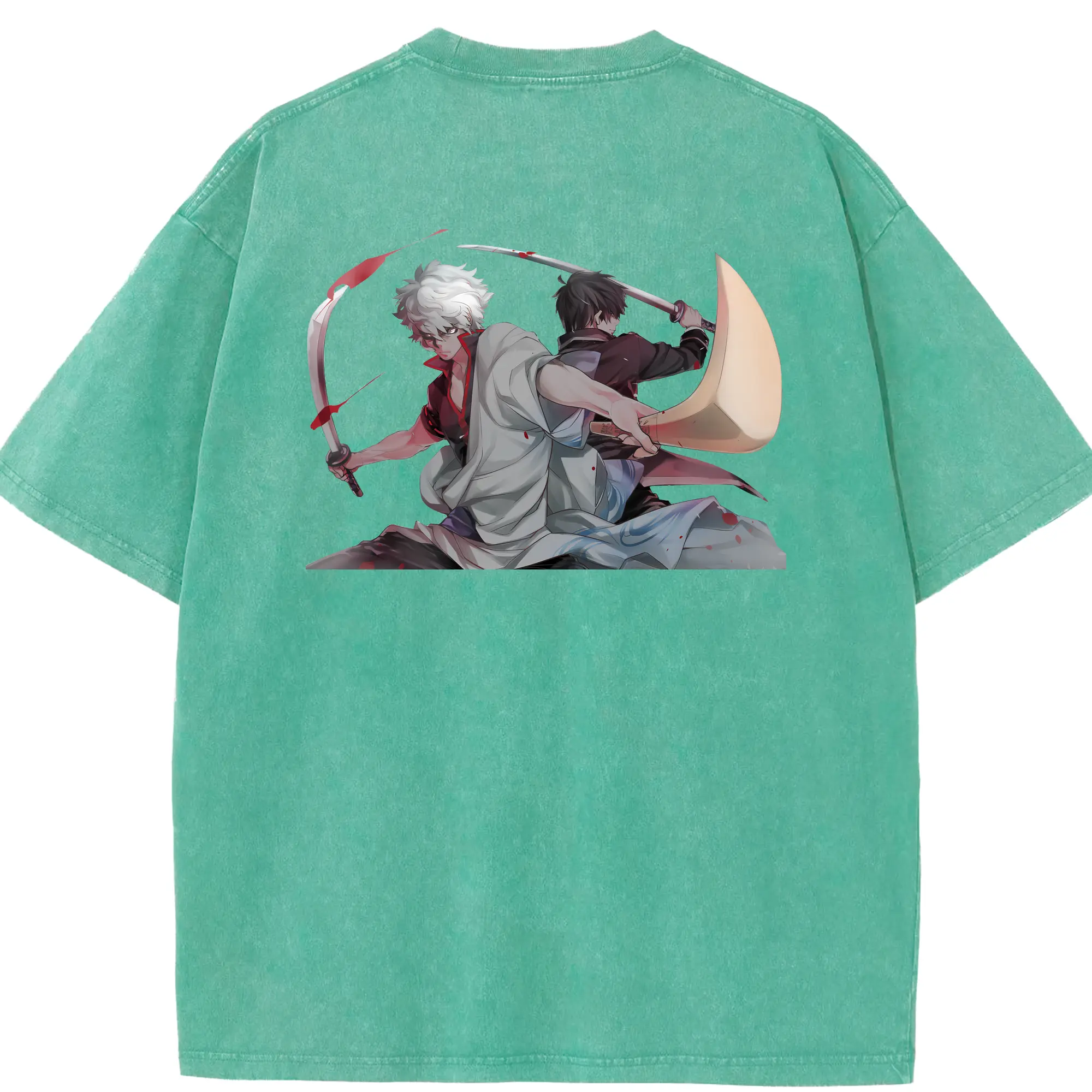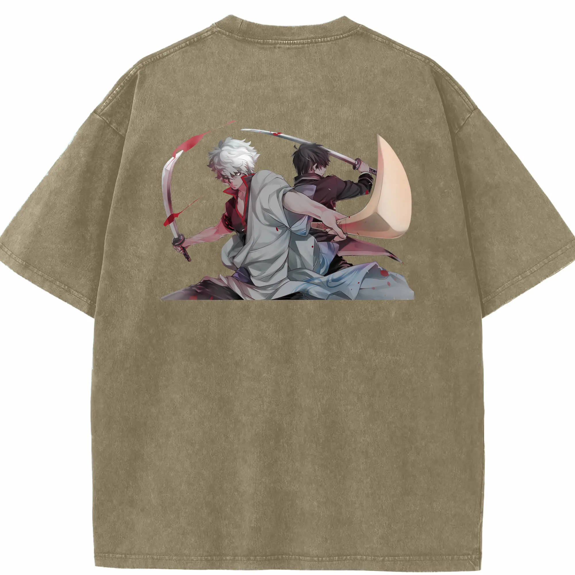 銀魂 グッズ 坂田 銀時 - 綿100% ヴィンテージ風 半袖Tシャツ ・ フロントプリント ・ 柔らか肌触り ・ 通気性 快適 ・ スポーツ カジュアル 外出用