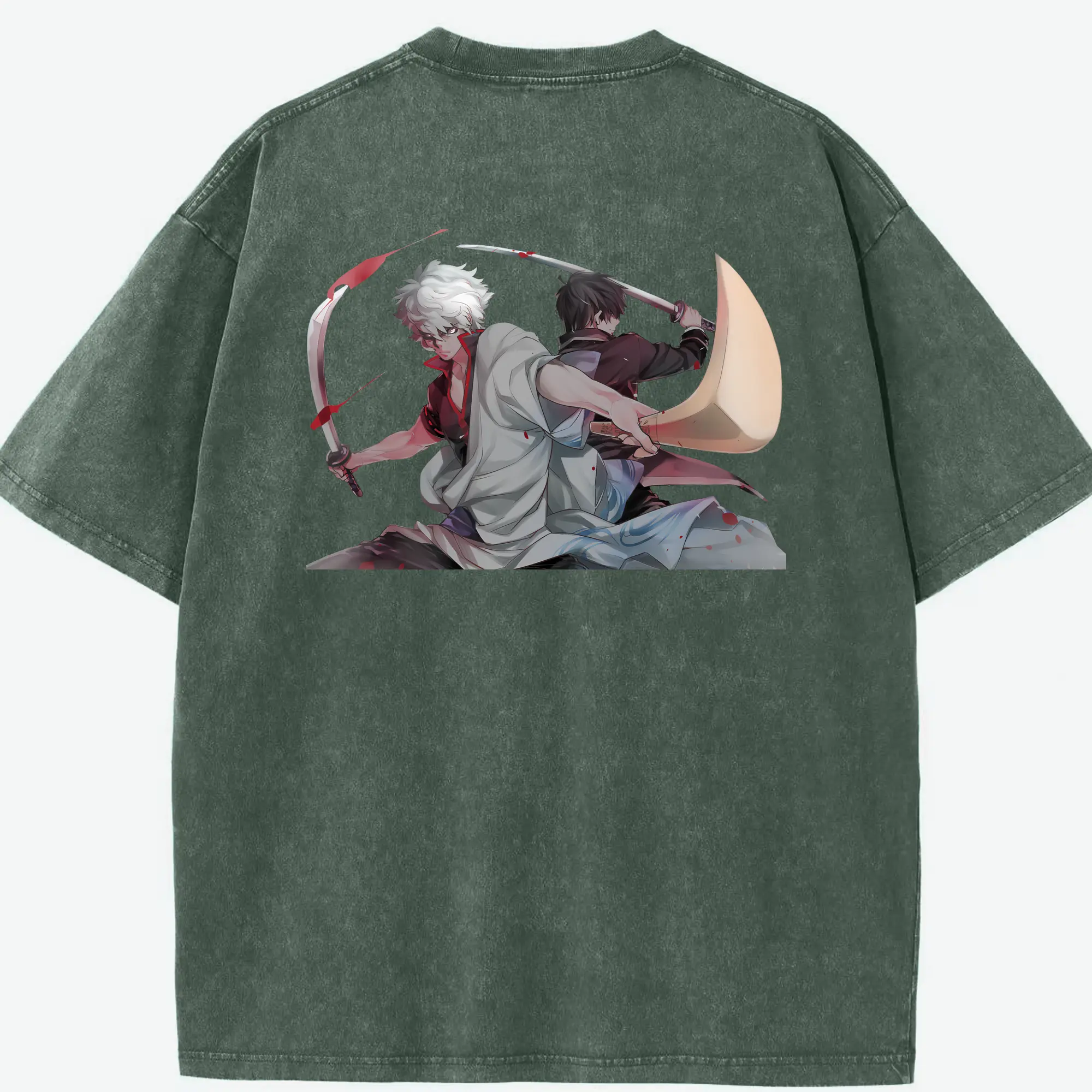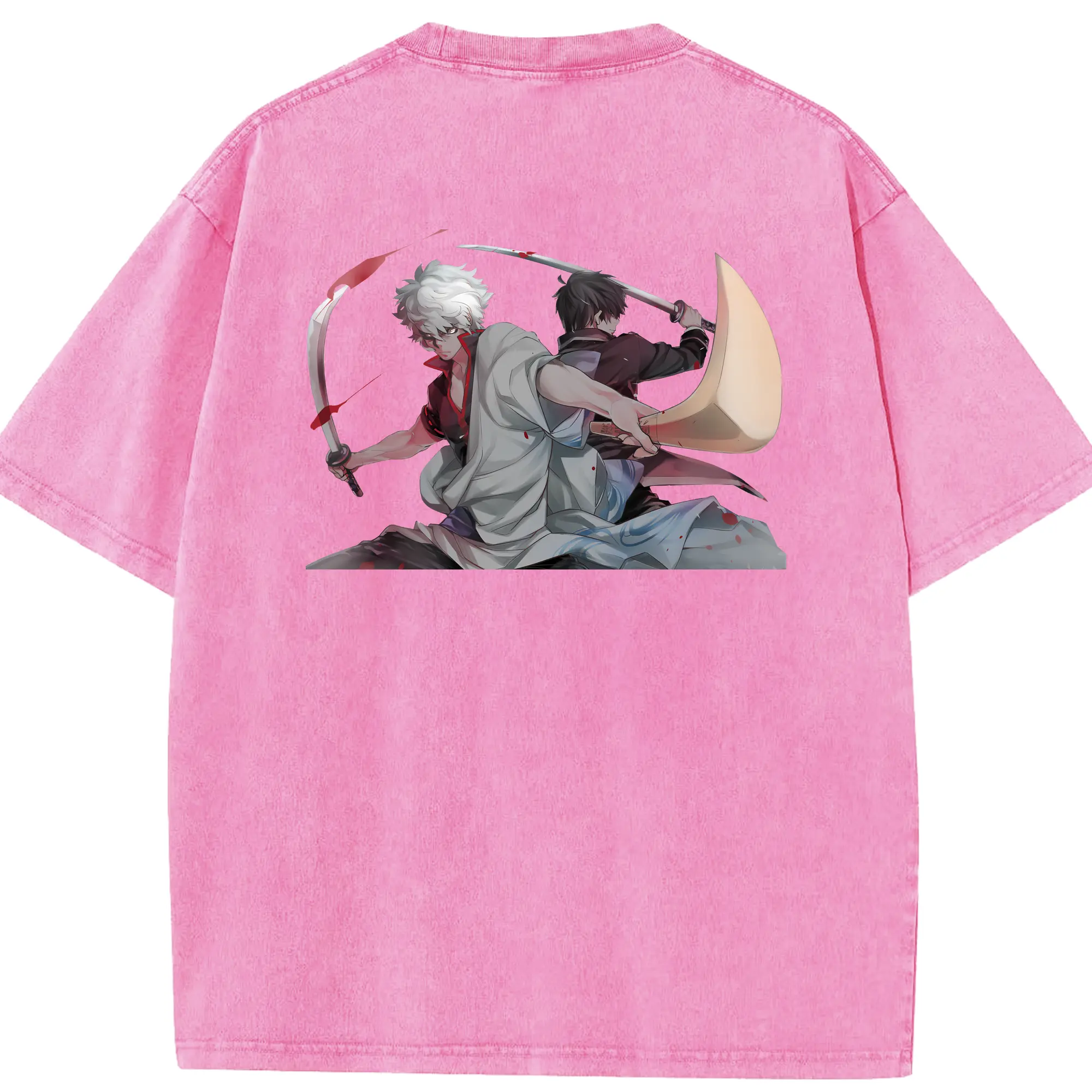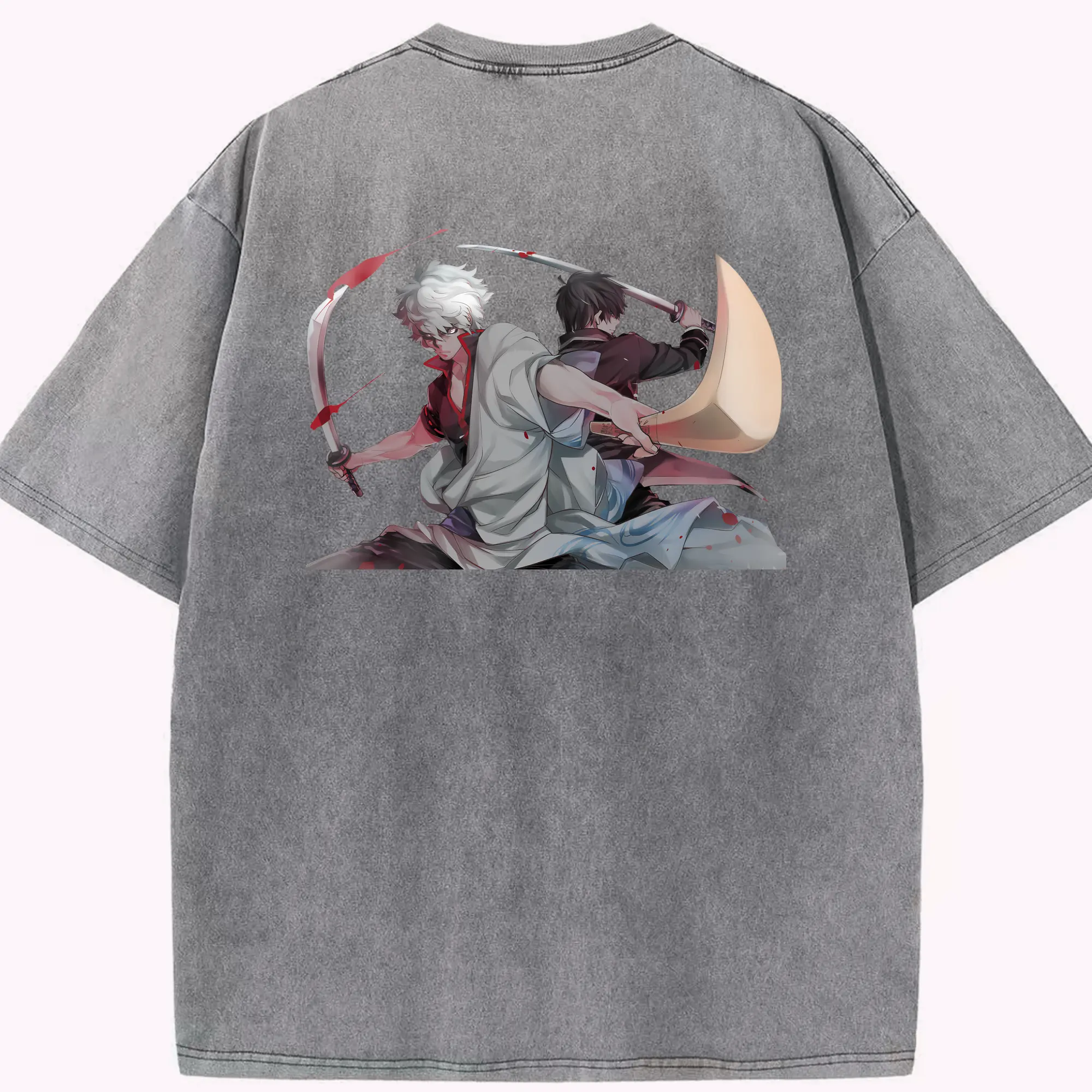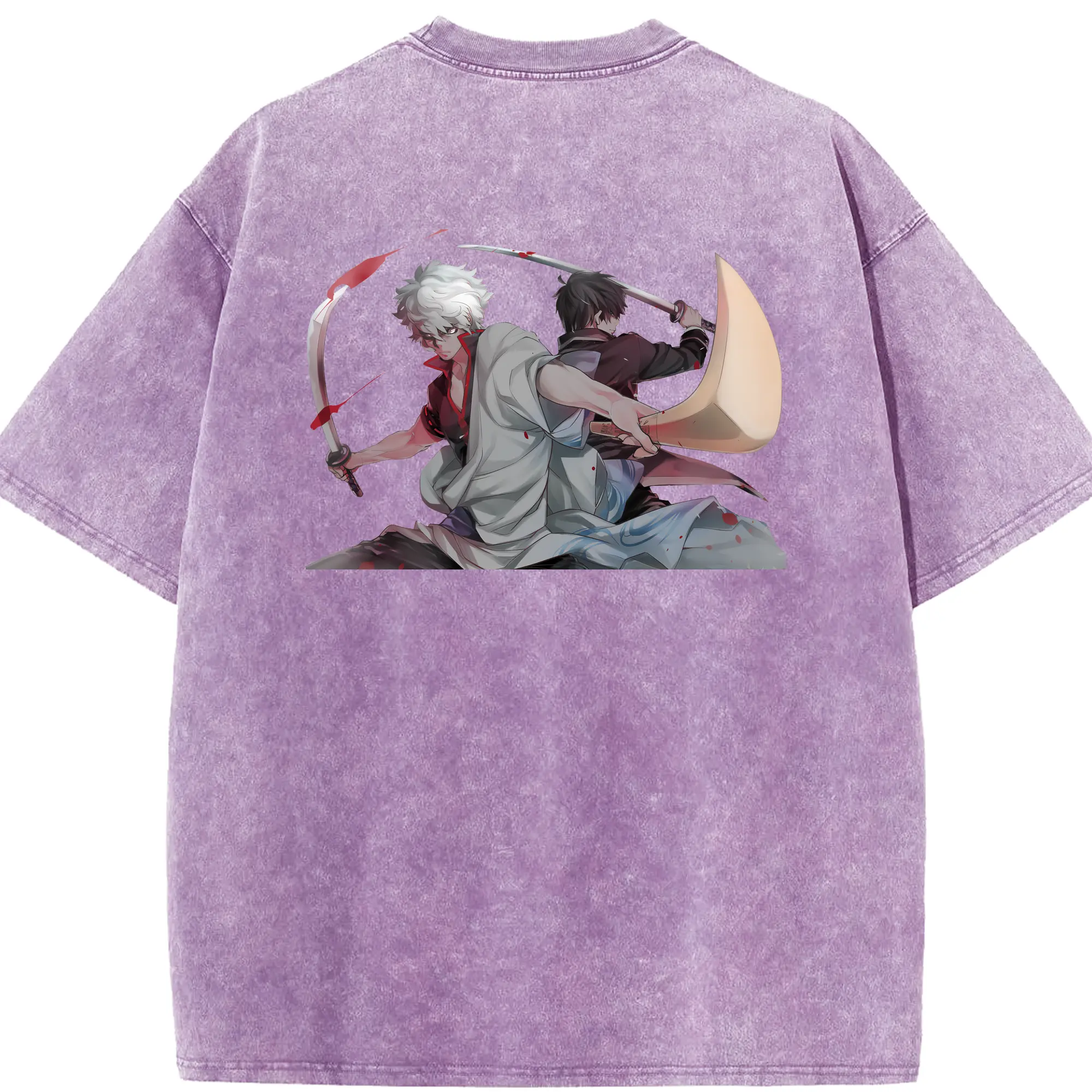 銀魂 グッズ 坂田 銀時 - 綿100% ヴィンテージ風 半袖Tシャツ ・ フロントプリント ・ 柔らか肌触り ・ 通気性 快適 ・ スポーツ カジュアル 外出用