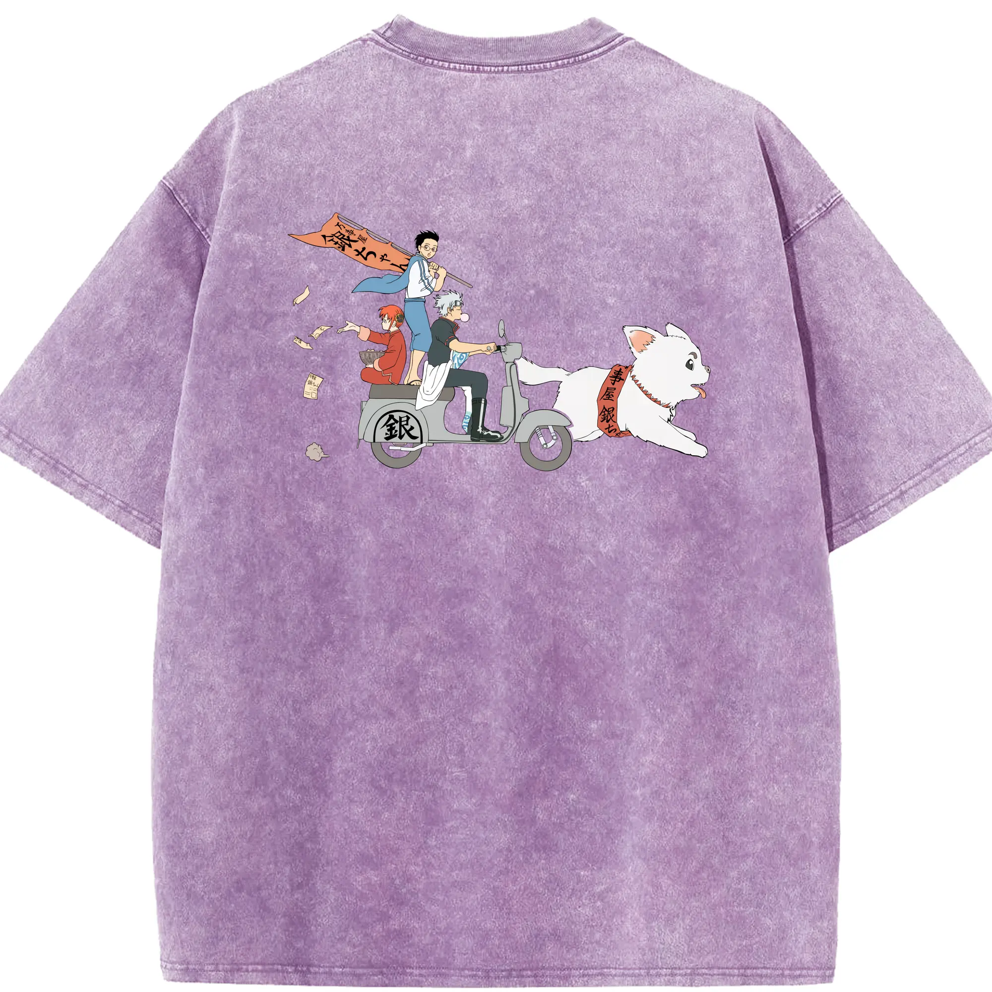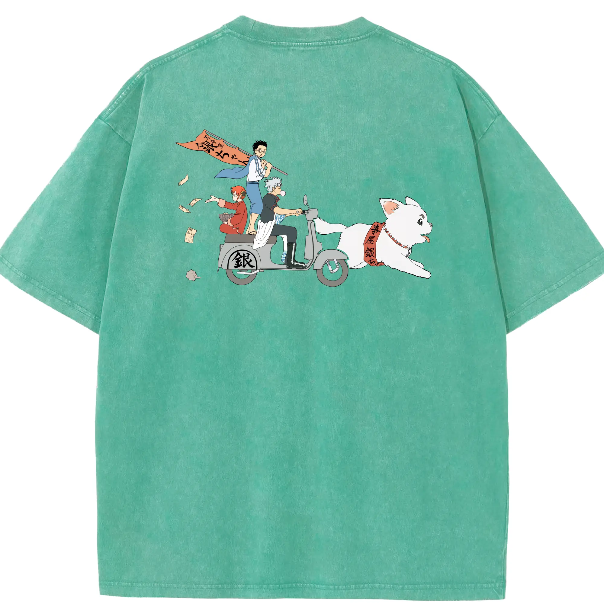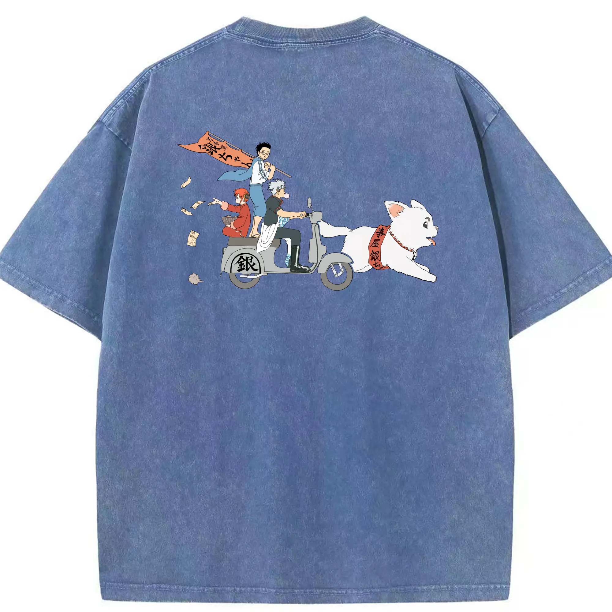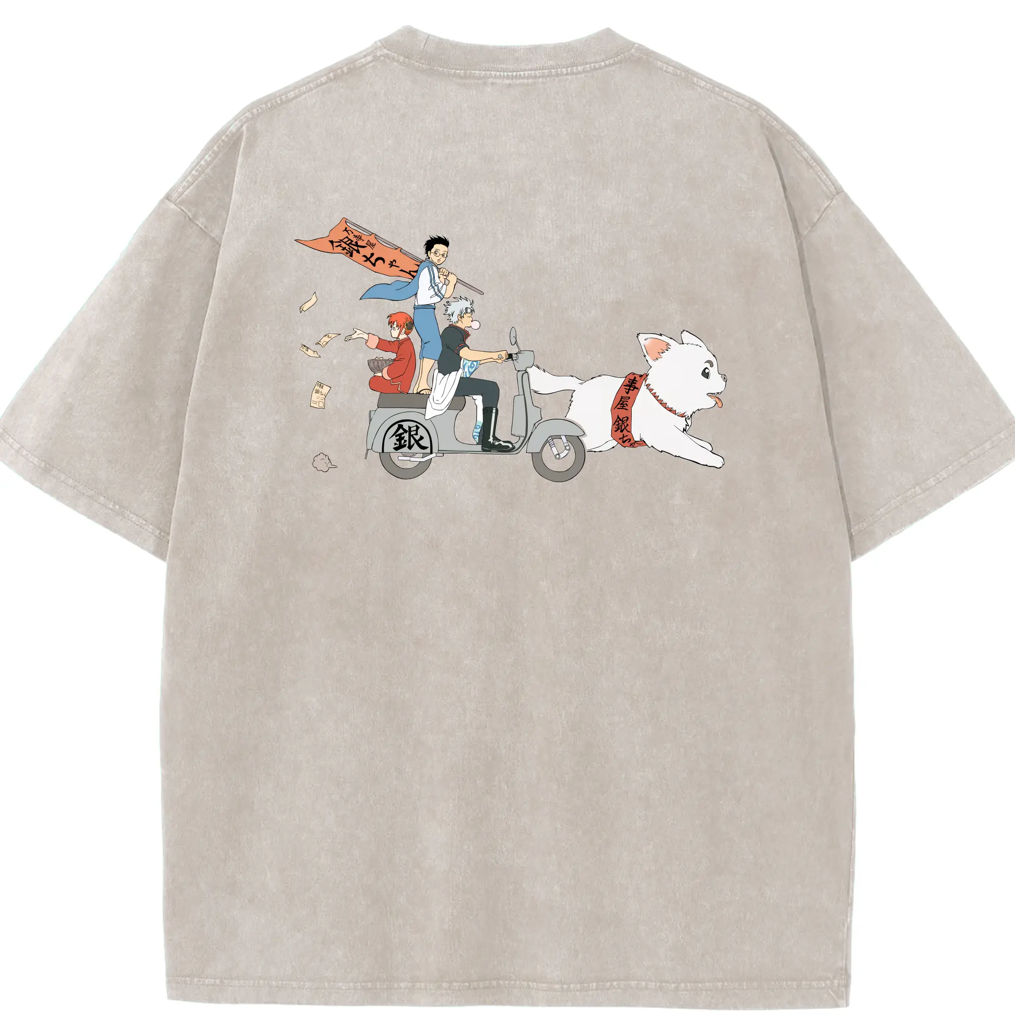 銀魂 グッズ 坂田 銀時 - 綿100% ヴィンテージ風 半袖Tシャツ ・ フロントプリント ・ 柔らか肌触り ・ 通気性 快適 ・ スポーツ カジュアル 外出用