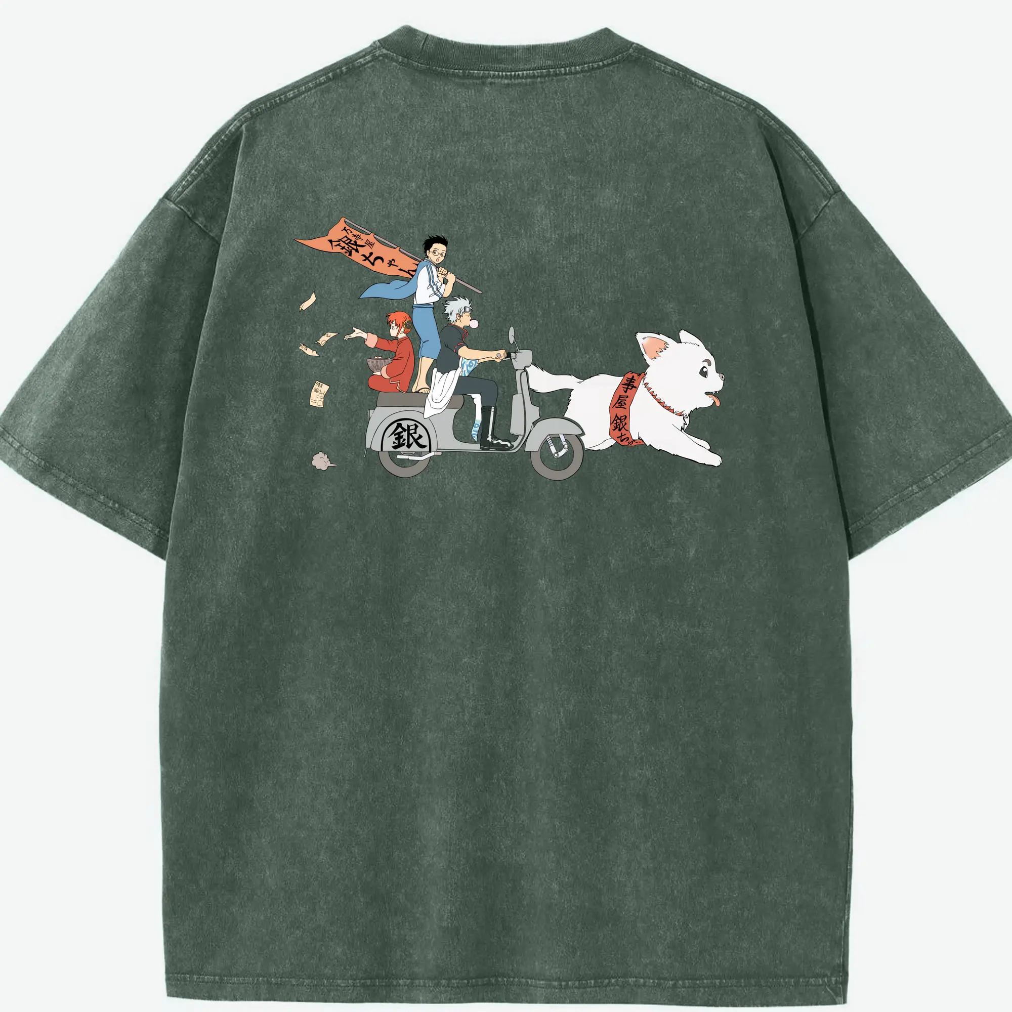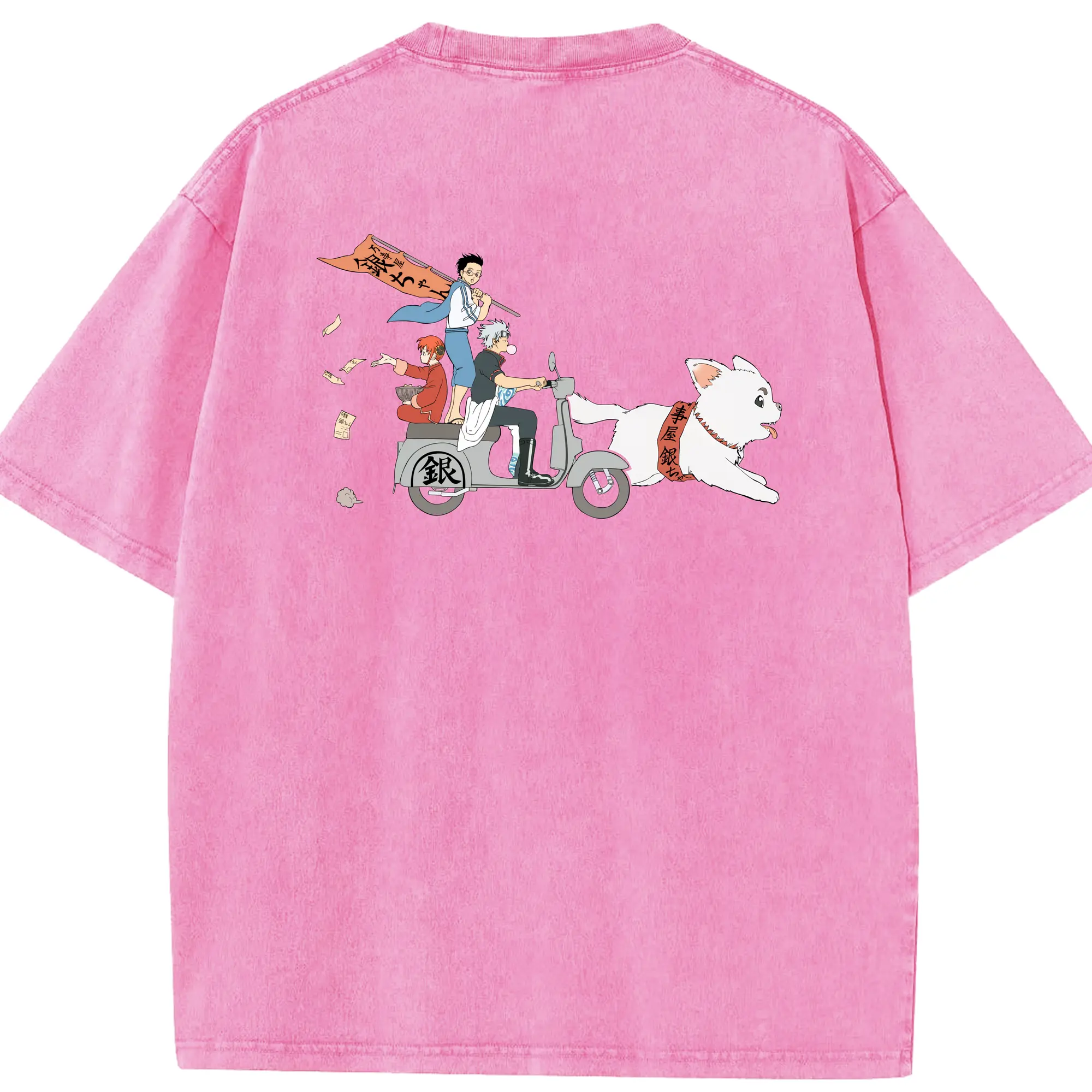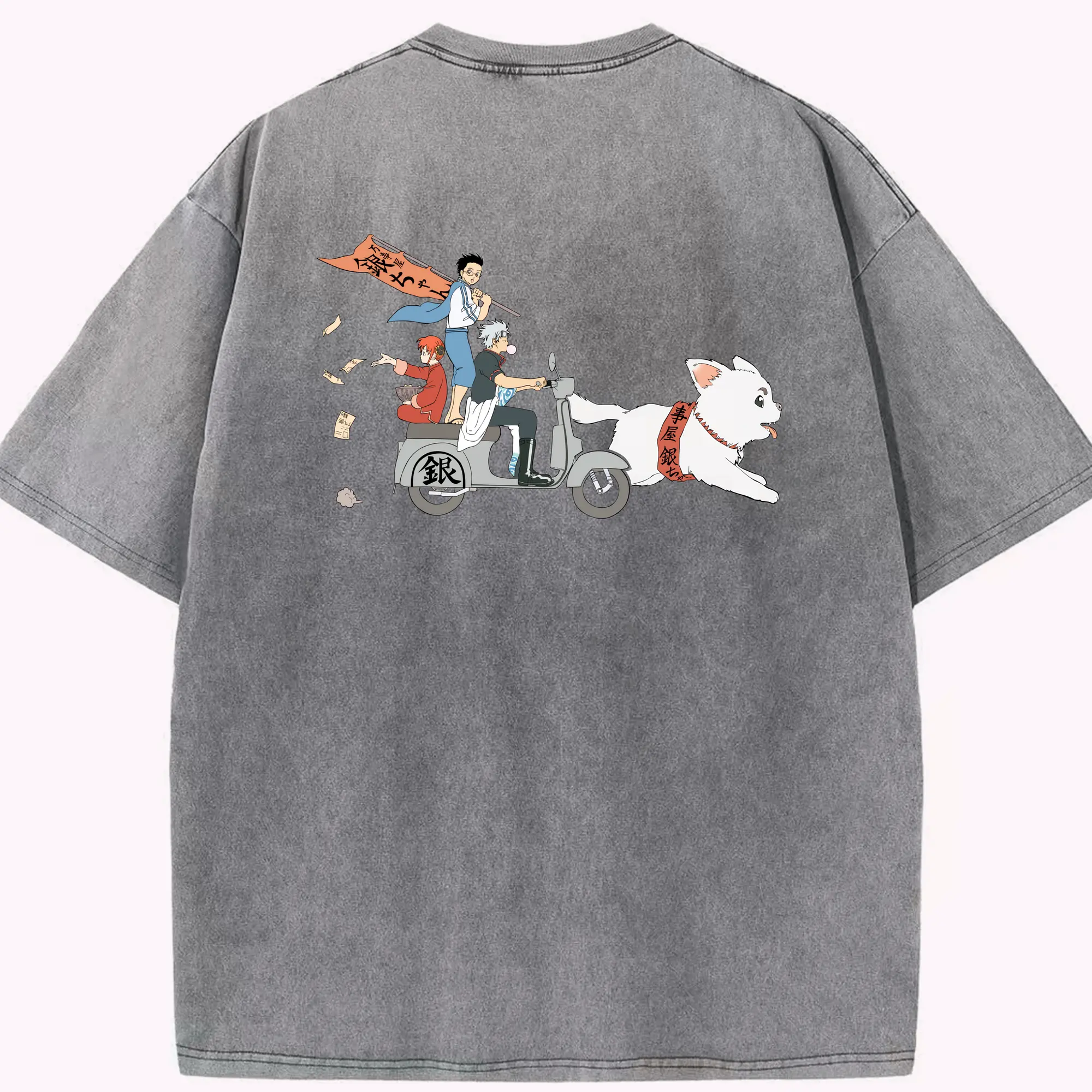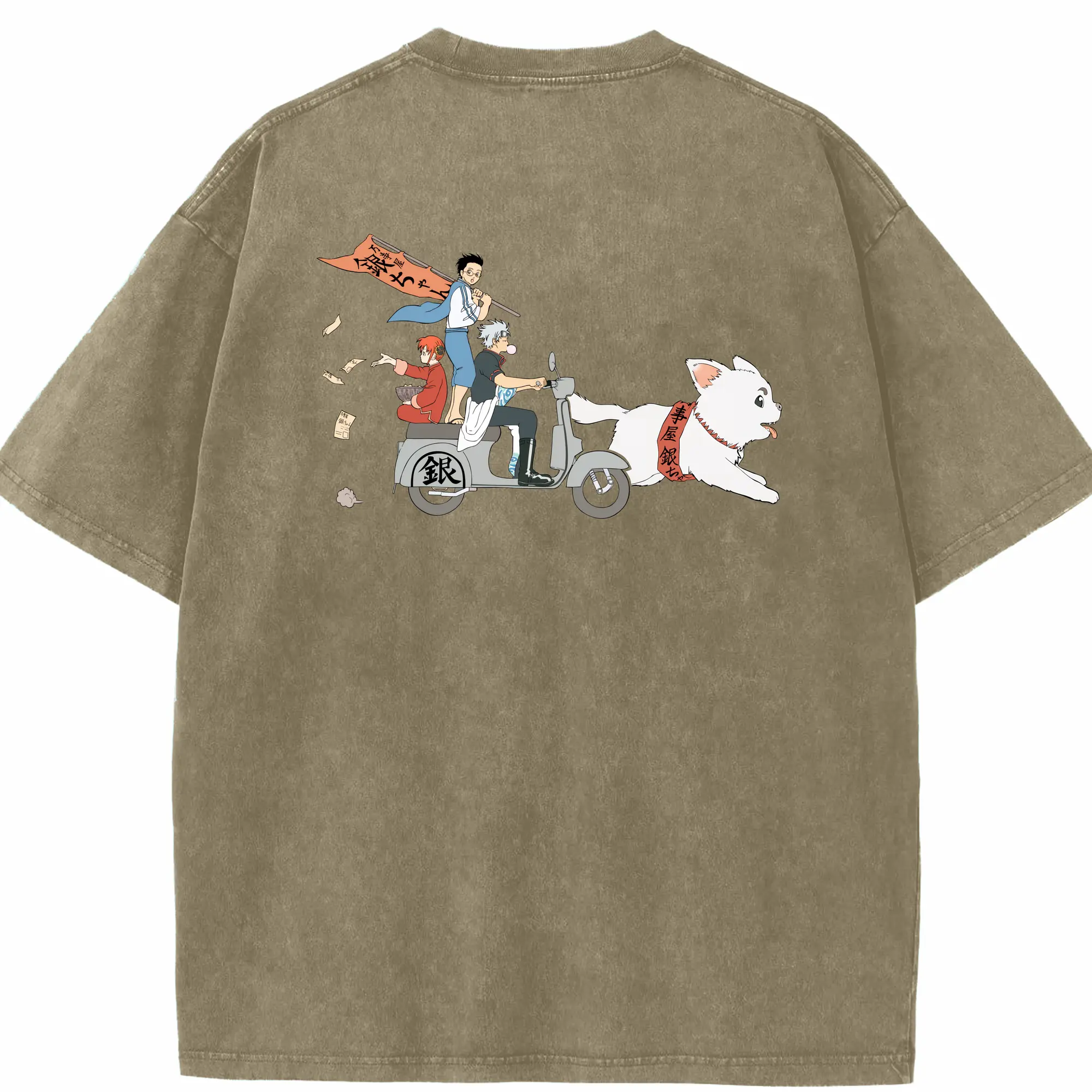 銀魂 グッズ 坂田 銀時 - 綿100% ヴィンテージ風 半袖Tシャツ ・ フロントプリント ・ 柔らか肌触り ・ 通気性 快適 ・ スポーツ カジュアル 外出用