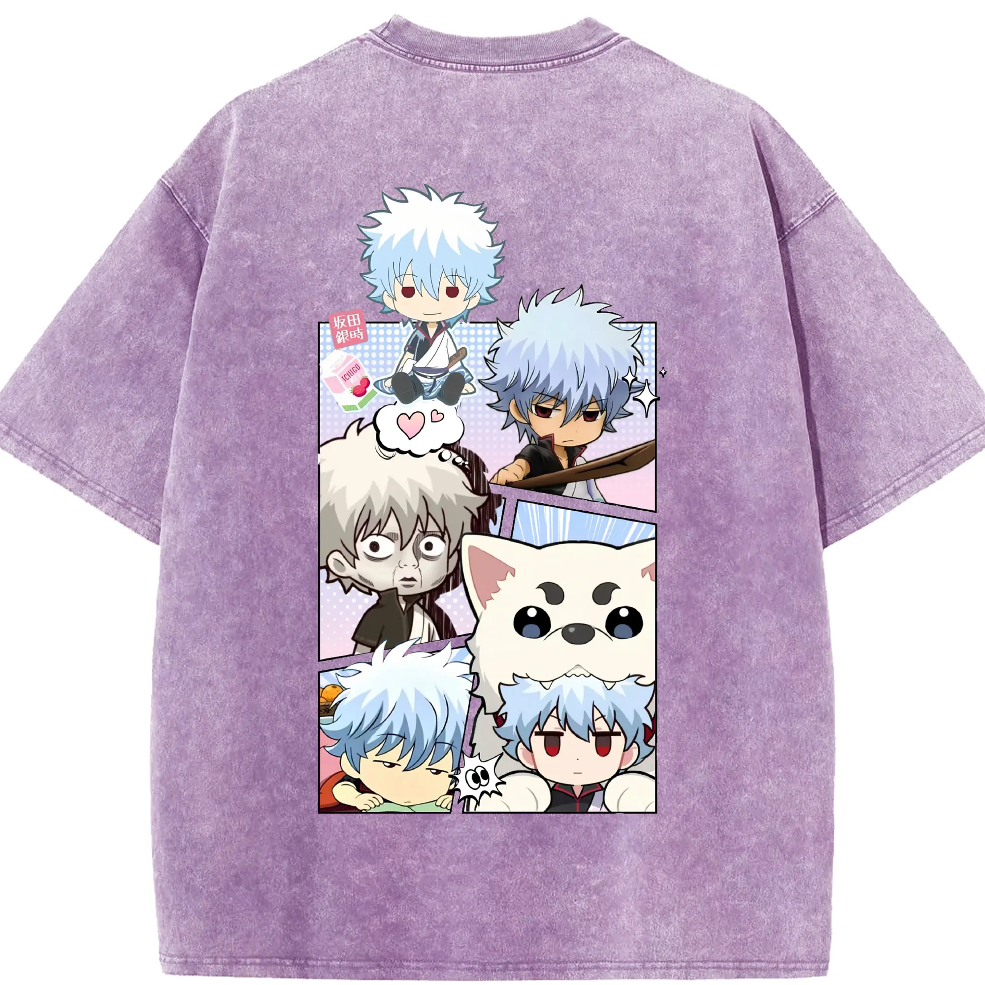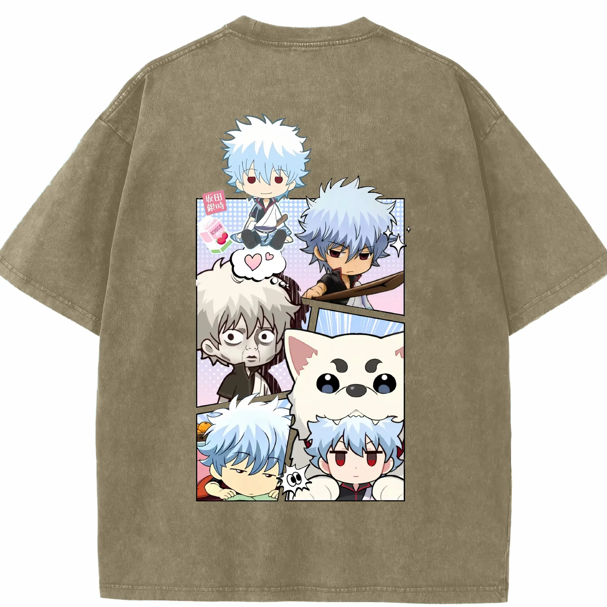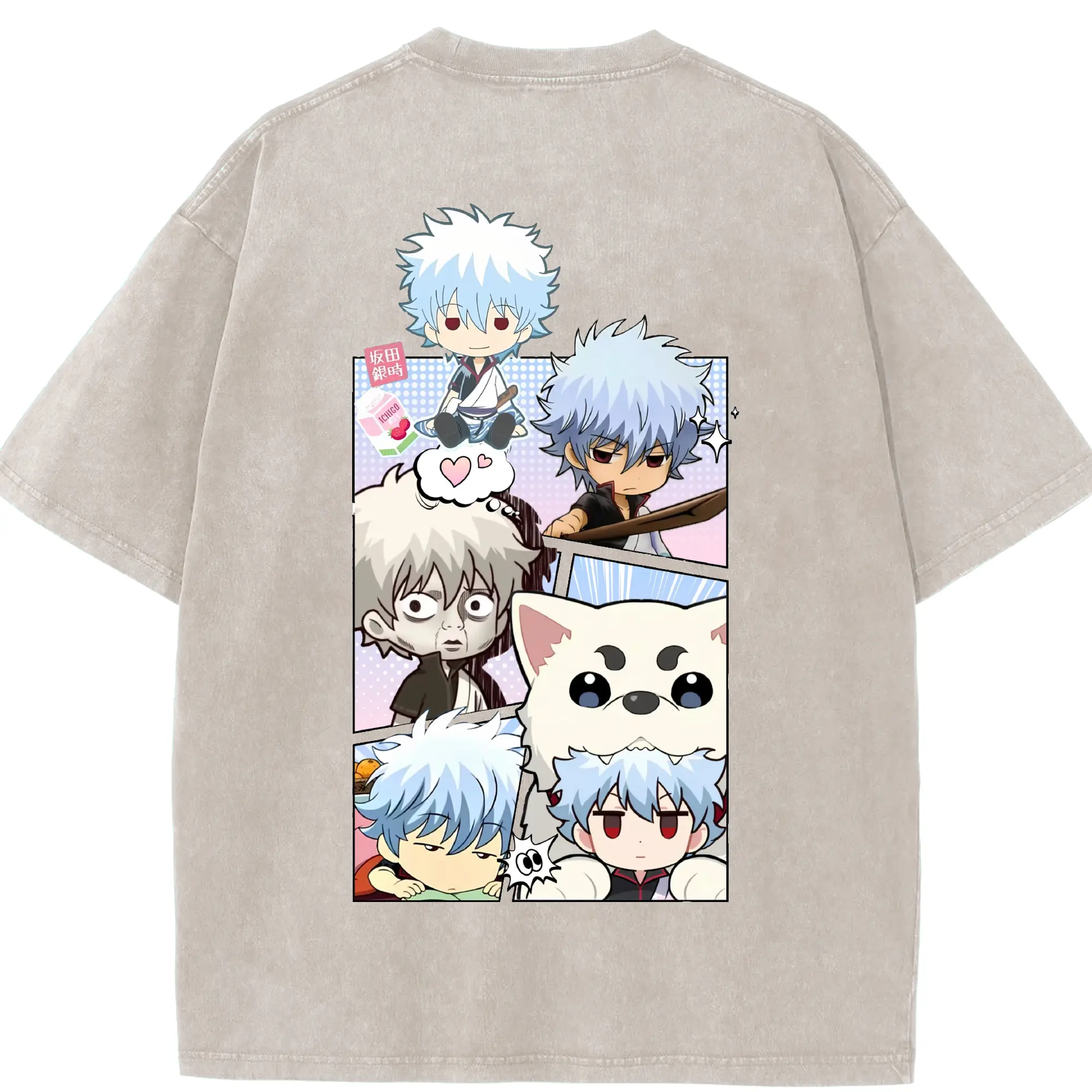 銀魂 グッズ 坂田 銀時 - 綿100% ヴィンテージ風 半袖Tシャツ ・ フロントプリント ・ 柔らか肌触り ・ 通気性 快適 ・ スポーツ カジュアル 外出用