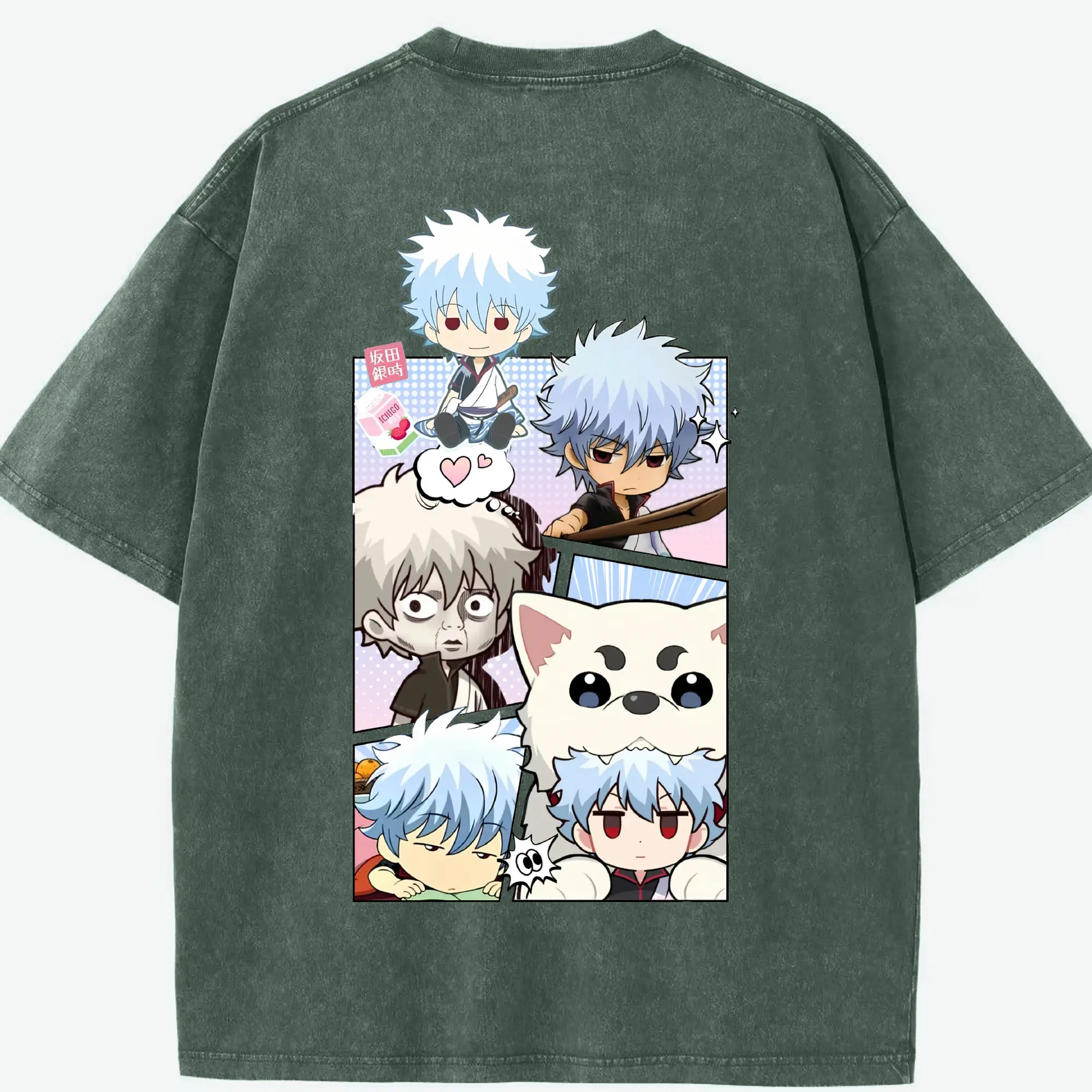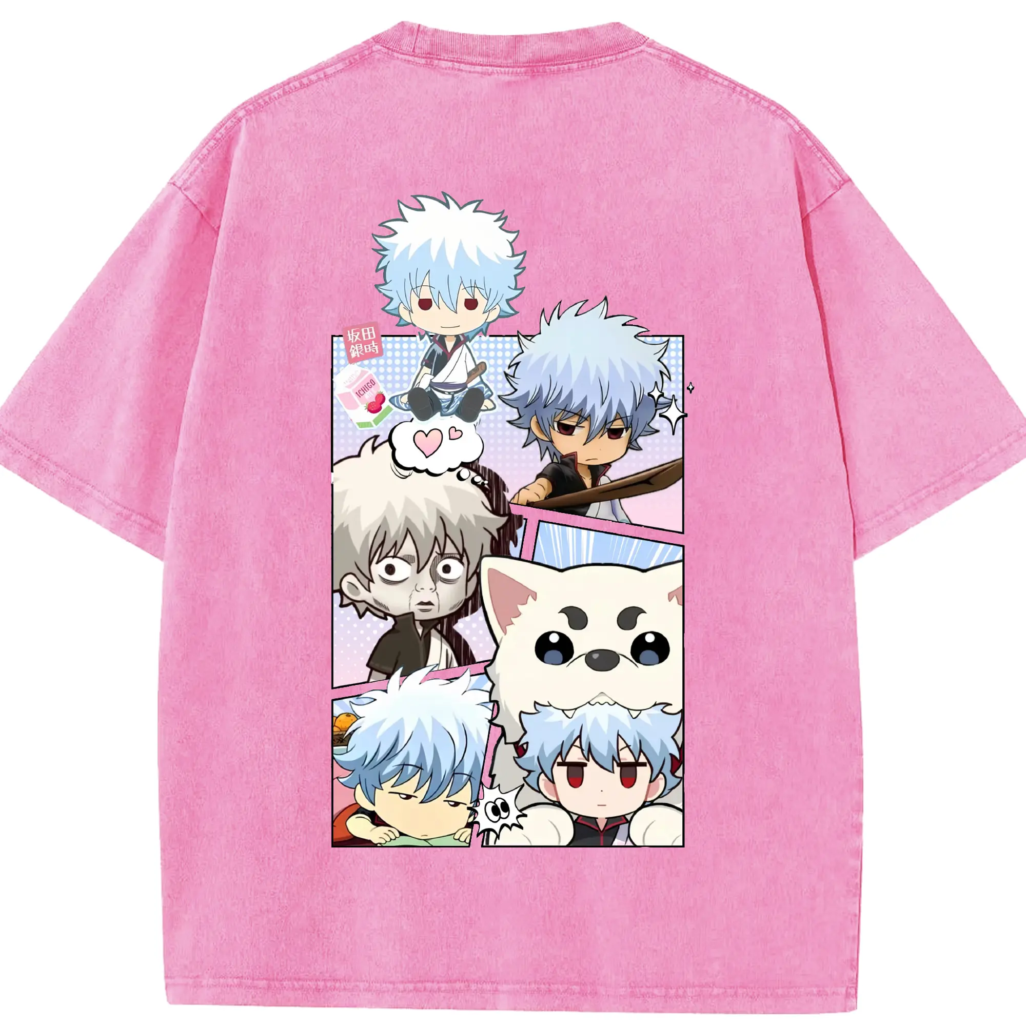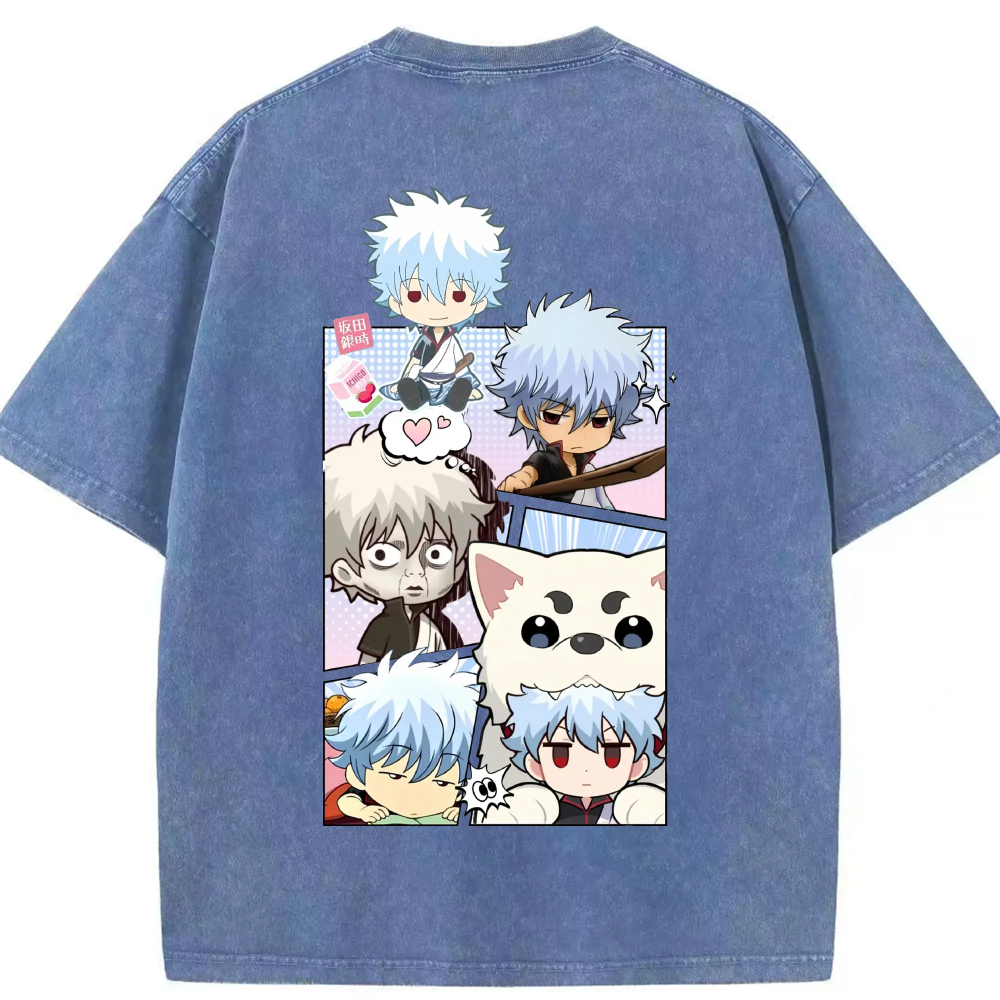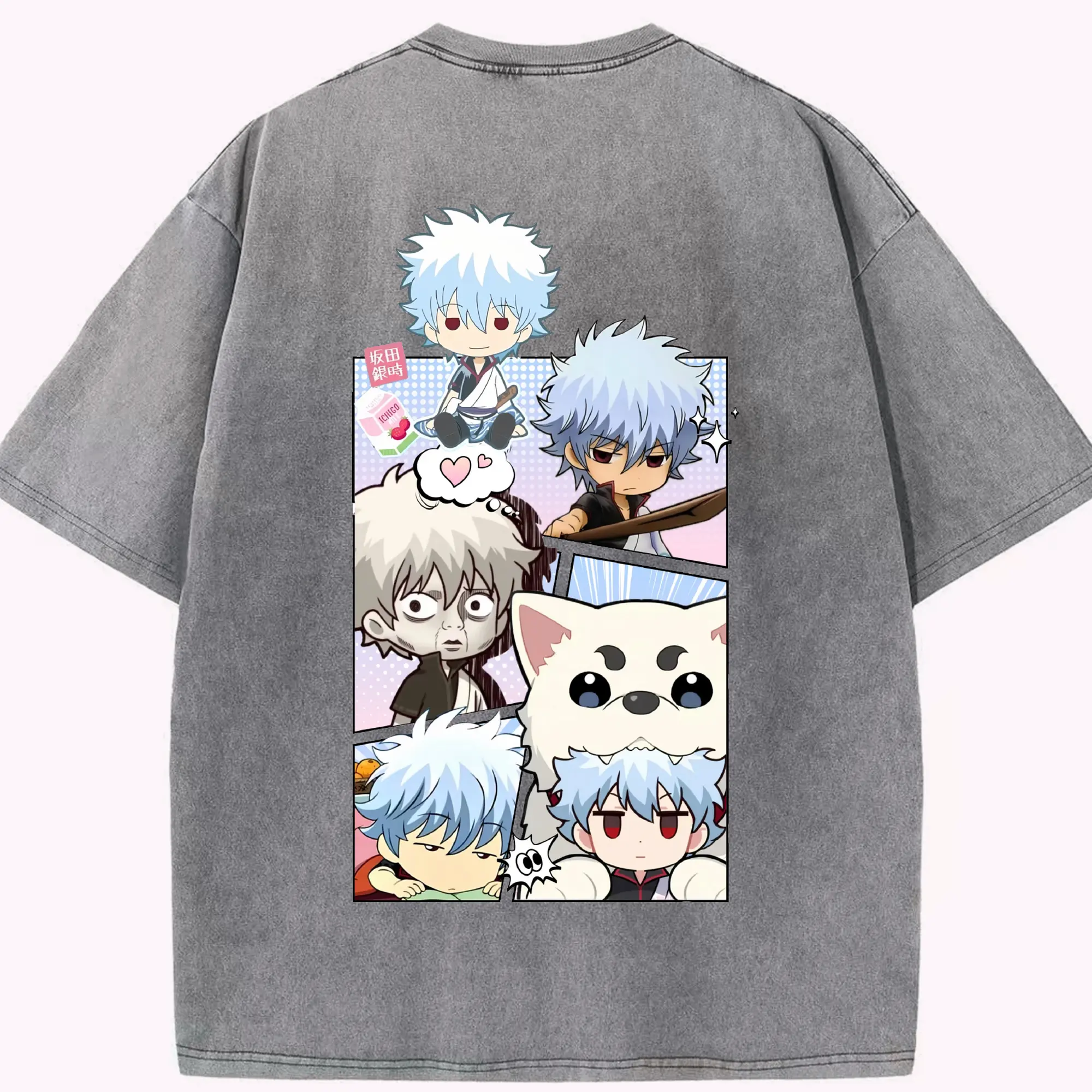 銀魂 グッズ 坂田 銀時 - 綿100% ヴィンテージ風 半袖Tシャツ ・ フロントプリント ・ 柔らか肌触り ・ 通気性 快適 ・ スポーツ カジュアル 外出用