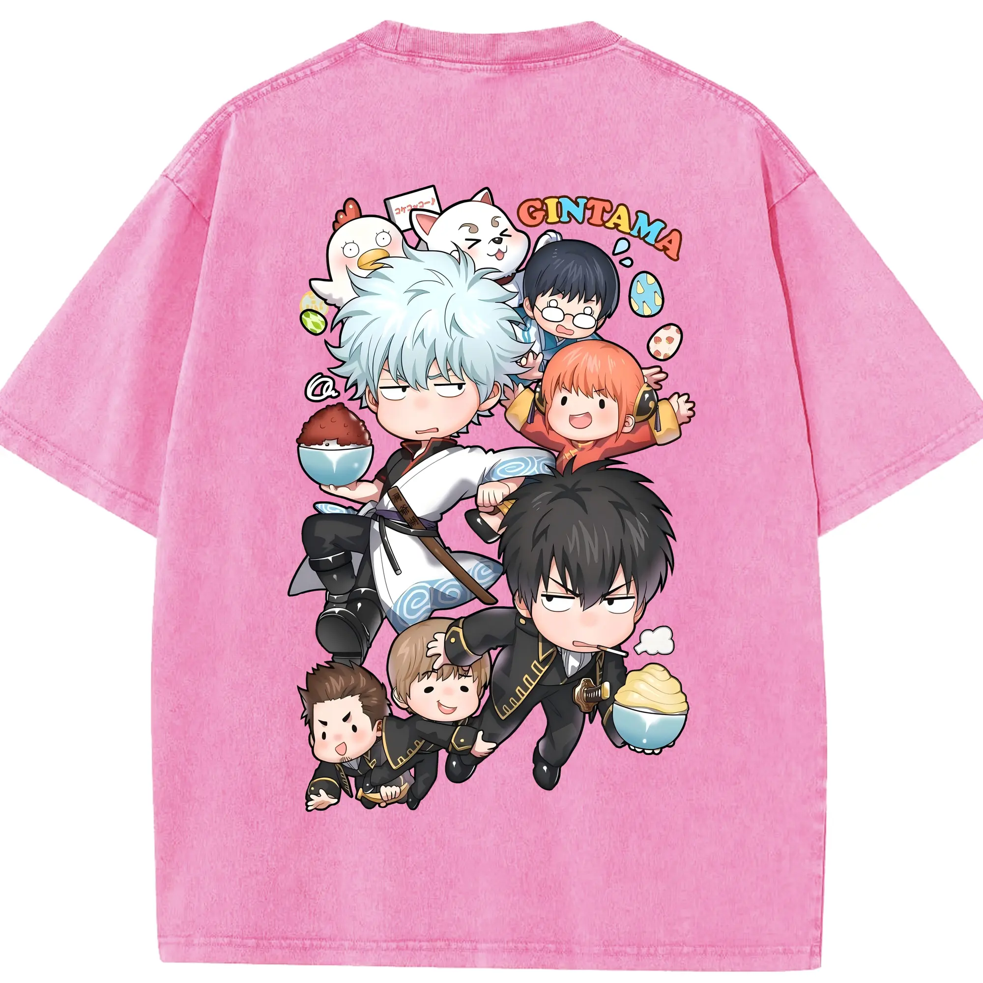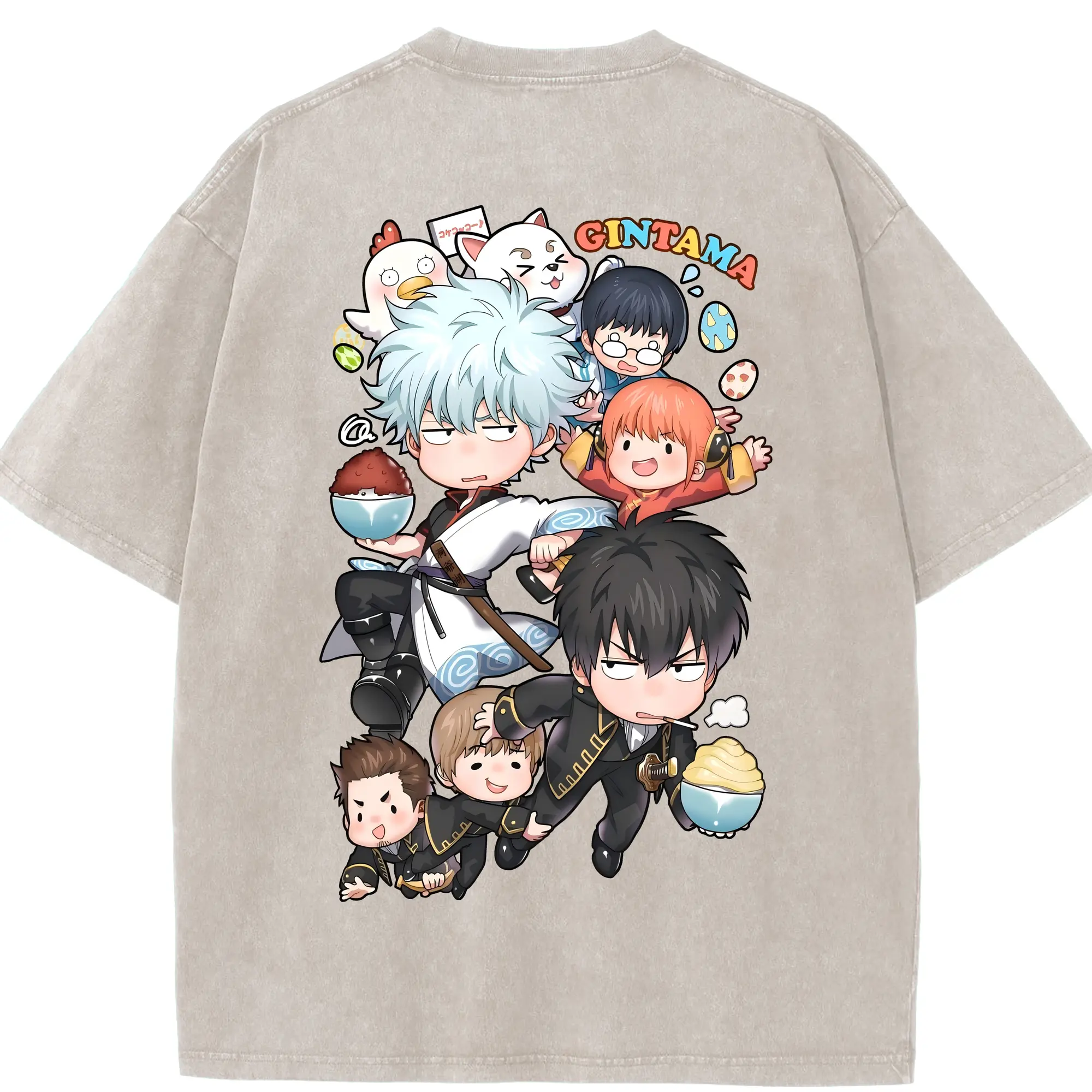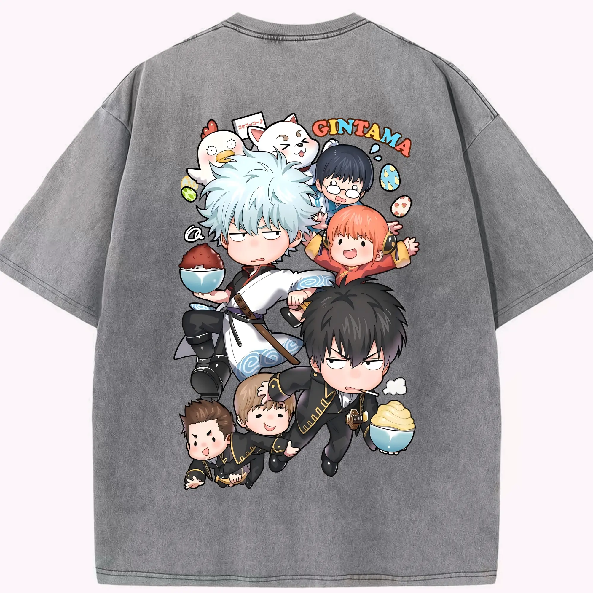 銀魂 グッズ 坂田 銀時 - 綿100% ヴィンテージ風 半袖Tシャツ ・ フロントプリント ・ 柔らか肌触り ・ 通気性 快適 ・ スポーツ カジュアル 外出用