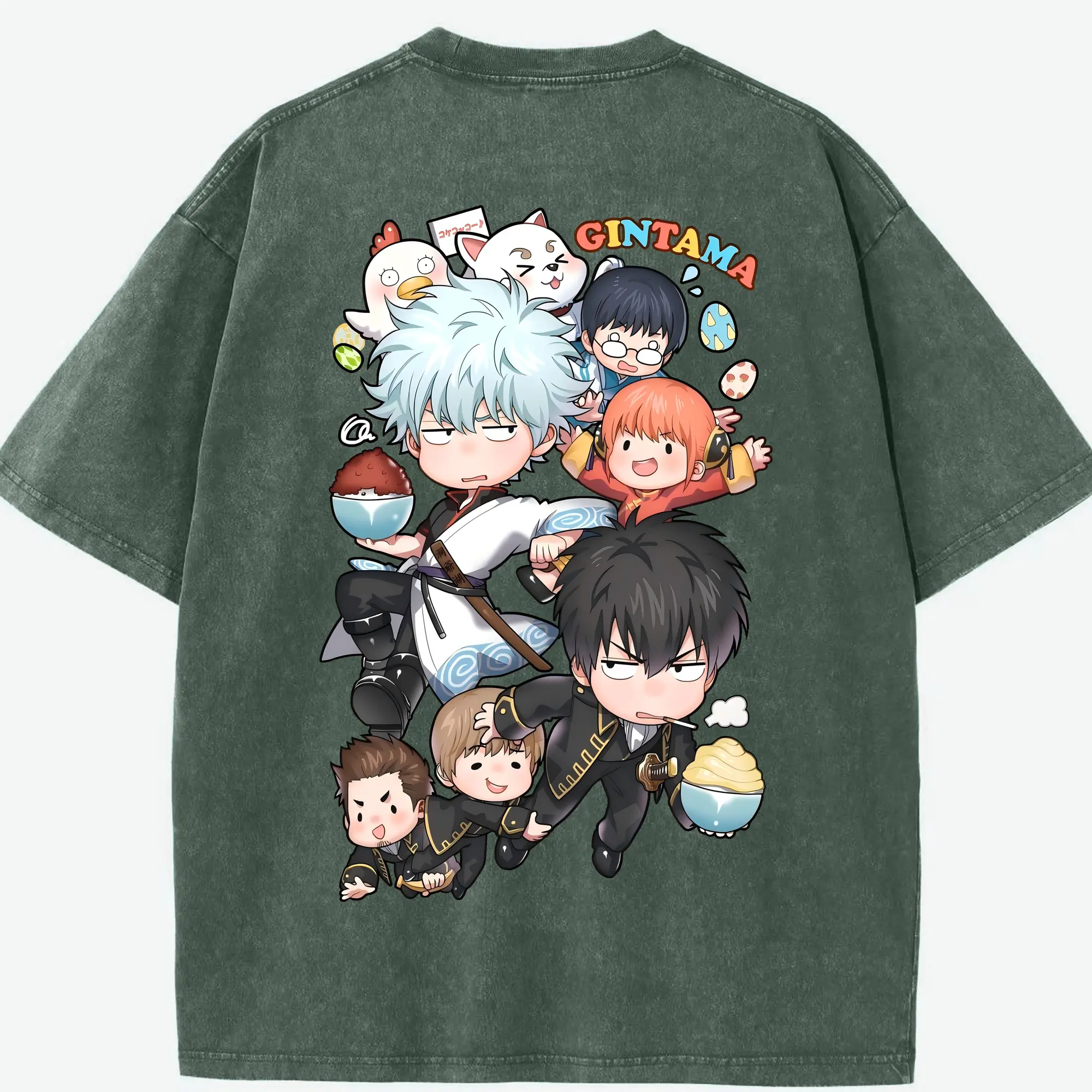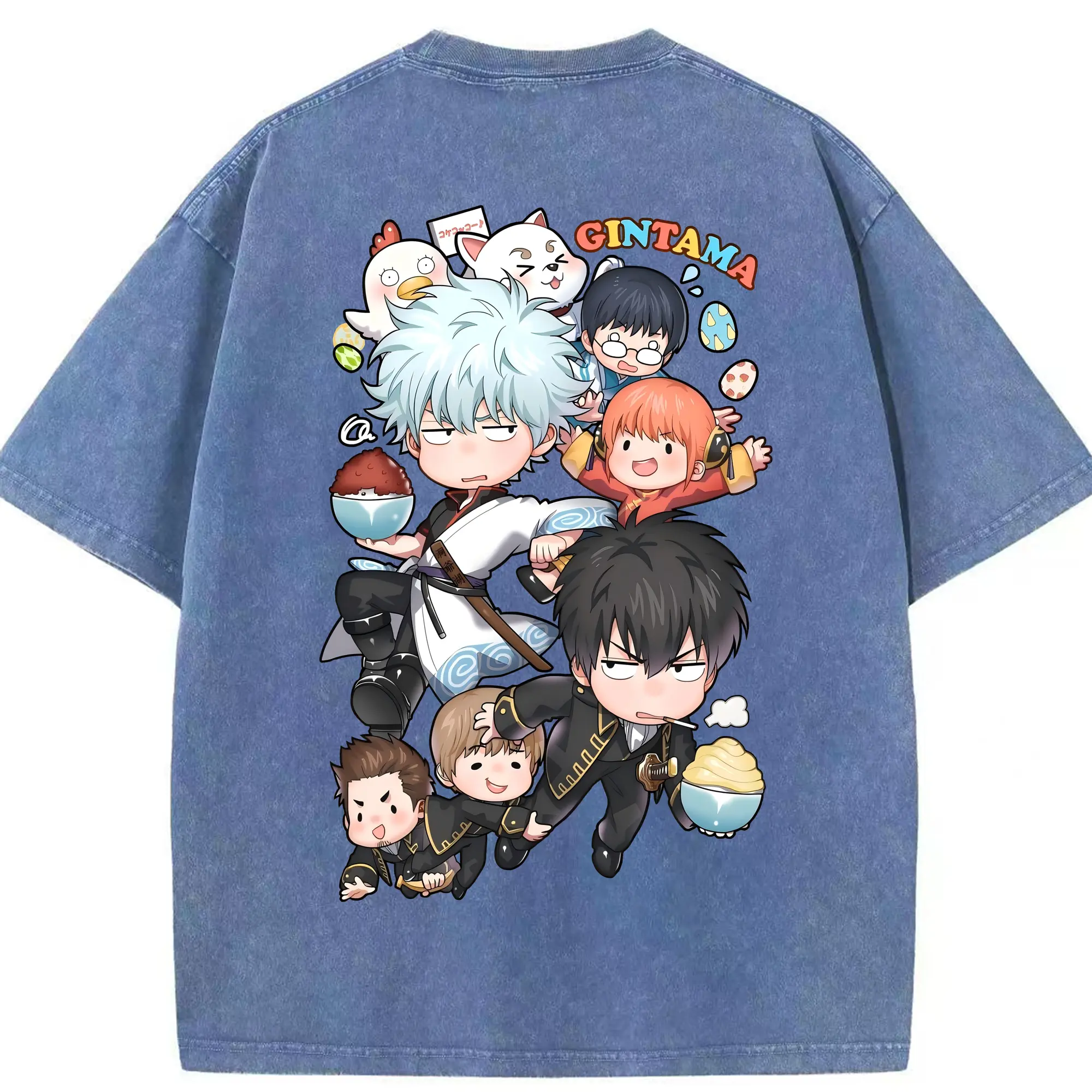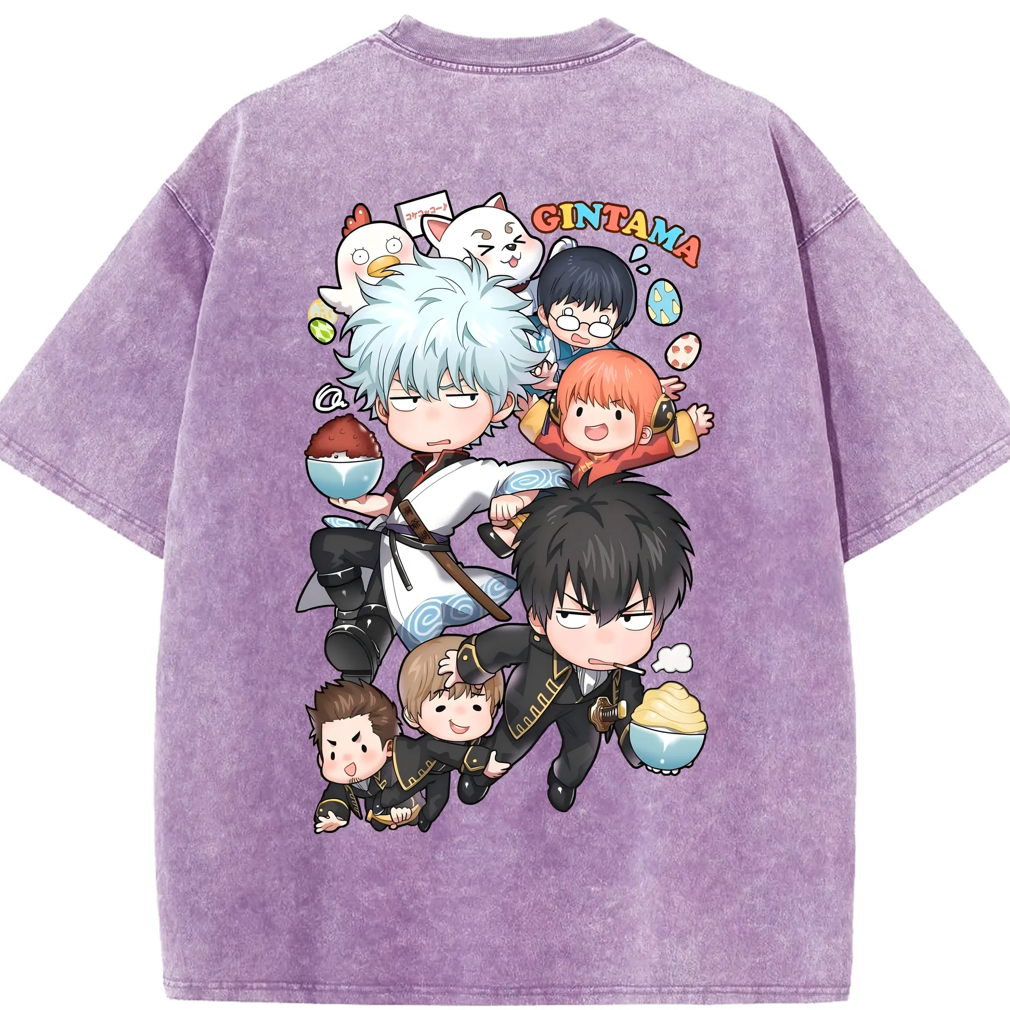 銀魂 グッズ 坂田 銀時 - 綿100% ヴィンテージ風 半袖Tシャツ ・ フロントプリント ・ 柔らか肌触り ・ 通気性 快適 ・ スポーツ カジュアル 外出用