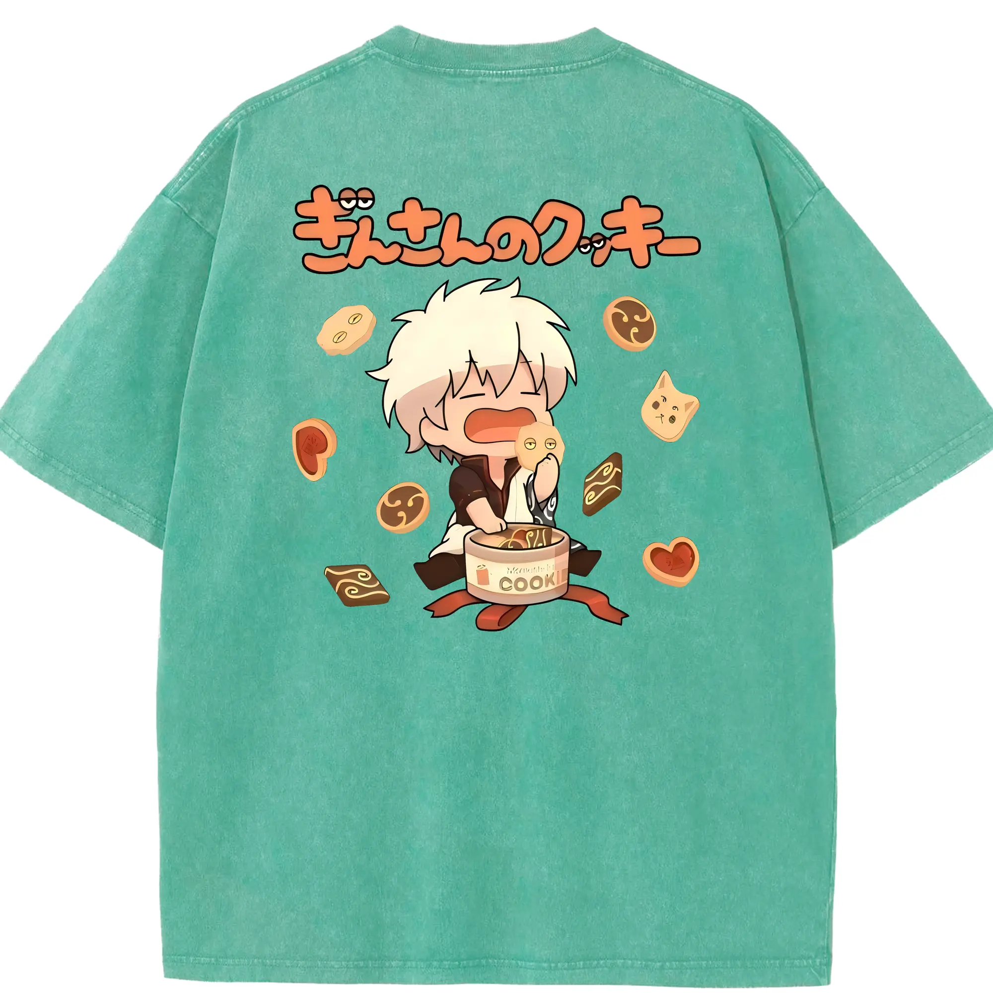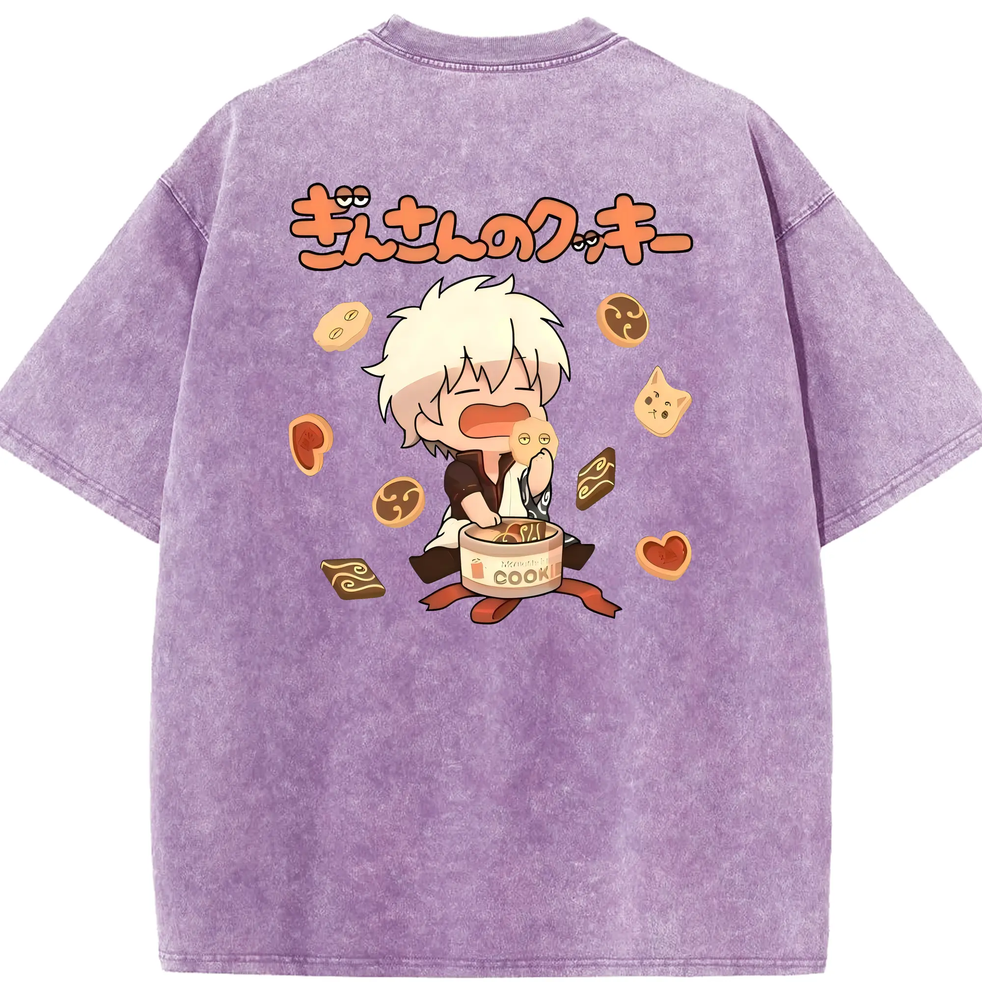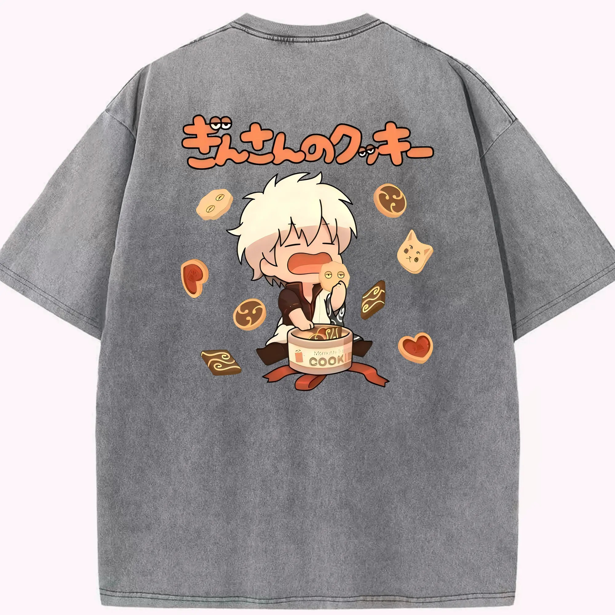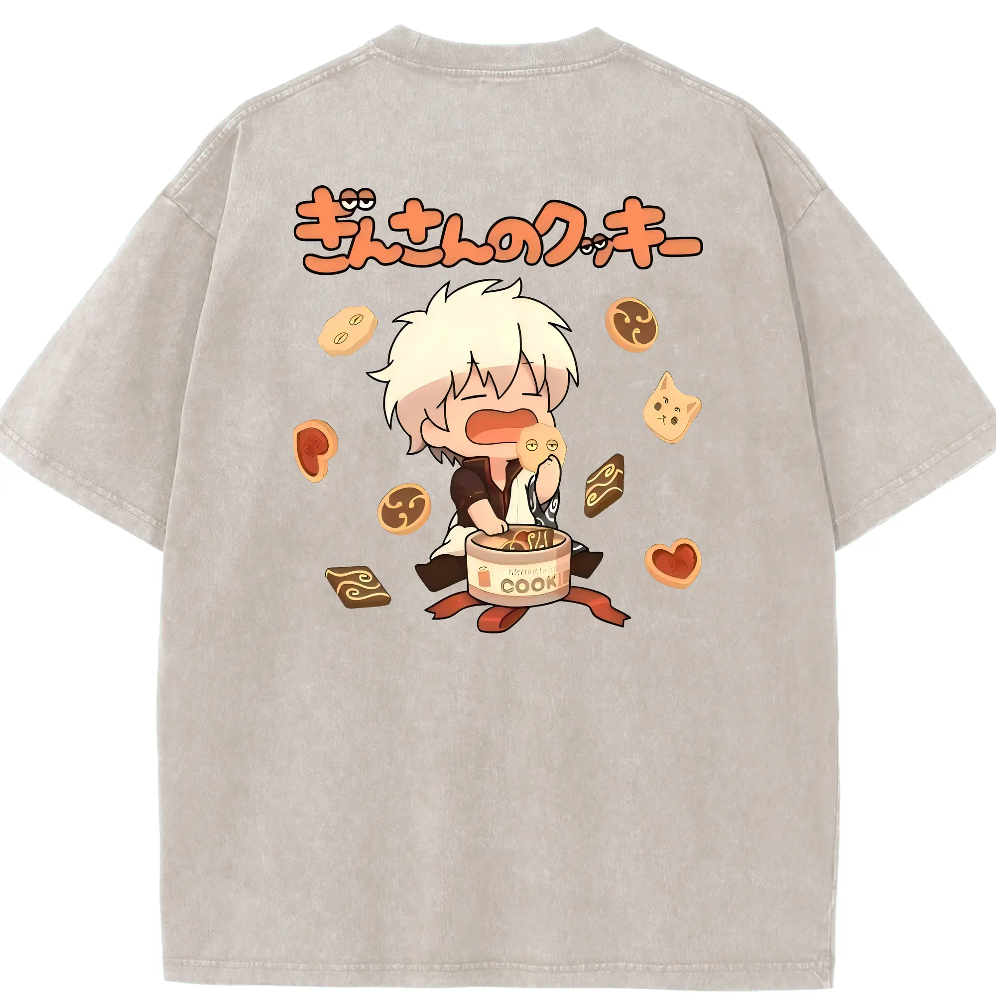 銀魂 グッズ 坂田 銀時 - 綿100% ヴィンテージ風 半袖Tシャツ ・ フロントプリント ・ 柔らか肌触り ・ 通気性 快適 ・ スポーツ カジュアル 外出用